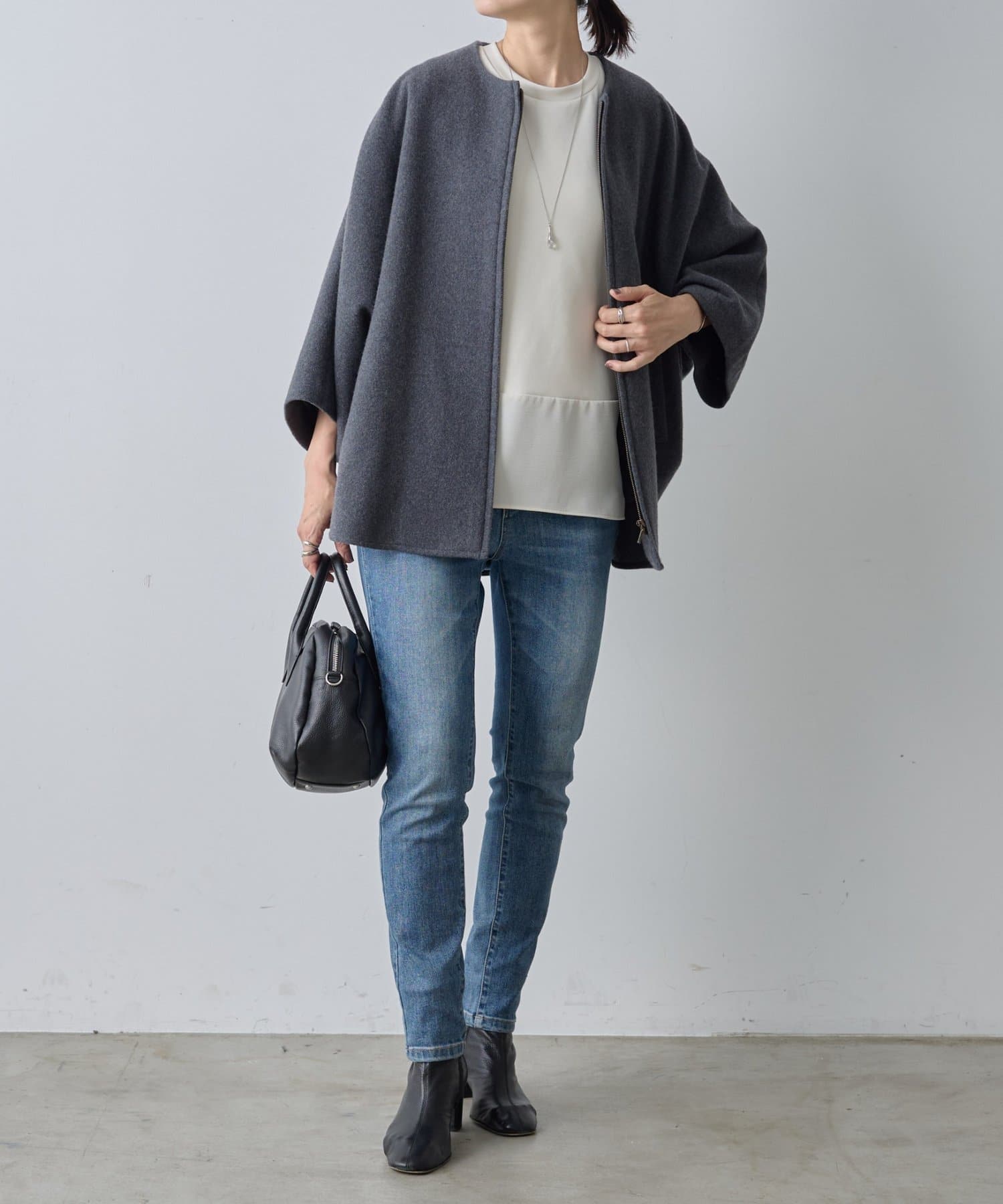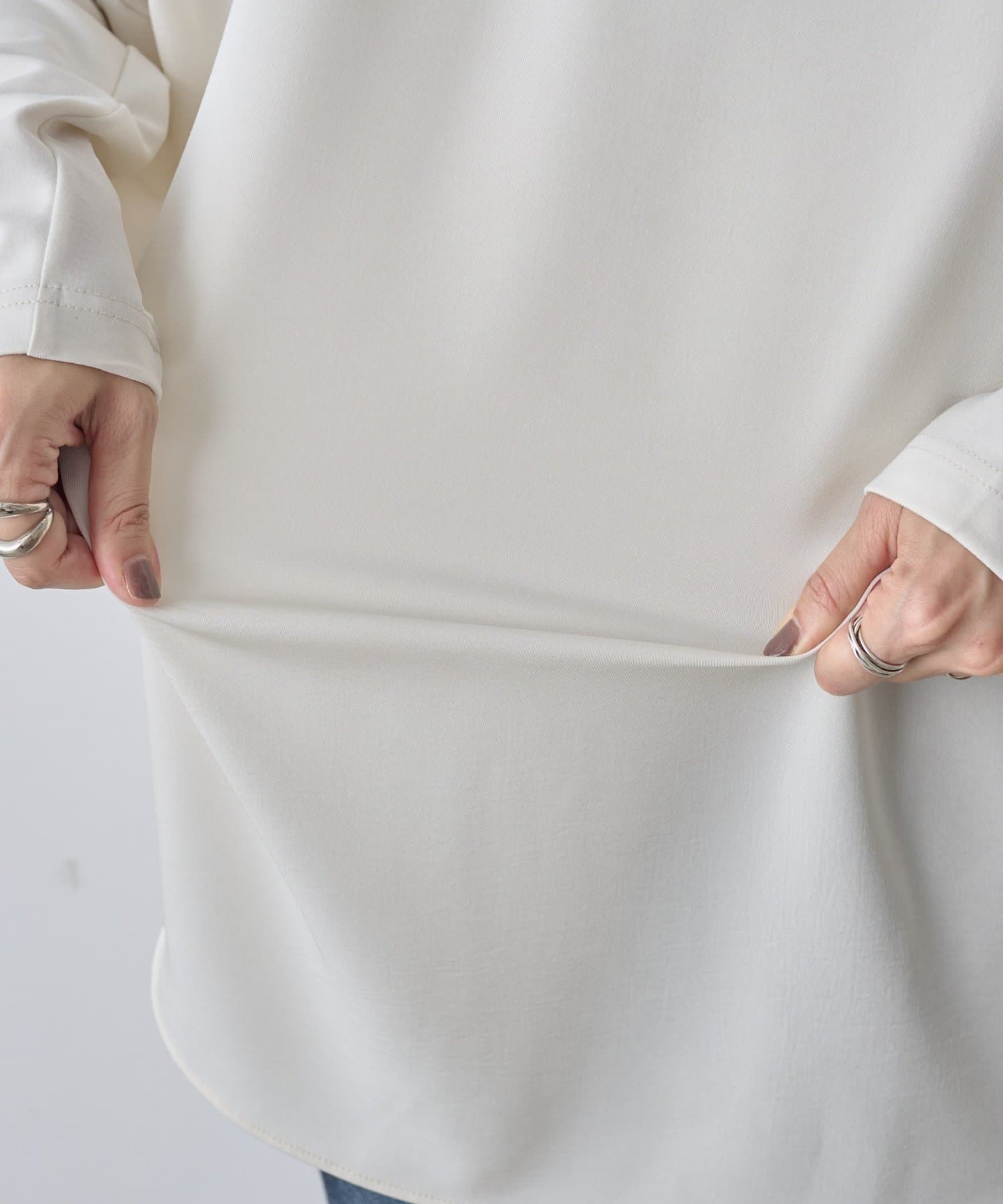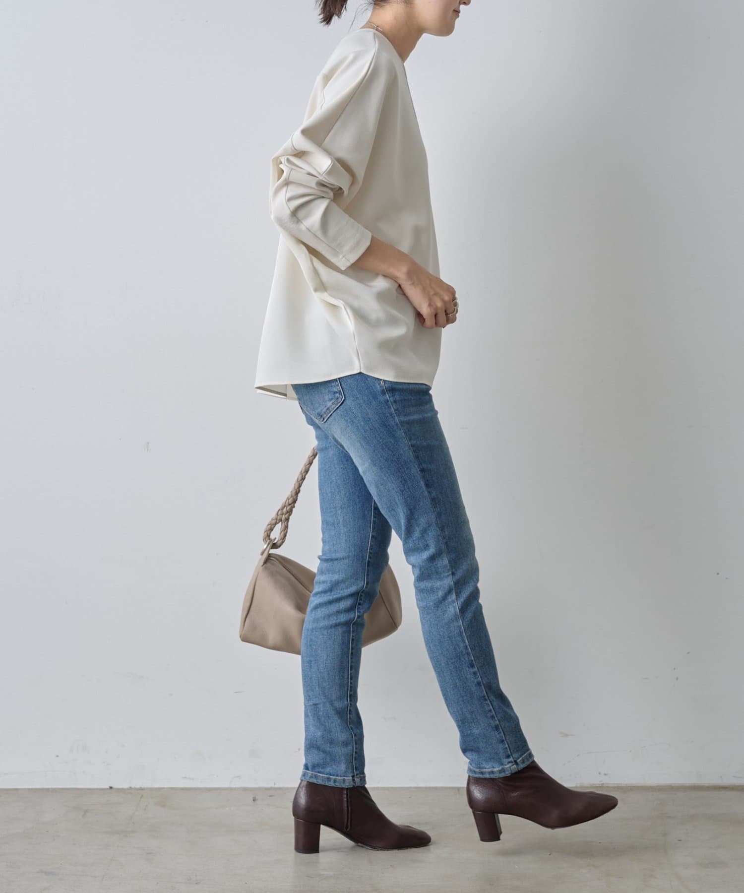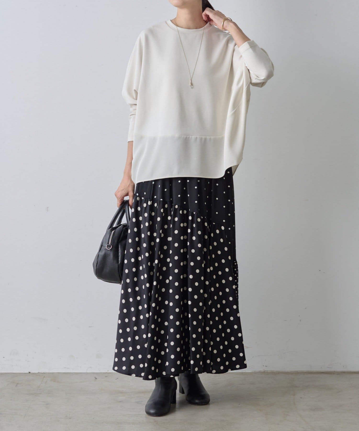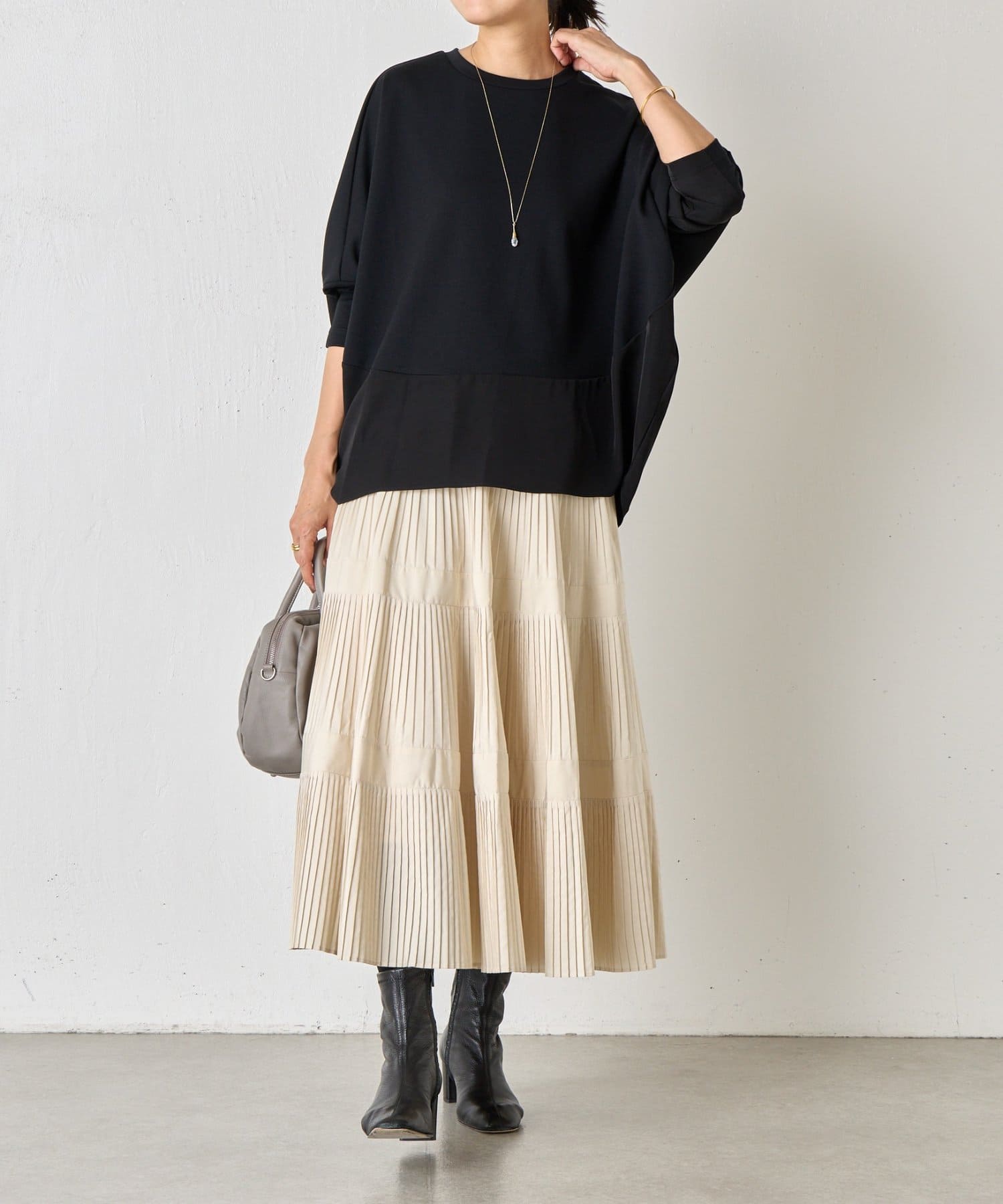 ゆったりドルマンスリーブで体のラインを拾いにくく、ルーズになりすぎない絶妙なシルエットが魅力。