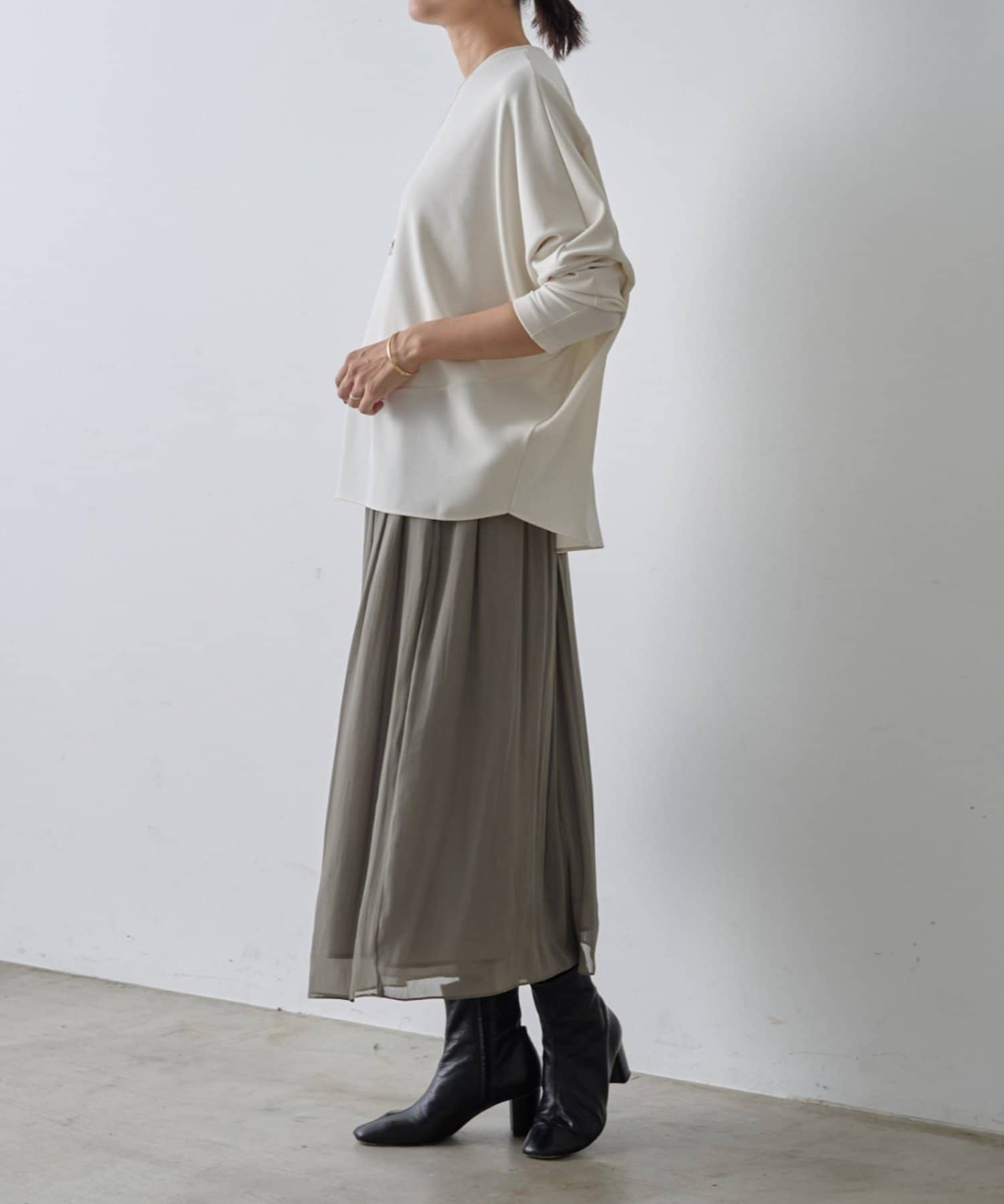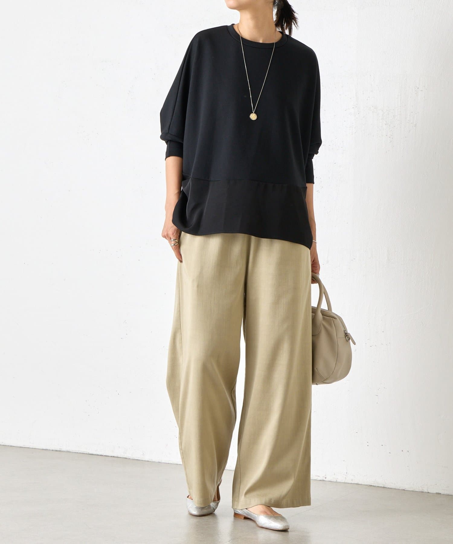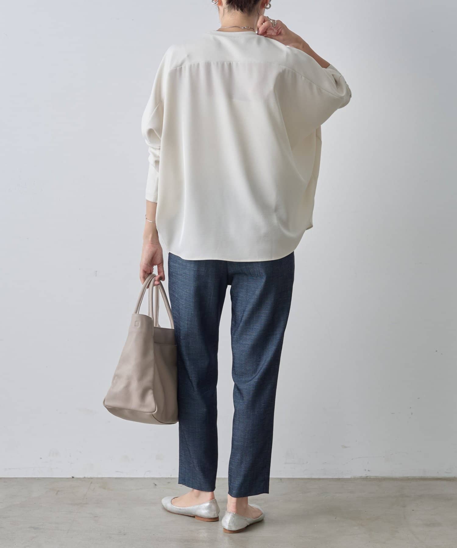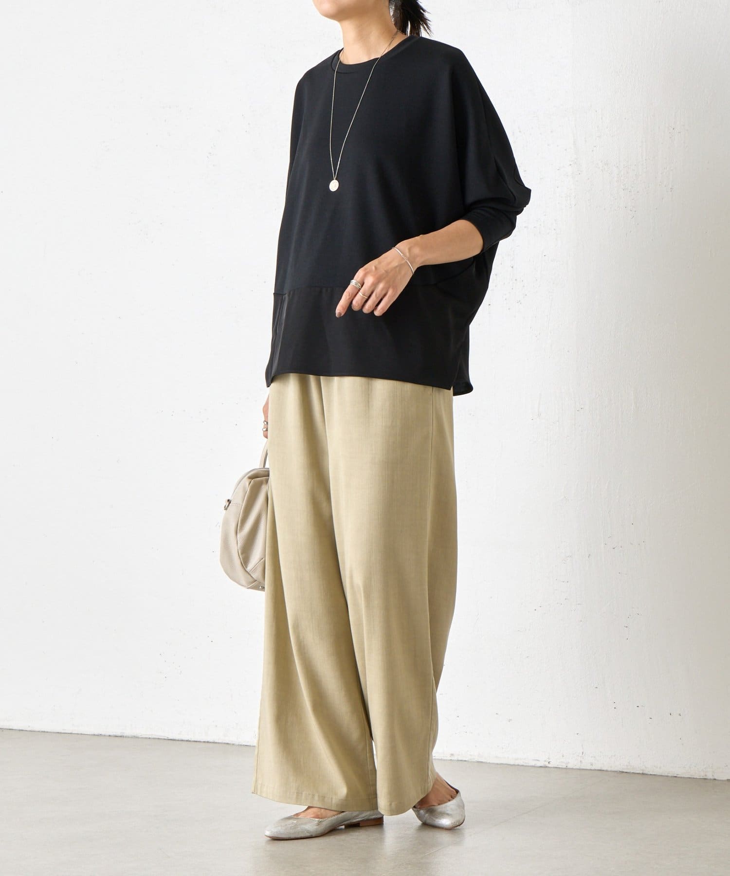 別布には少し光沢感とトロミがあり、きれいめな印象にもなるのでお仕事シーンにも活躍しそう。