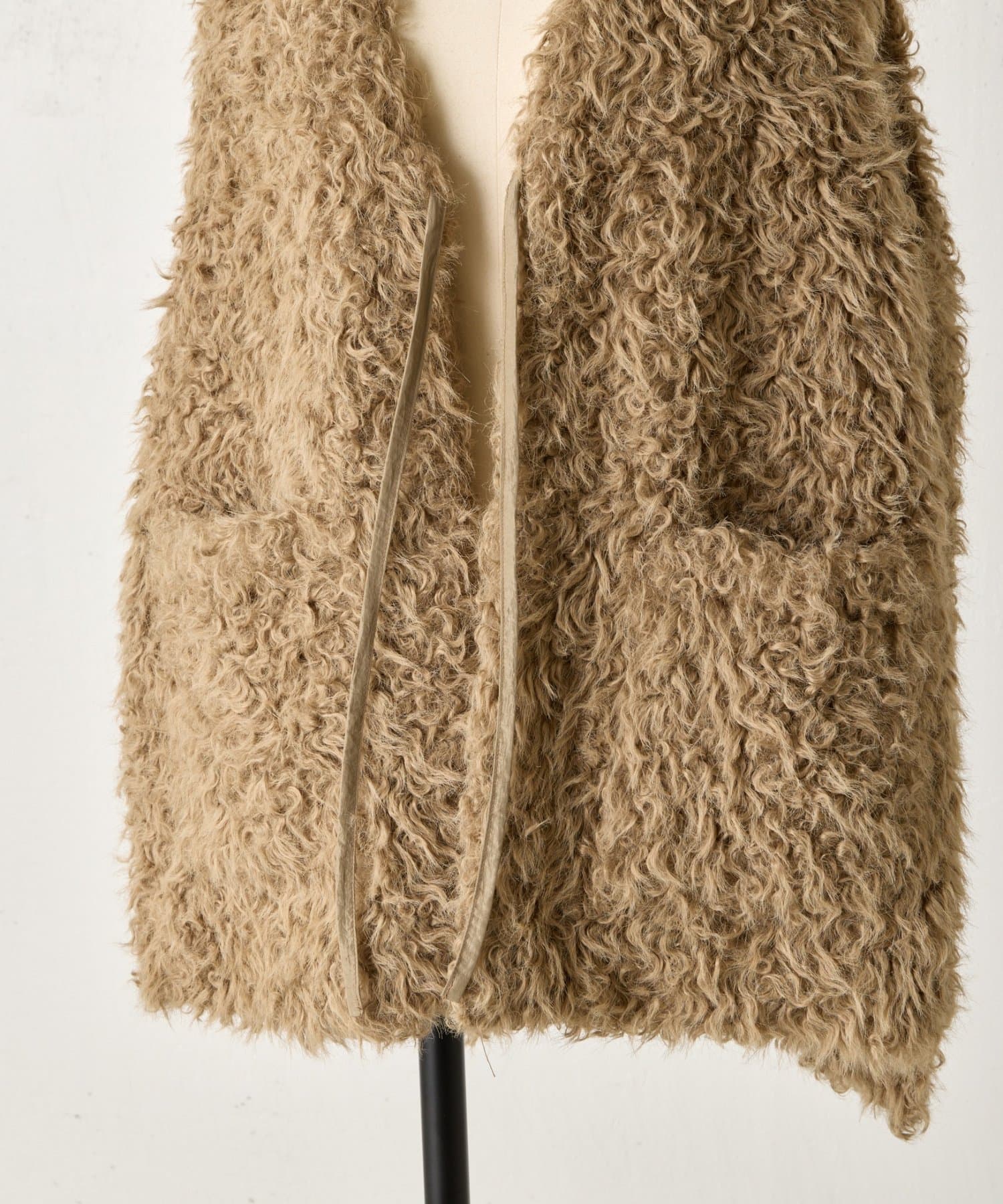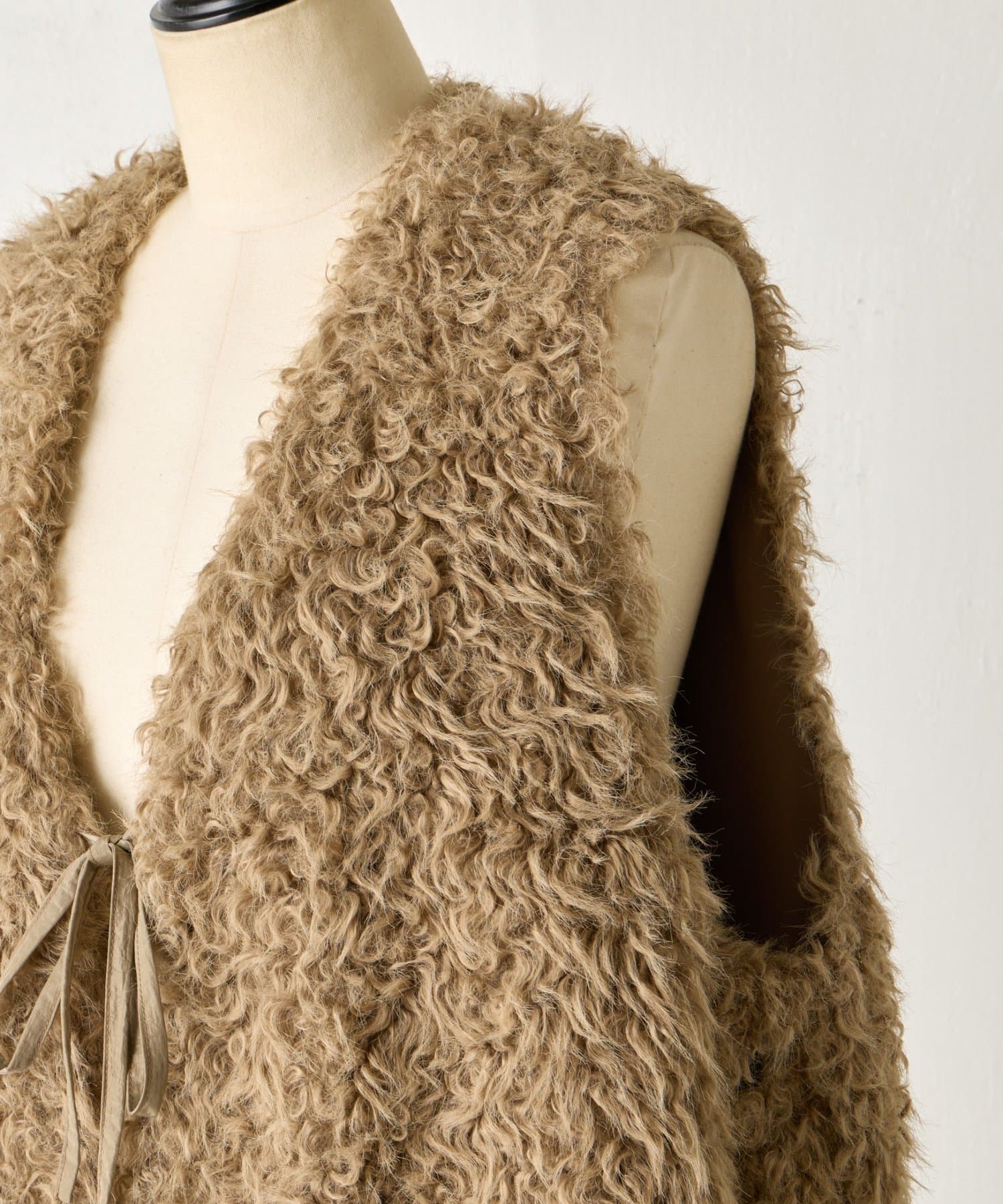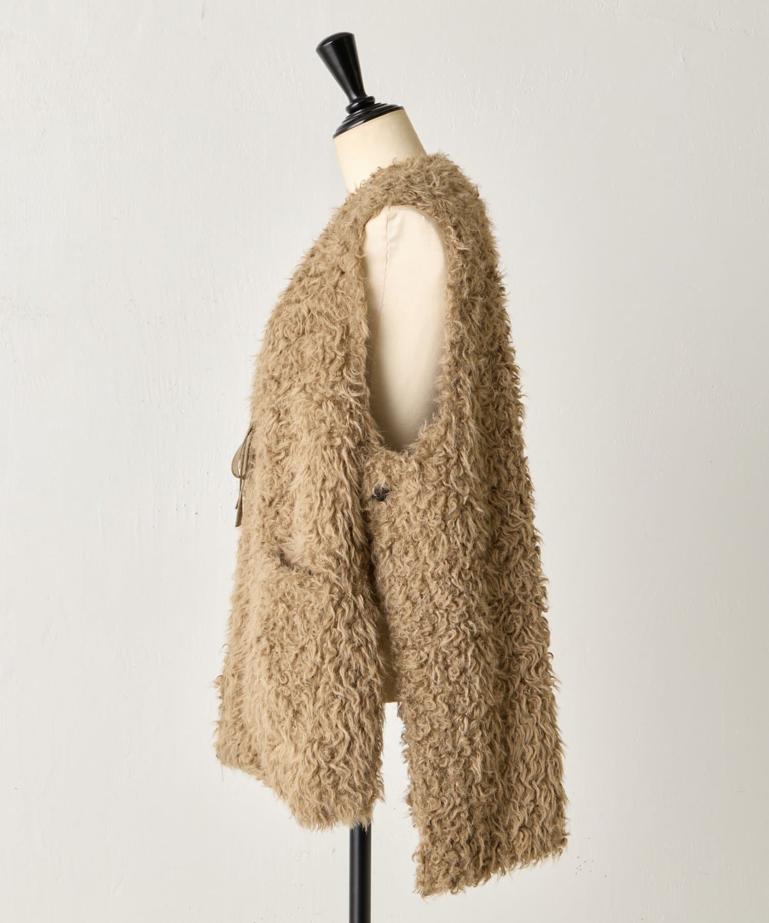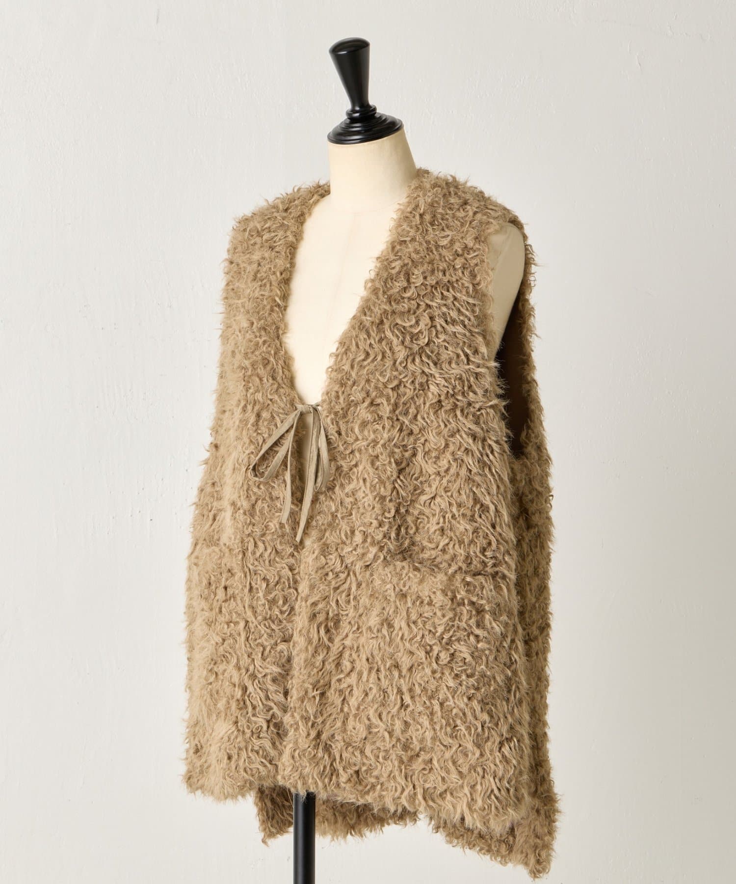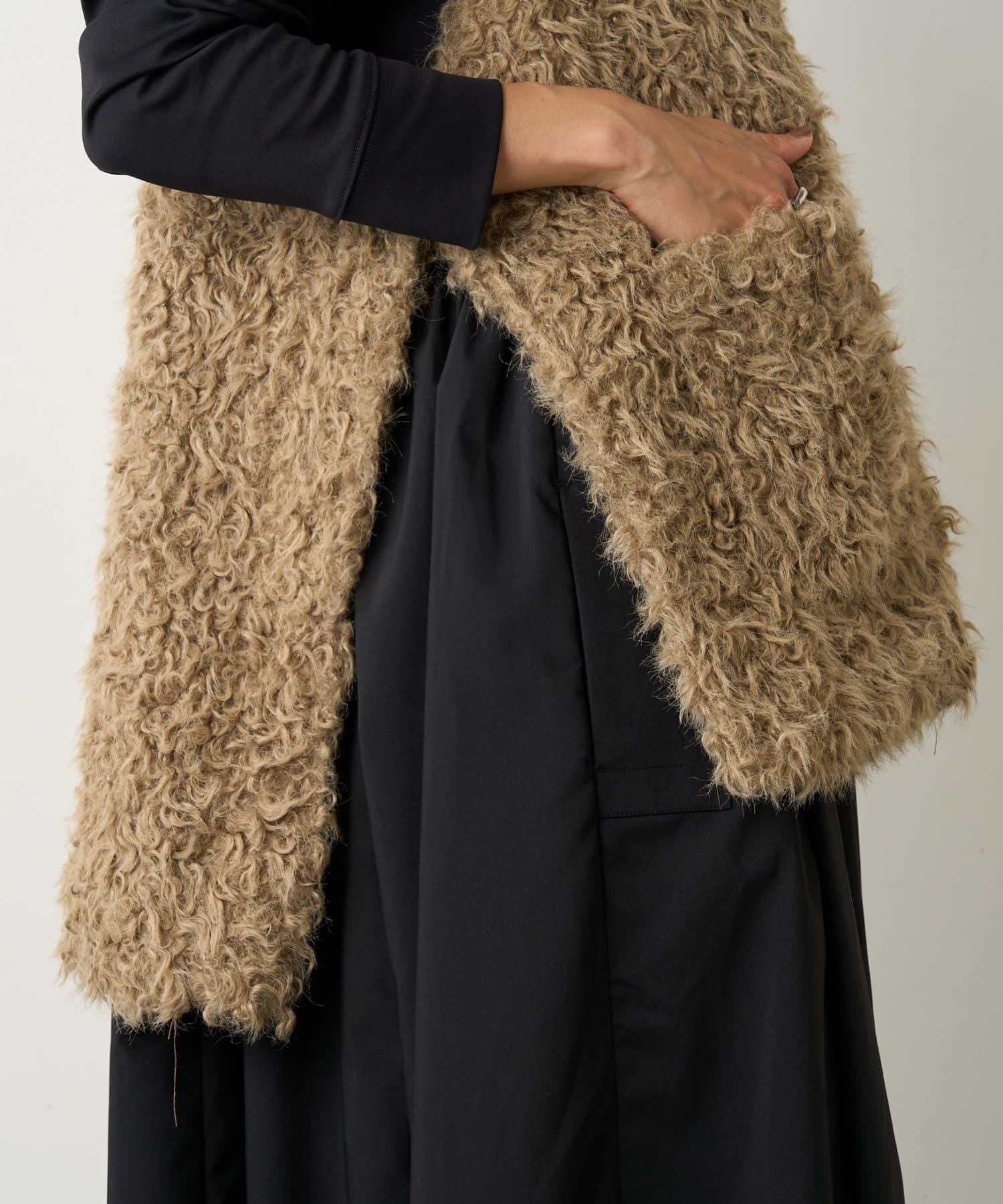 ふんわりとカールしたフェイクファー素材で、季節感と程よい存在感を演出する大人カジュアルなベスト。