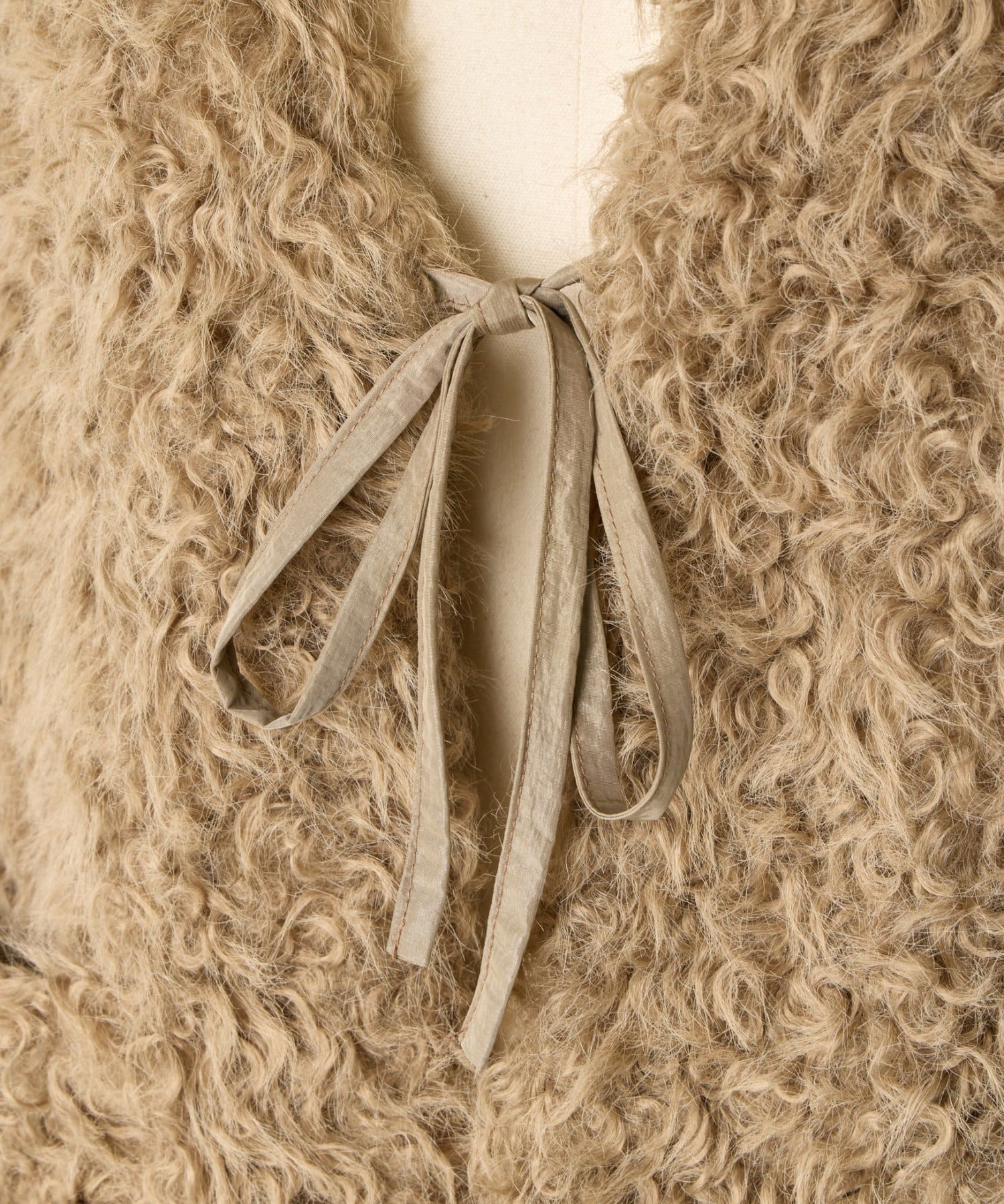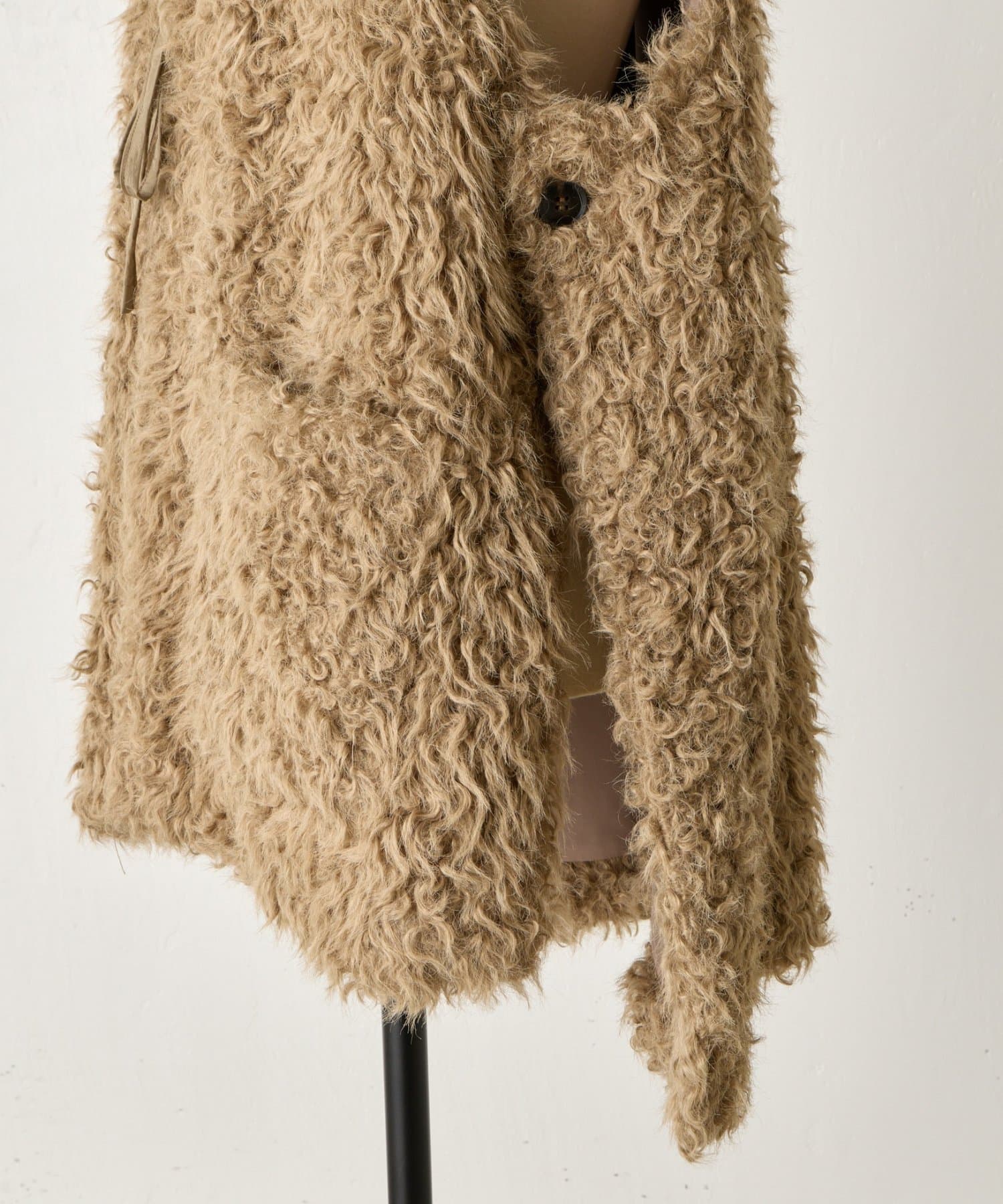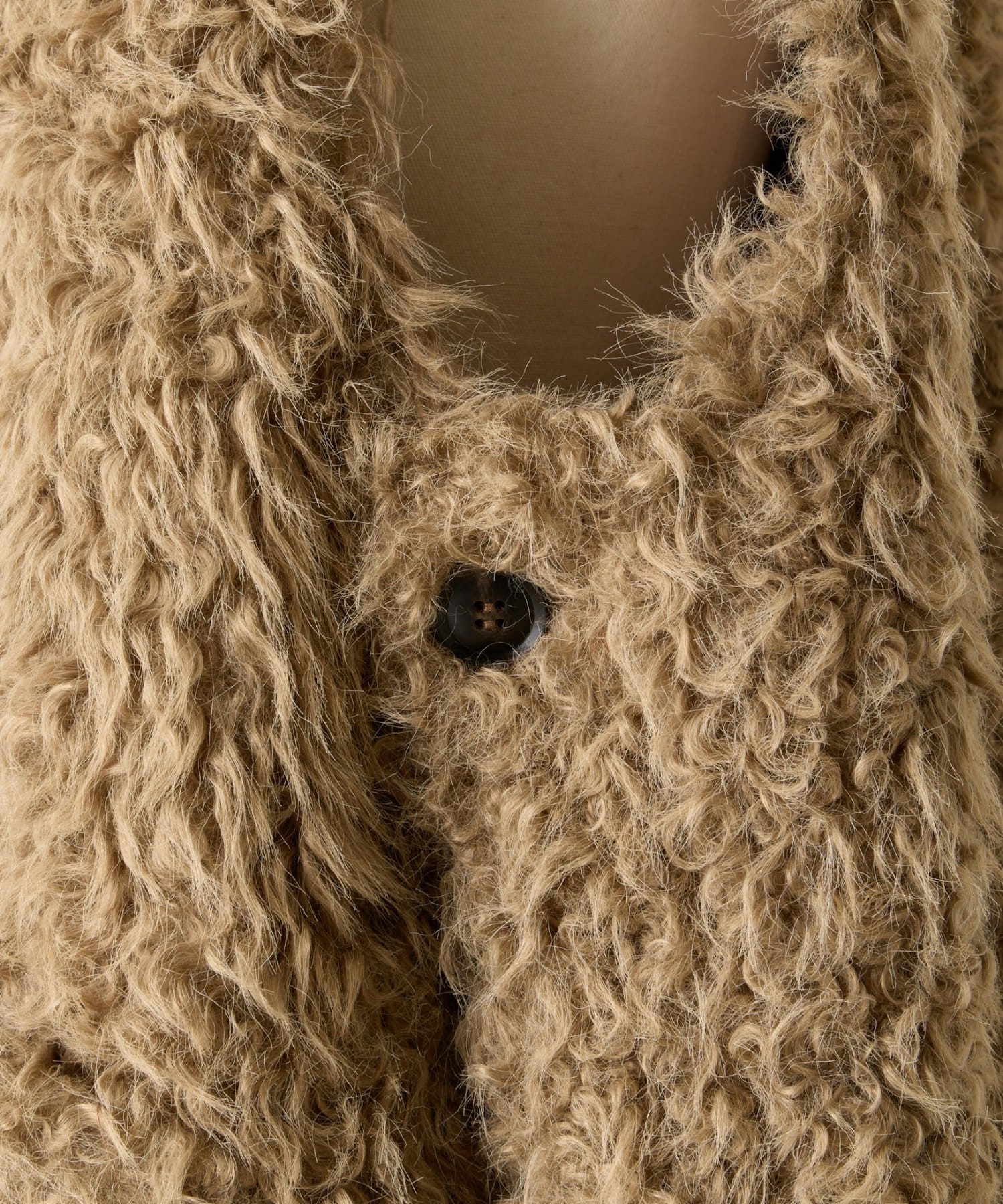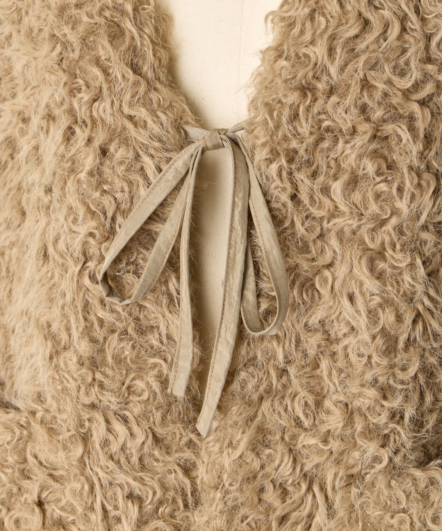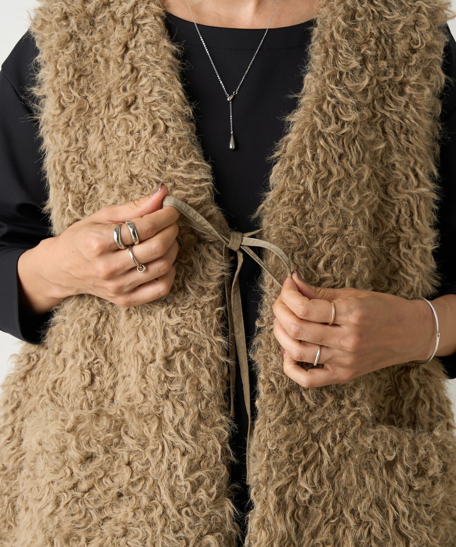 ふんわりとカールしたフェイクファー素材で、季節感と程よい存在感を演出する大人カジュアルなベスト。