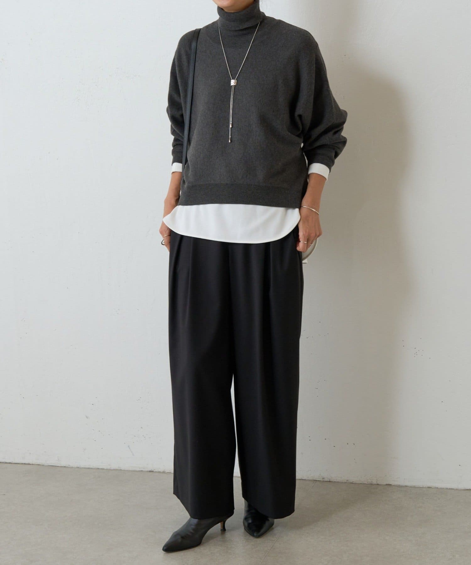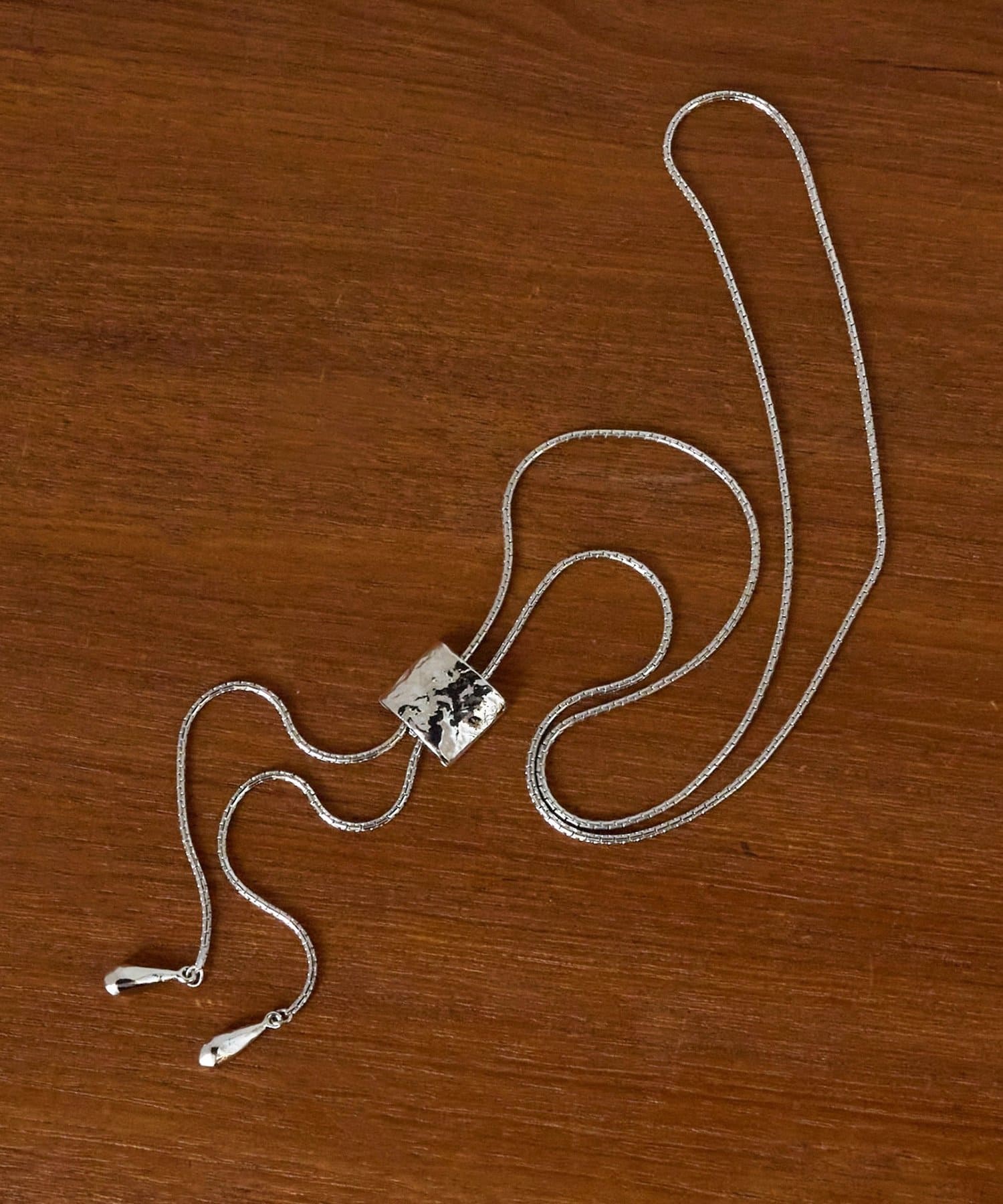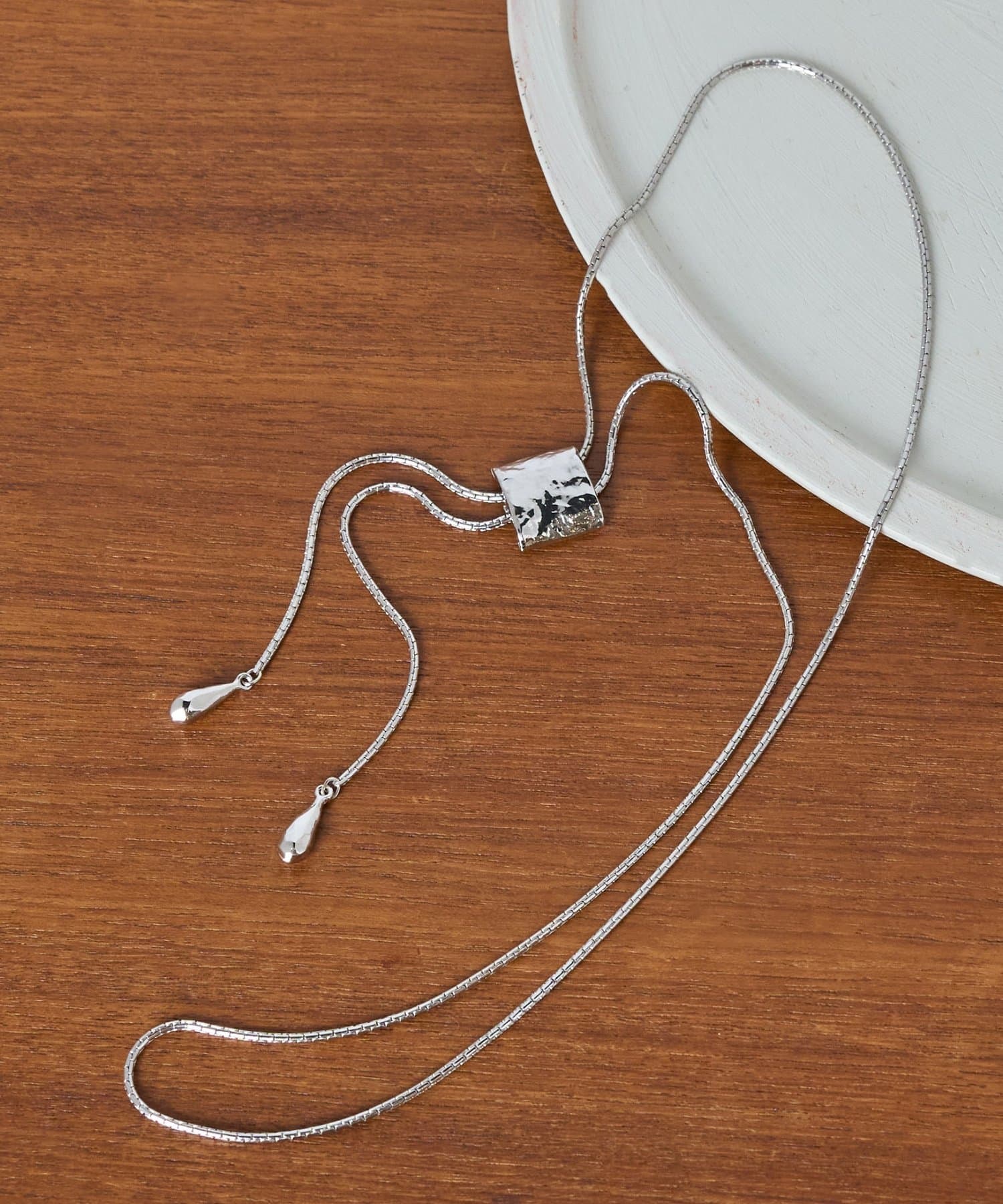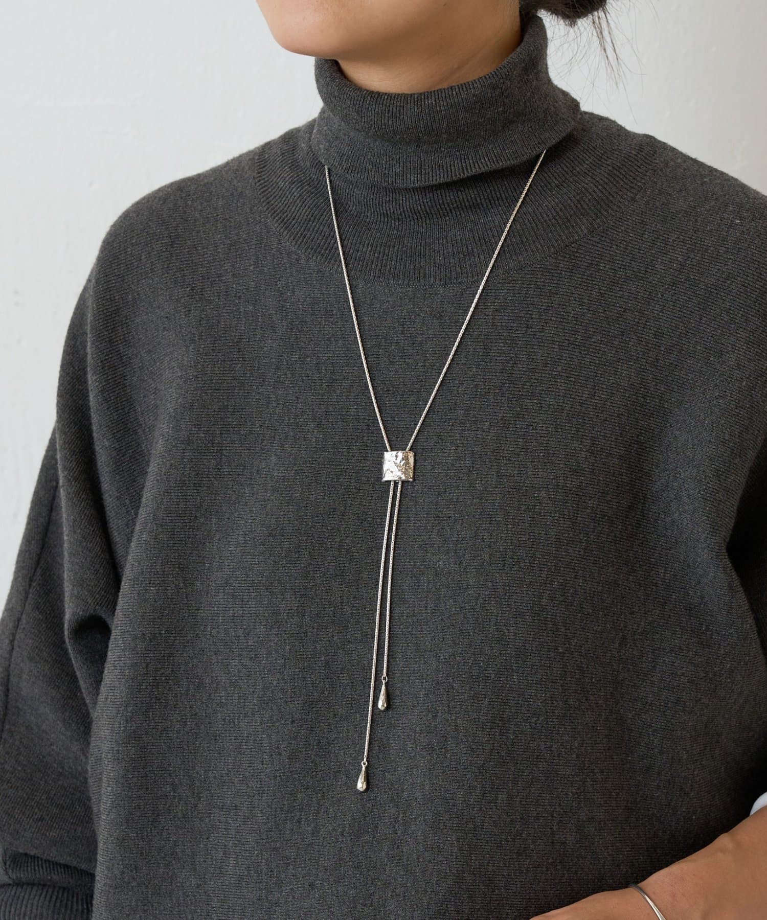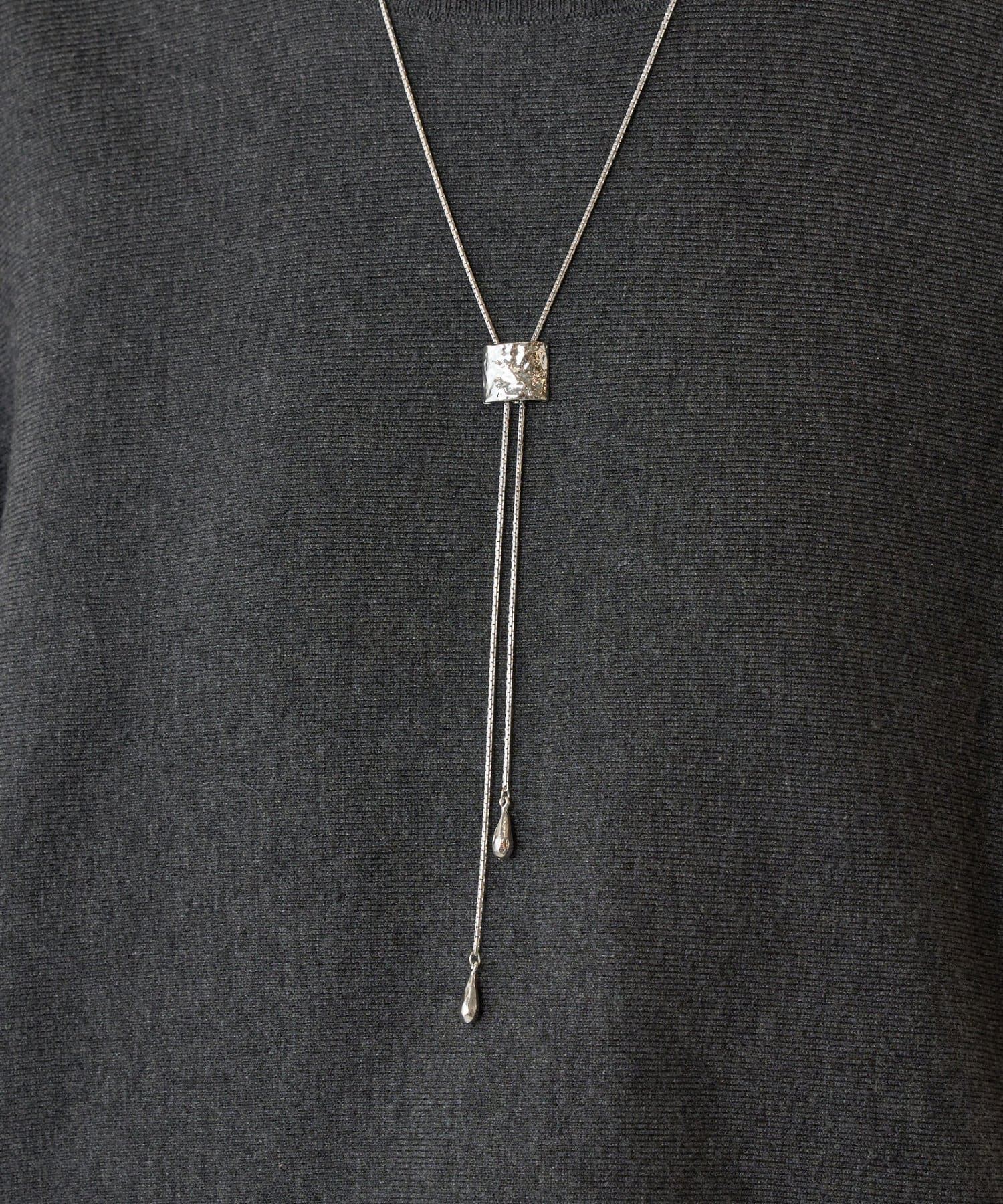 シンプルながらも存在感のあるラリエットネックレス。