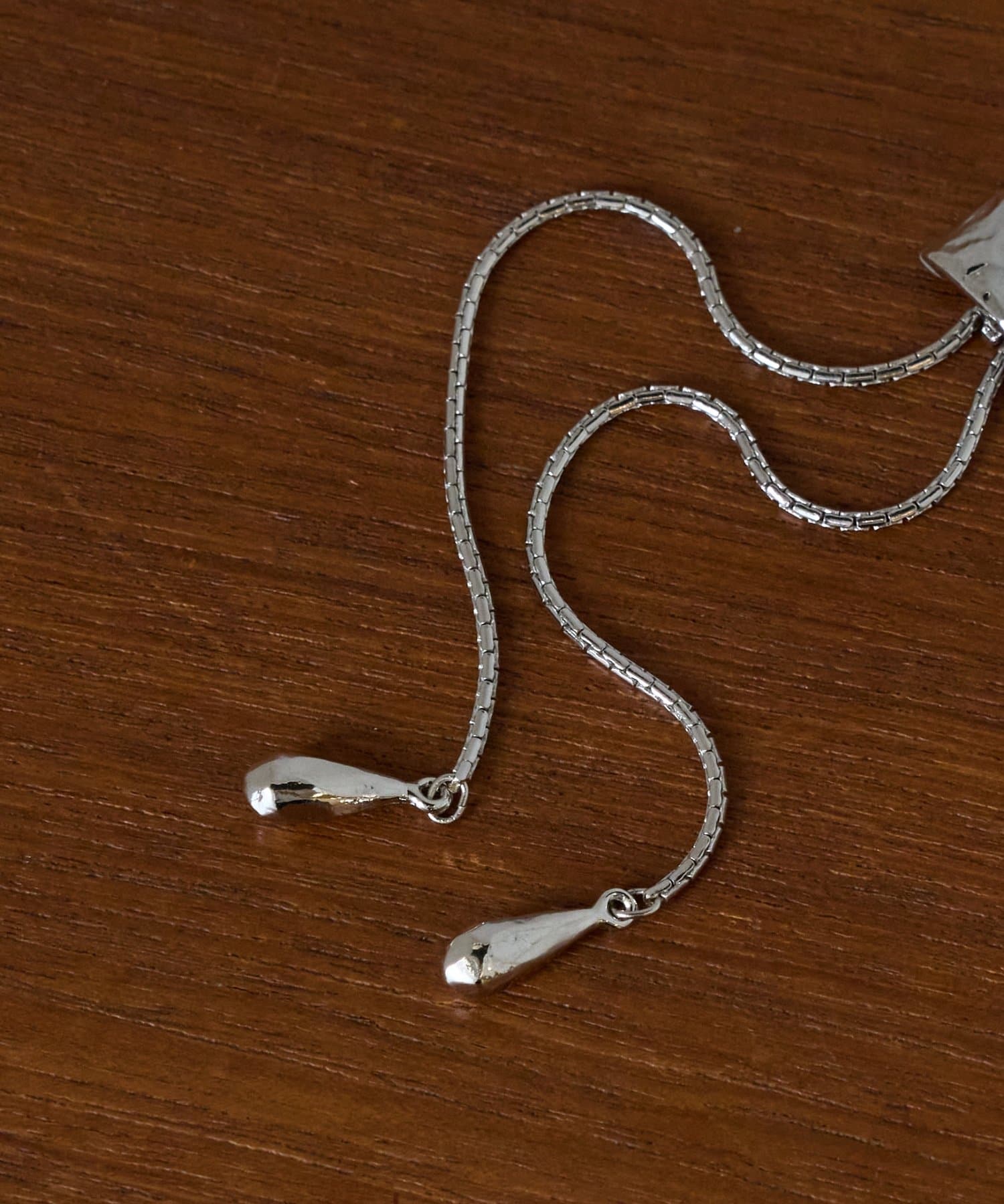 繊細な輝きを放つベネチアンチェーンに、両端には滴型のパーツをあしらいました。