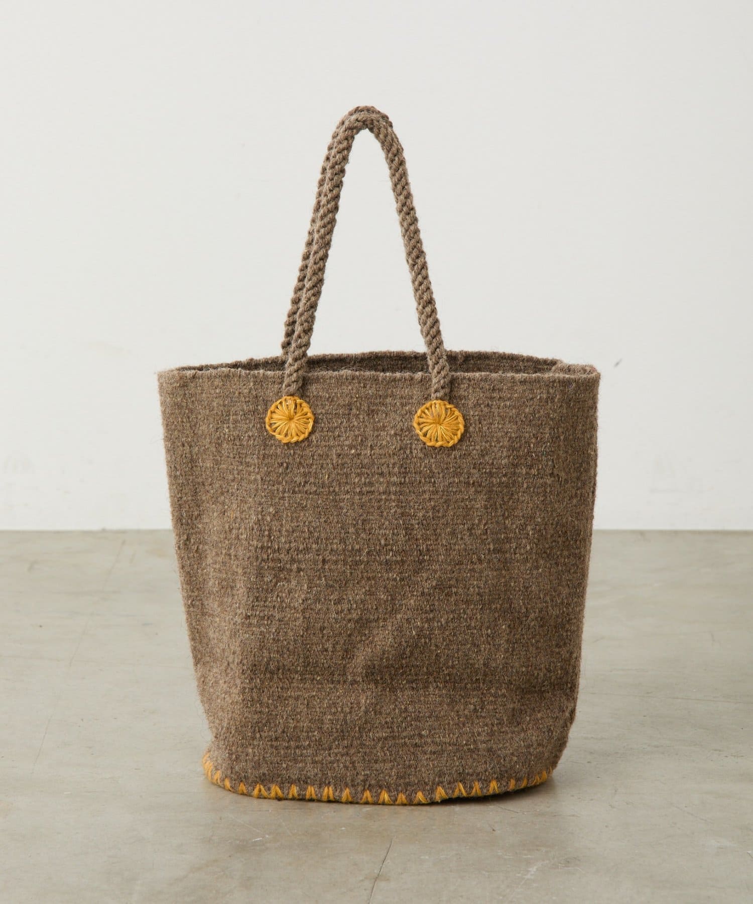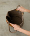 しっかりとしたウールベースのバッグで、楕円型のマチがつき、たっぷり入るのでデイリー使いしやすいのが魅力。