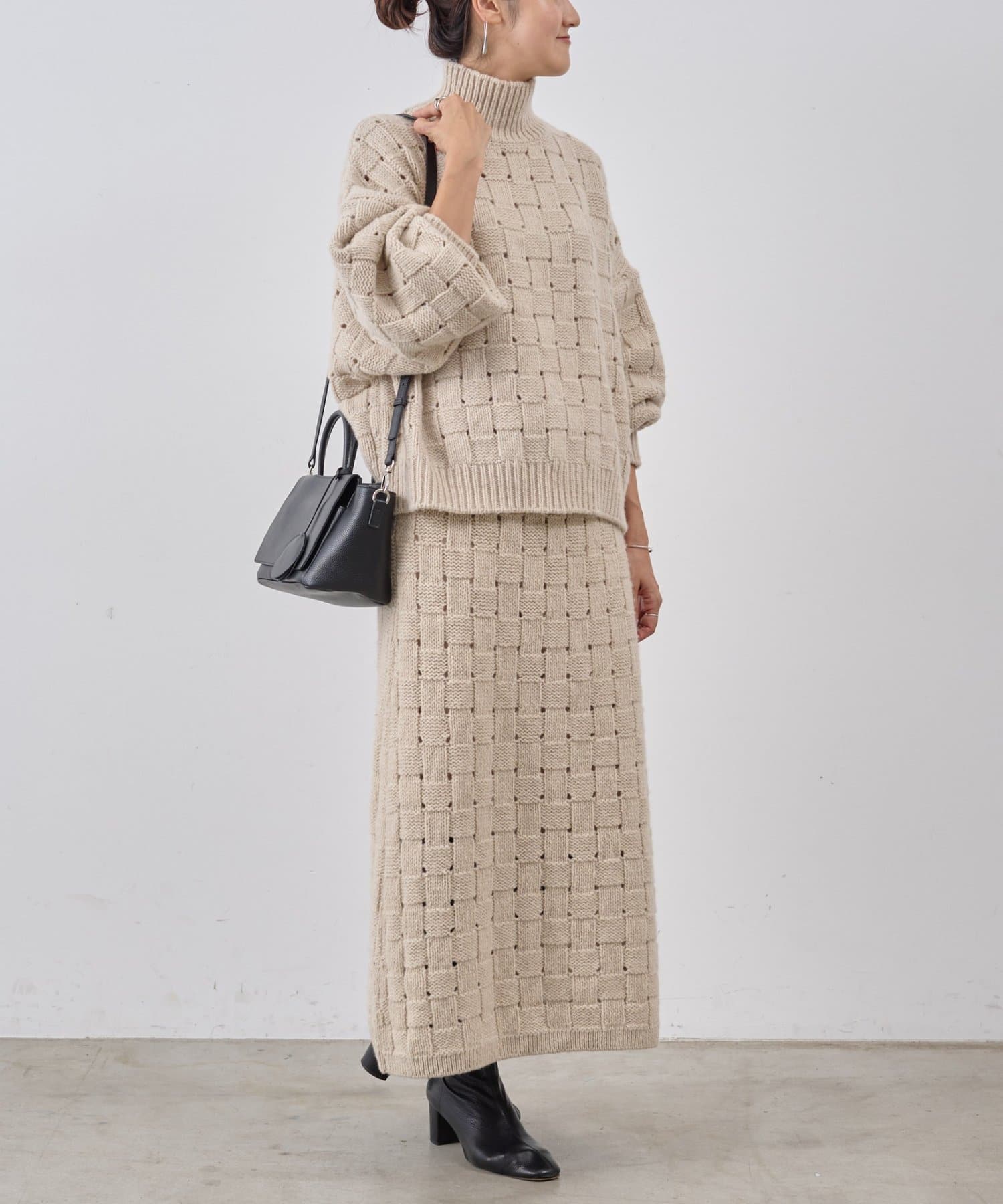 同素材のプルオーバーとセットアップもおすすめ。冬の装いにやさしい温もりを添えてくれます。