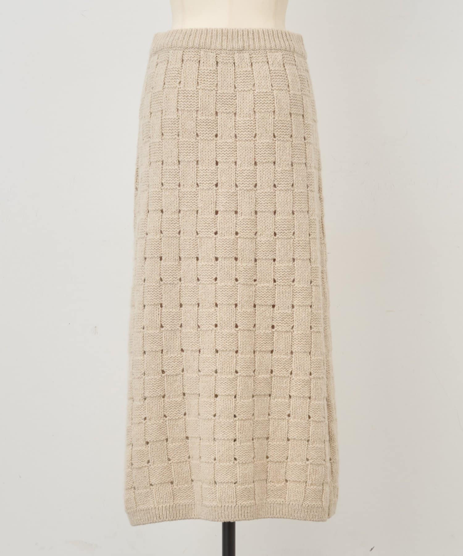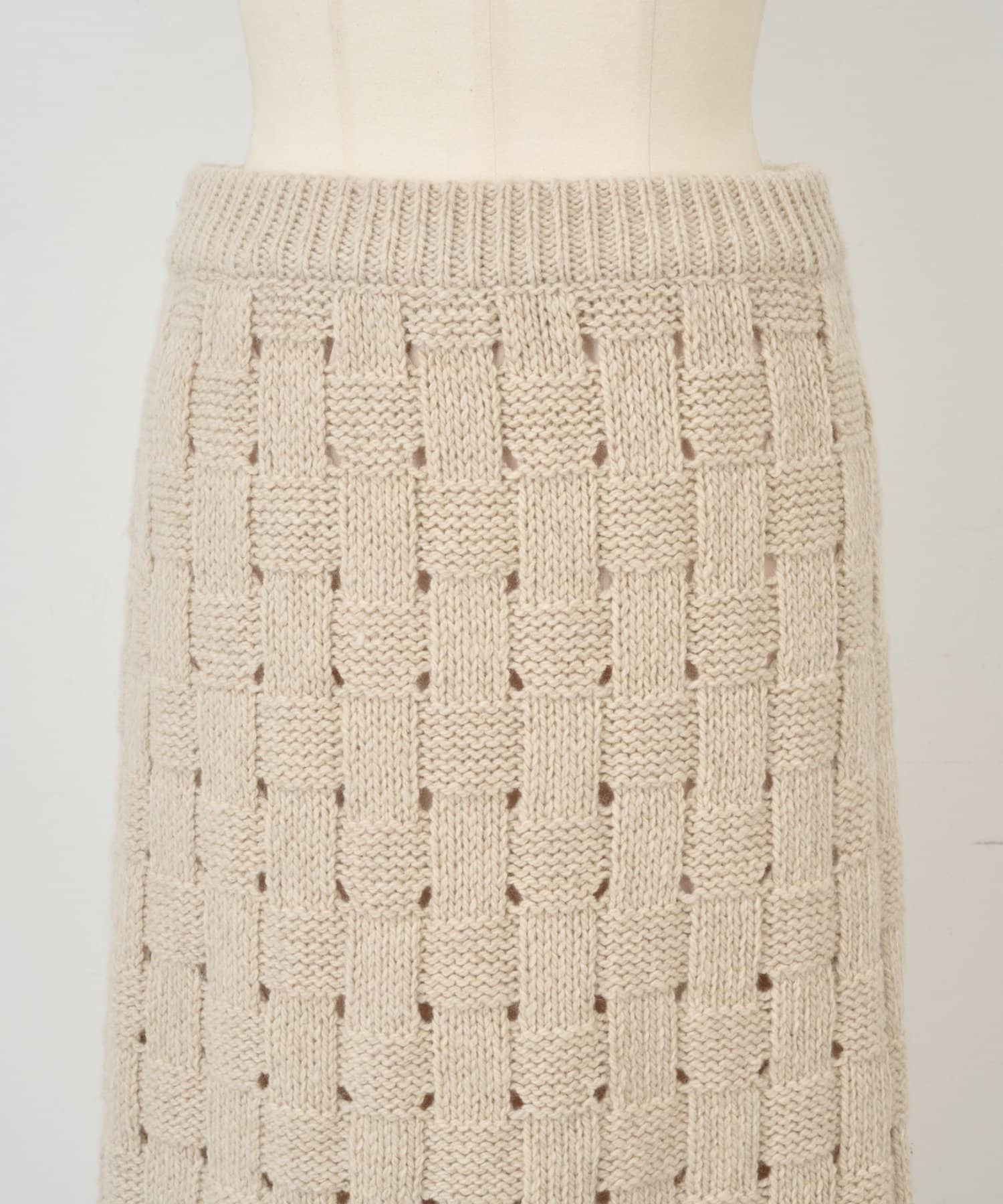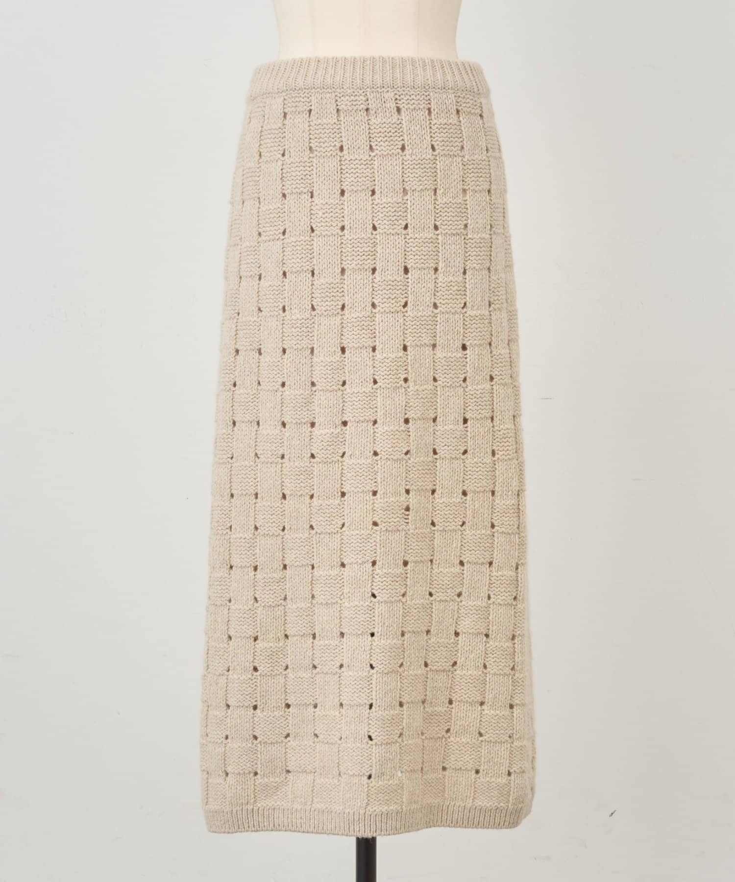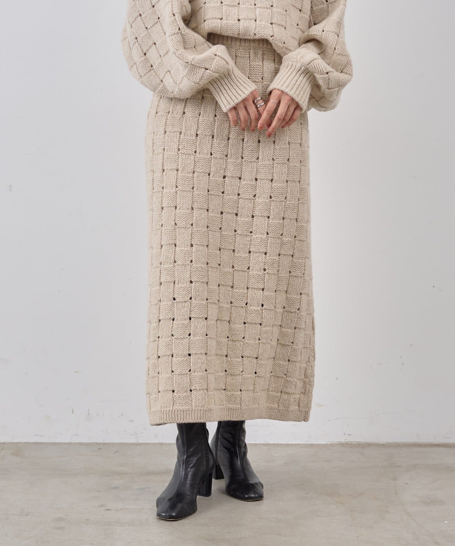まるでバスケットのような網目が魅力のニットスカート。