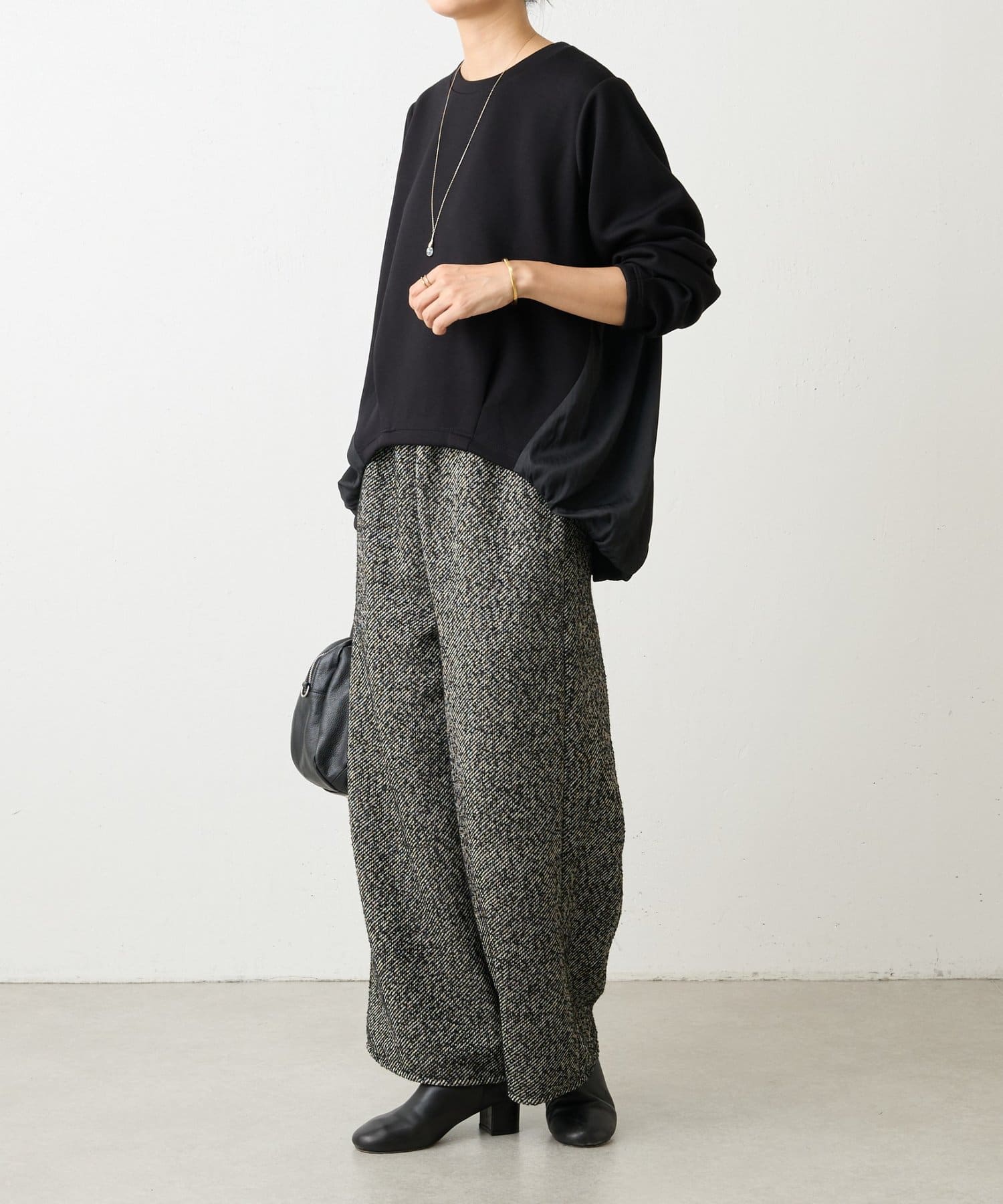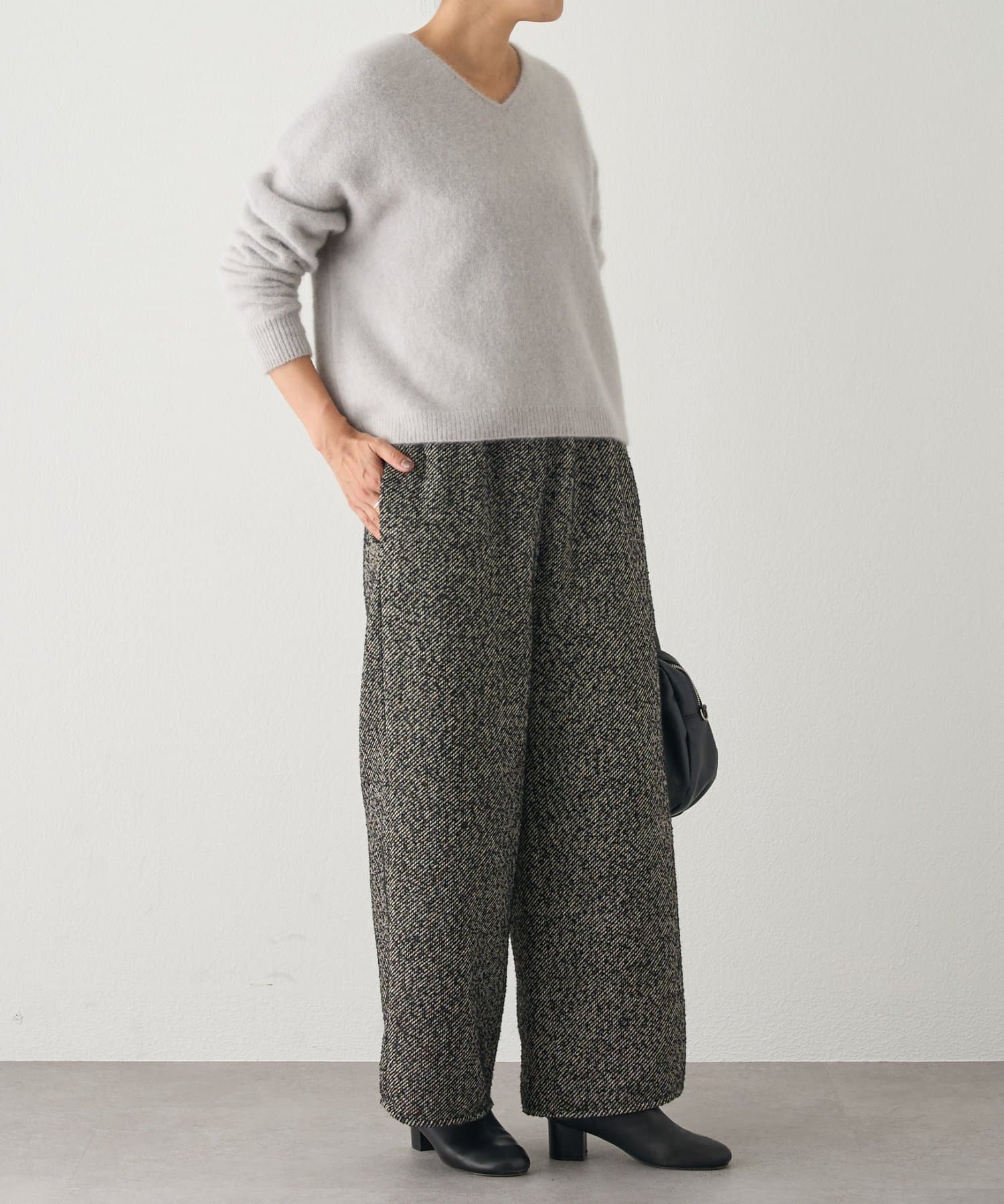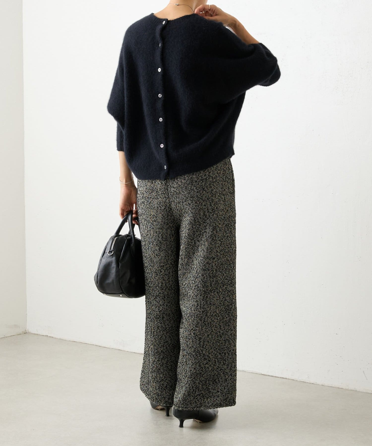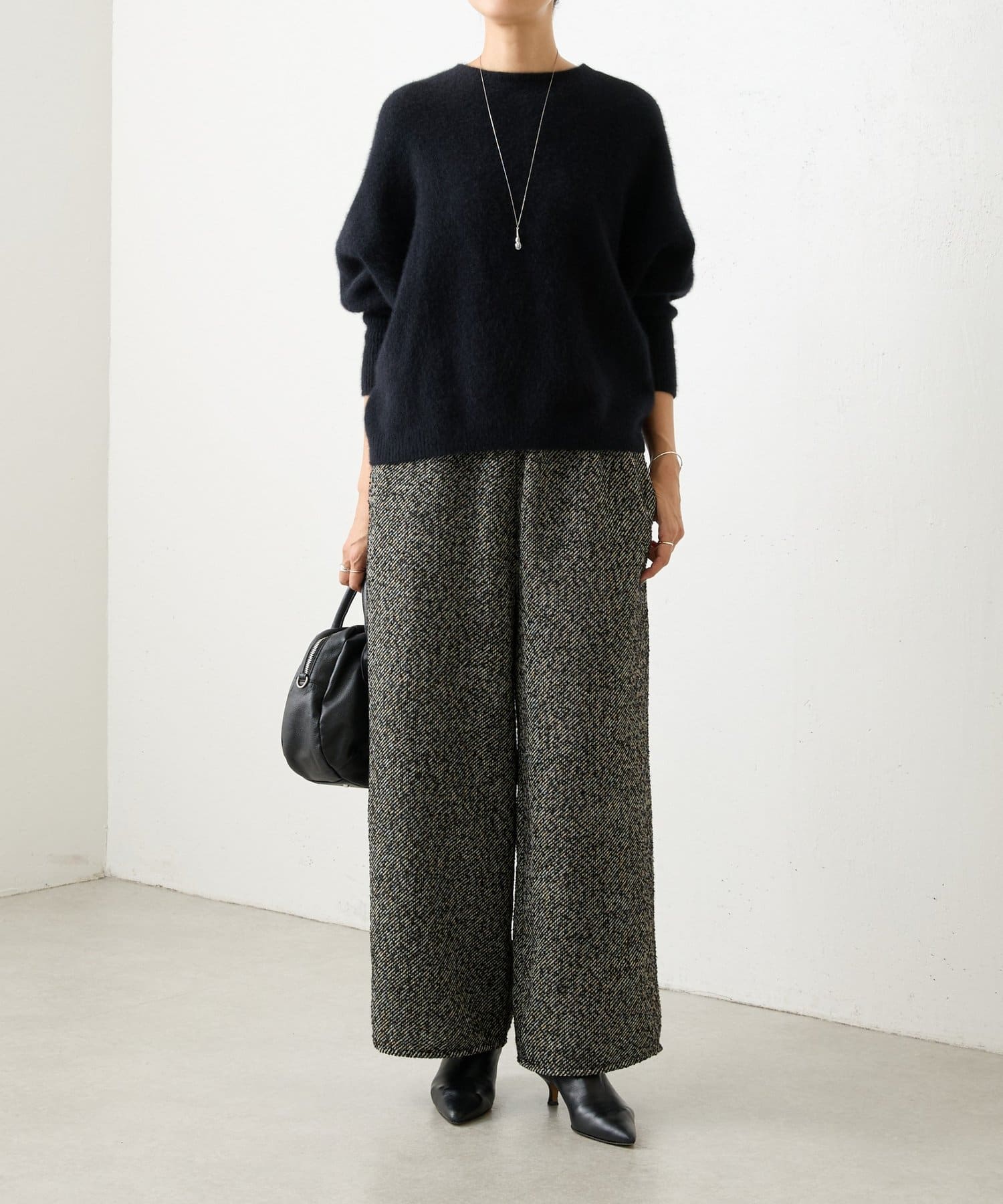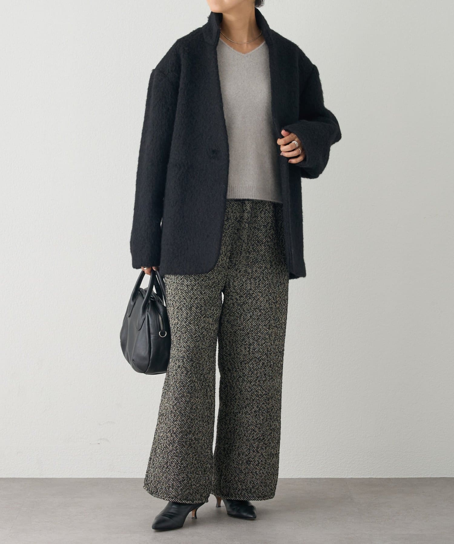 リラックス感のあるシルエットながら、ツイードの上品さでカジュアルにもきれいめにも対応。