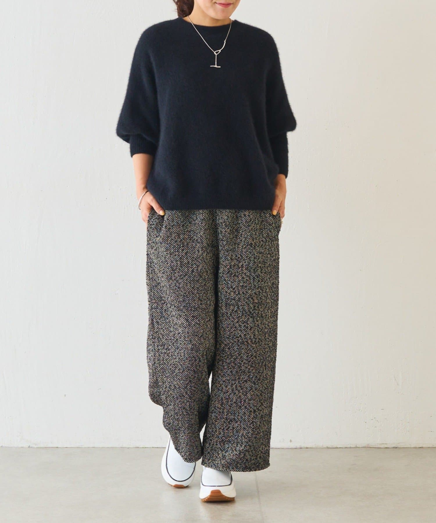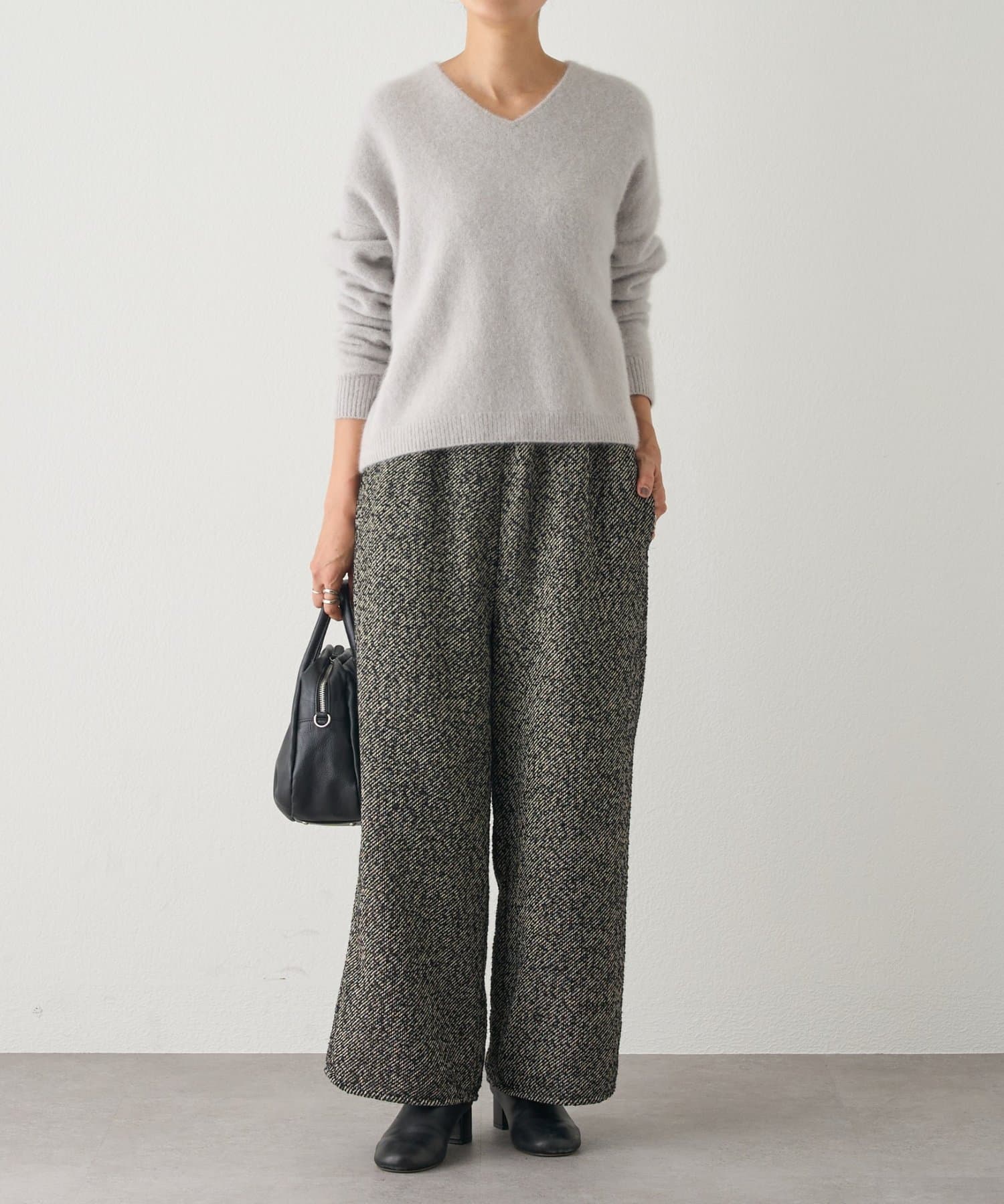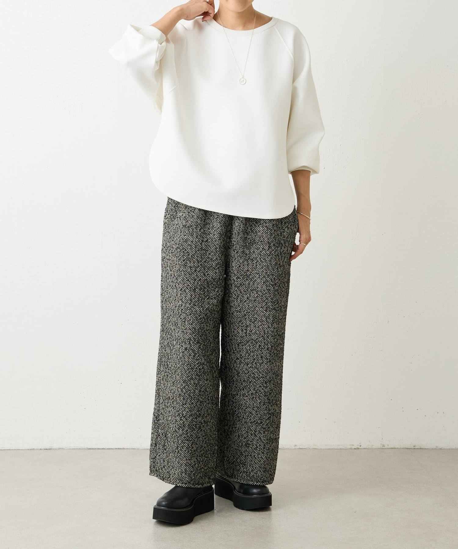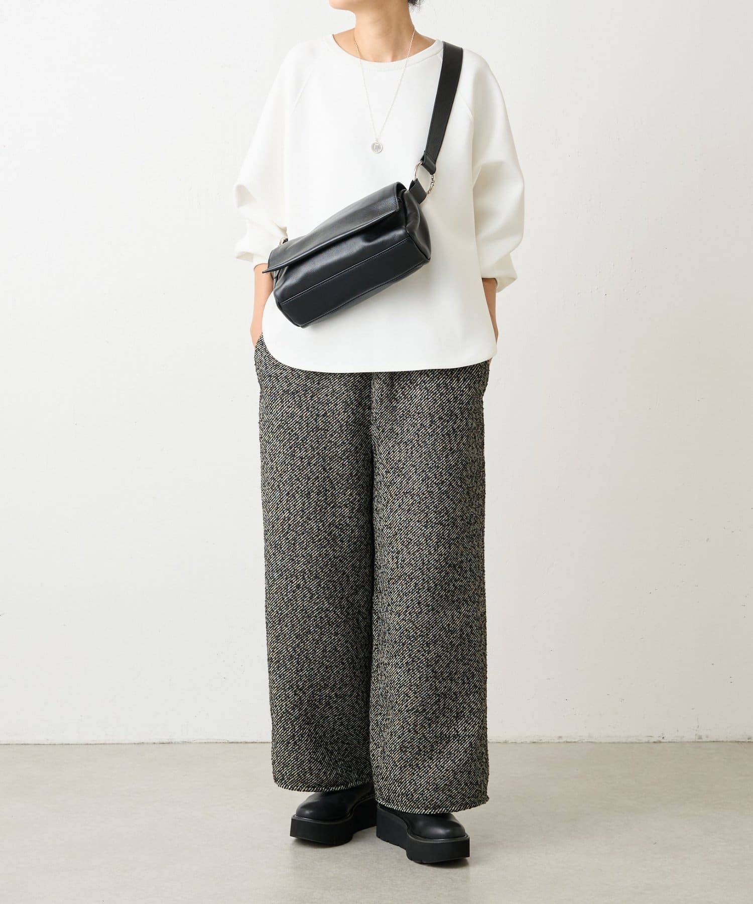 リラックス感のあるシルエットながら、ツイードの上品さでカジュアルにもきれいめにも対応。