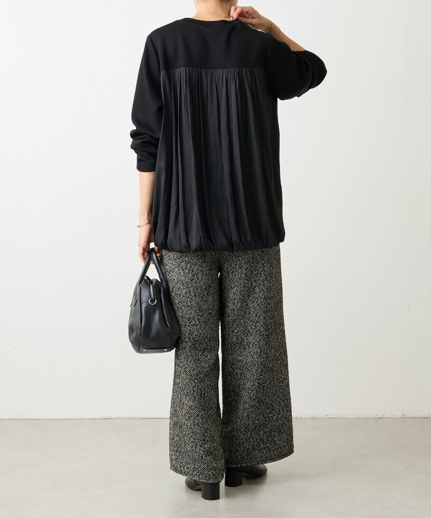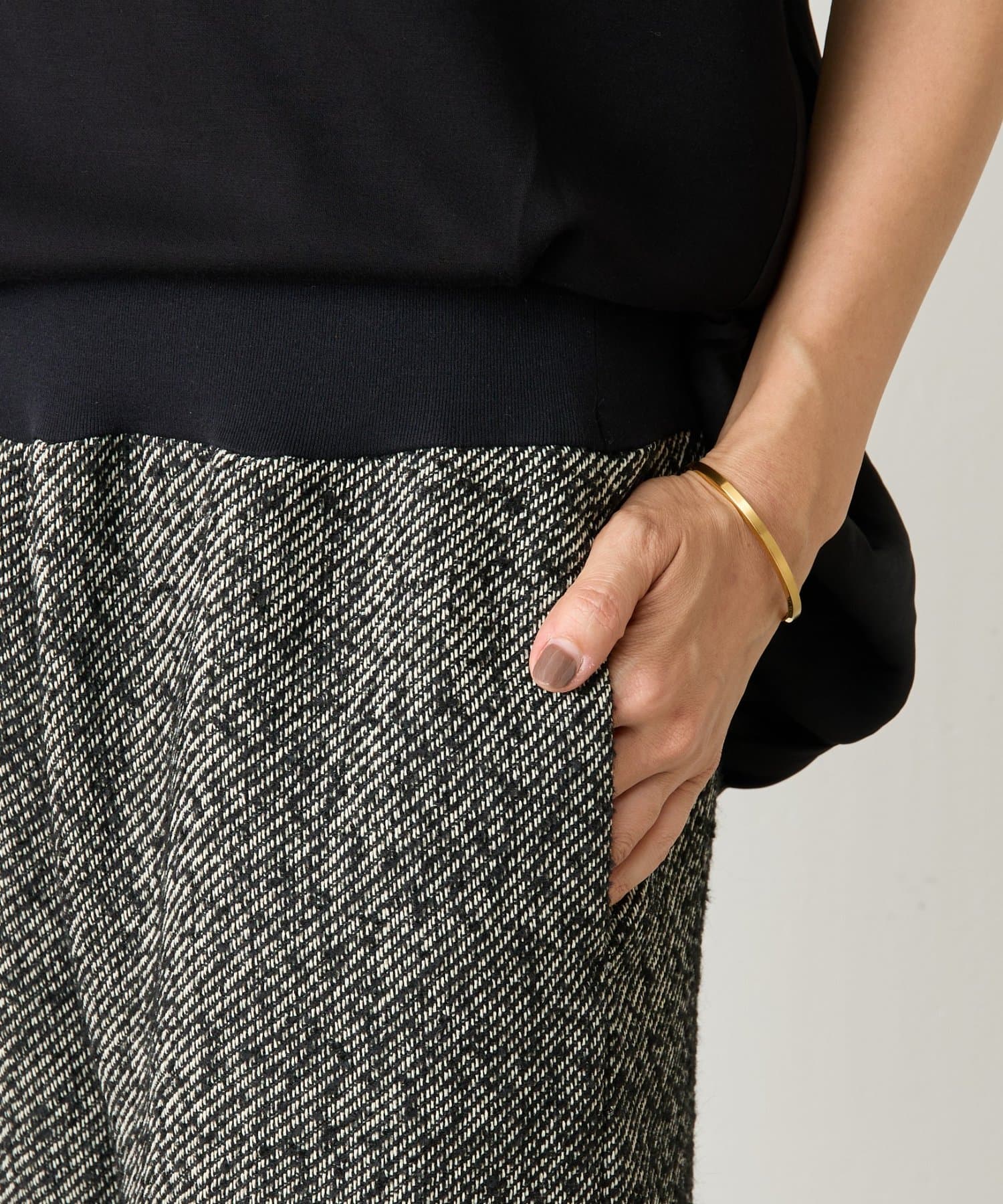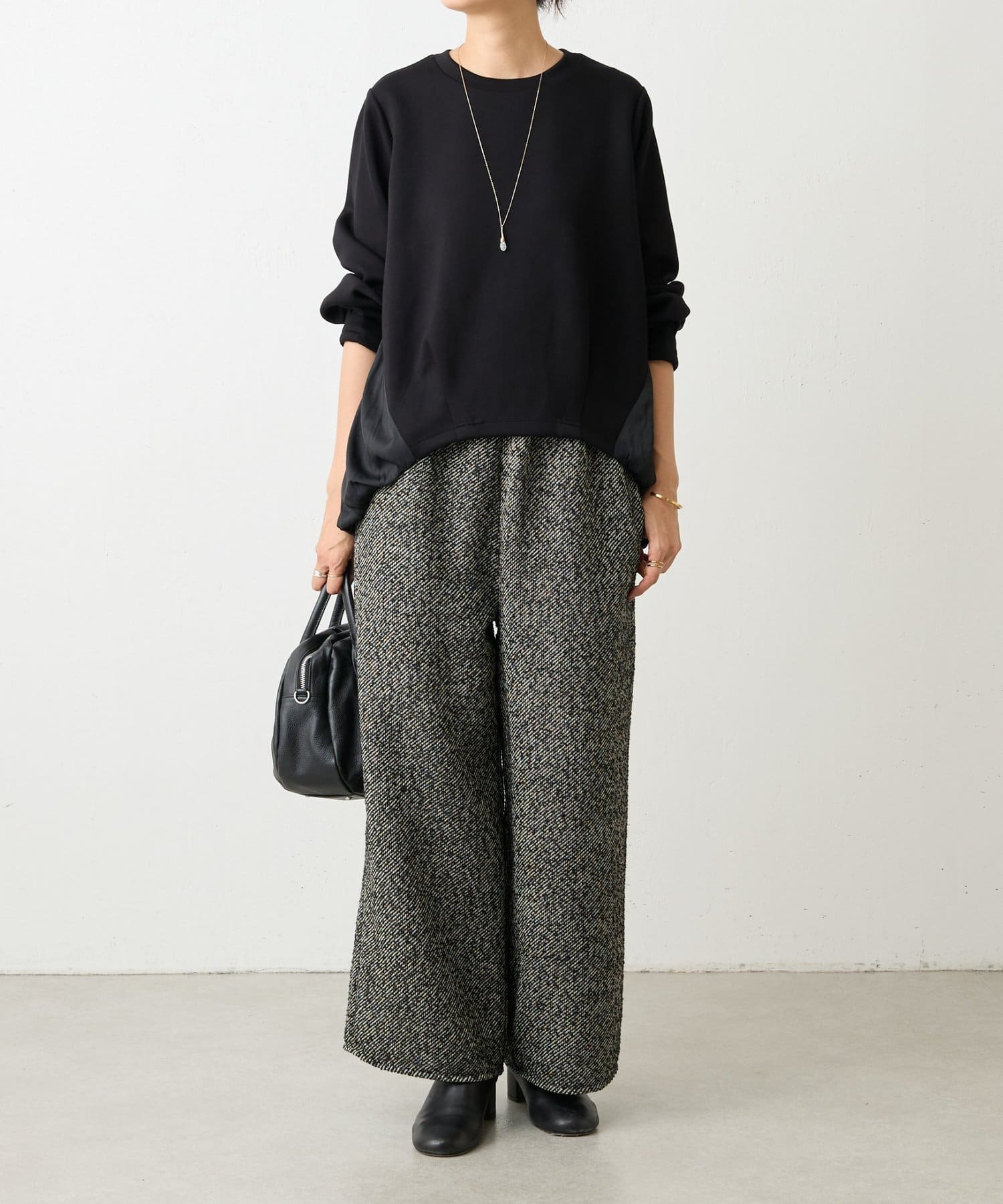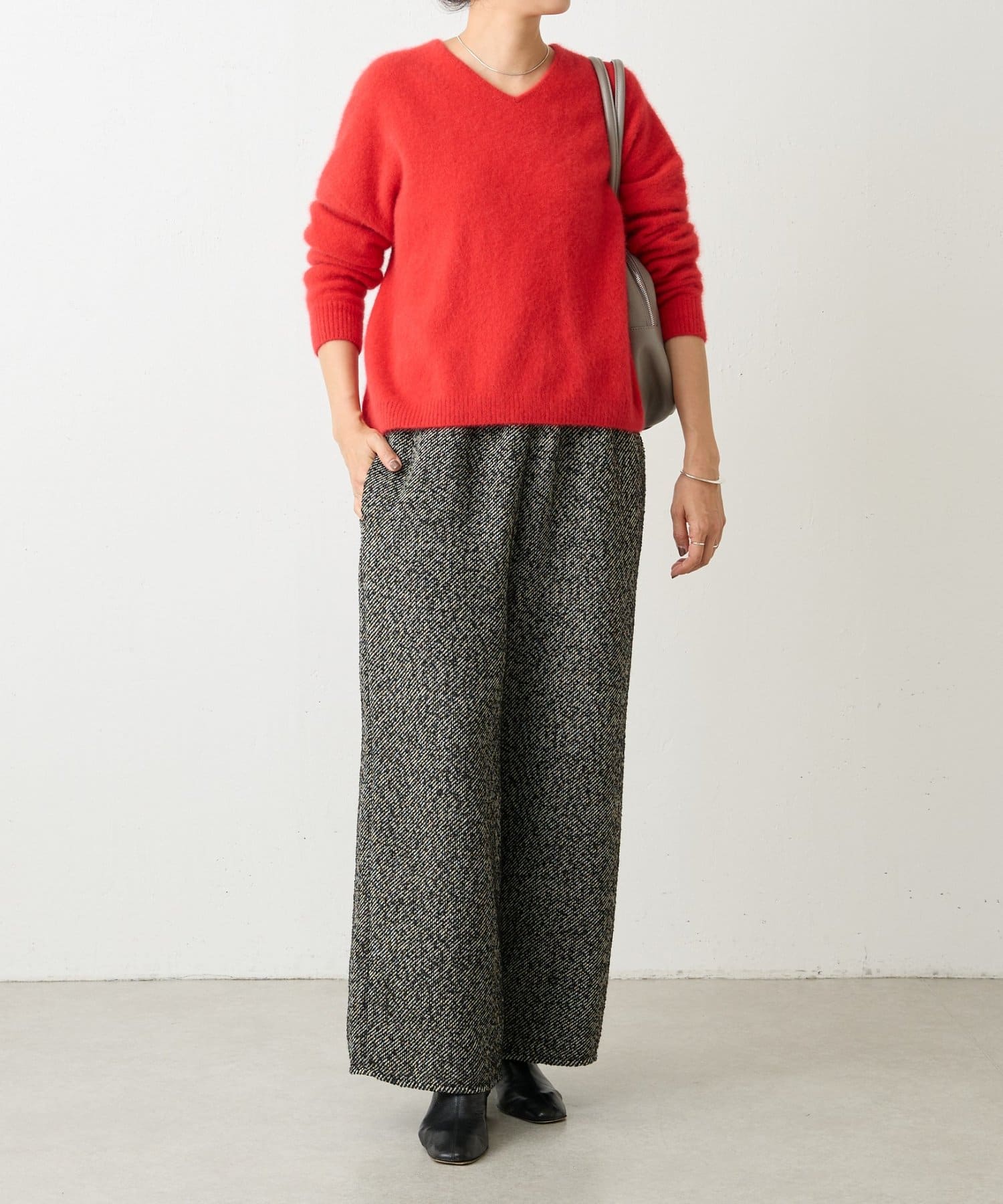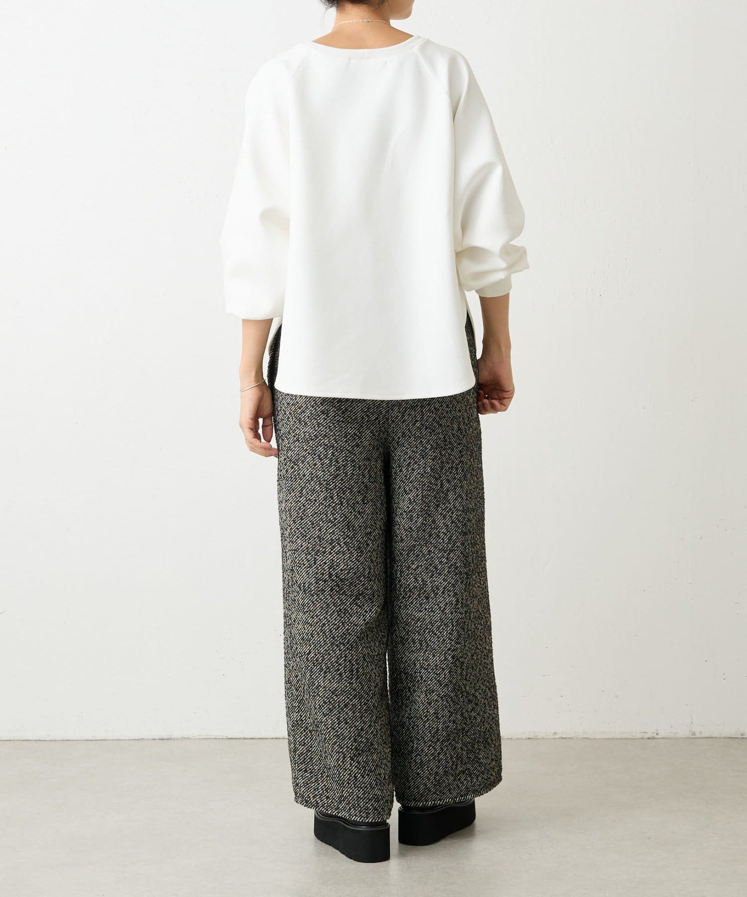 リラックス感のあるシルエットながら、ツイードの上品さでカジュアルにもきれいめにも対応。