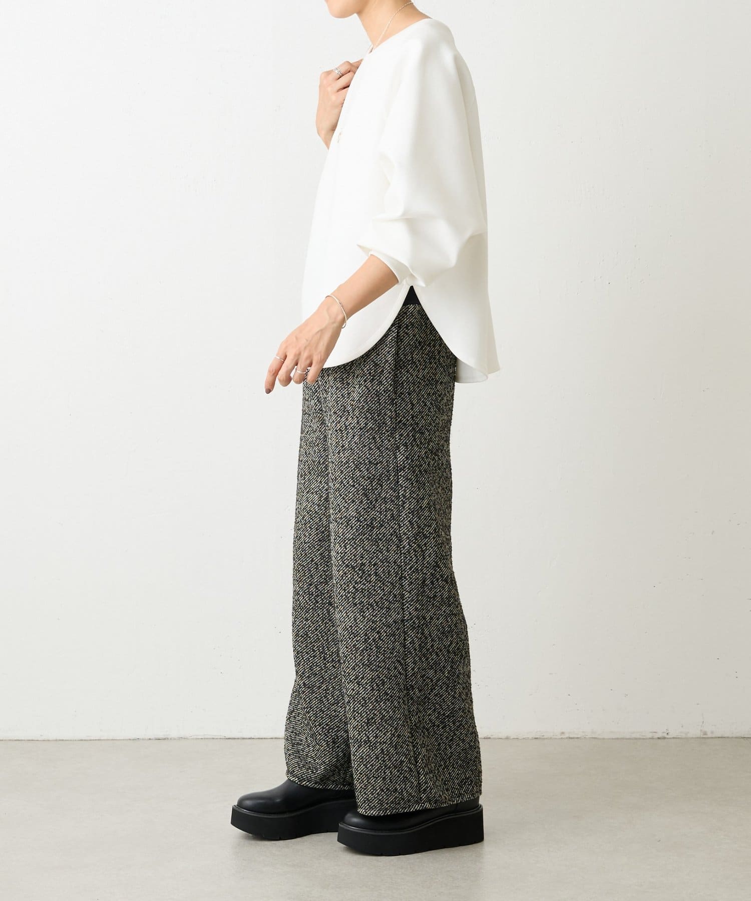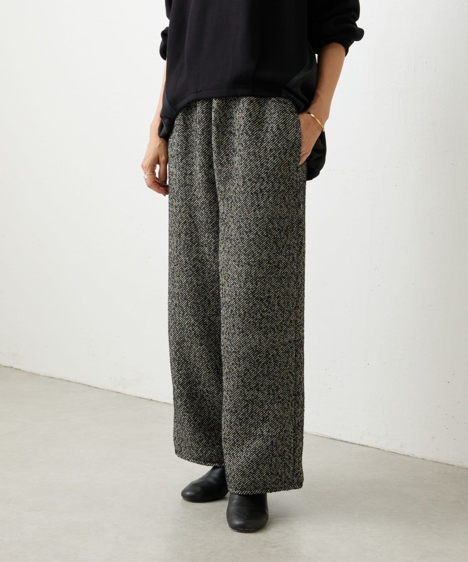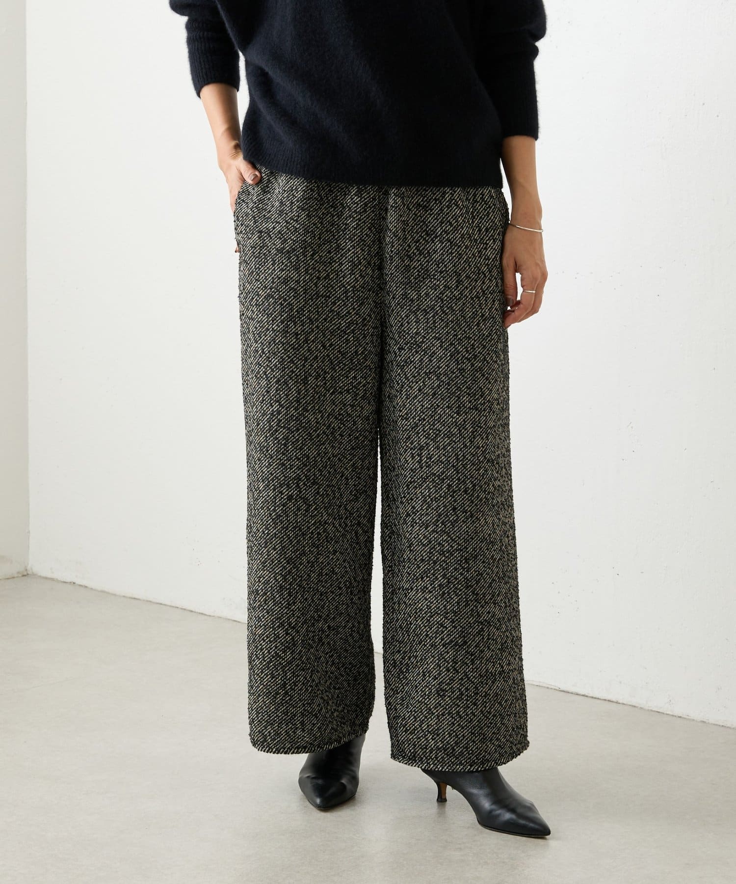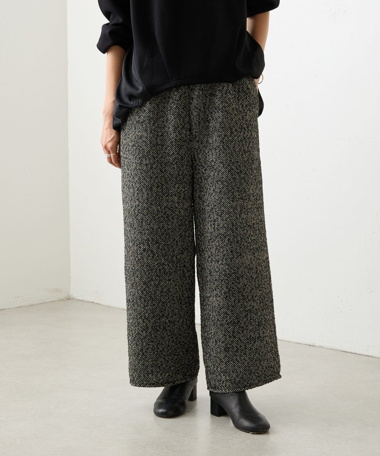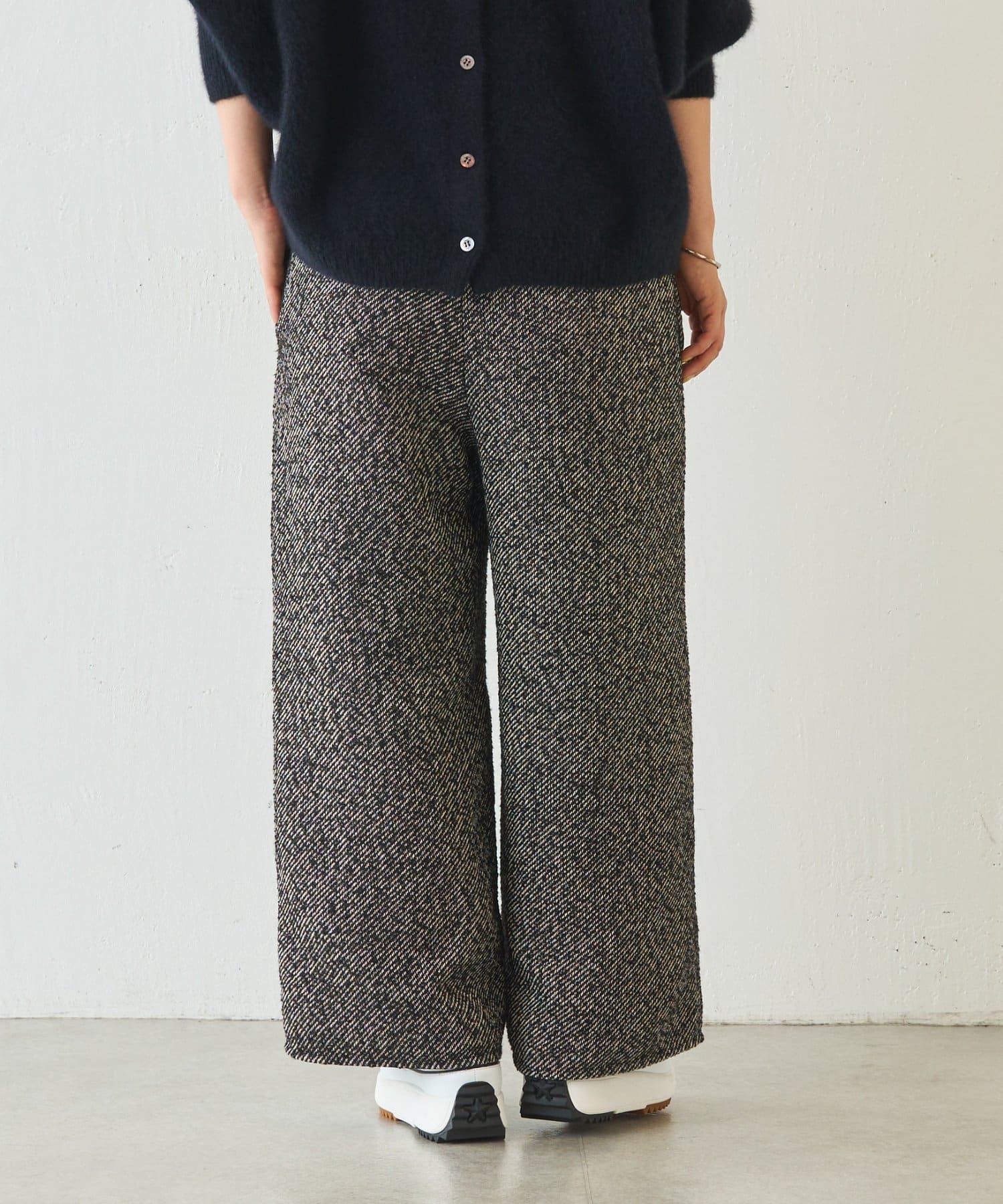 ざっくりとした表情が魅力のカルゼツイード素材で仕立てた、シーズンムード高まるワイドパンツ。