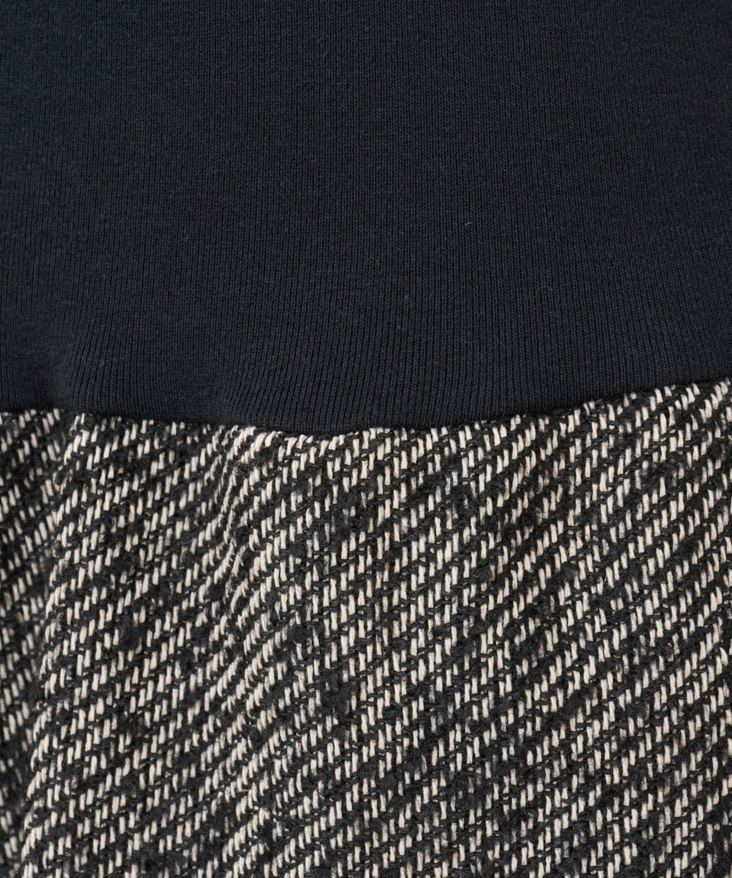 オフホワイトとブラックの糸を織り交ぜた斜めの織り模様が、奥行きのある風合いを演出します。