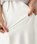 細やかなギャザーで腰回りも広がらず、ドロストコードでサイズ調整もできるので幅広いスタイルの方におすすめできます。