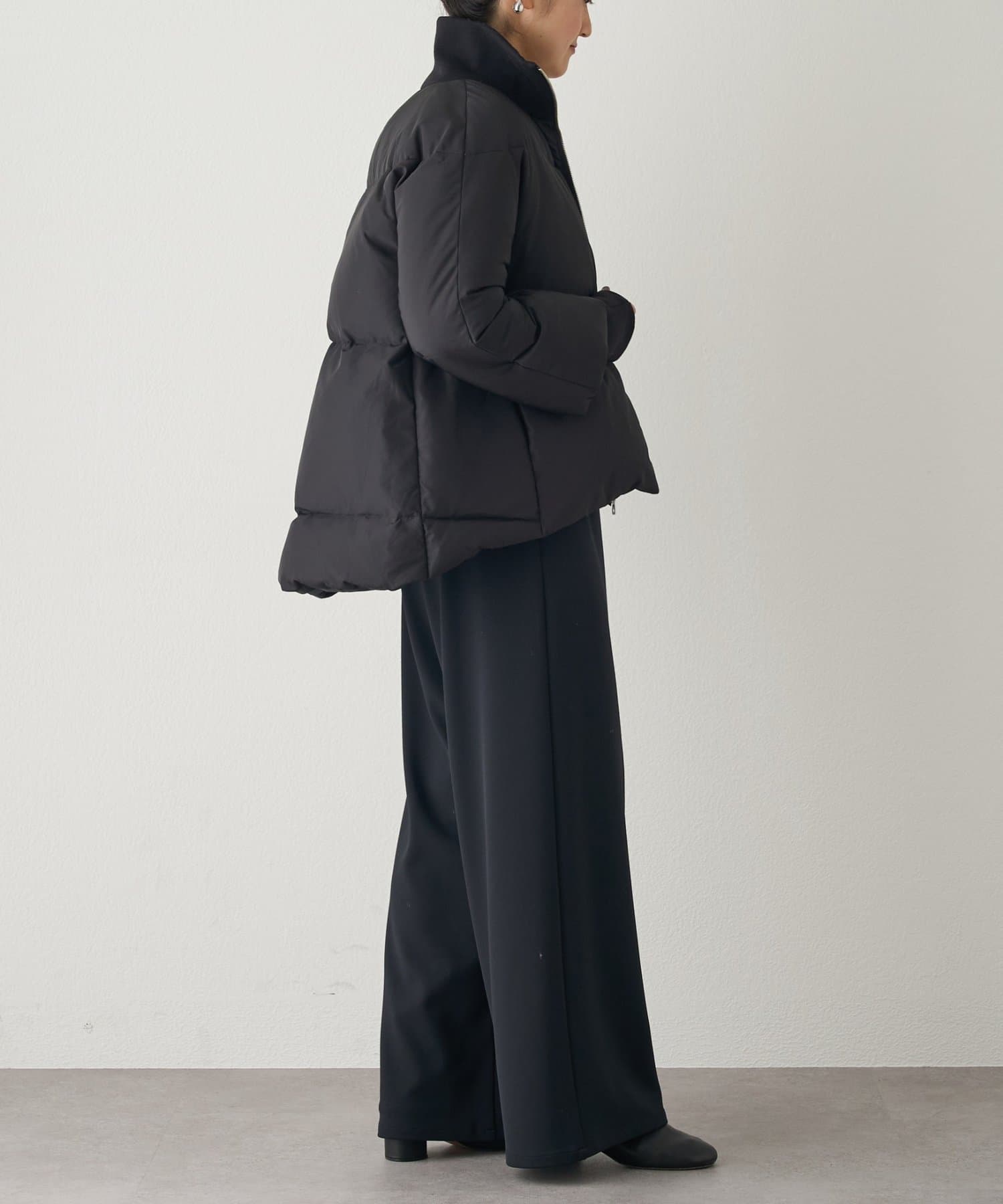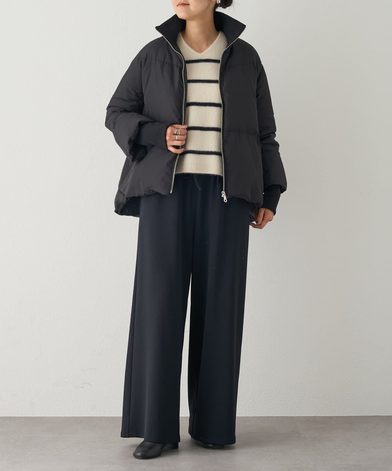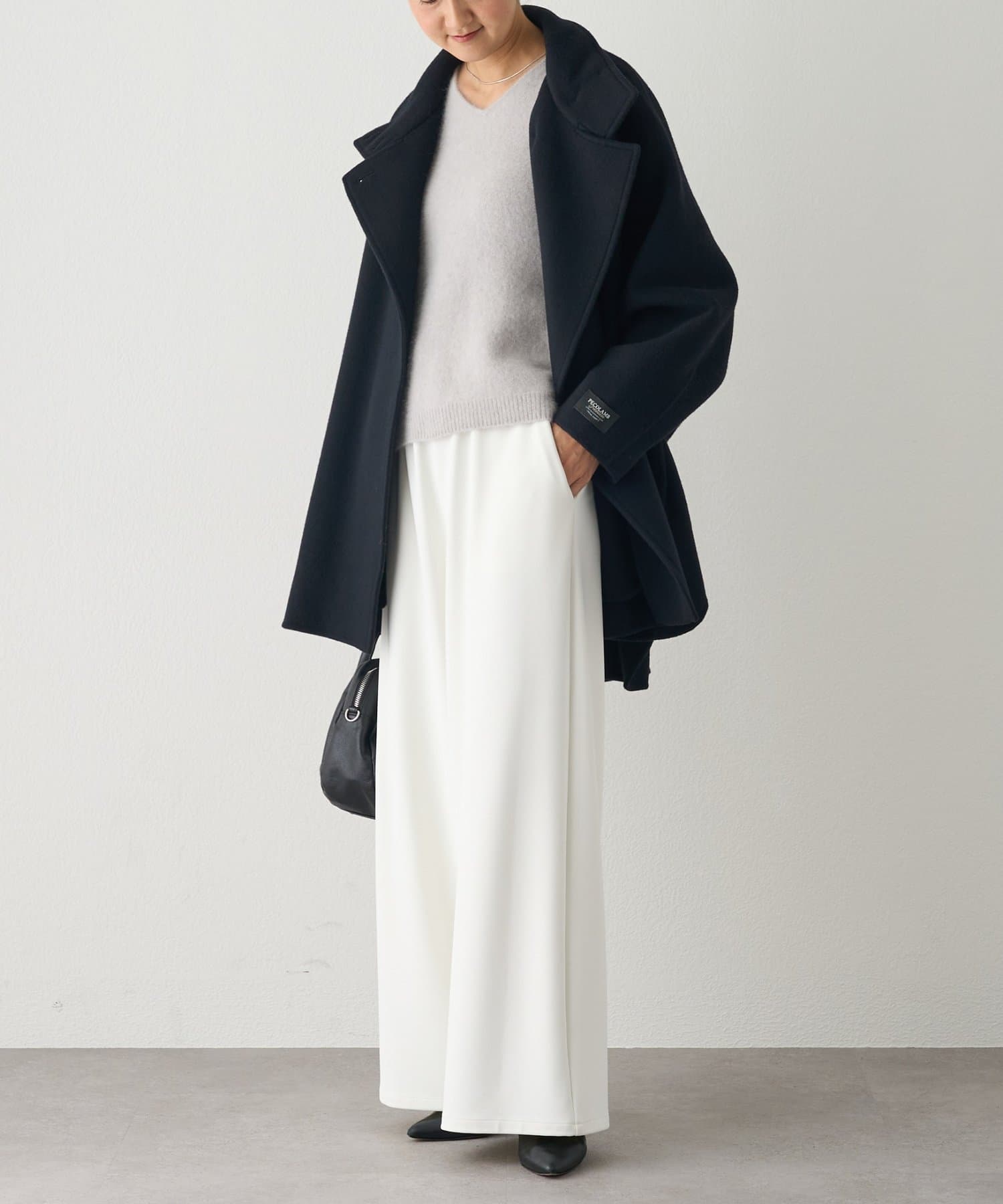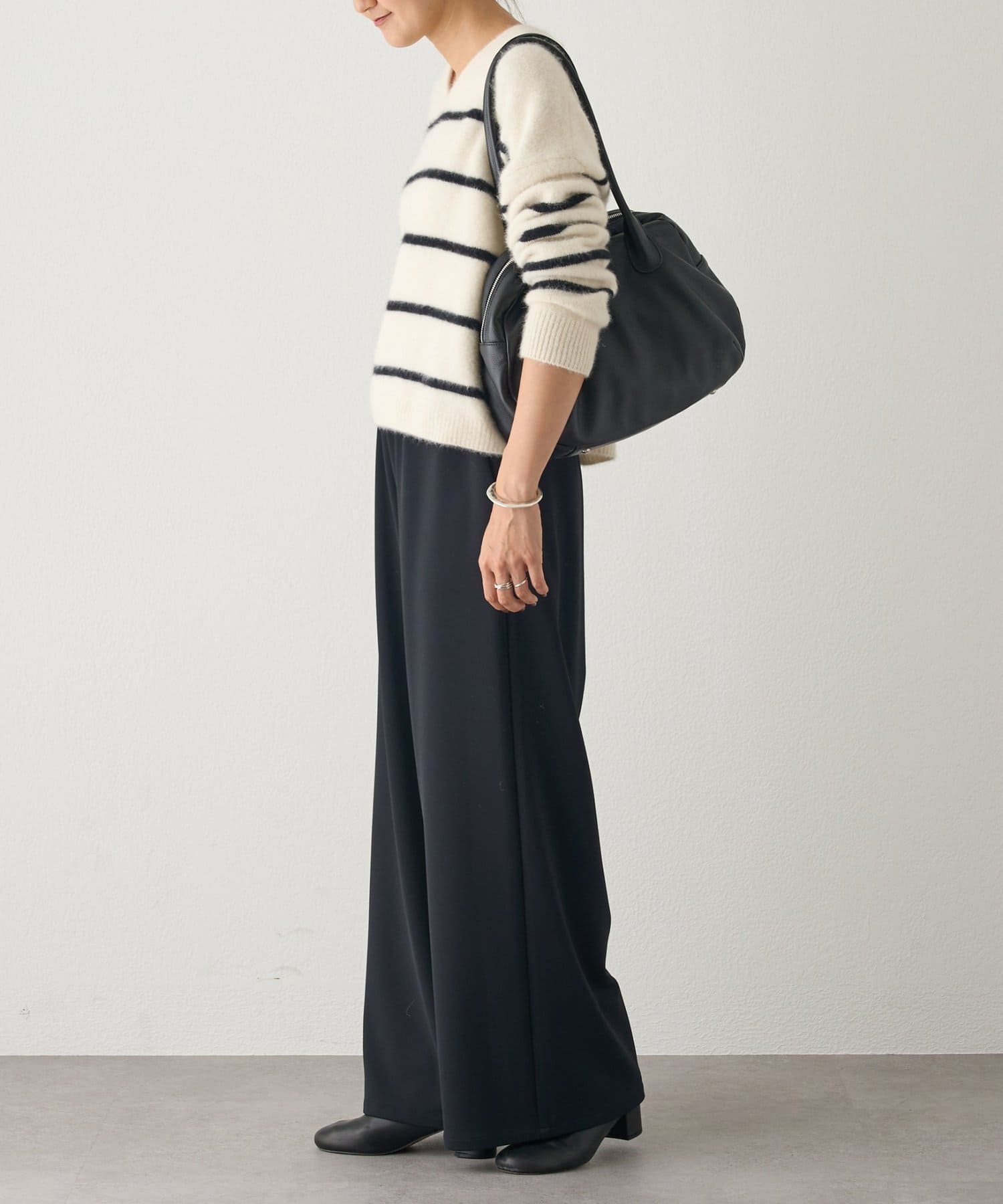 程よく幅広なパンツはショート丈のトップスやミドル丈のトップスとのコーディネートがバランスよくおすすめです。