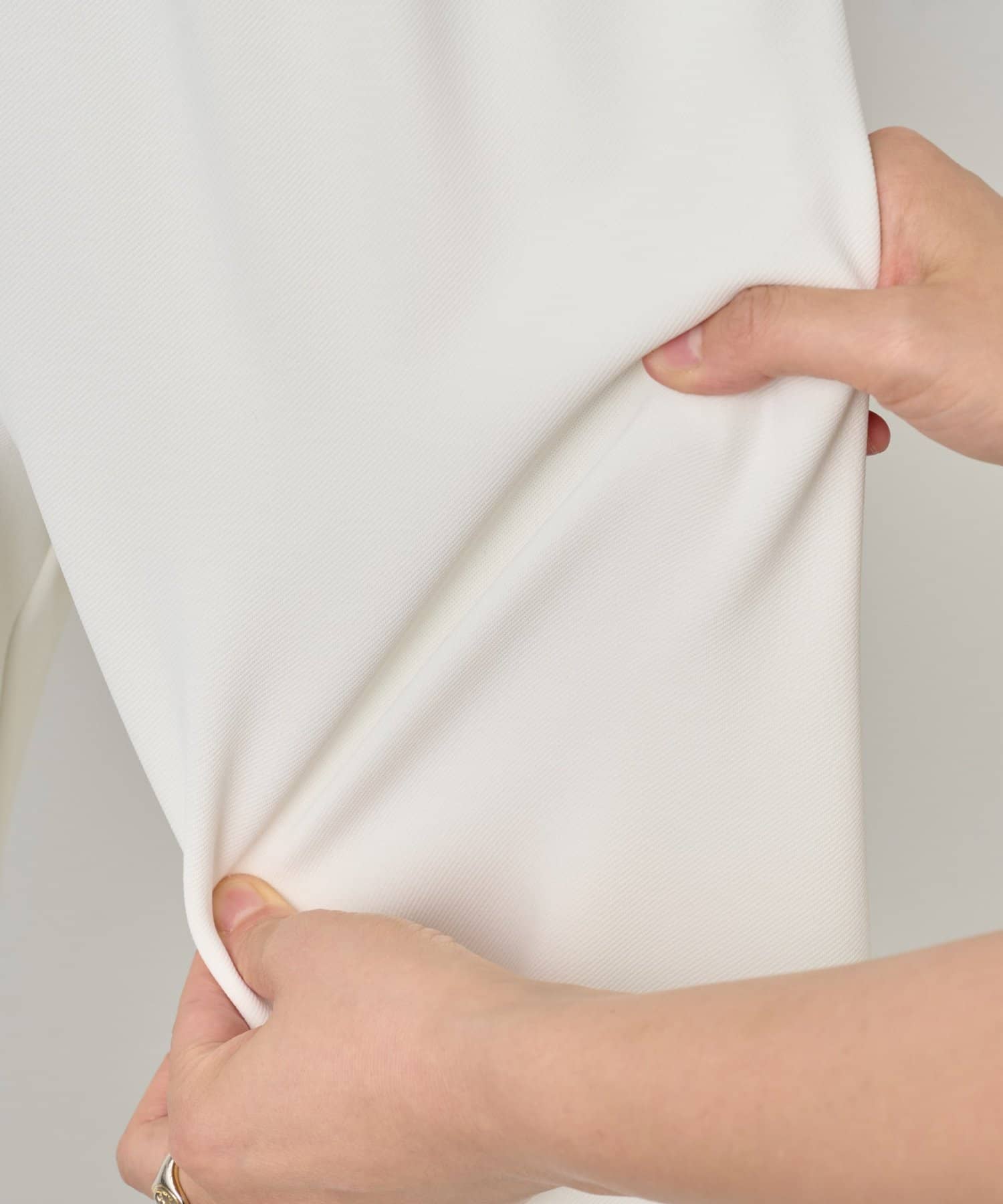 ニット素材でありながら、布帛のような仕上がりでストレッチ性が高く柔らかで快適な穿き心地。