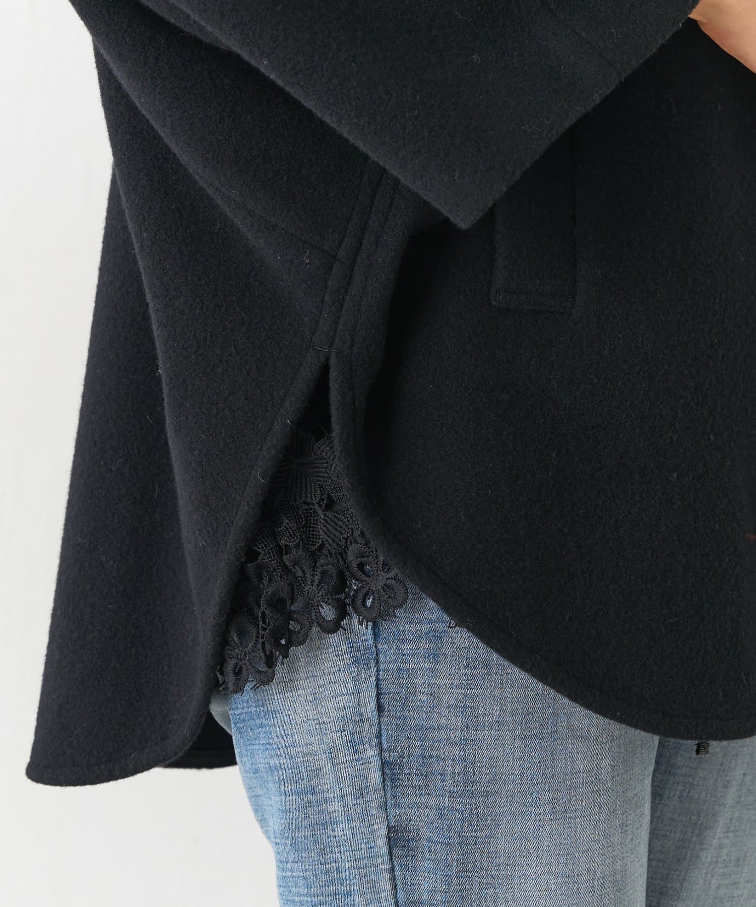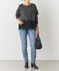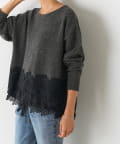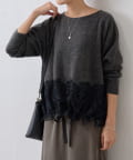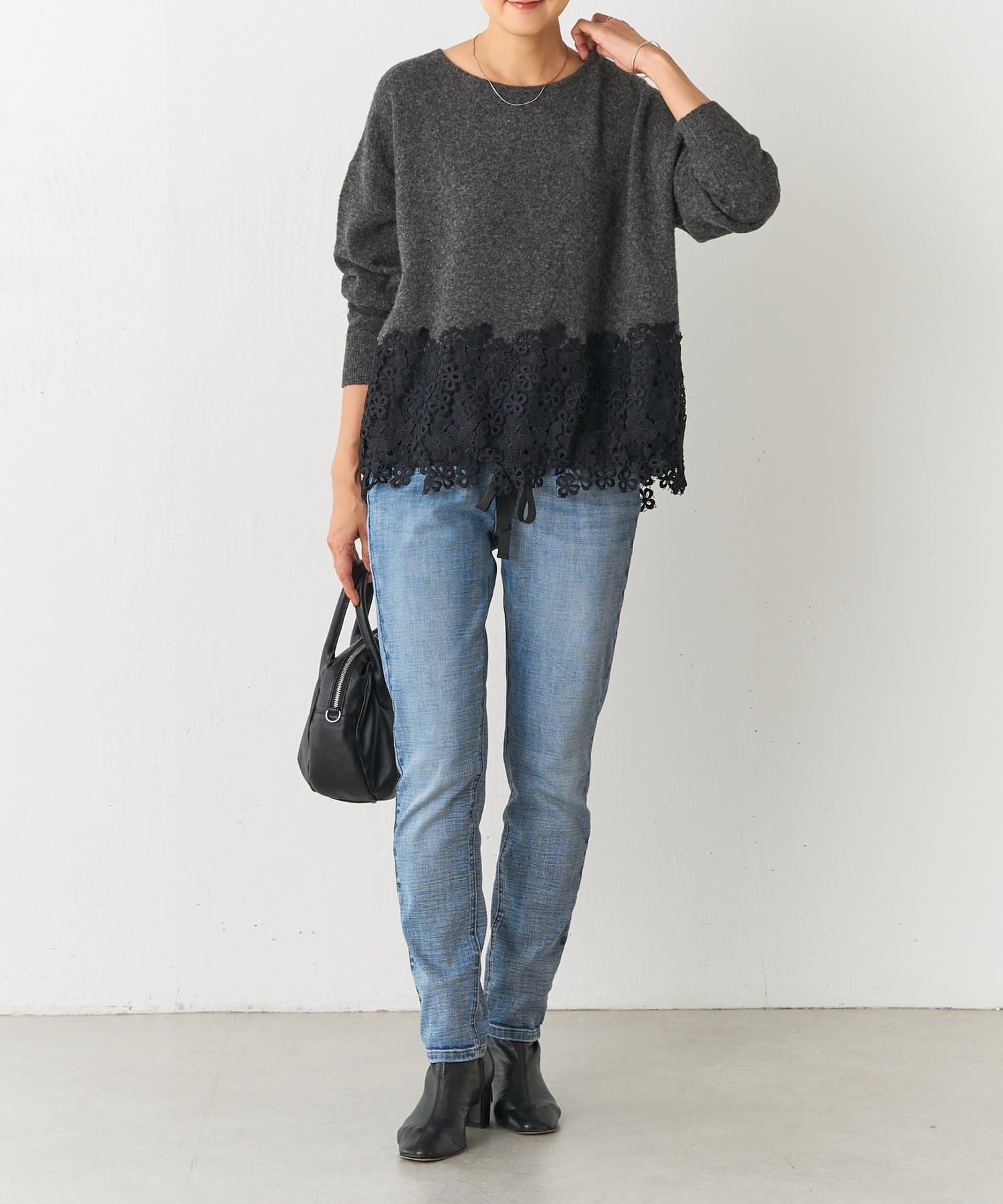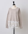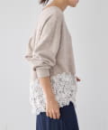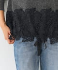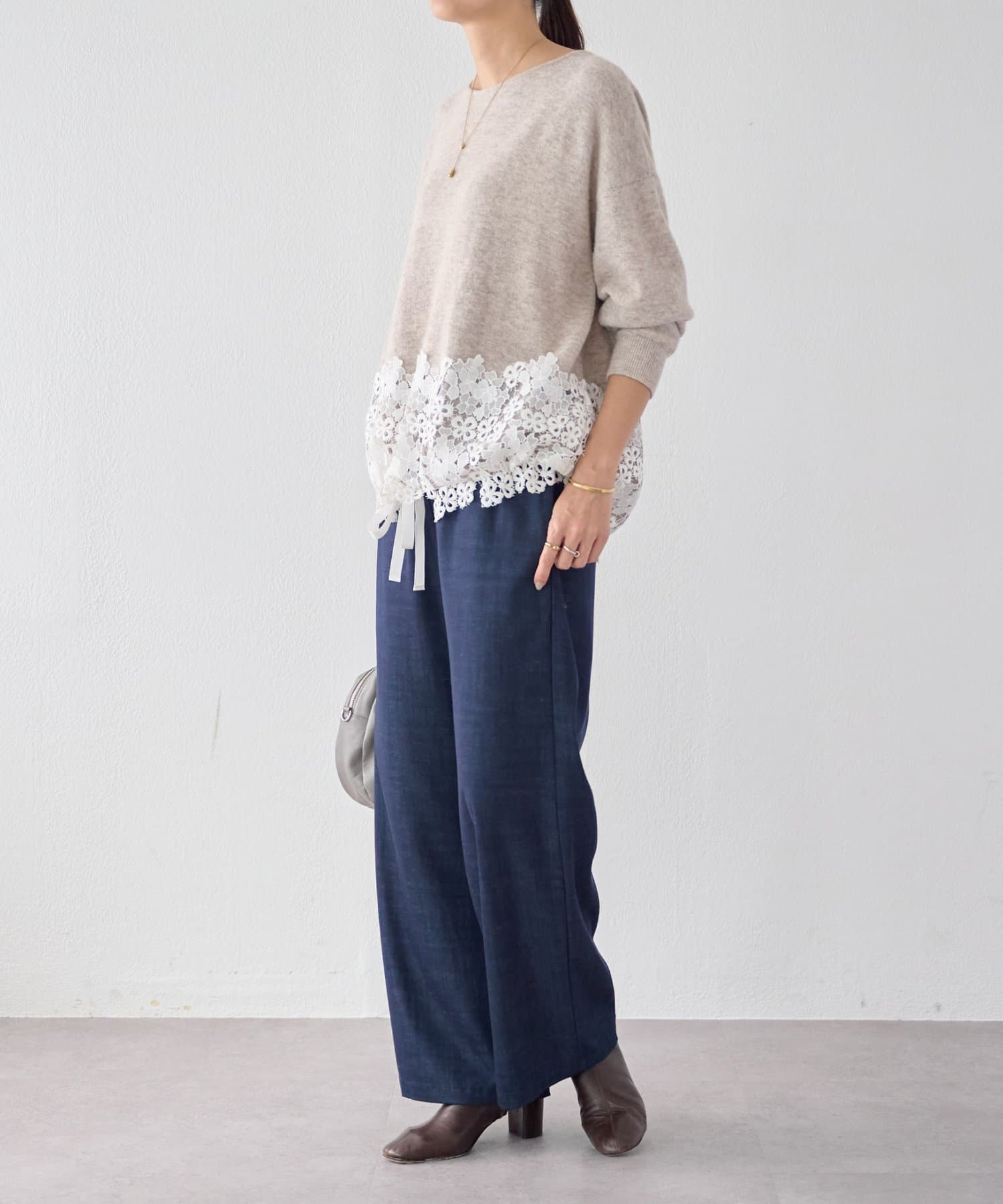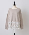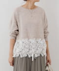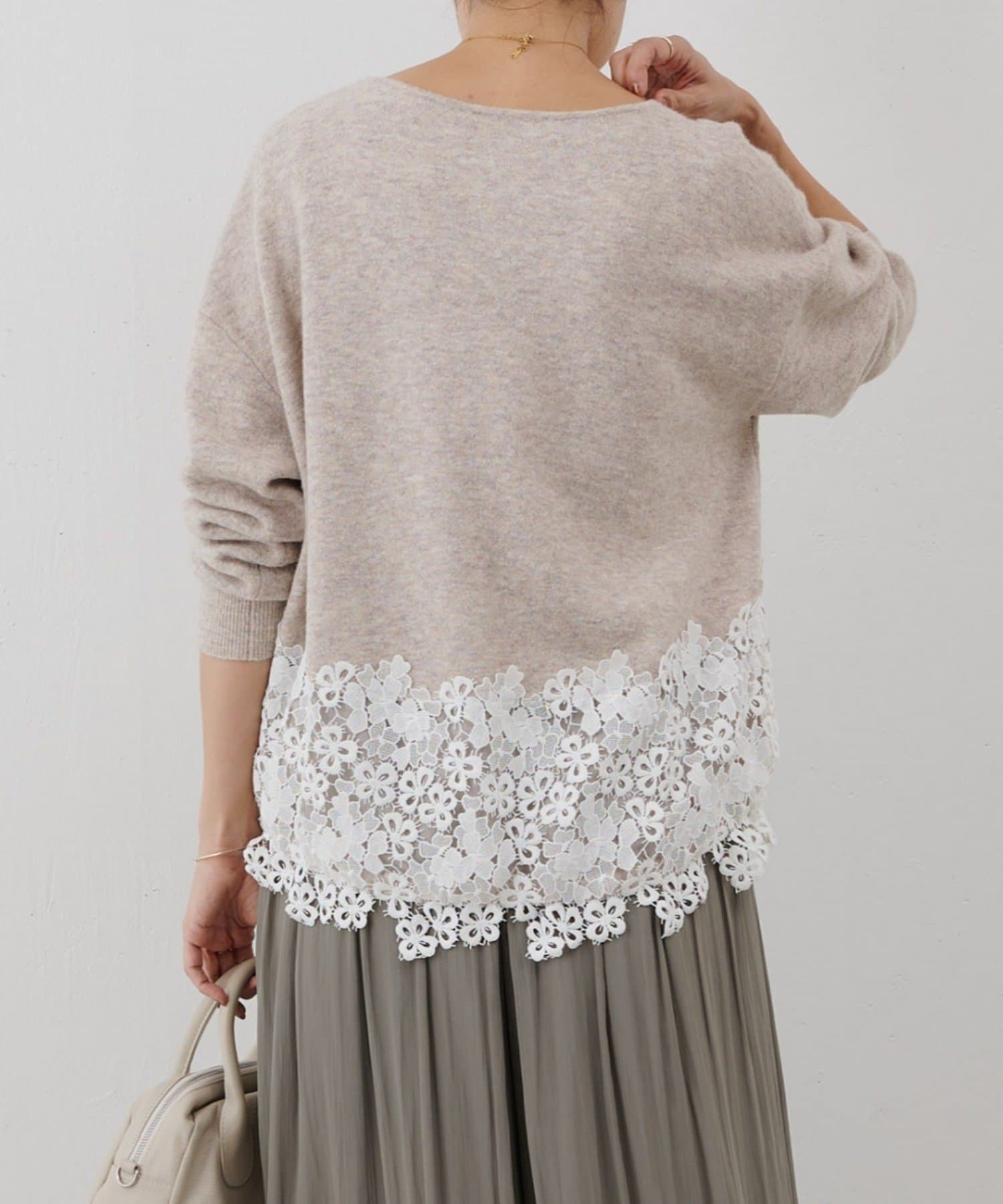裾に繊細なレースをあしらった、上品な印象のニットプルオーバー。