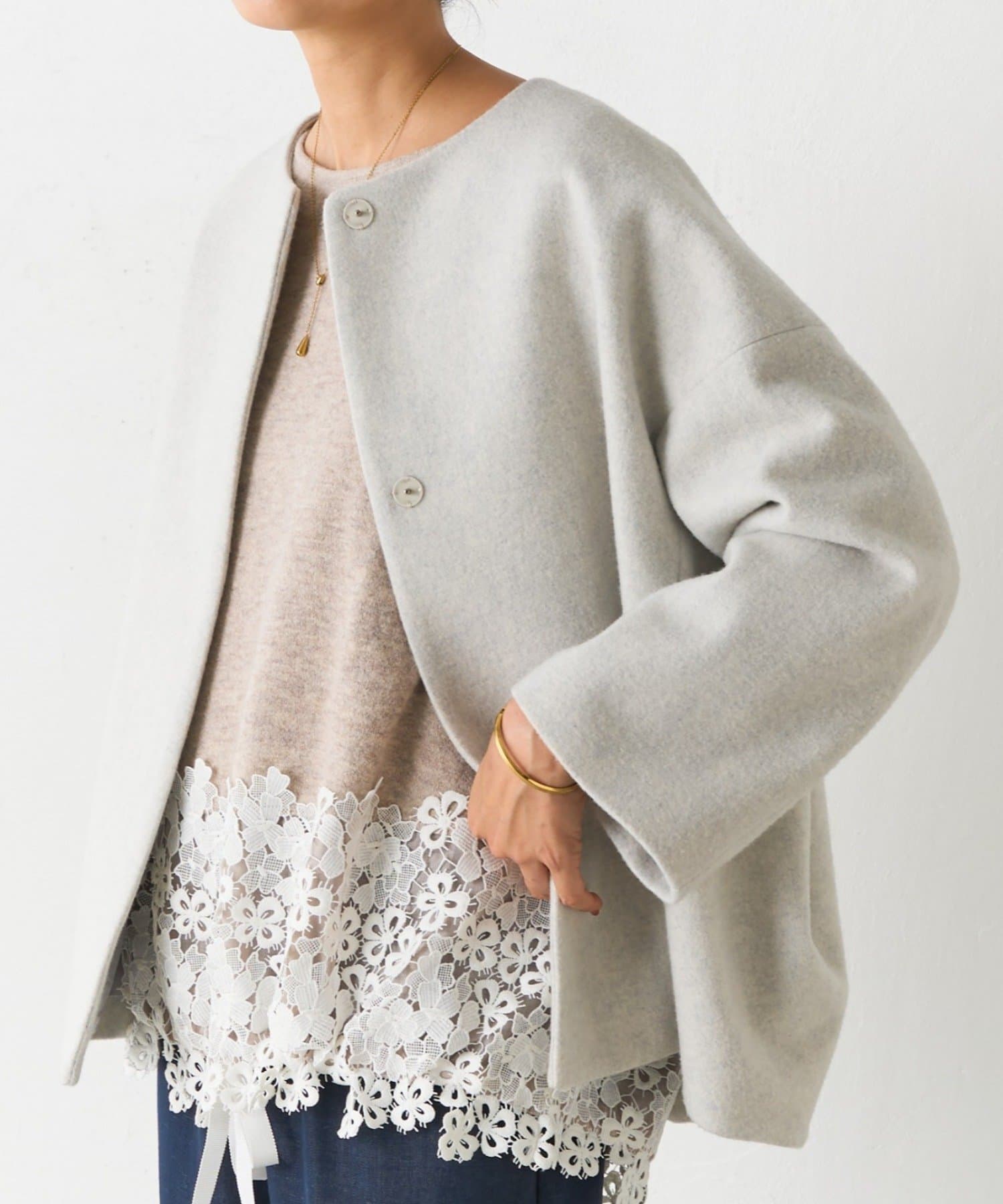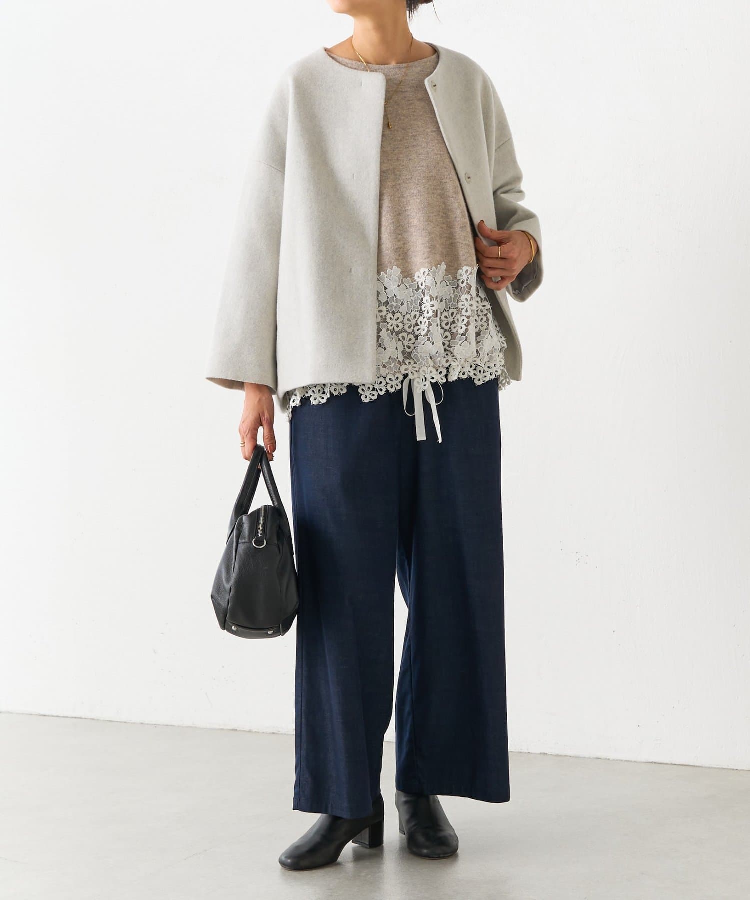 レースデザインならではの華やかさと、ニットの着やすさを兼ね備えた一枚です。