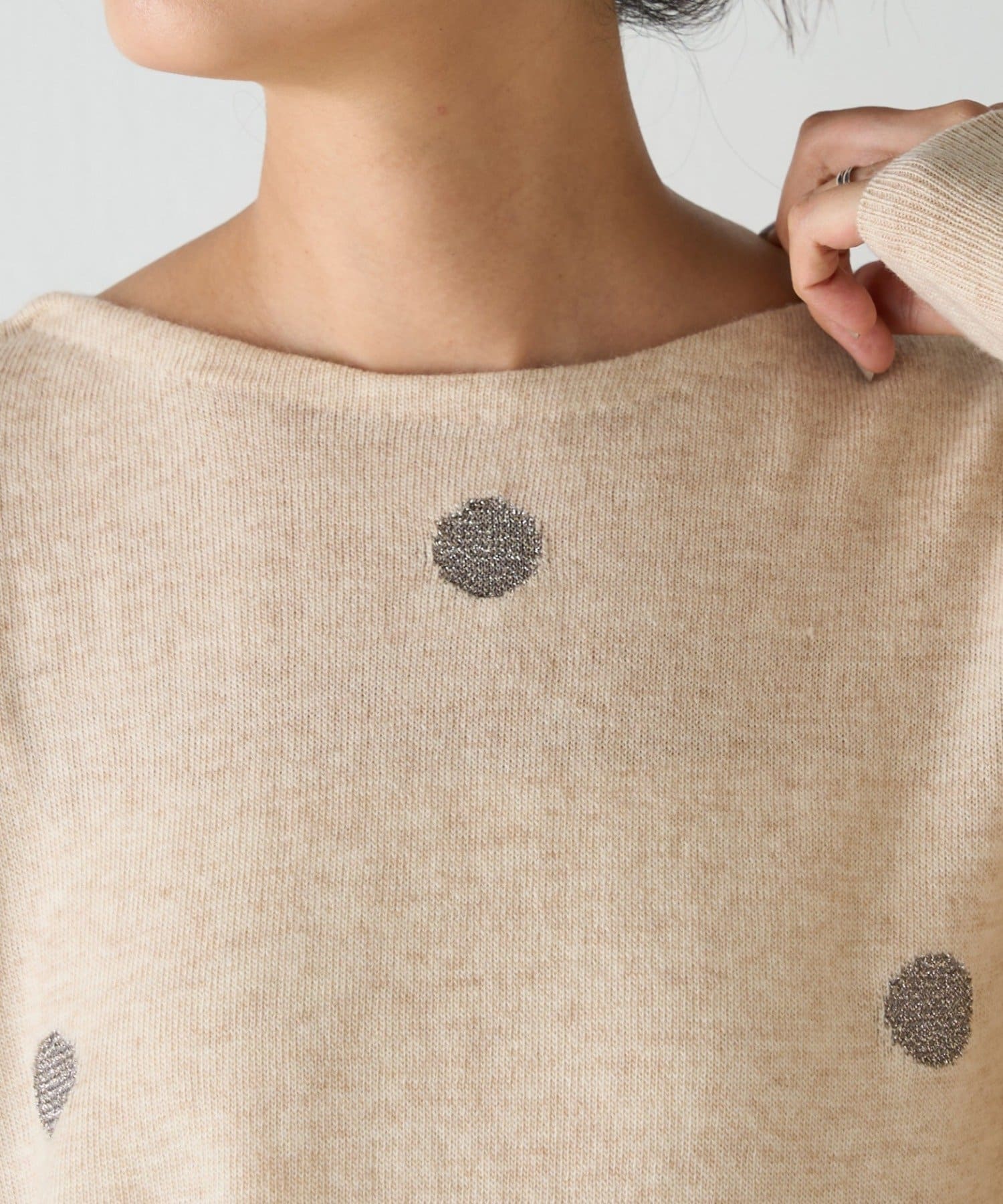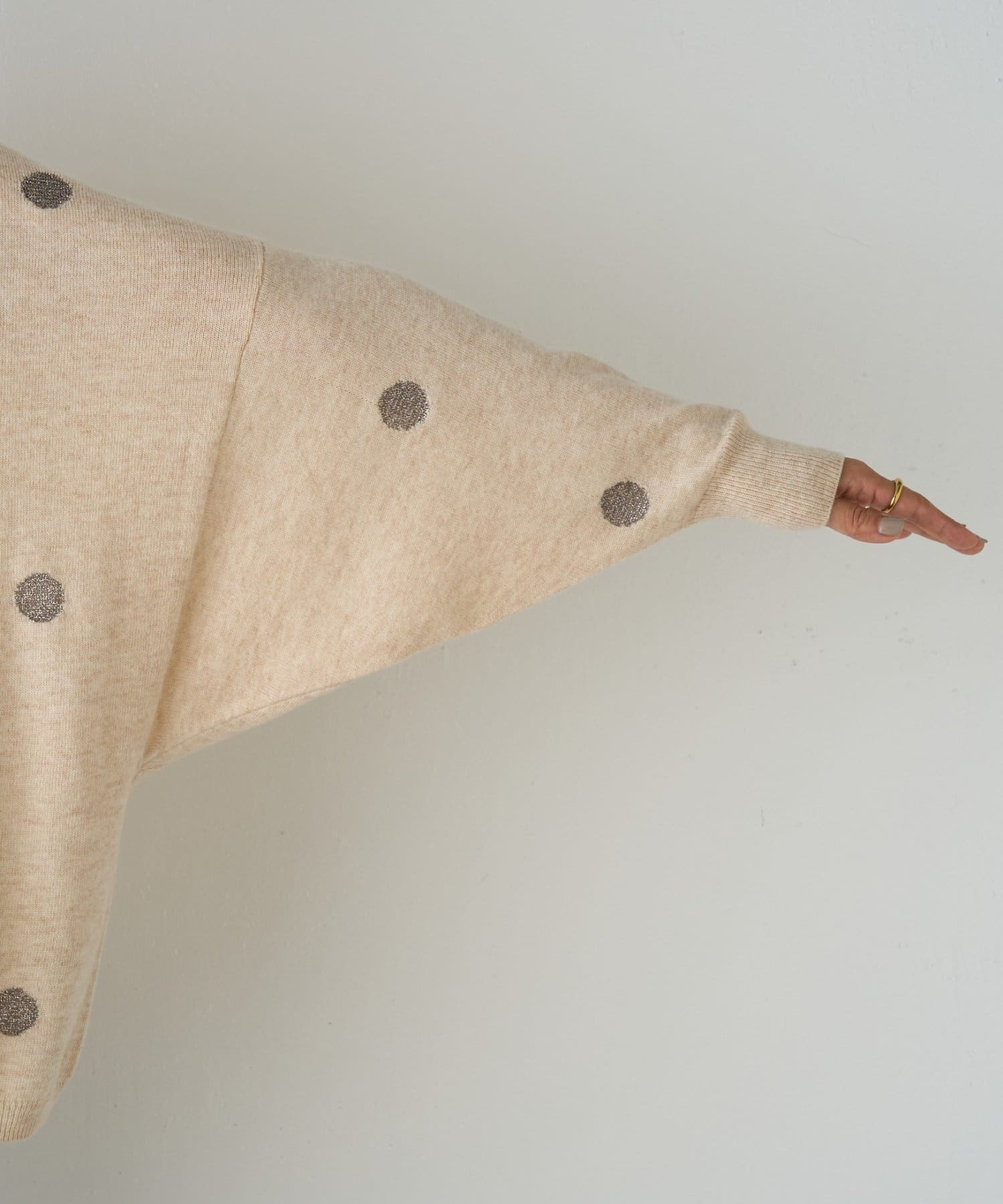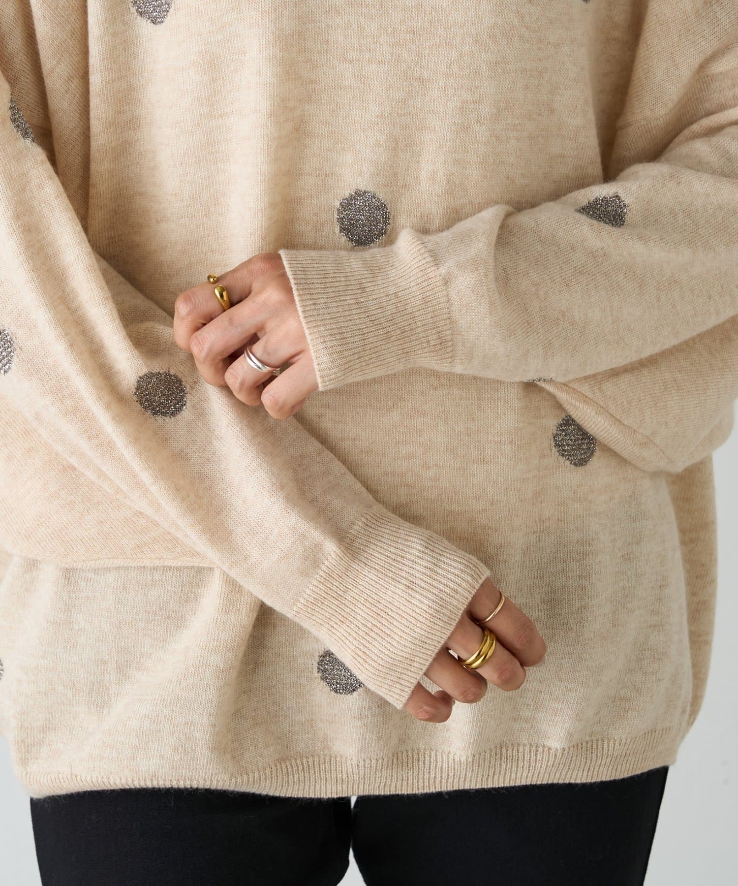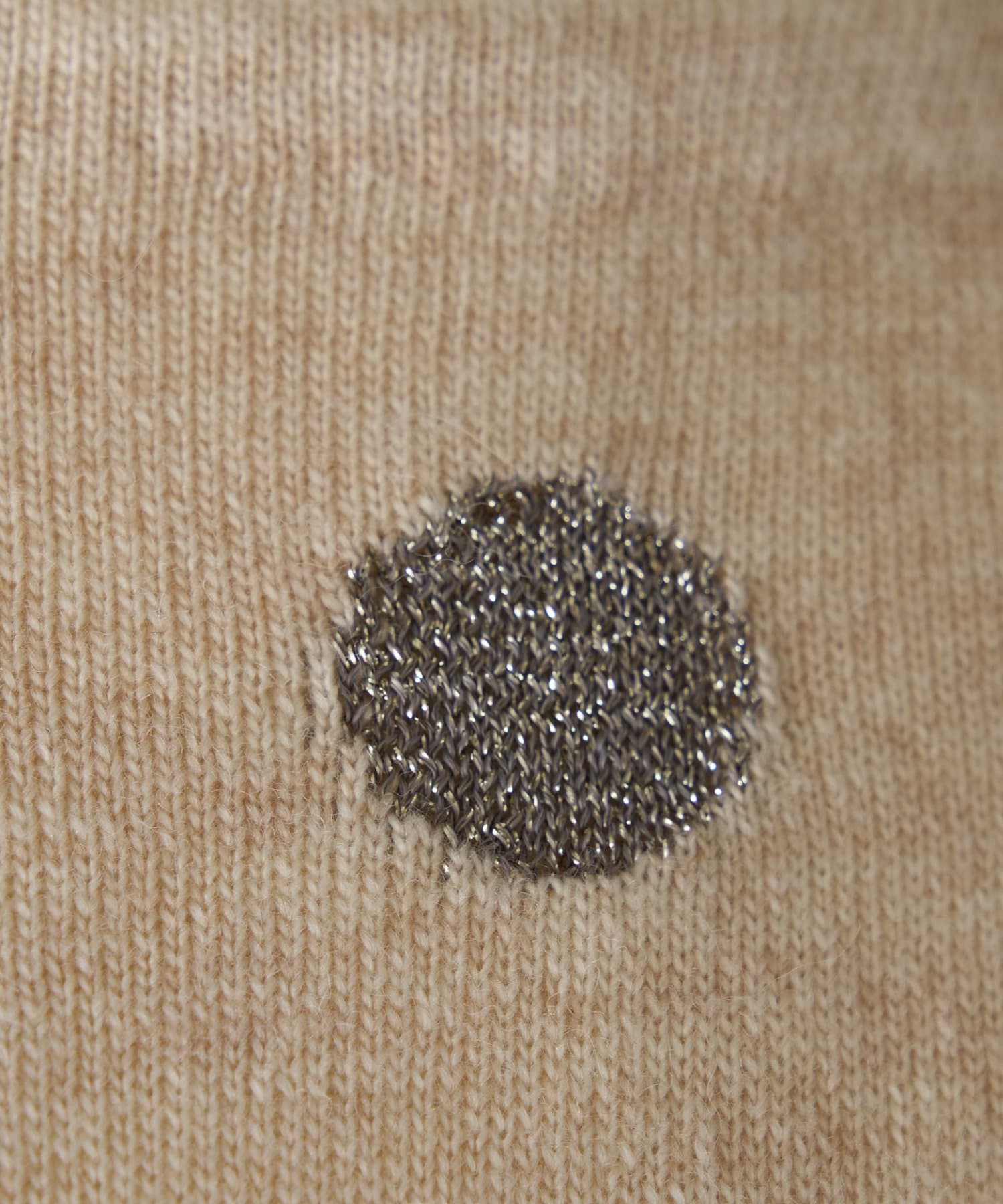 別色のラメ糸で編まれたドットが全体に散りばめられ、さりげないアクセントに。