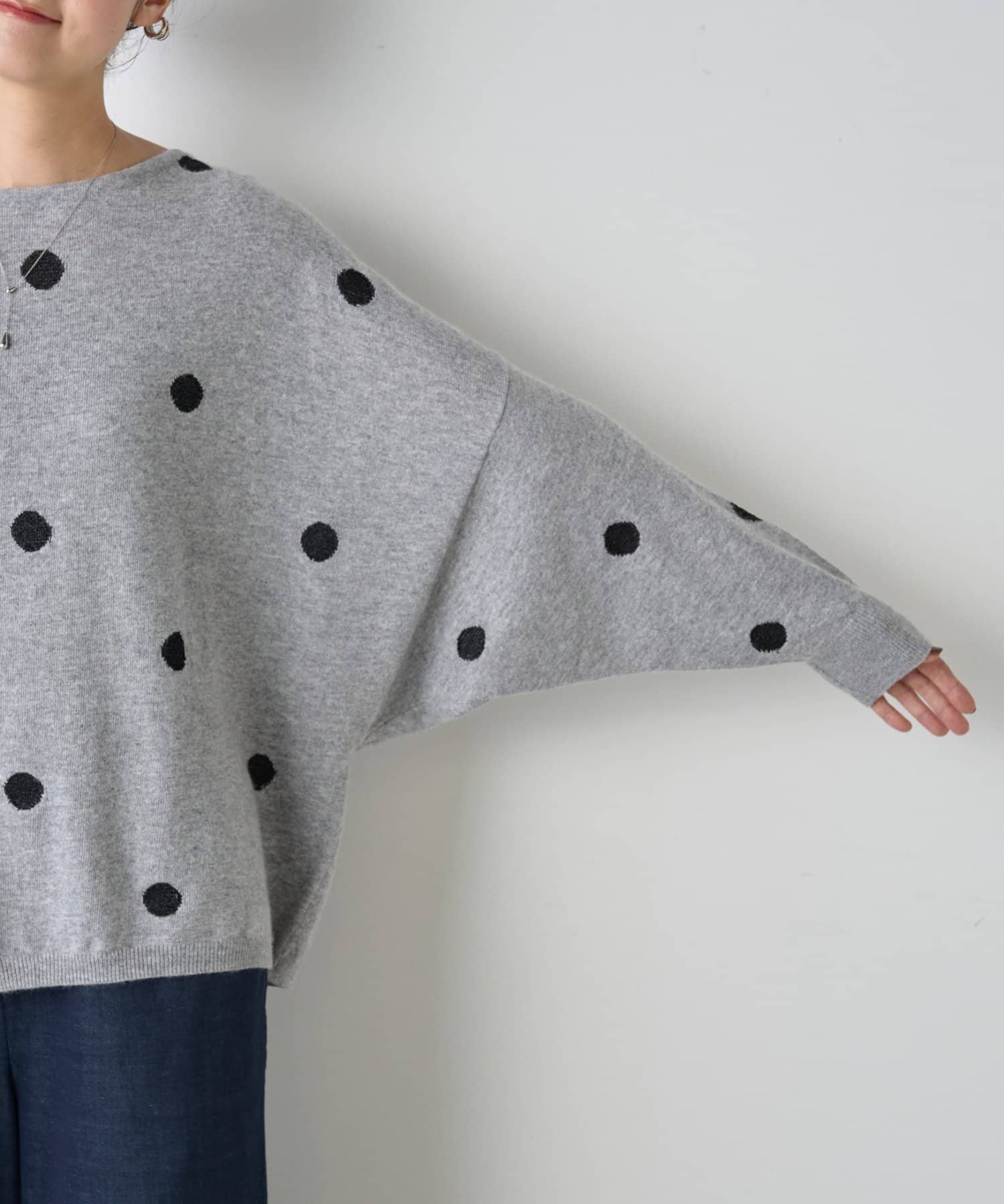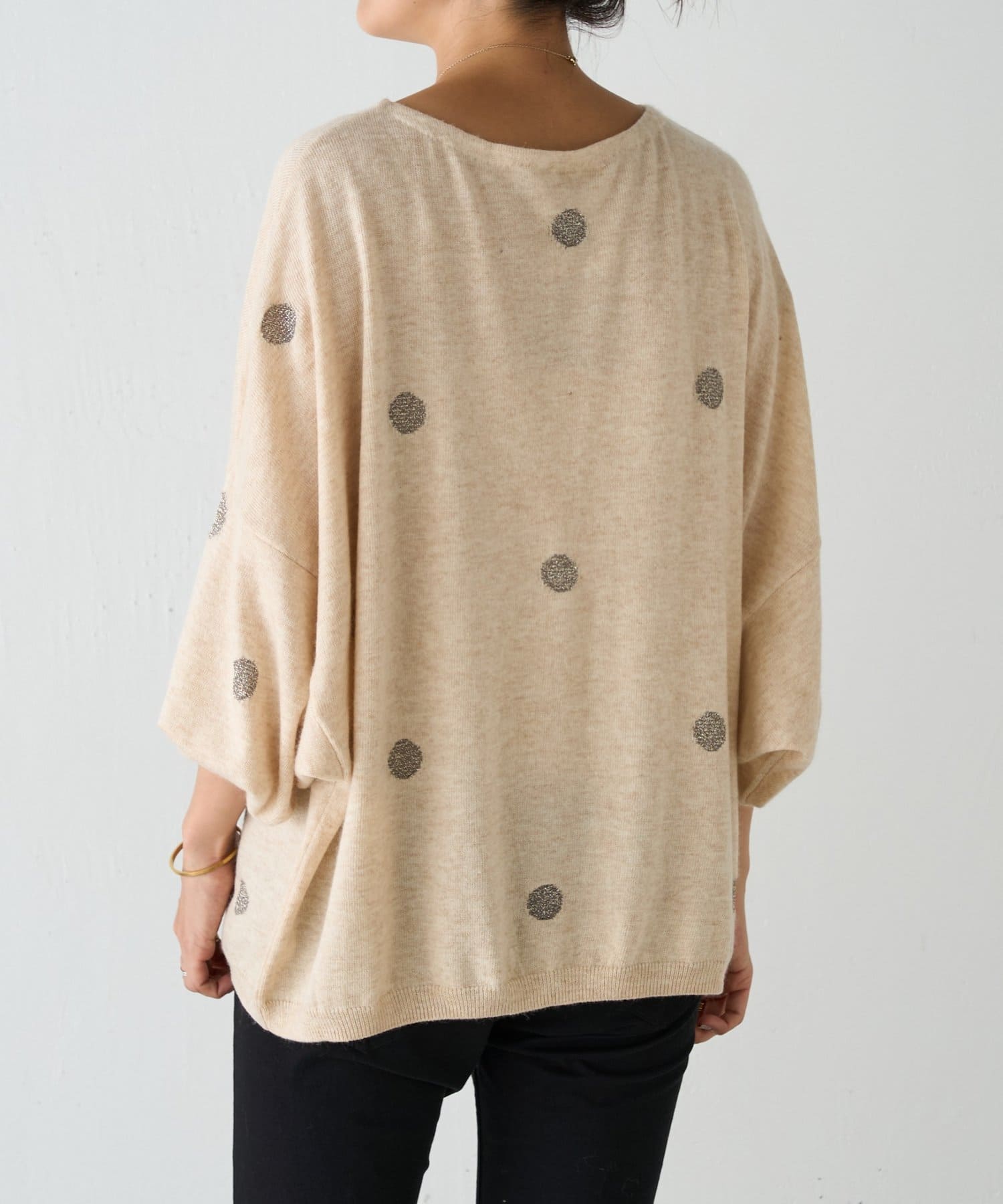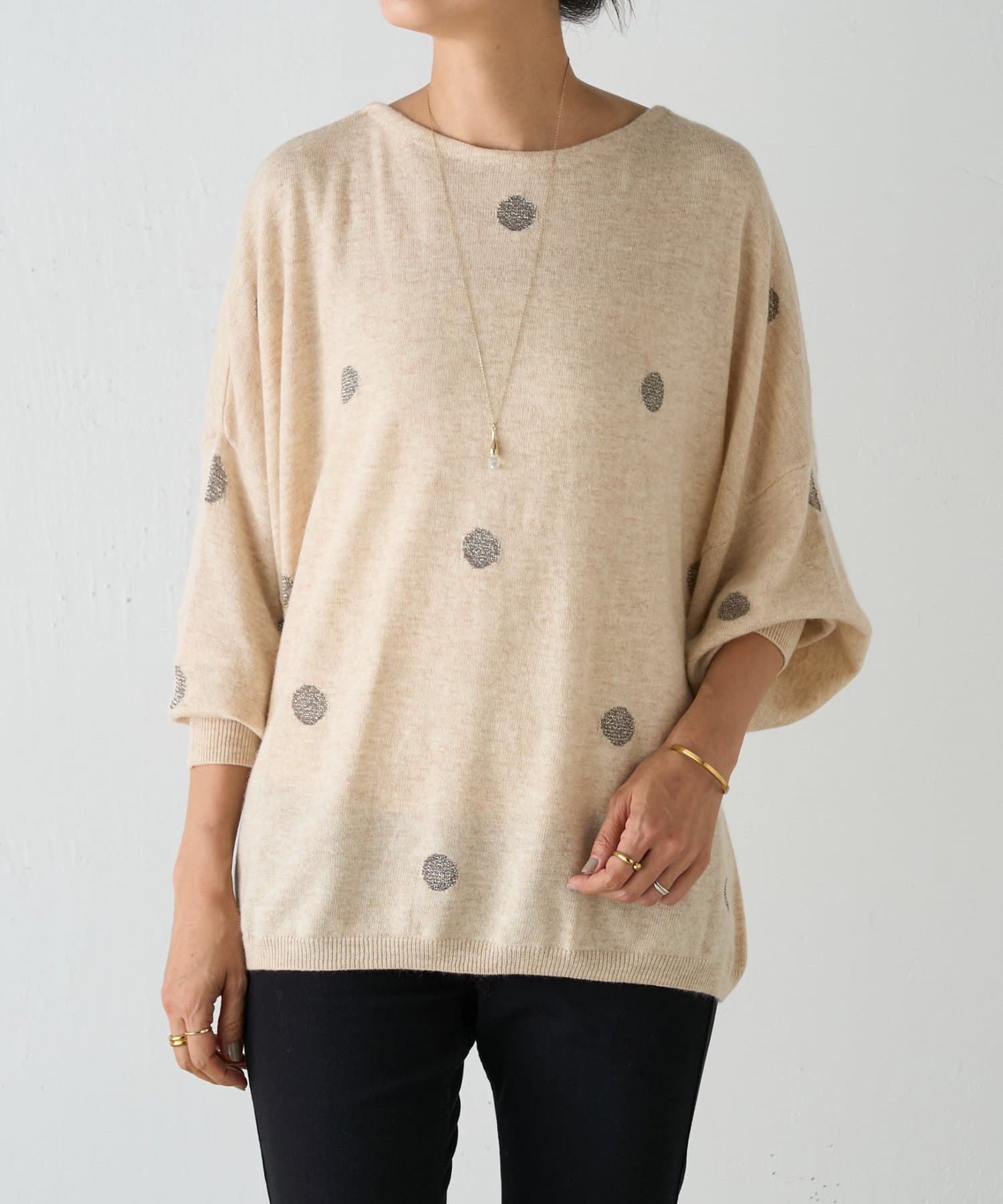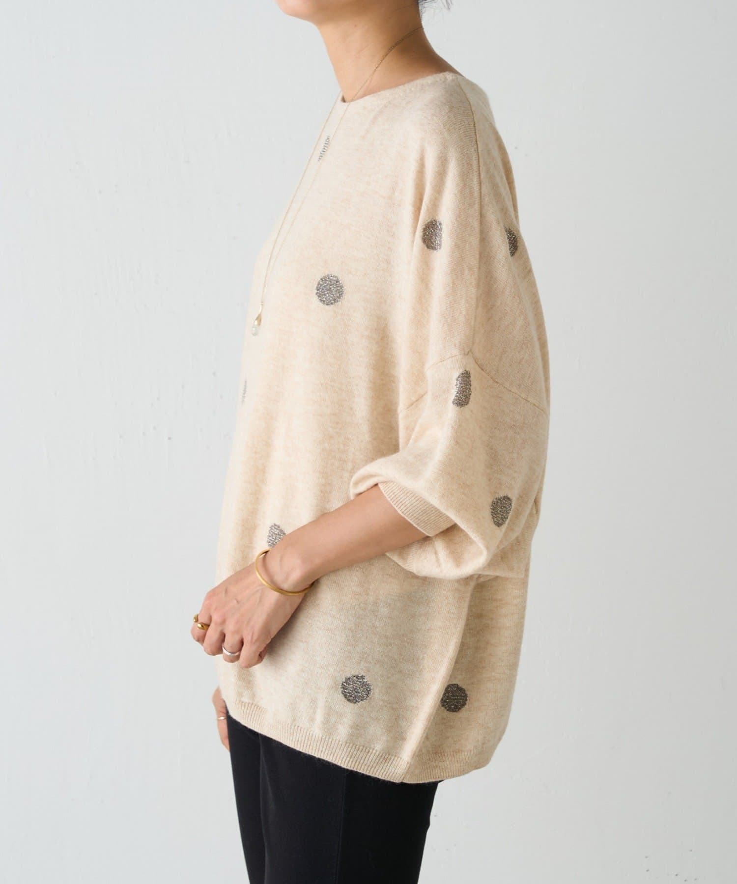 別色のラメ糸で編まれたドットが全体に散りばめられ、さりげないアクセントに。