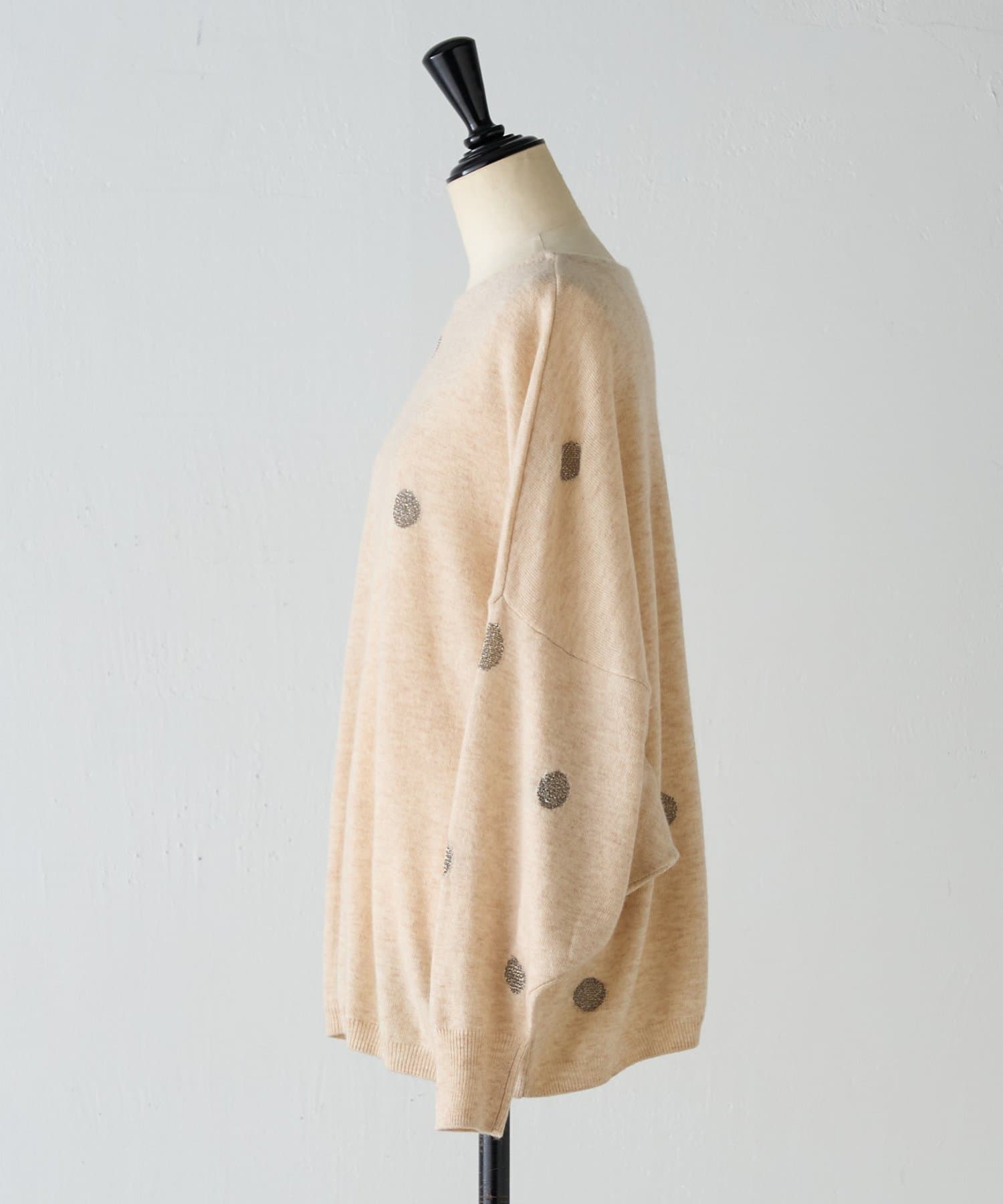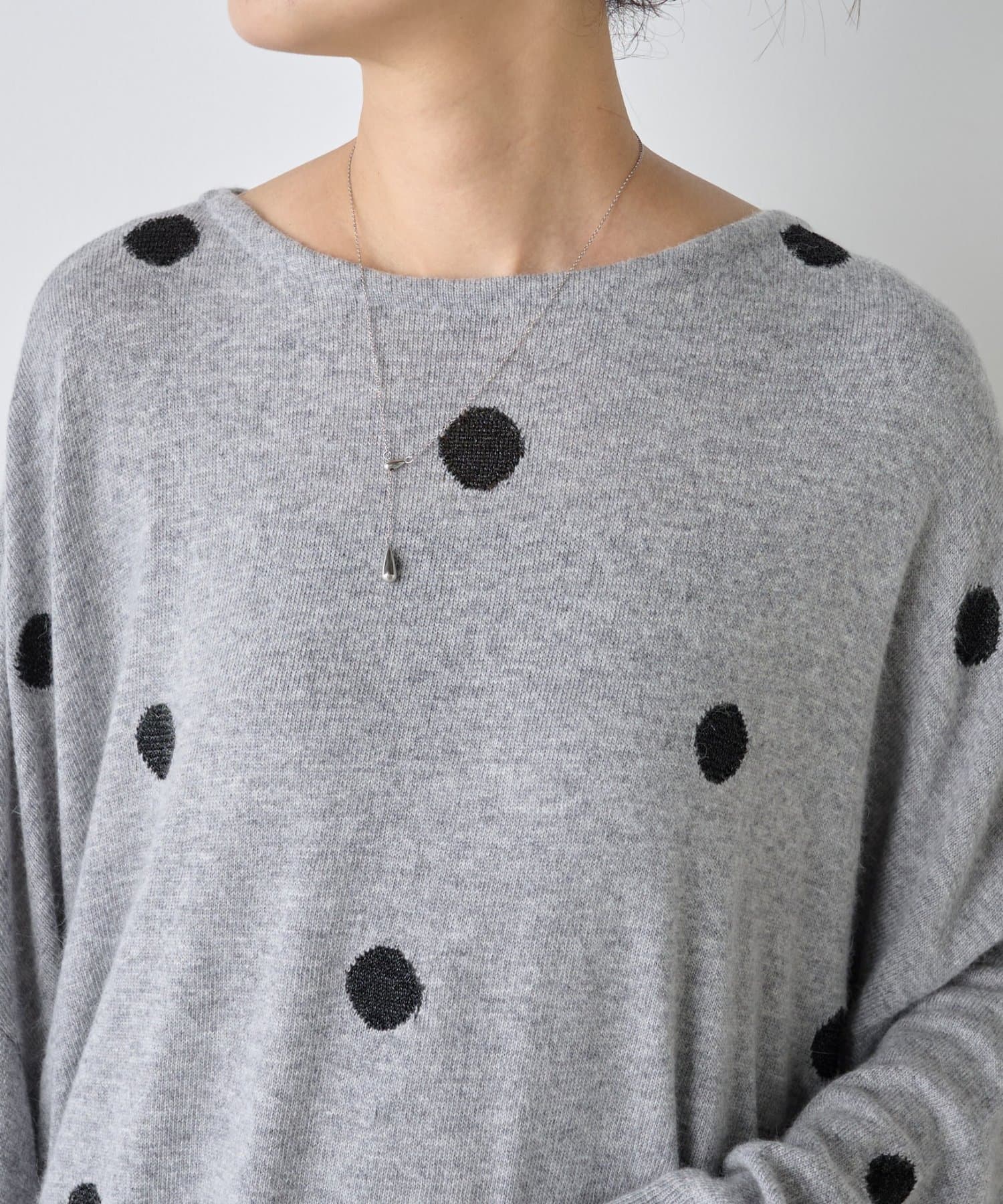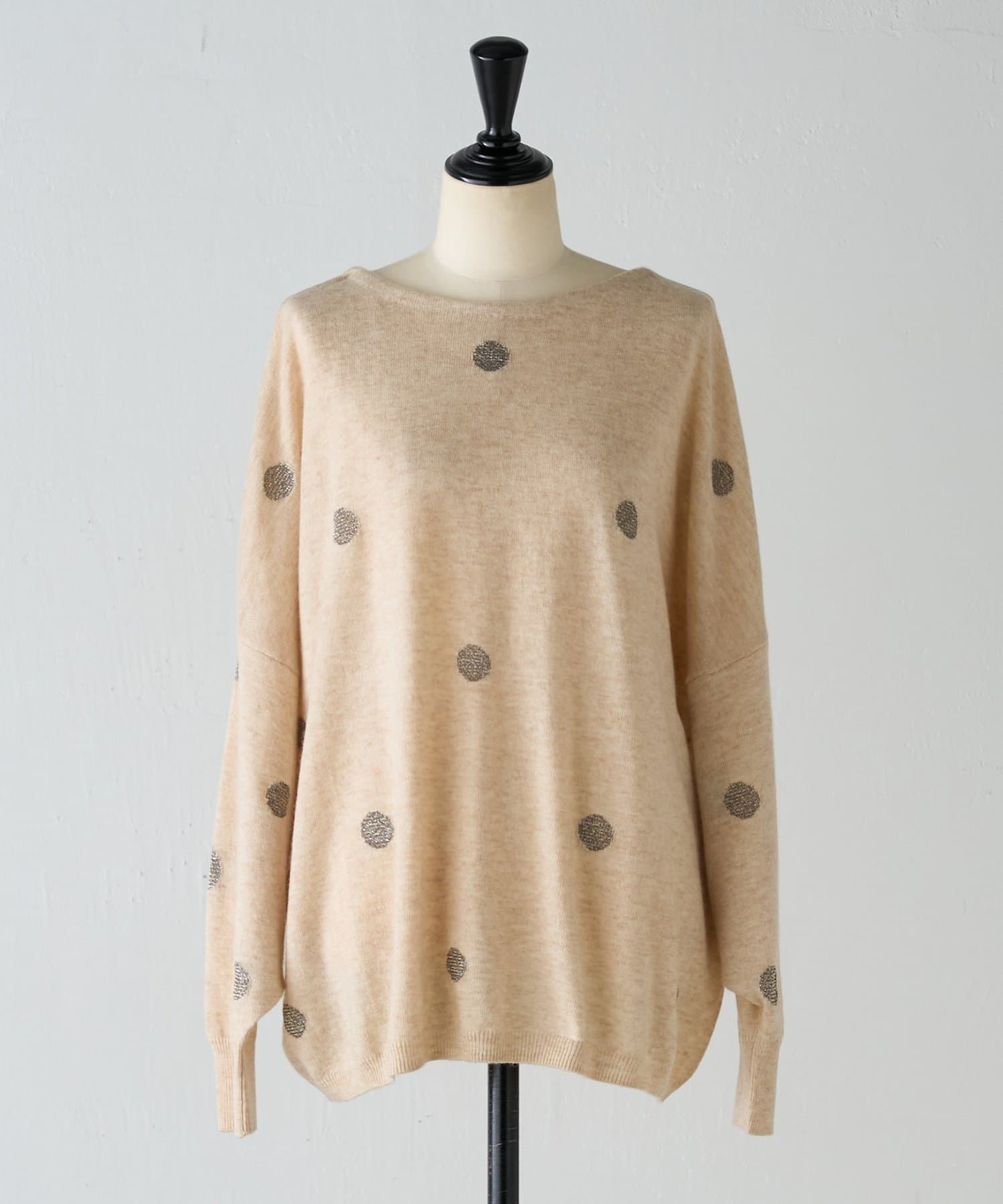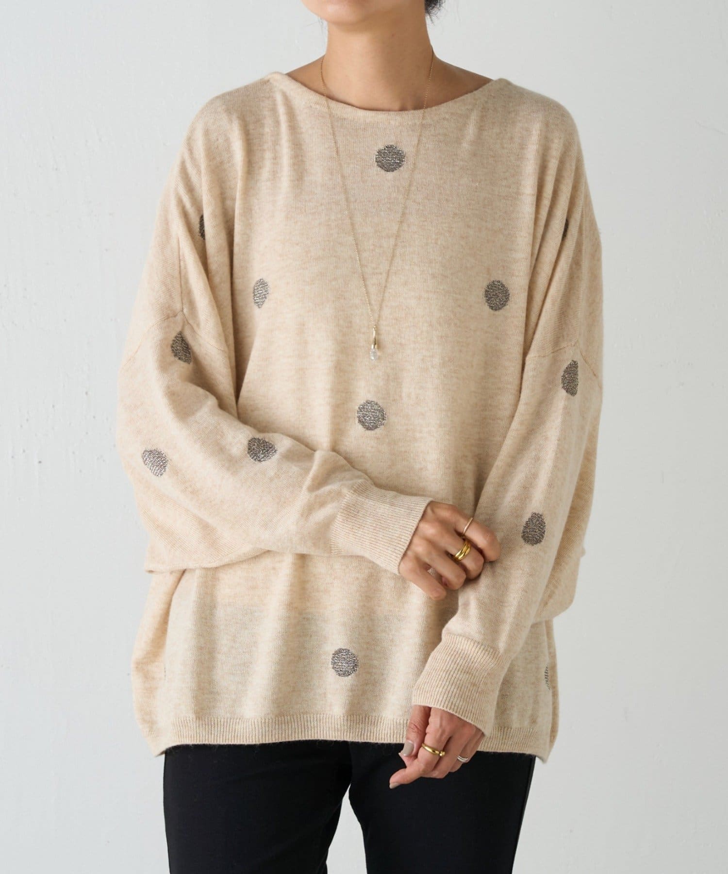 別色のラメ糸で編まれたドットが全体に散りばめられ、さりげないアクセントに。