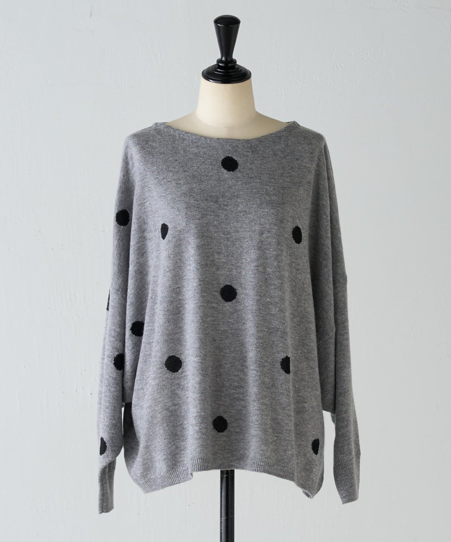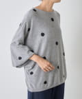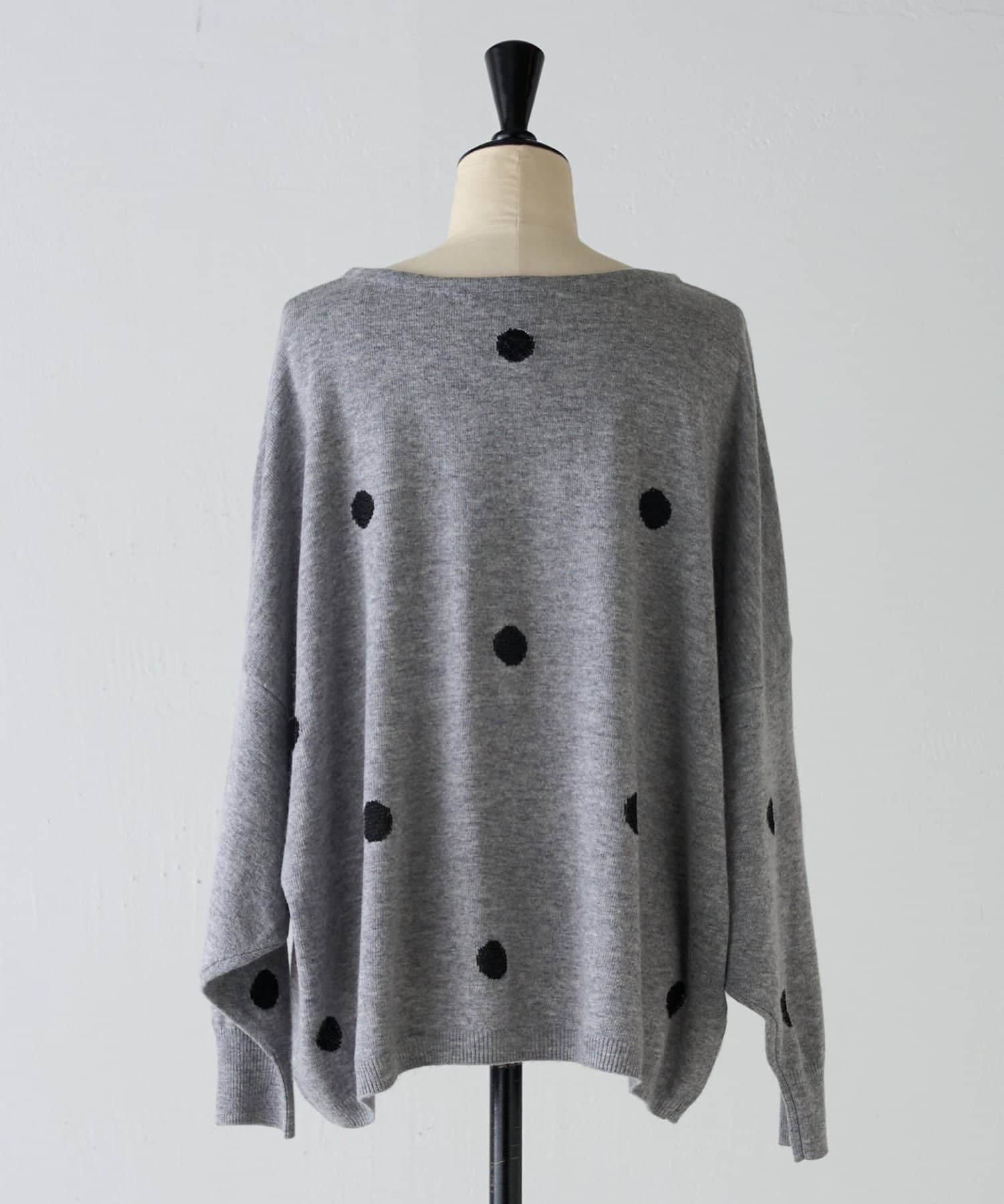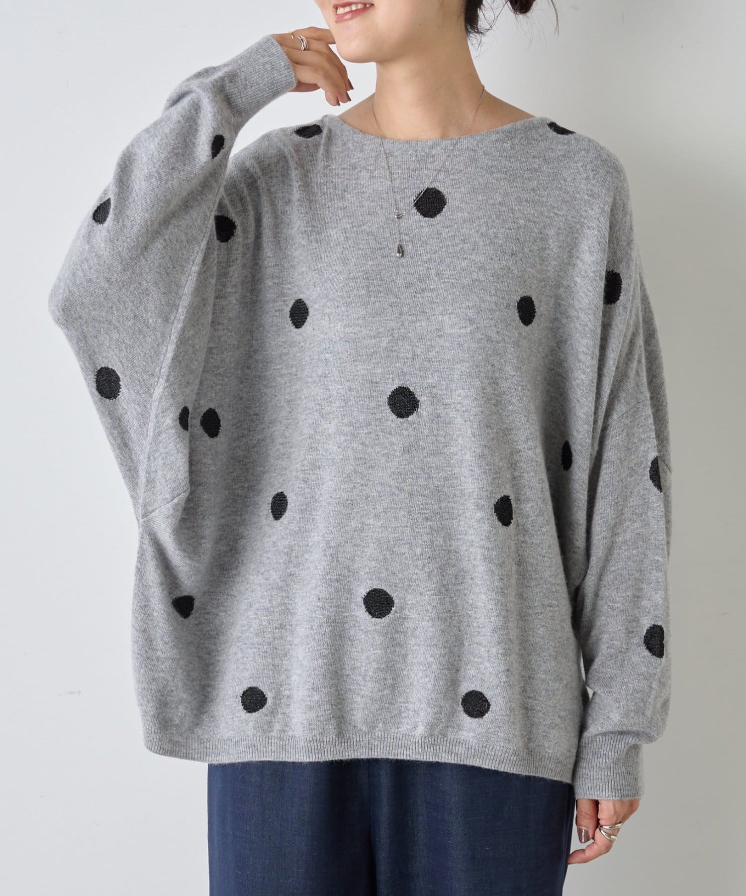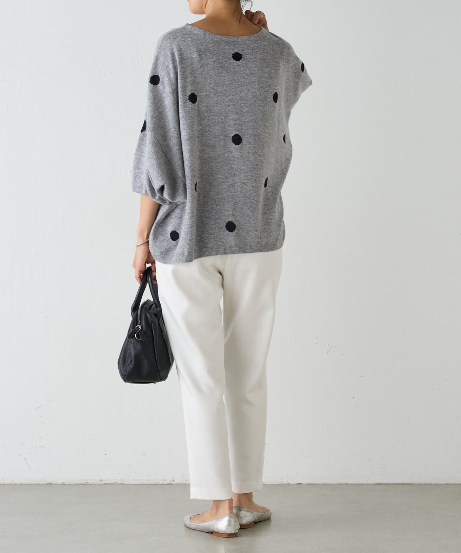 別色のラメ糸で編まれたドットが全体に散りばめられ、さりげないアクセントに。