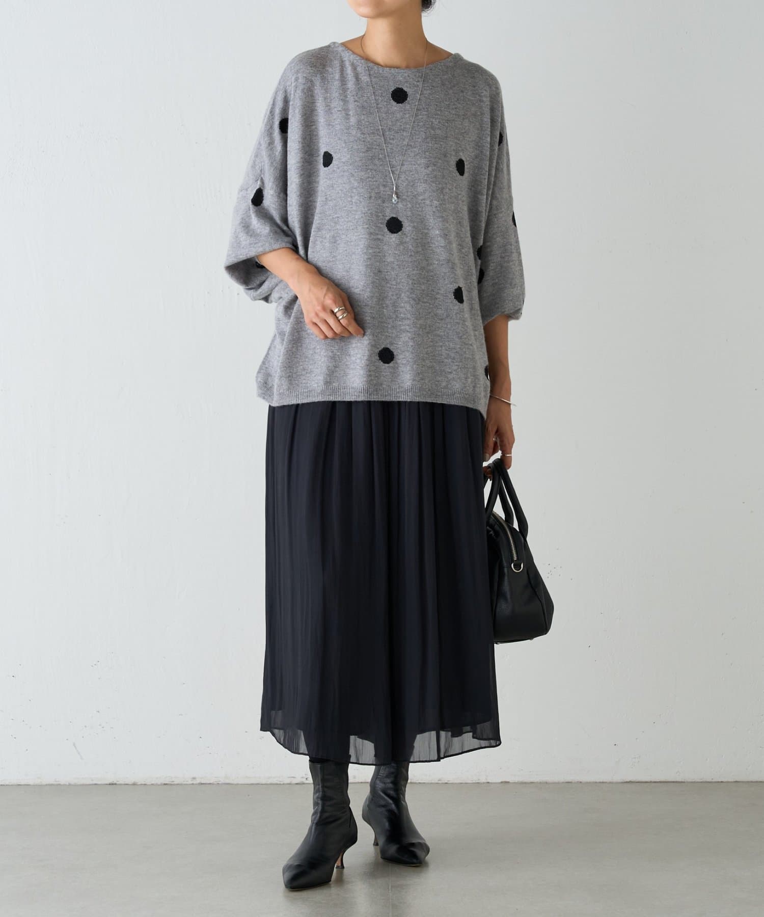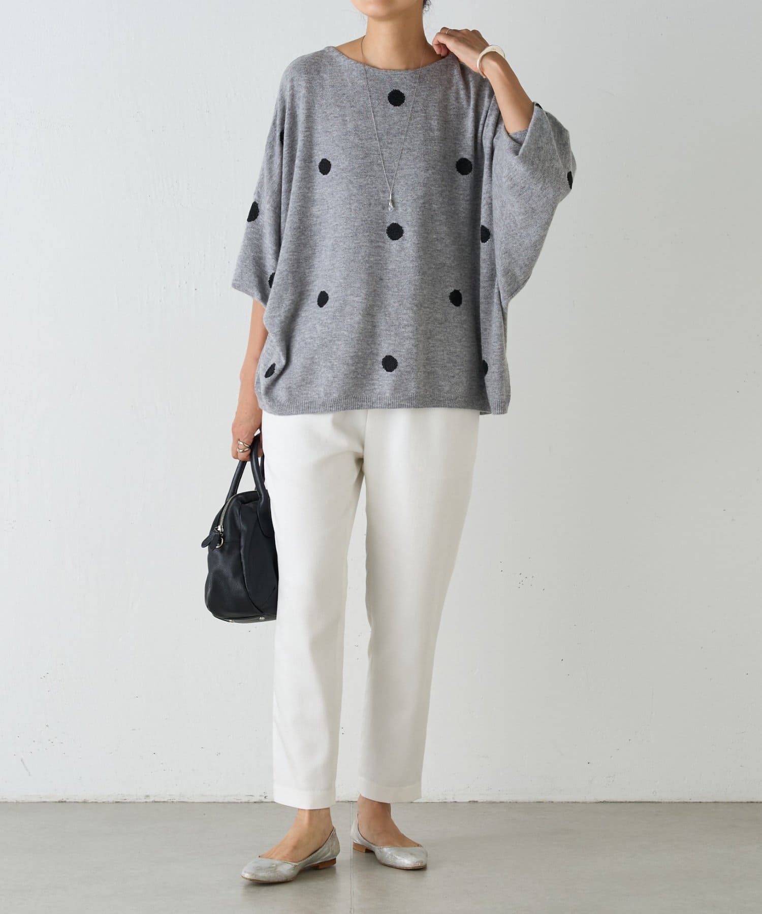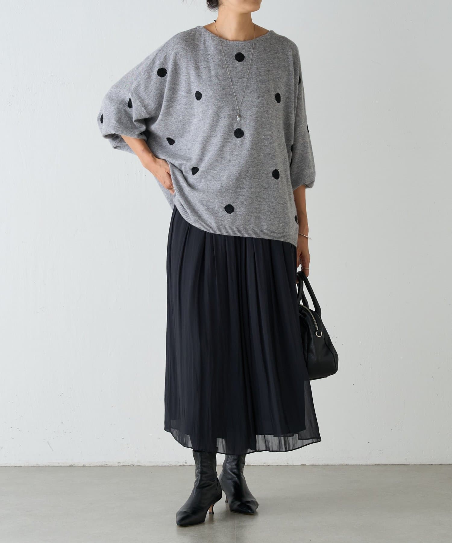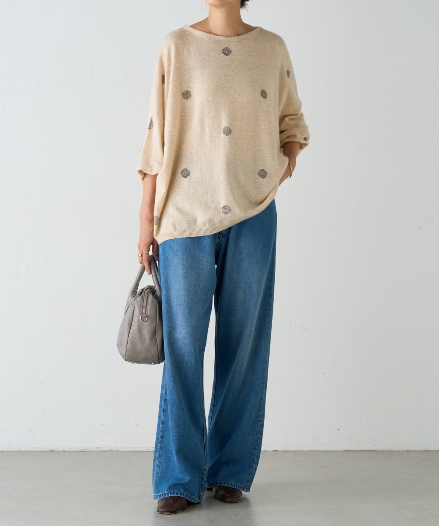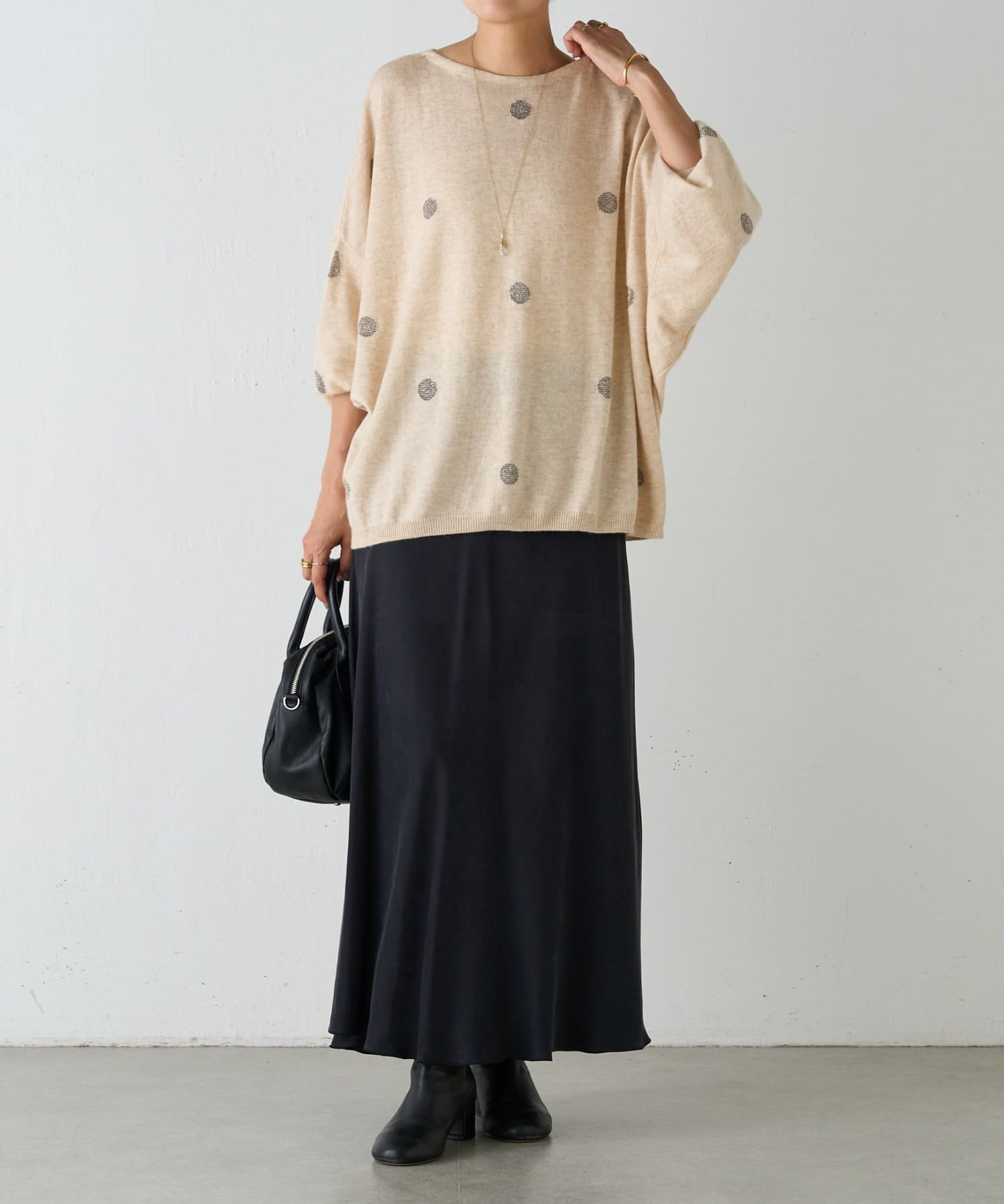 ラメの控えめなニュアンスが、ニットのやさしい印象を引き立てます。