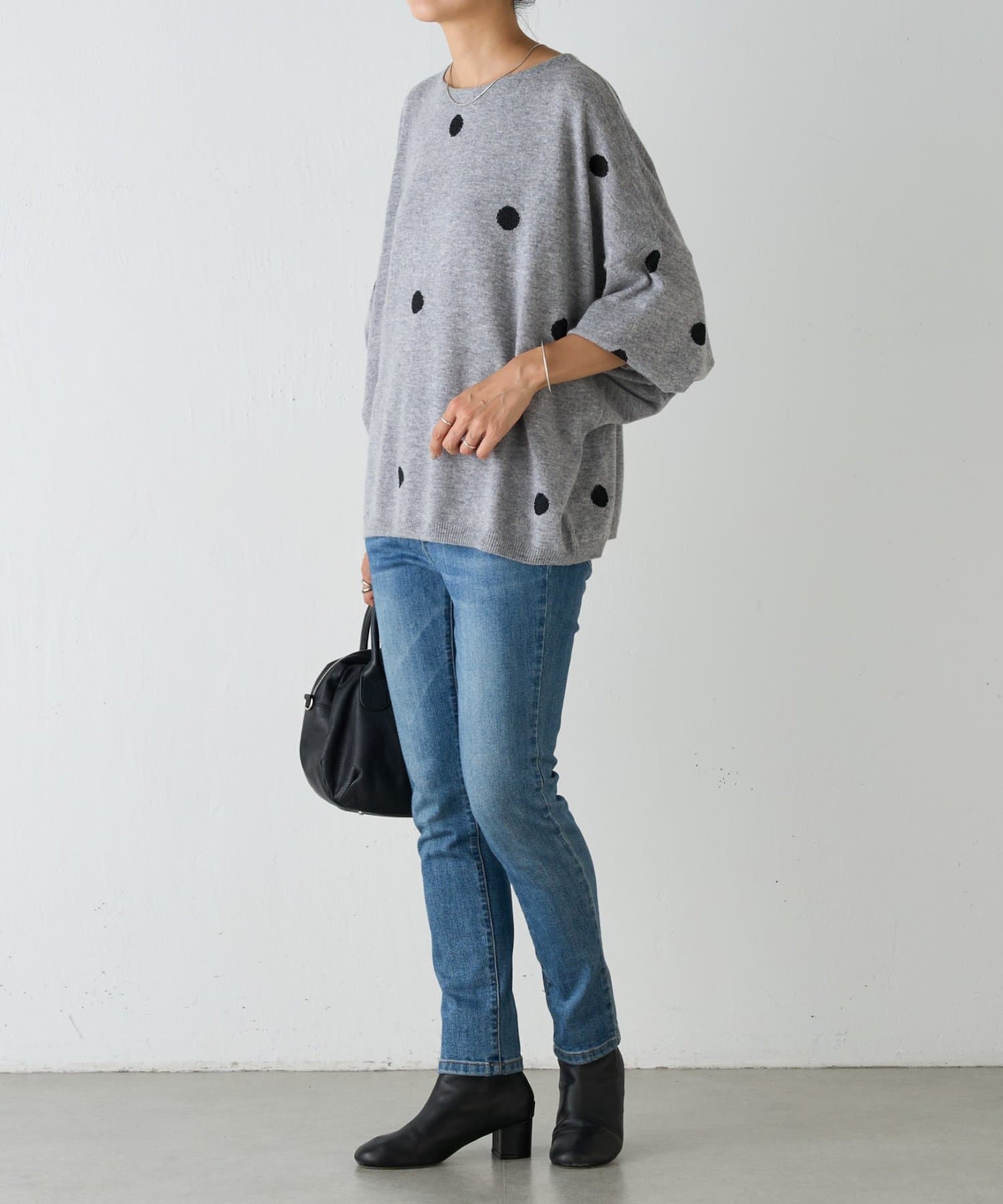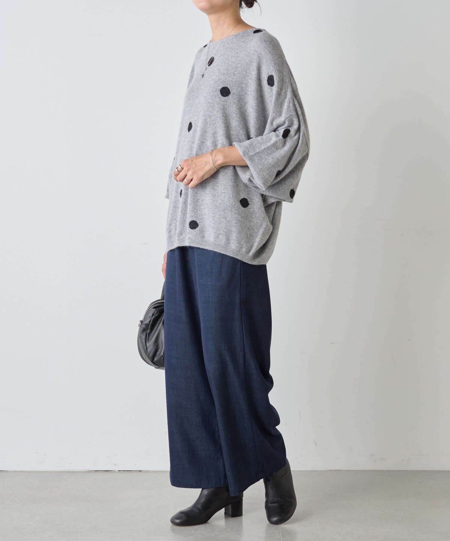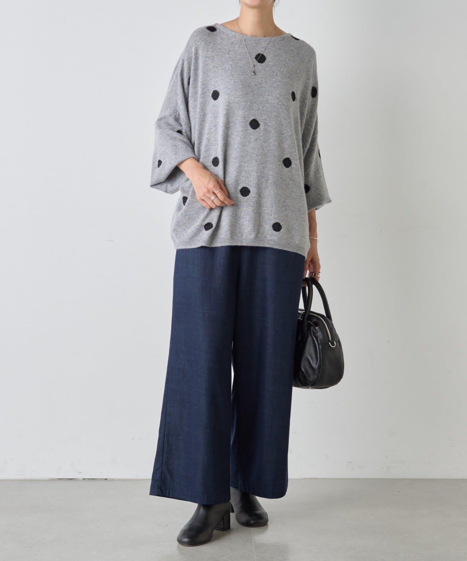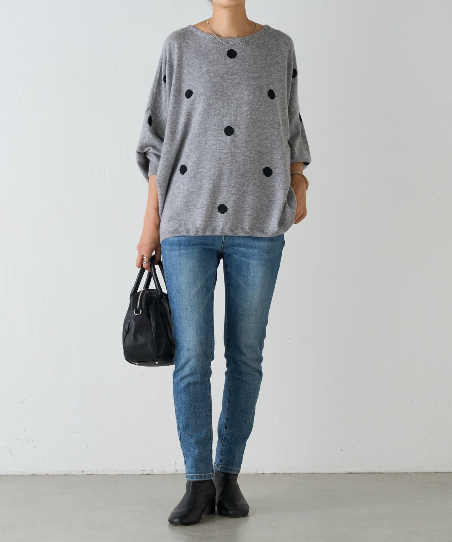 ラメの控えめなニュアンスが、ニットのやさしい印象を引き立てます。