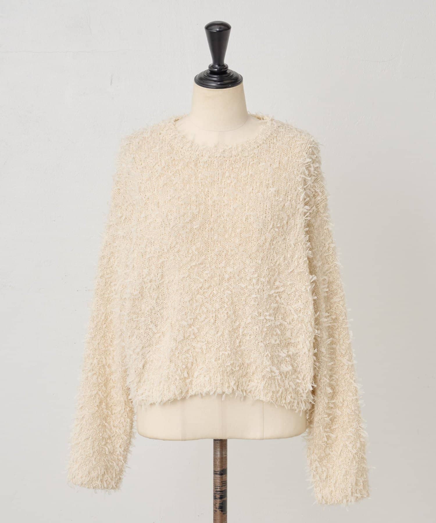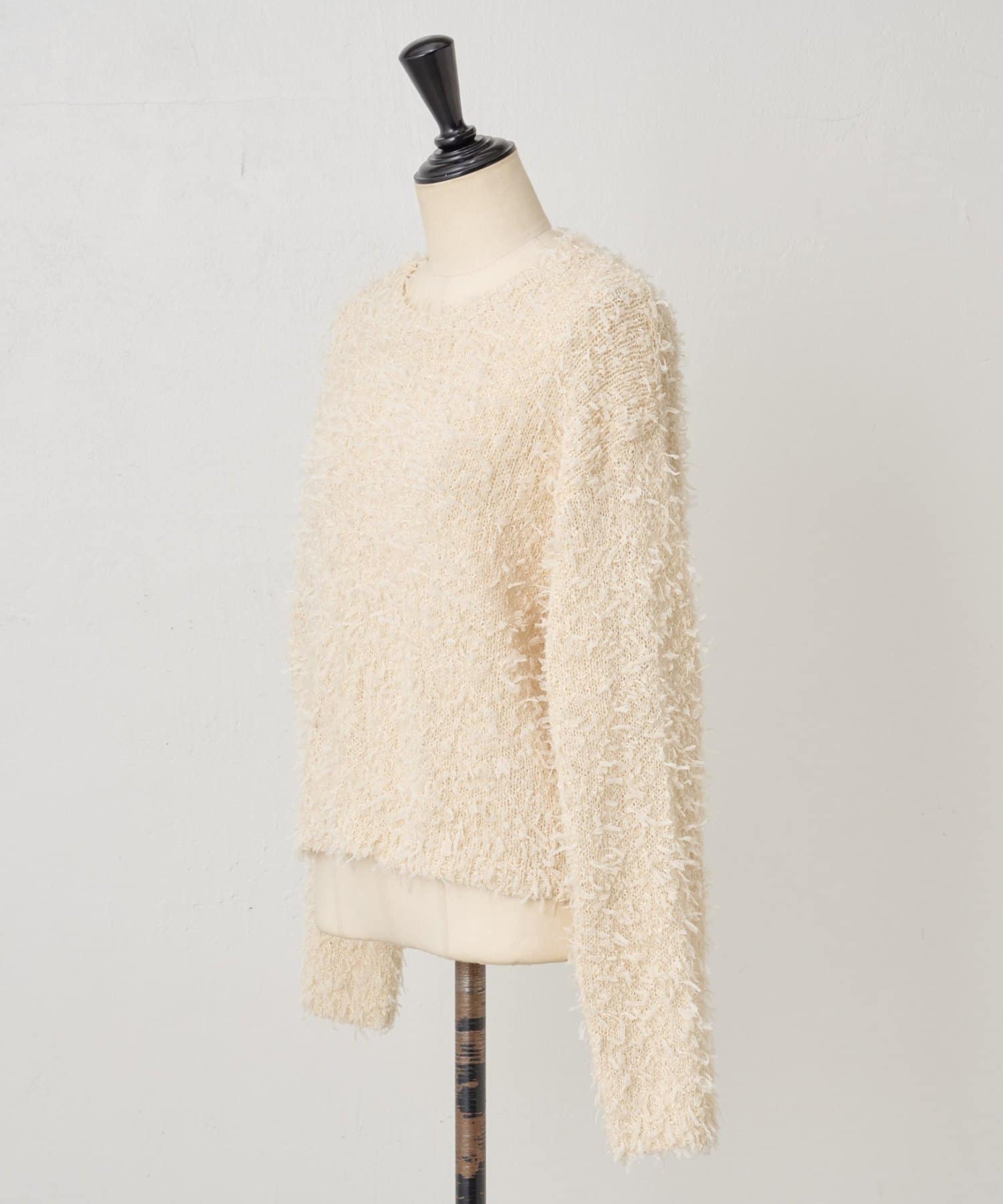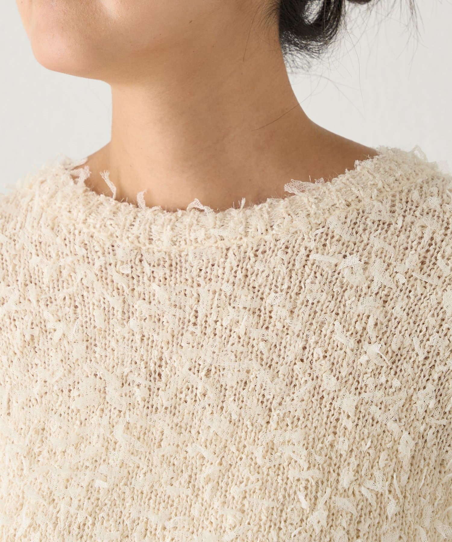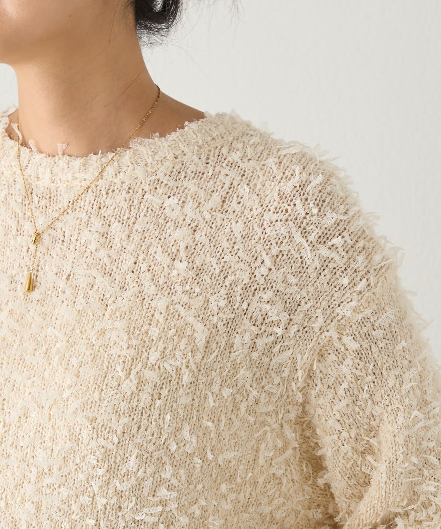 ふわふわとしたチュールヤーンが目を惹くニットプルオーバー。