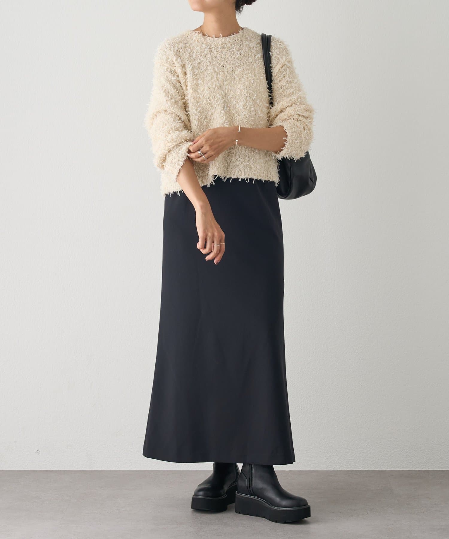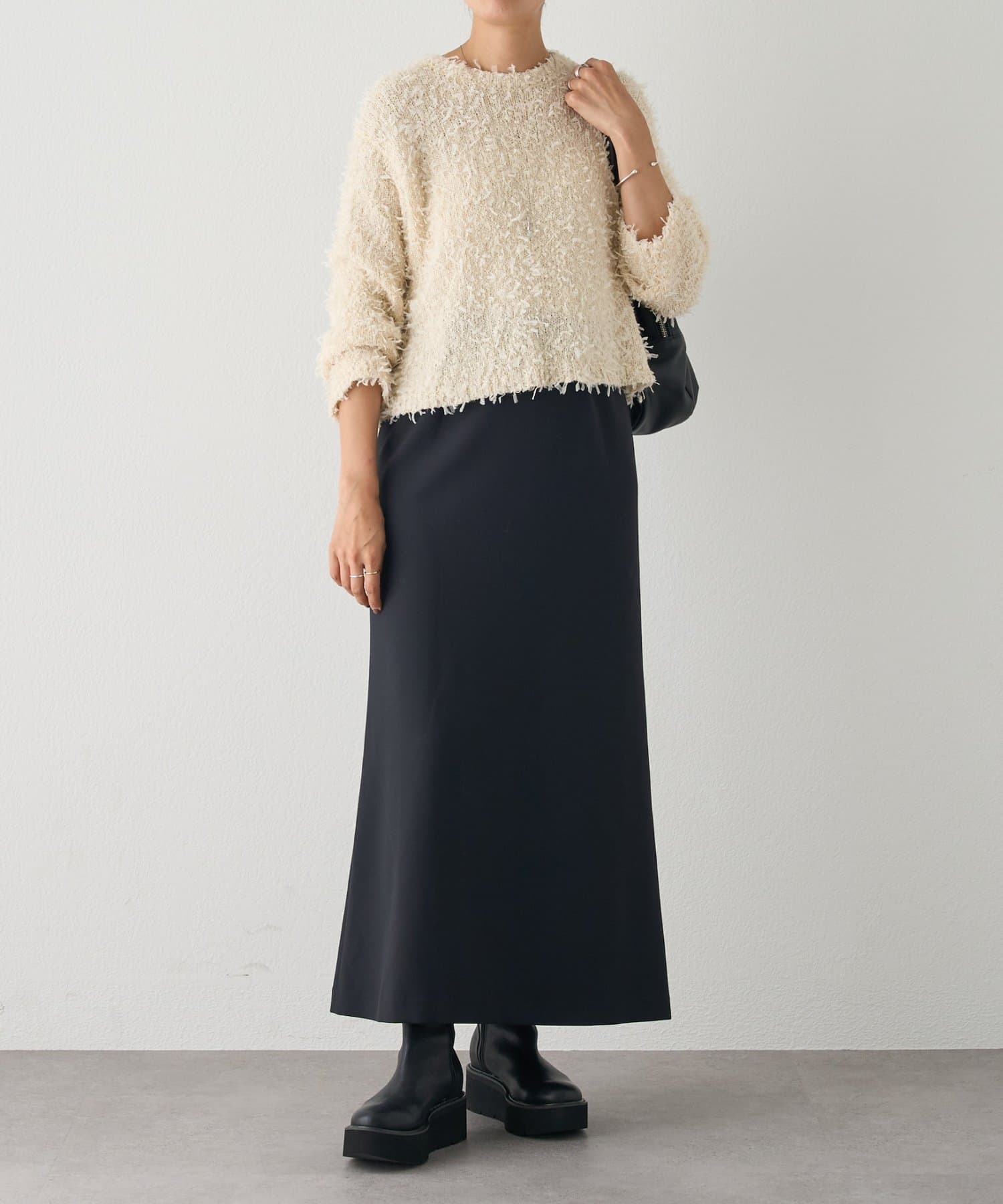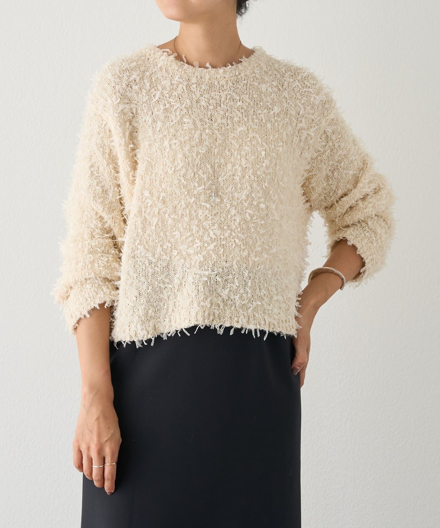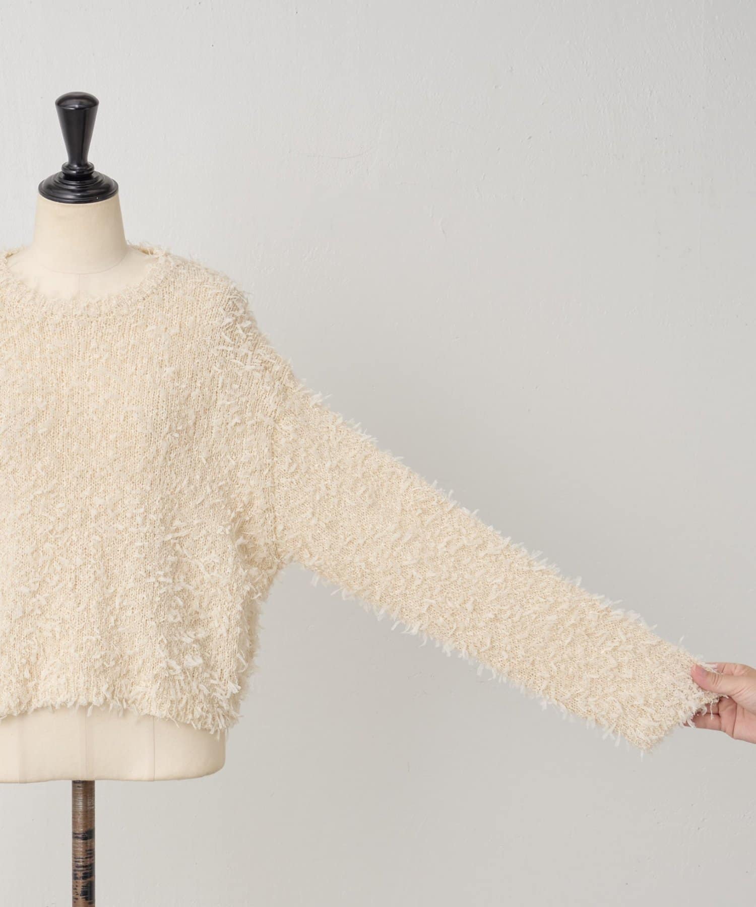 ふわふわとしたチュールヤーンが目を惹くニットプルオーバー。