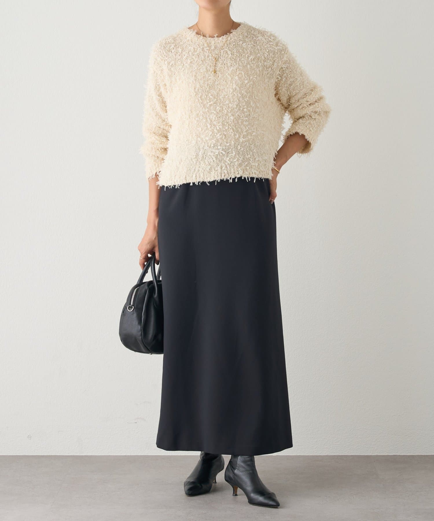 シンプルなパンツやスカートに合わせるだけで、やわらかな存在感を放つ一枚です。