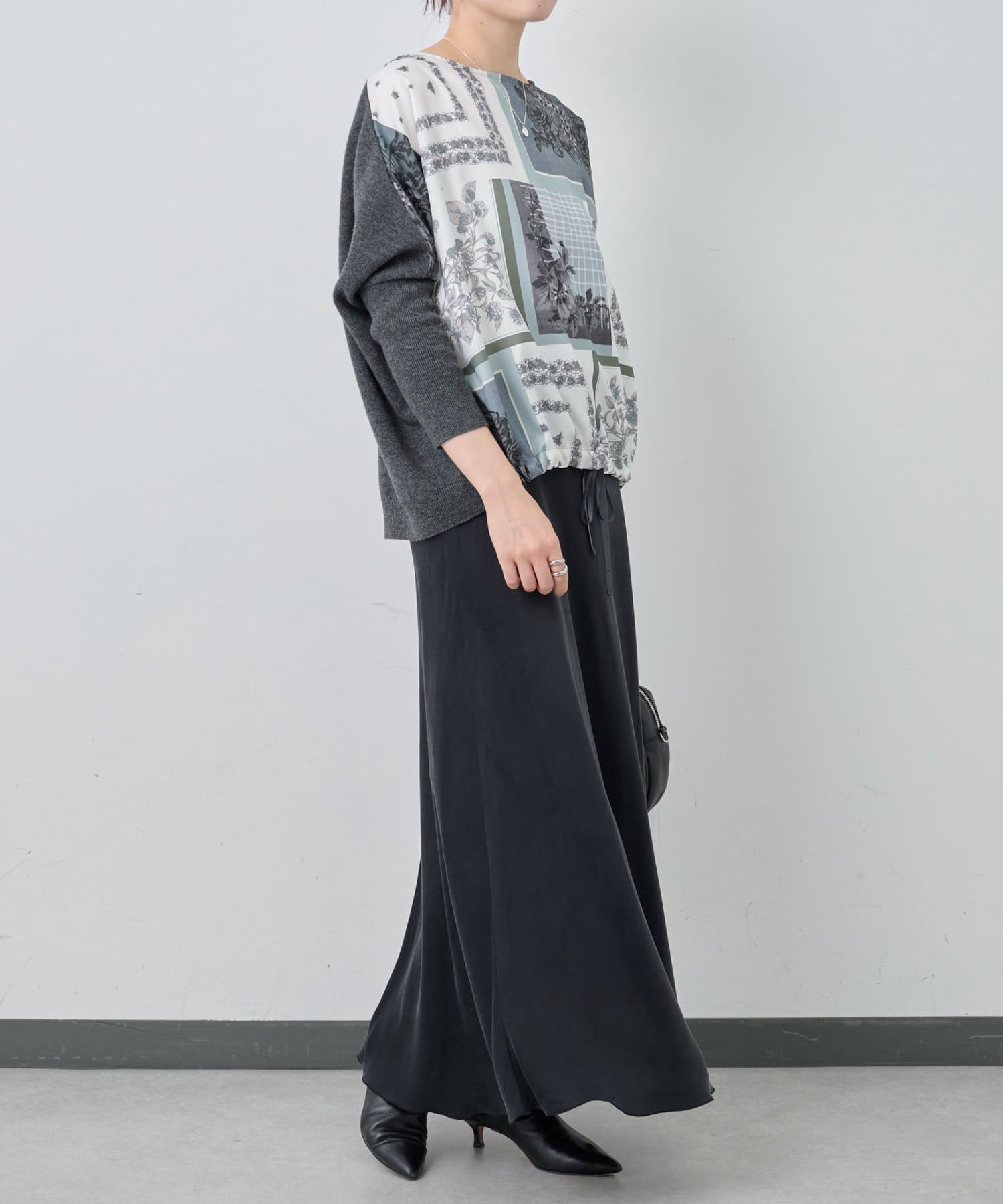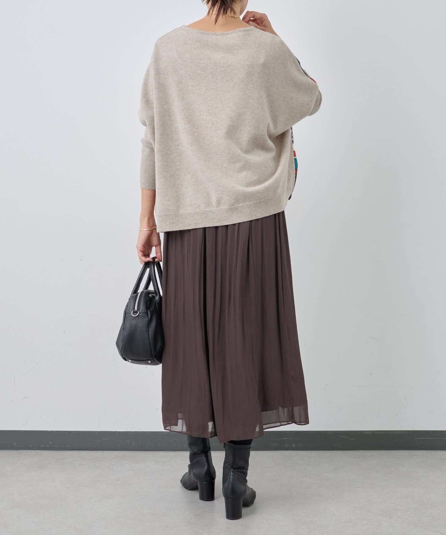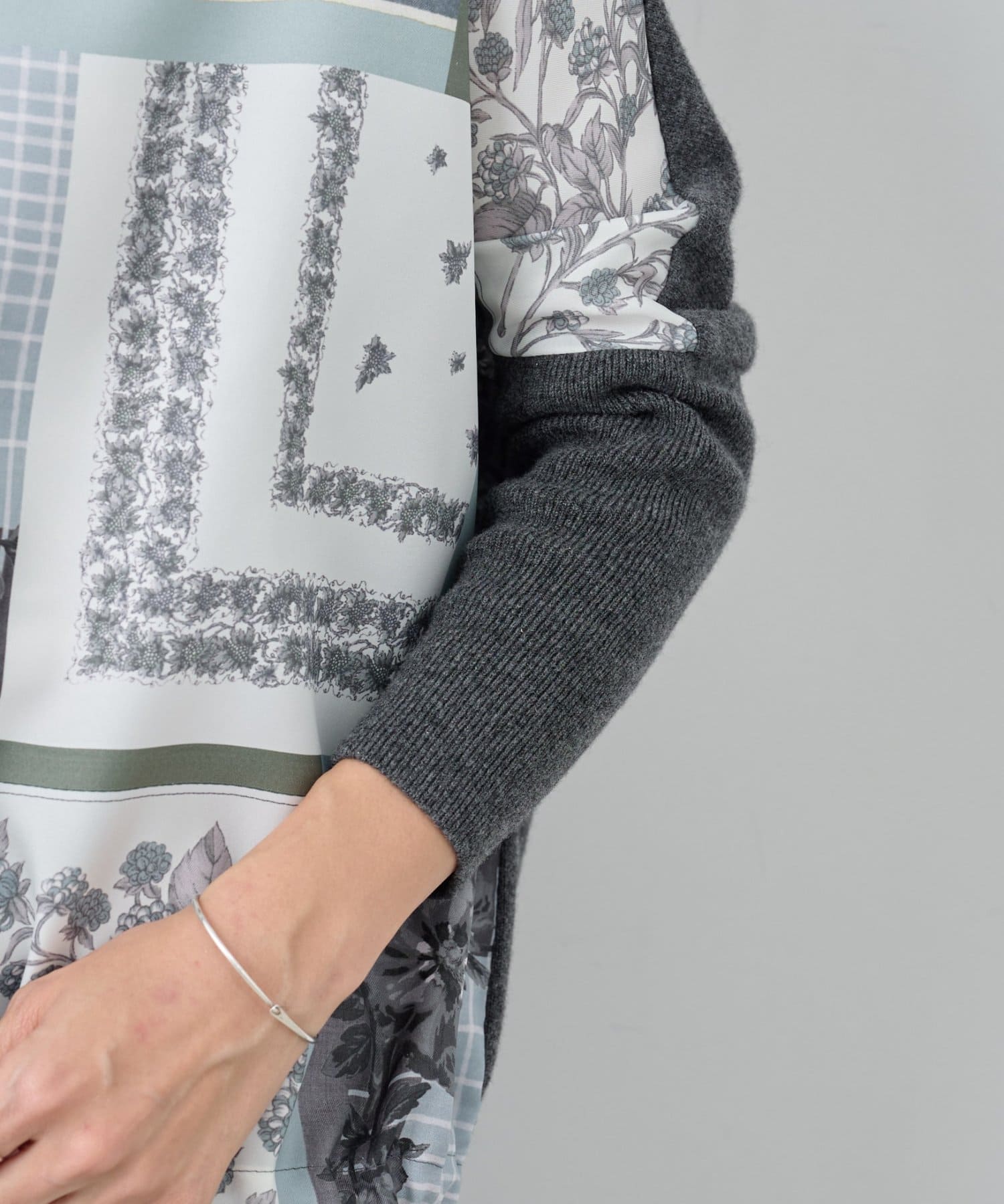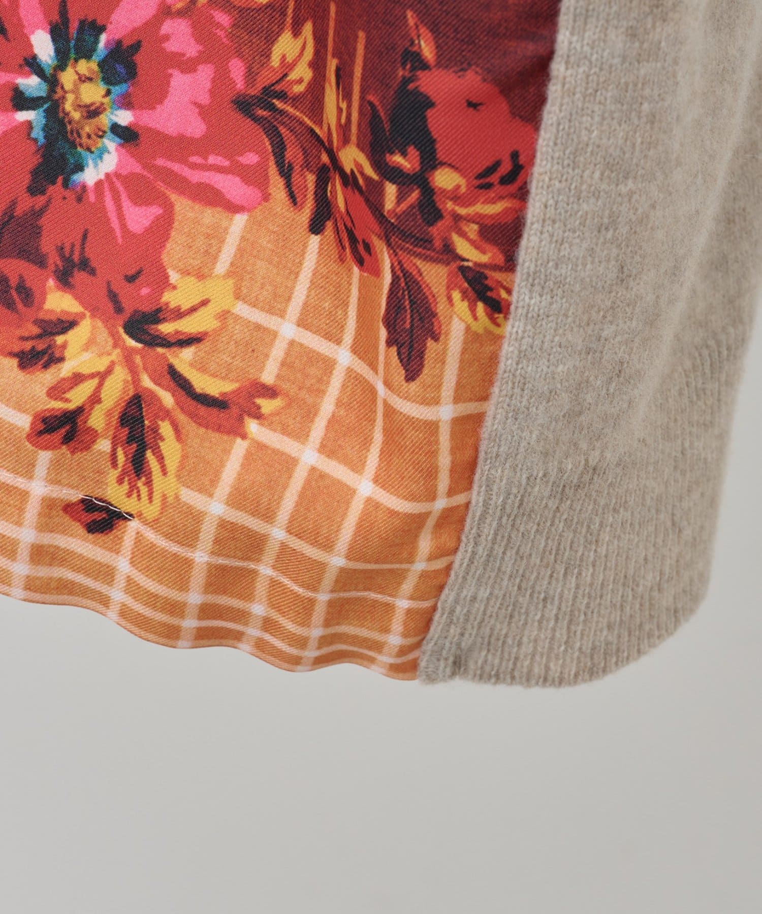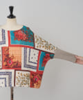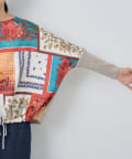 艶のある鮮やかなスカーフを身頃にしたプルオーバーニット。