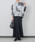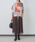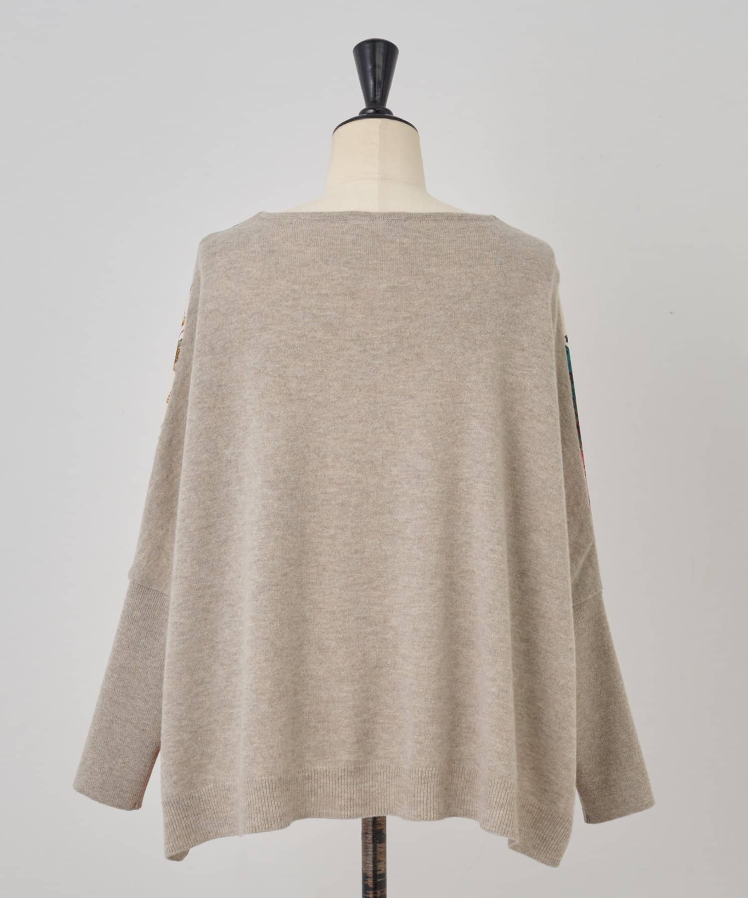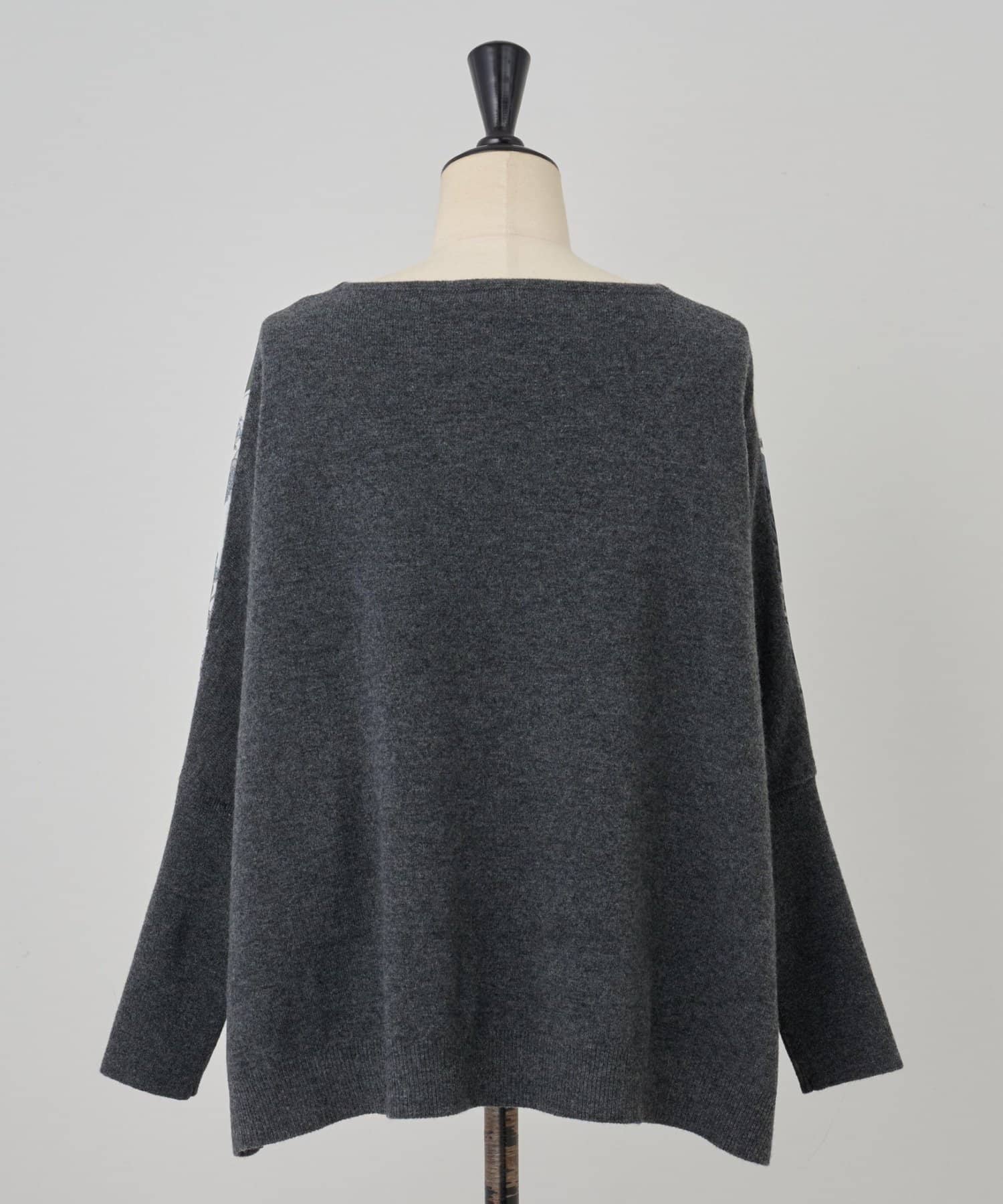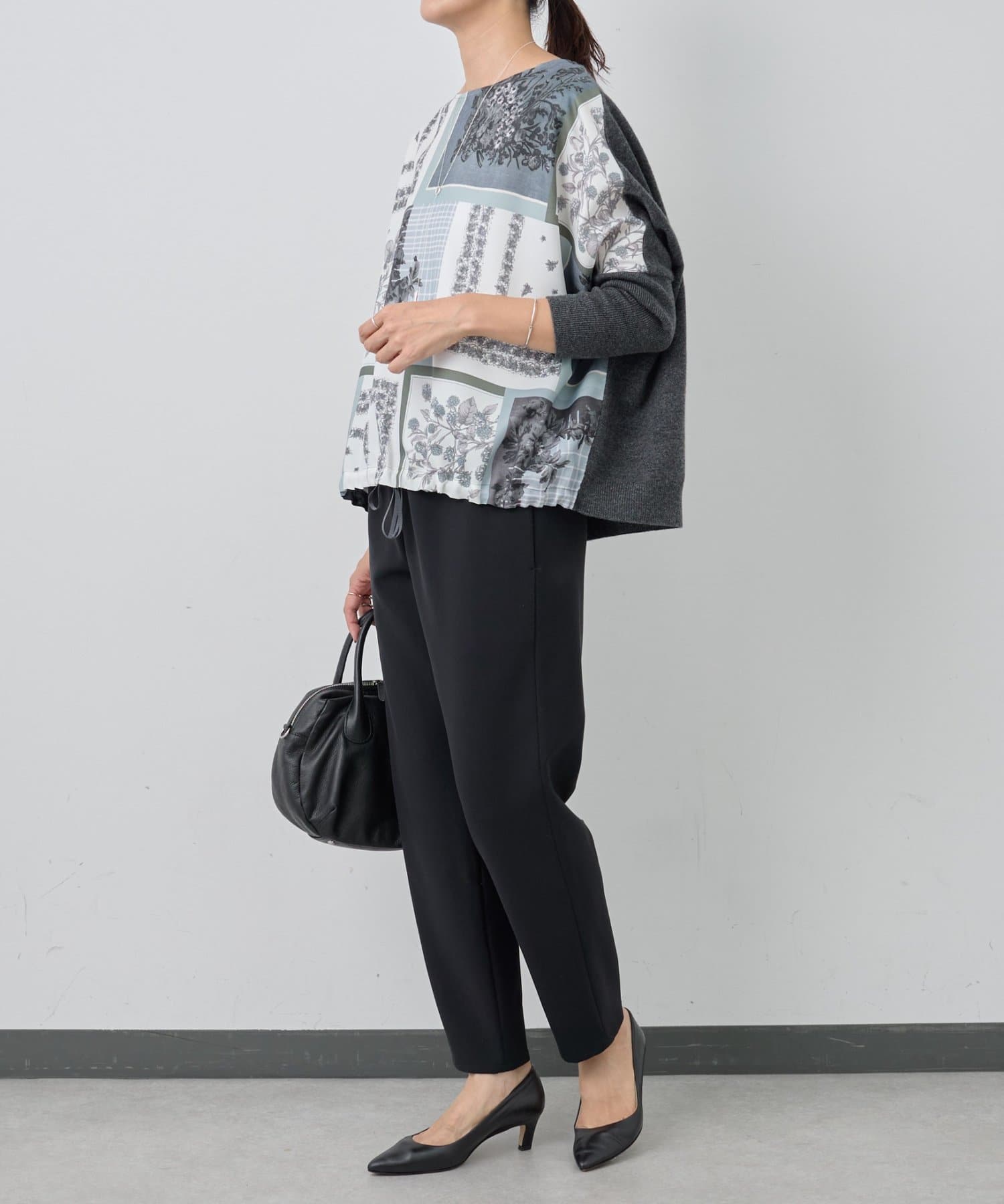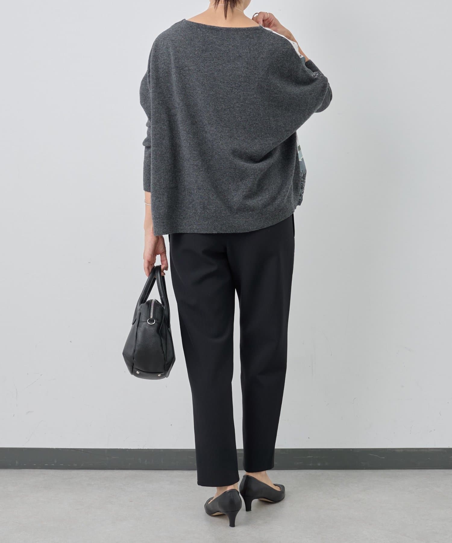 艶のある鮮やかなスカーフを身頃にしたプルオーバーニット。
