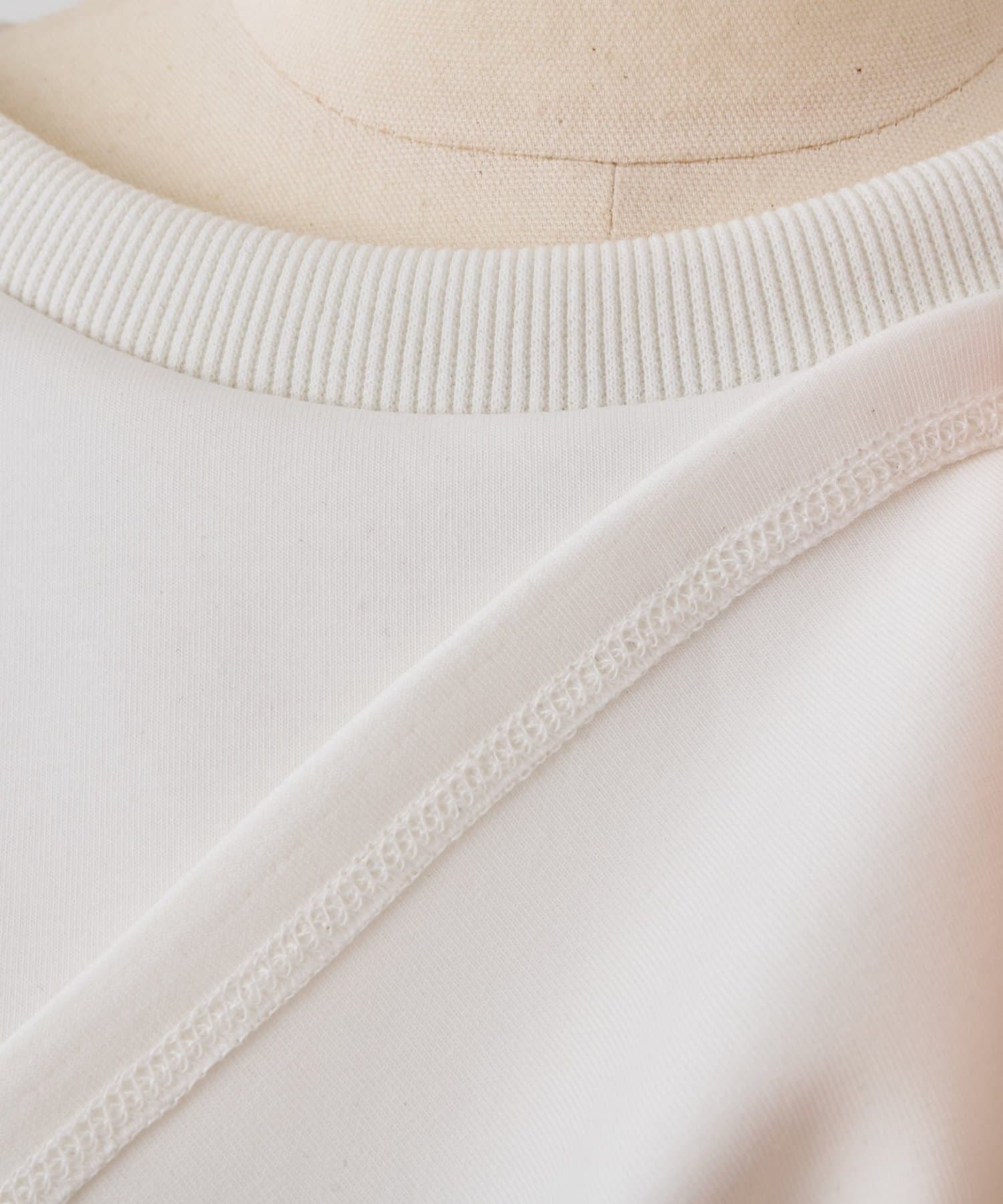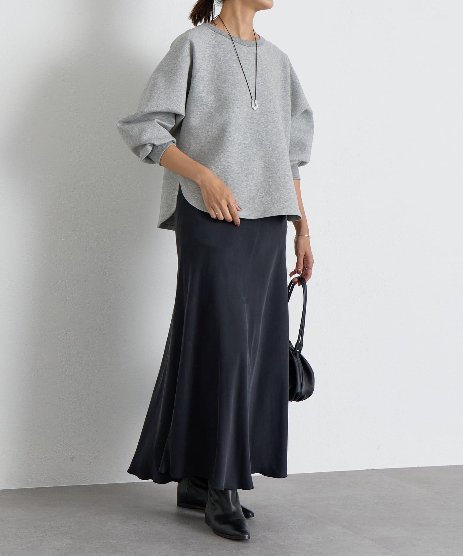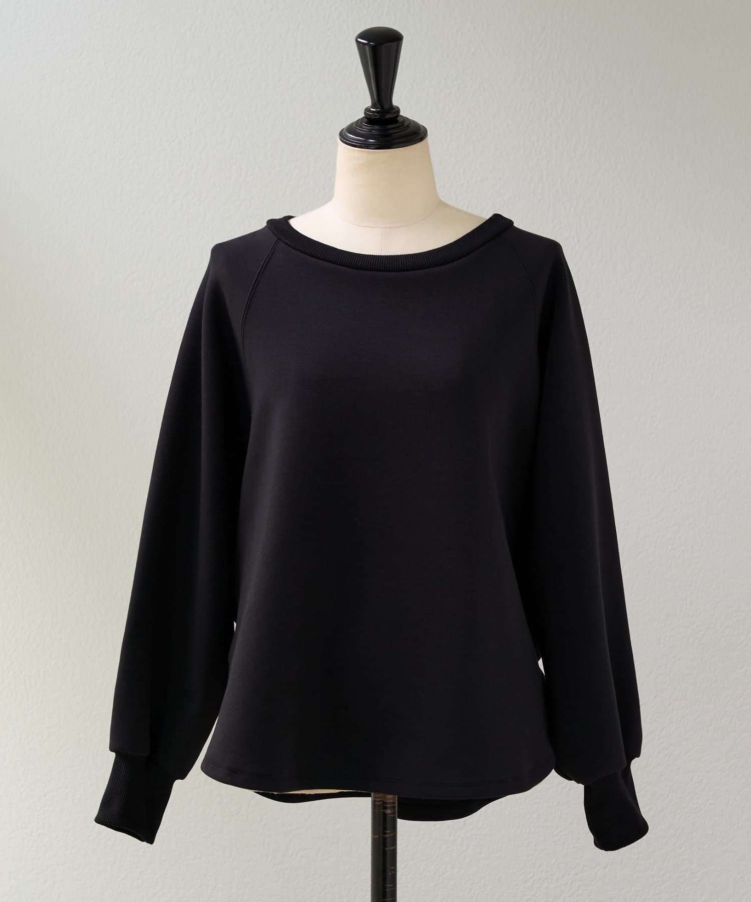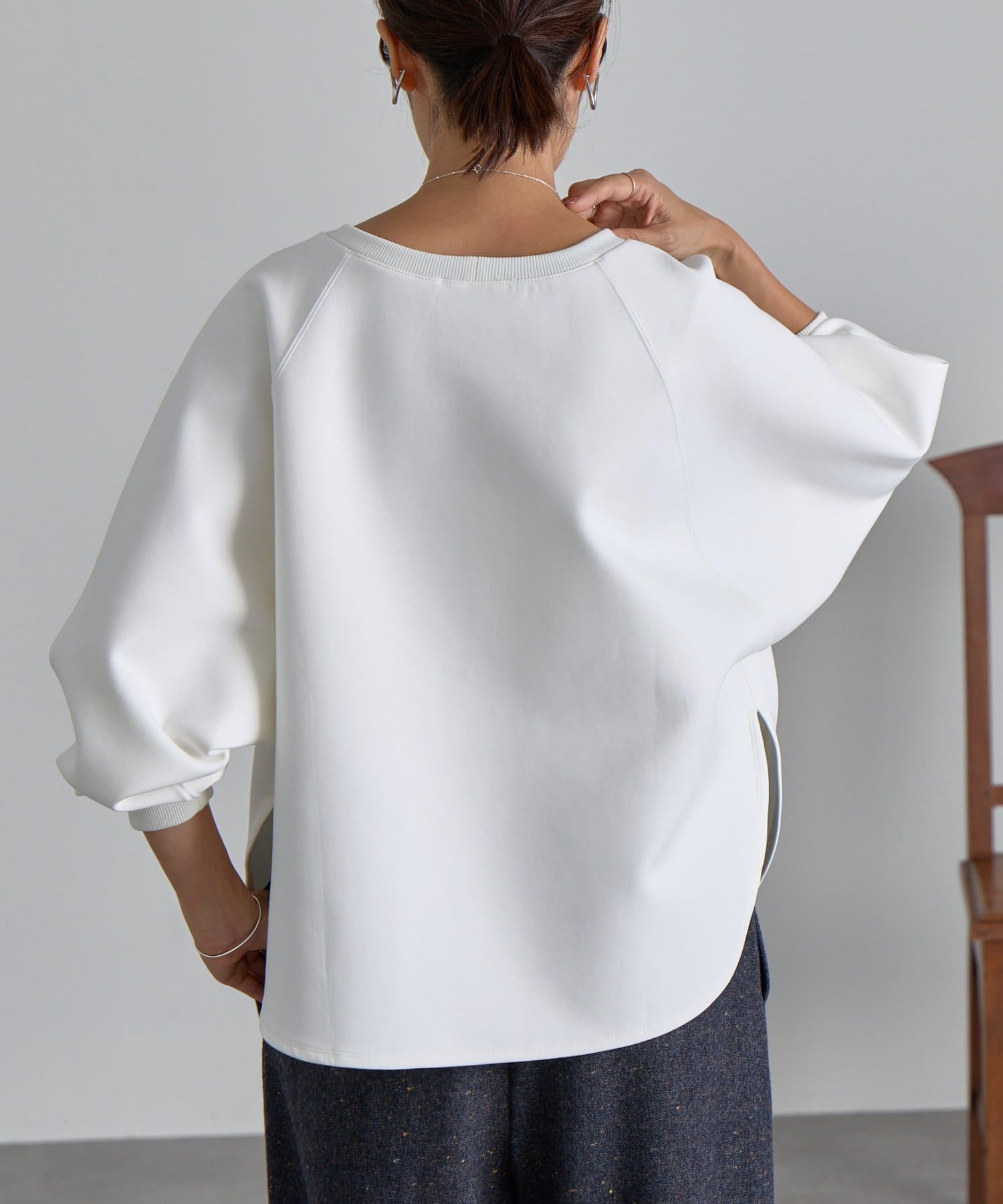 ストレッチもしっかりときいているので着心地もよく、ラグランデザインで肩周りもすっきり◎