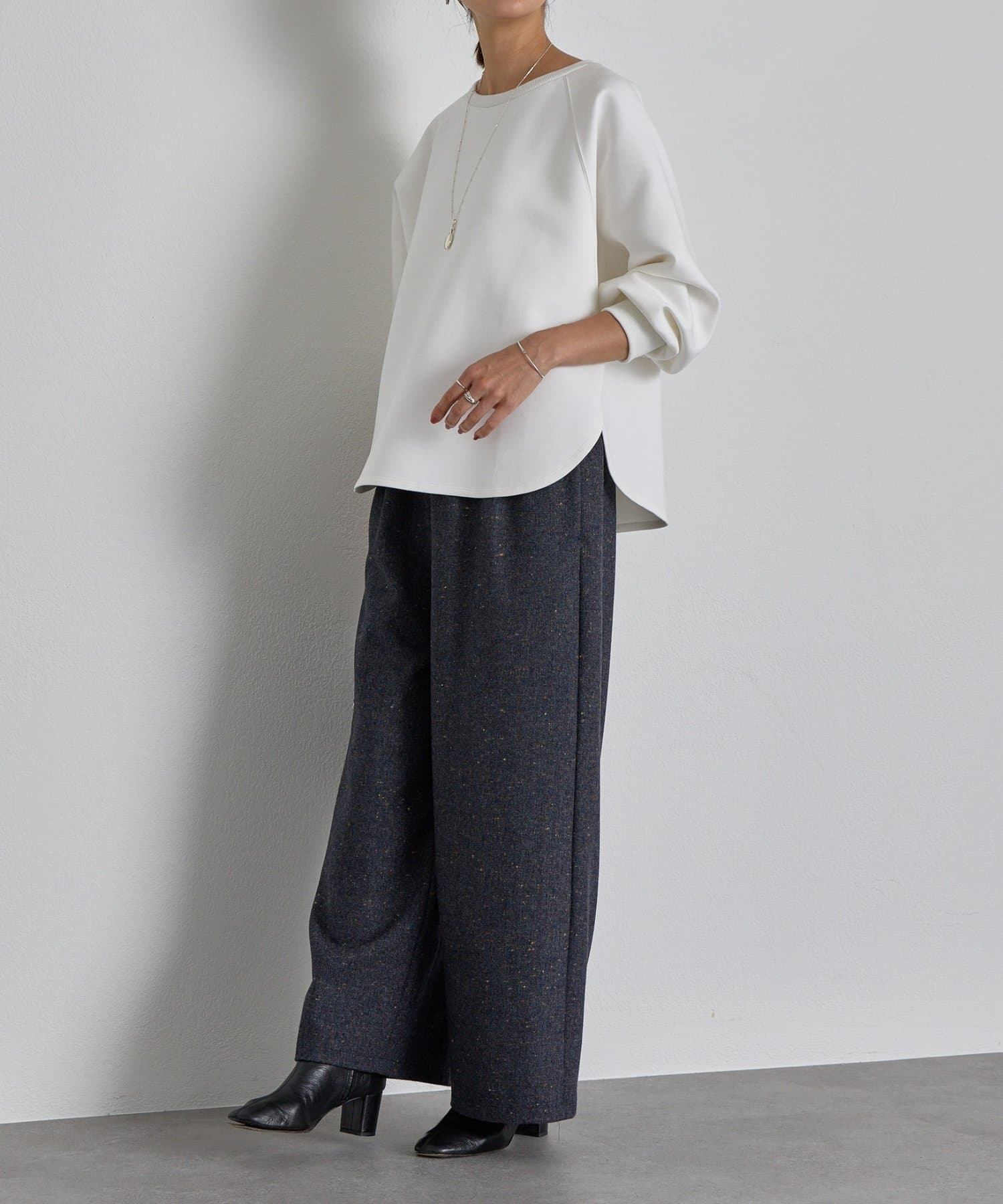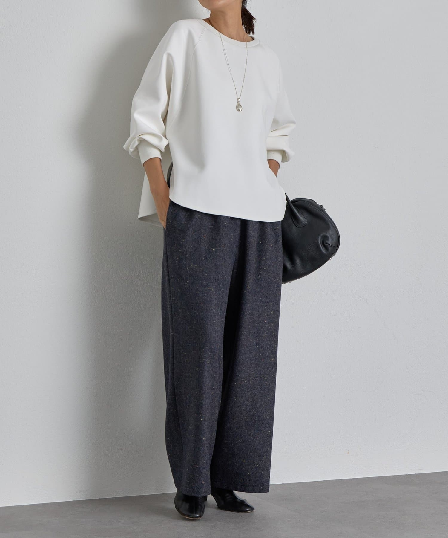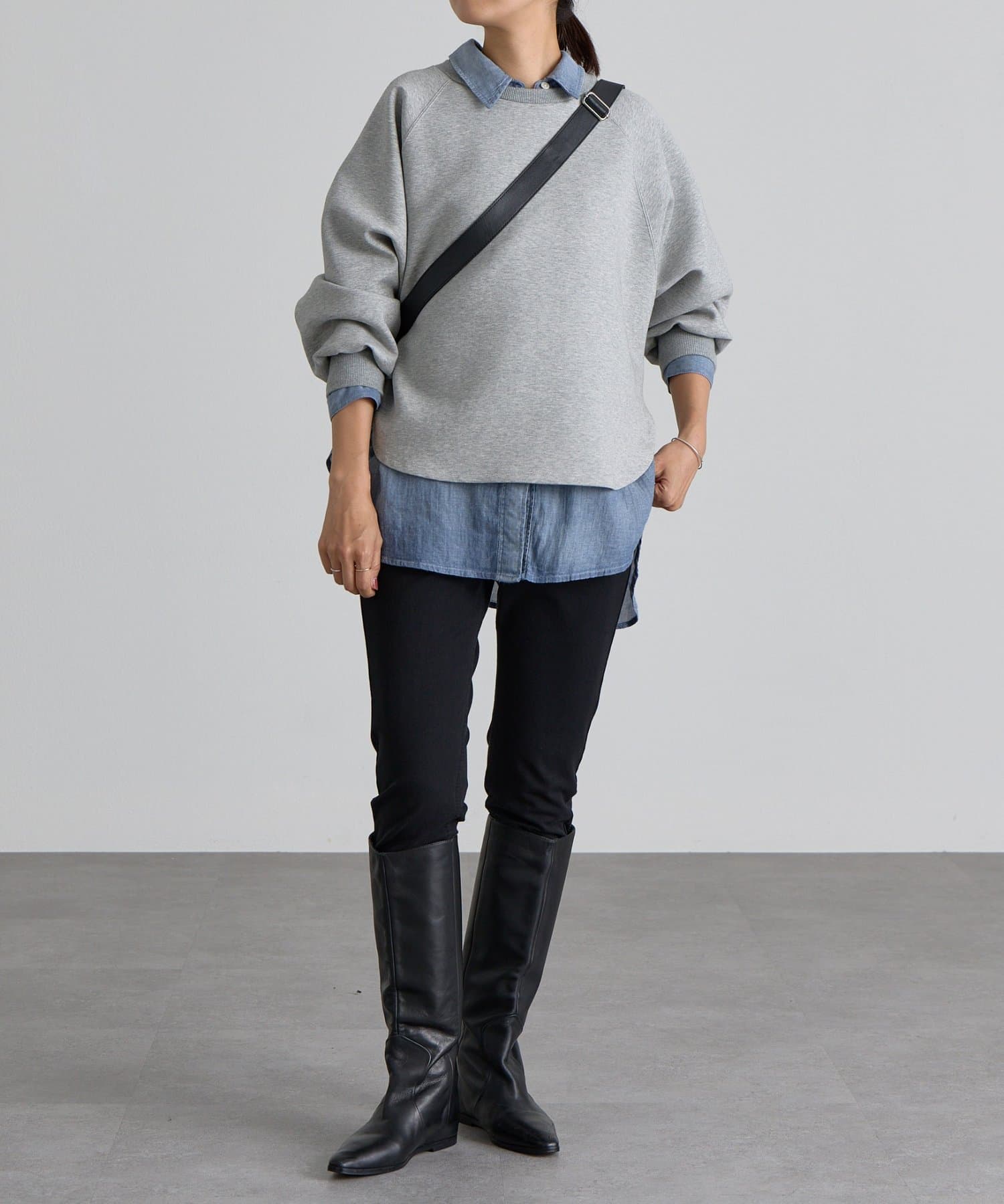 ストレッチもしっかりときいているので着心地もよく、ラグランデザインで肩周りもすっきり◎