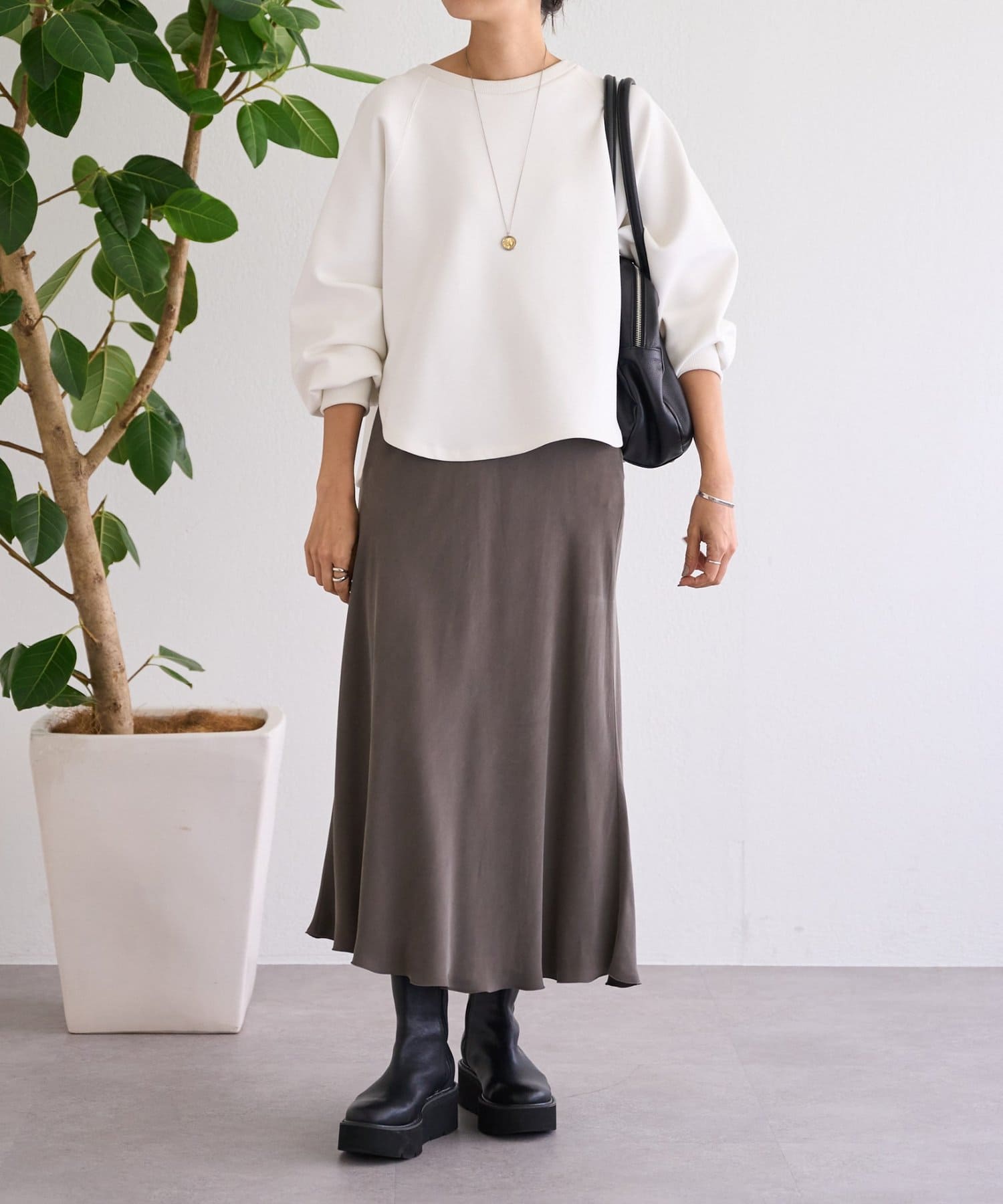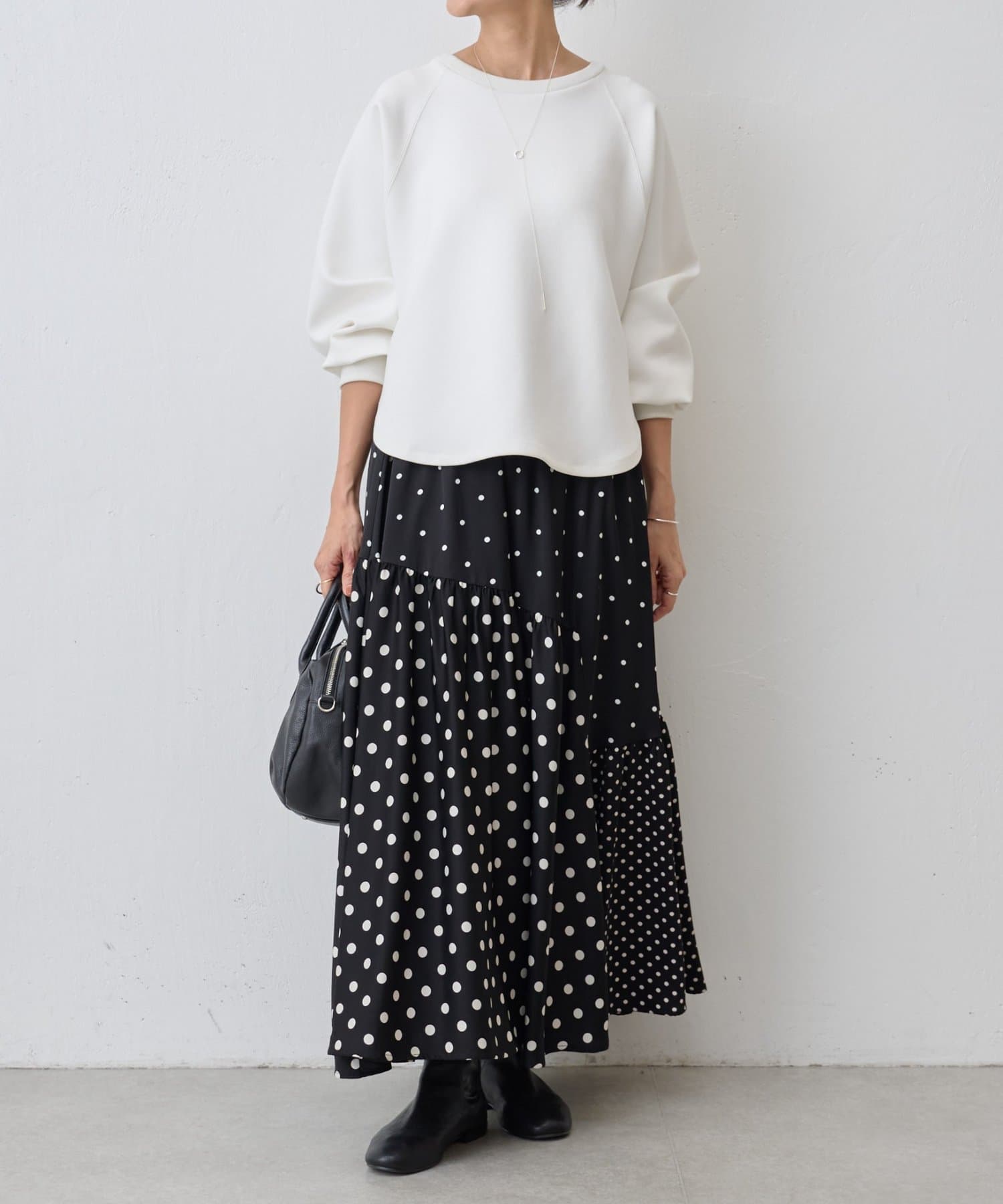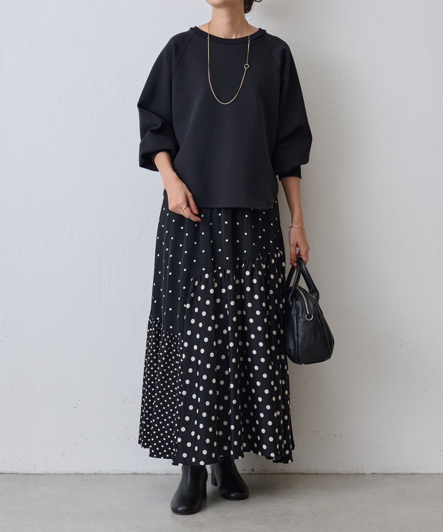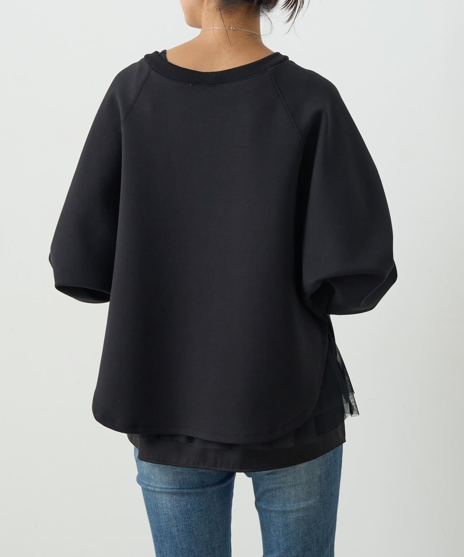 ストレッチもしっかりときいているので着心地もよく、ラグランデザインで肩周りもすっきり◎