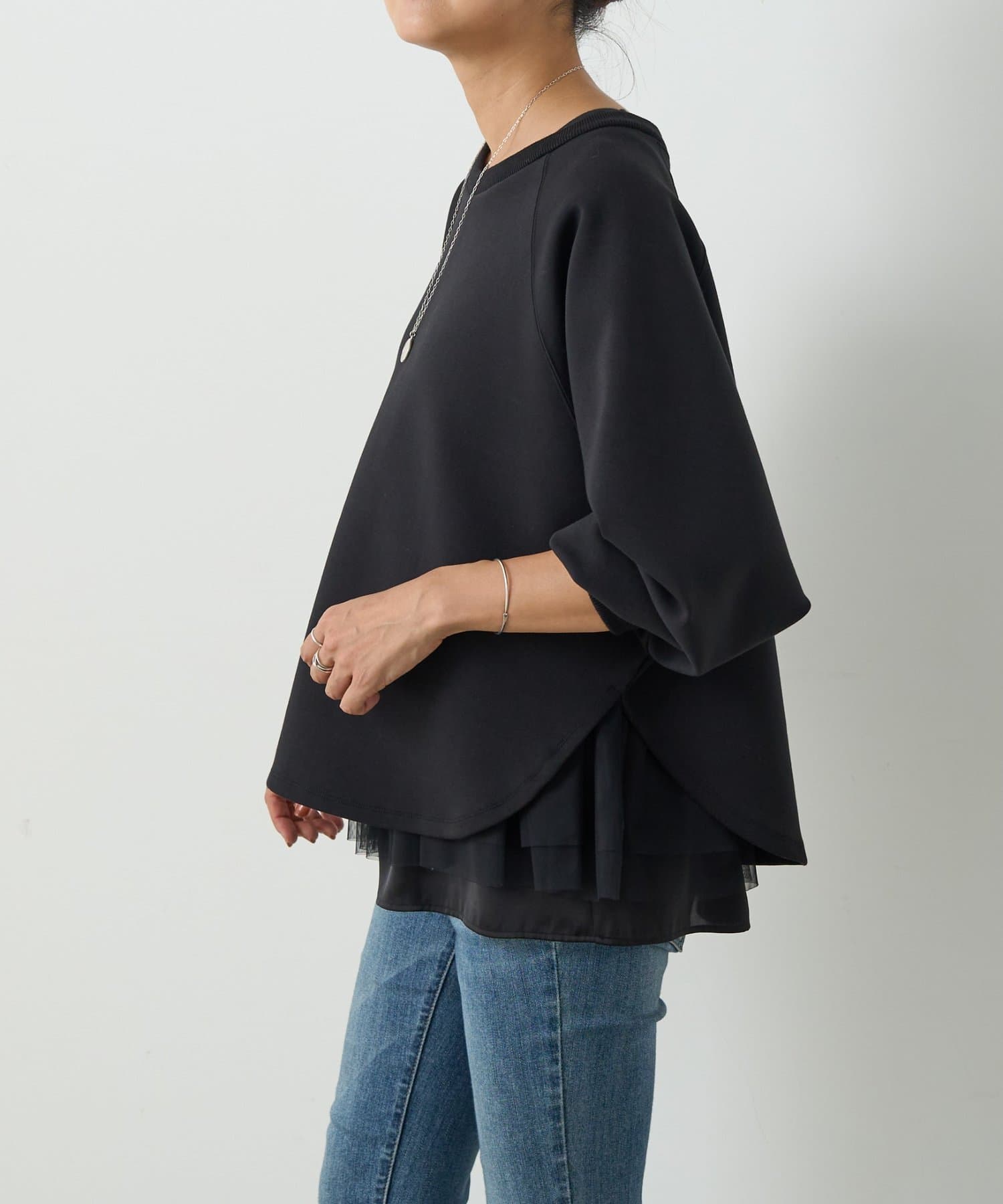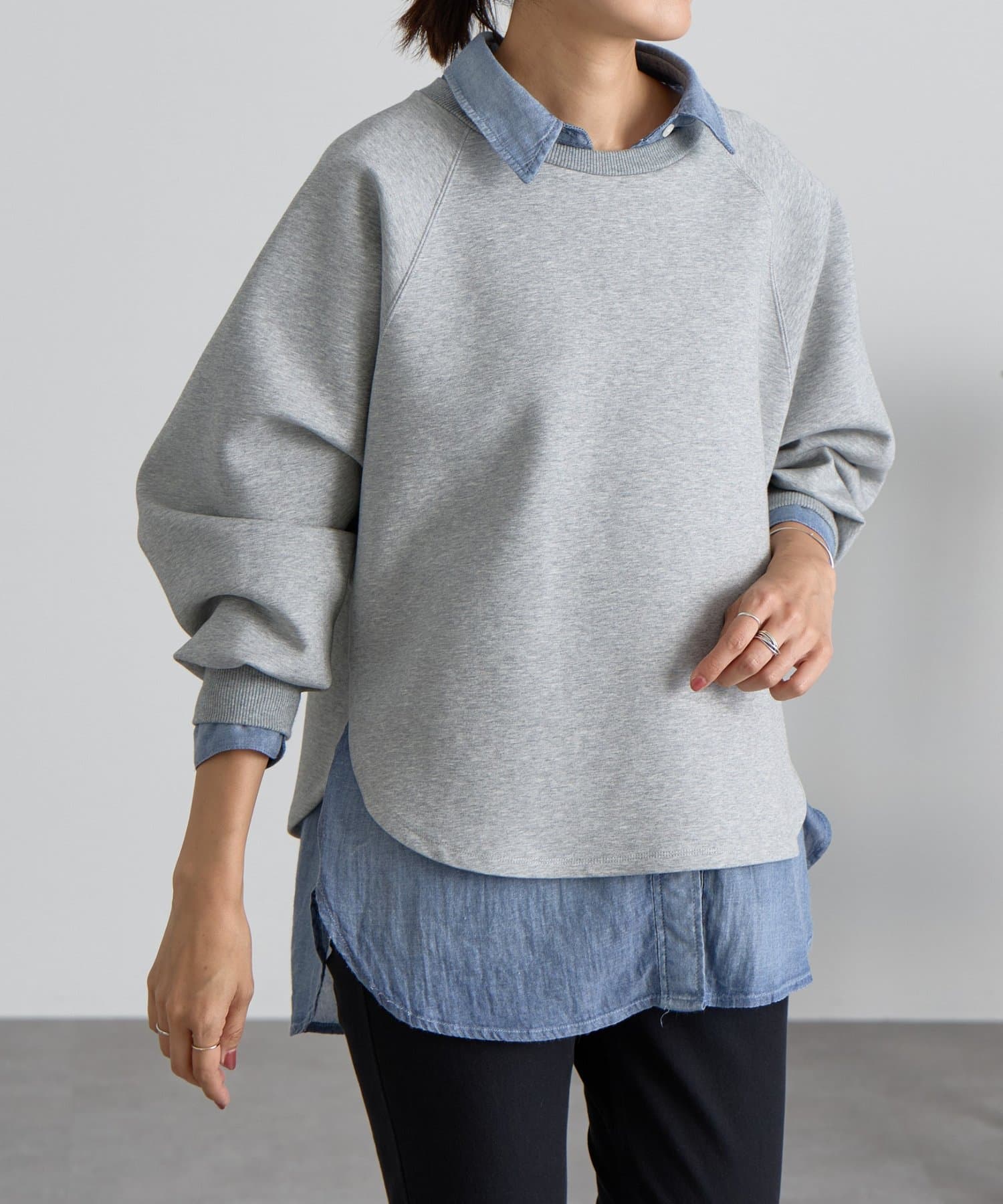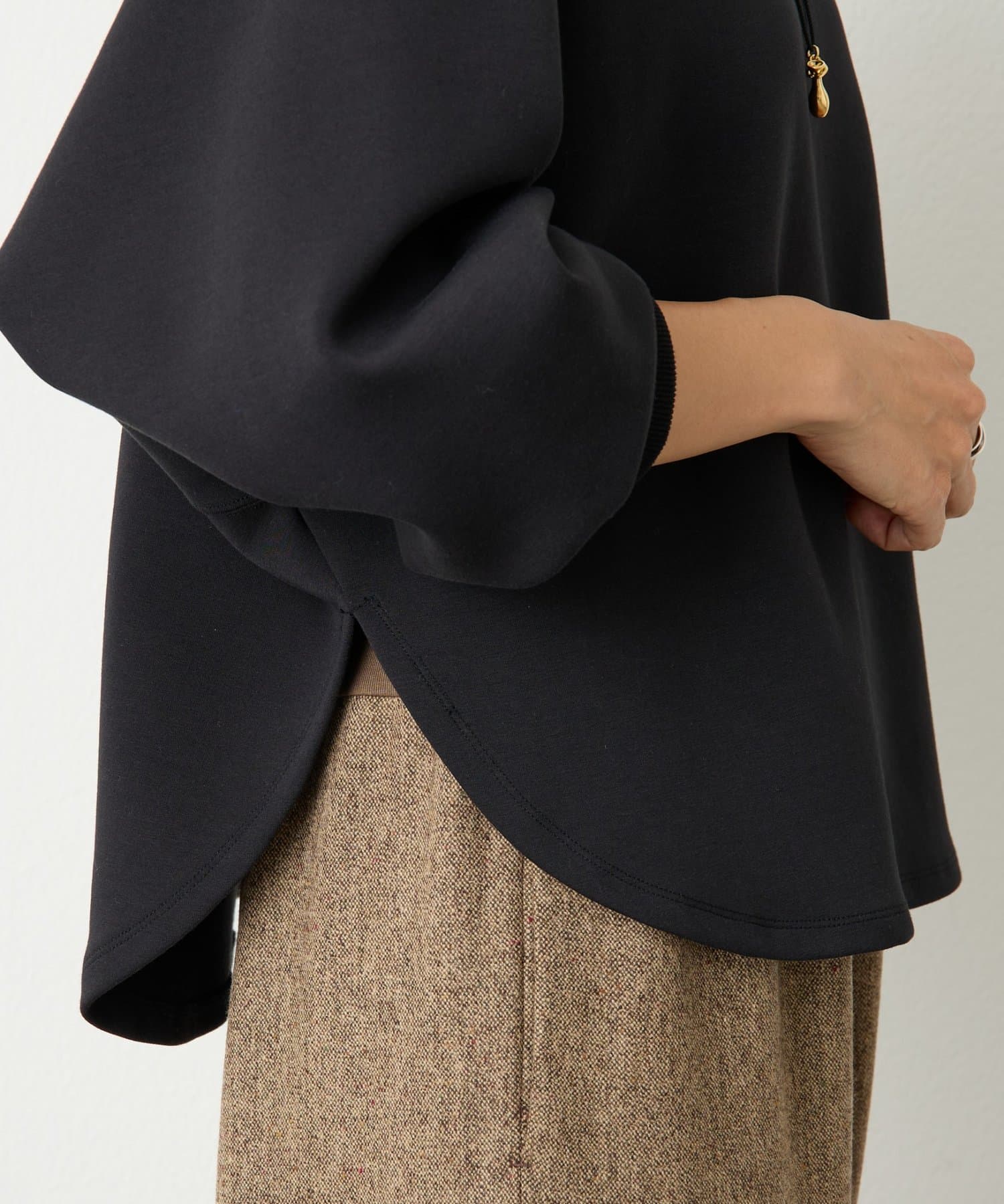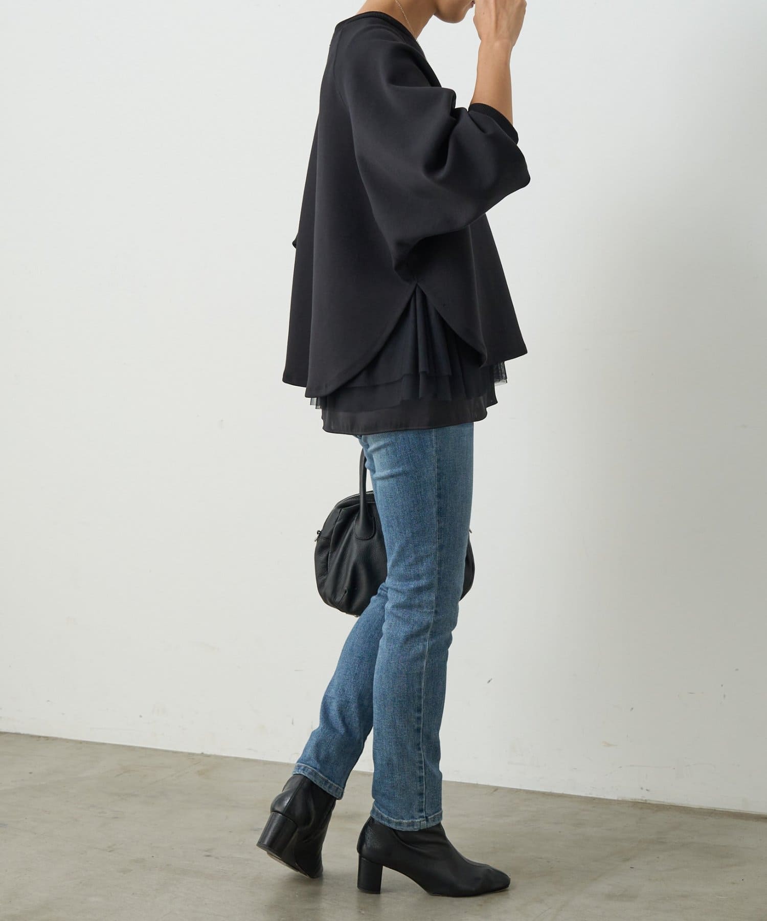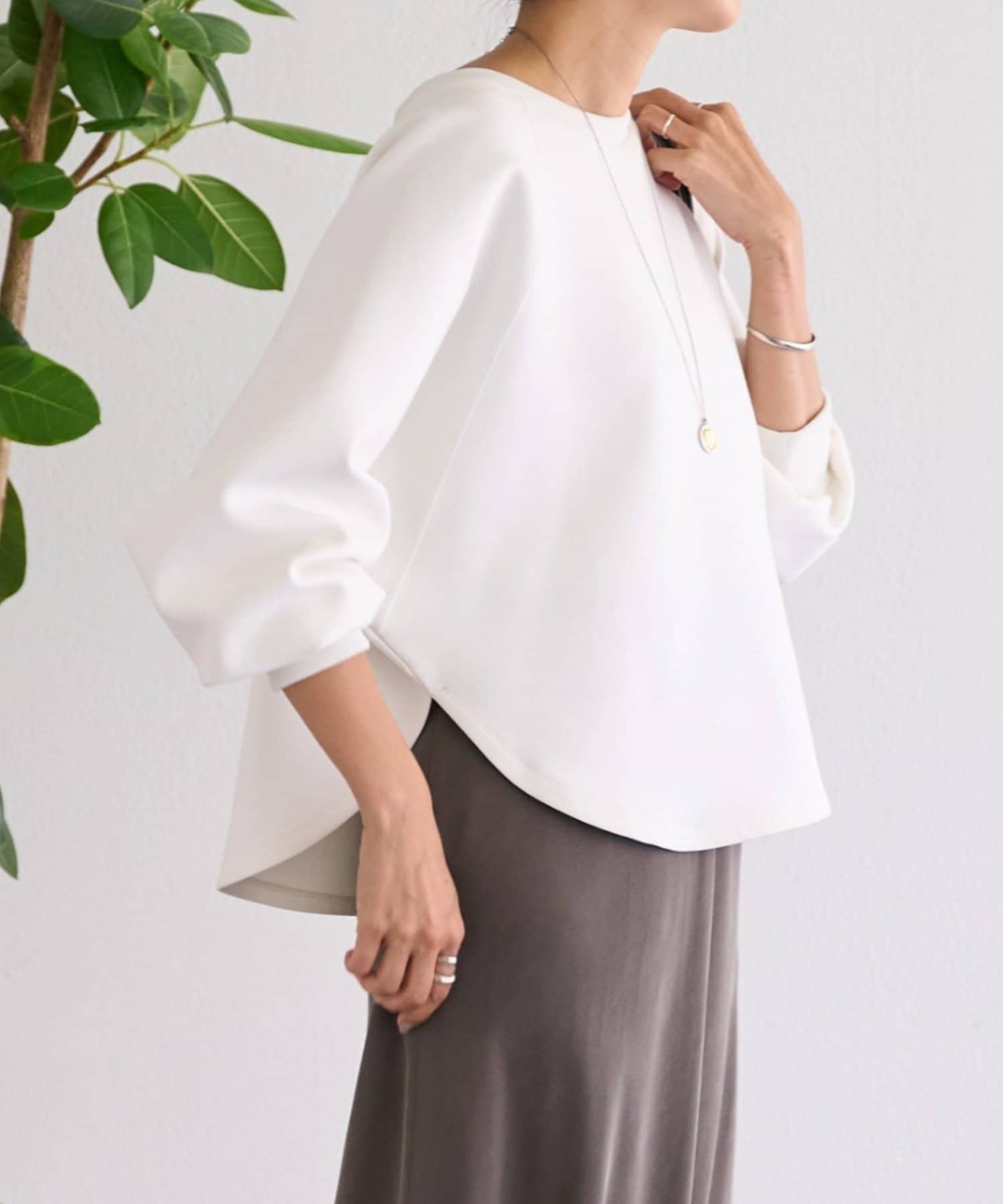 やや短丈ですが裾がラウンドカットになっており、レイヤードがしやすいデザインです。