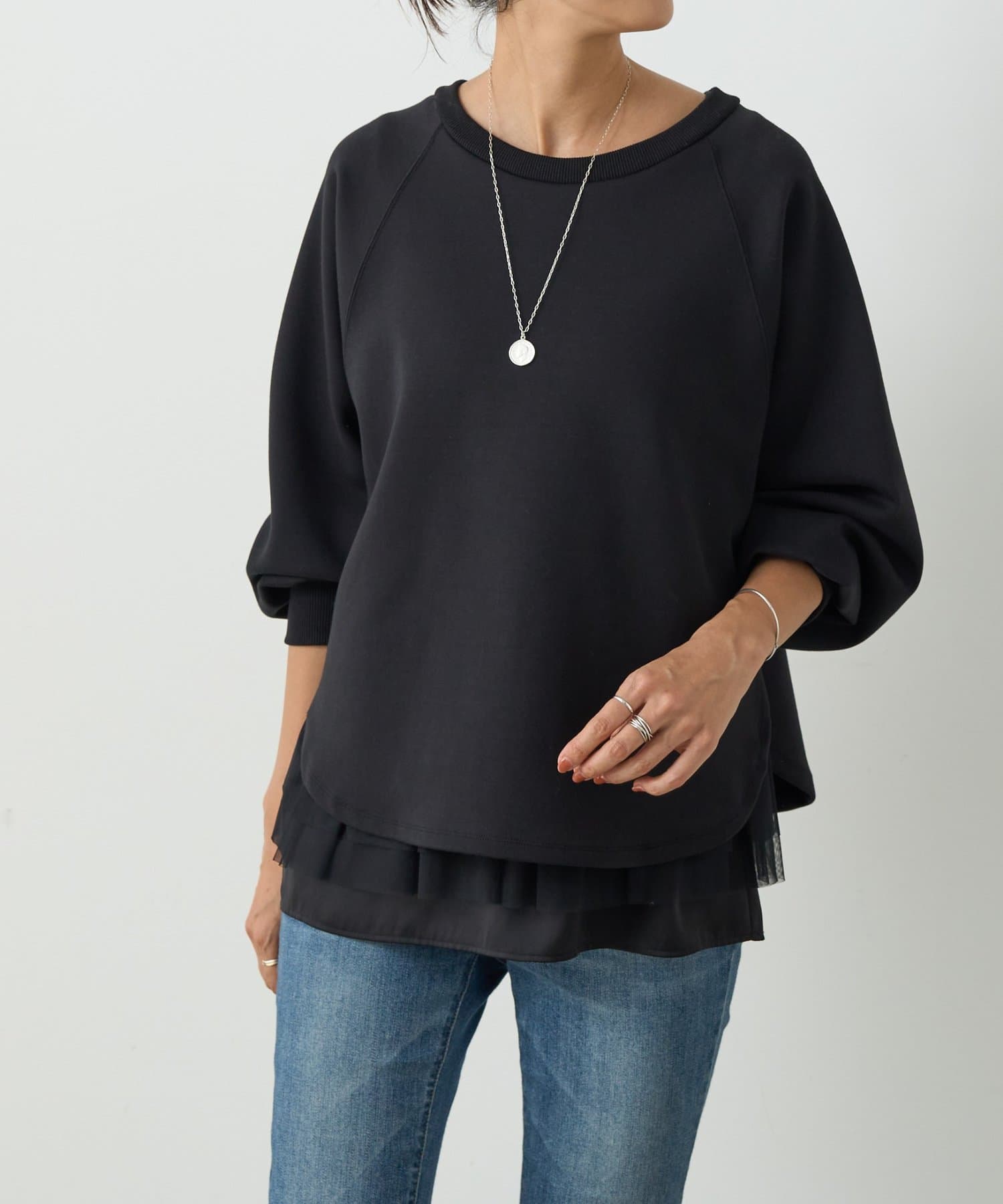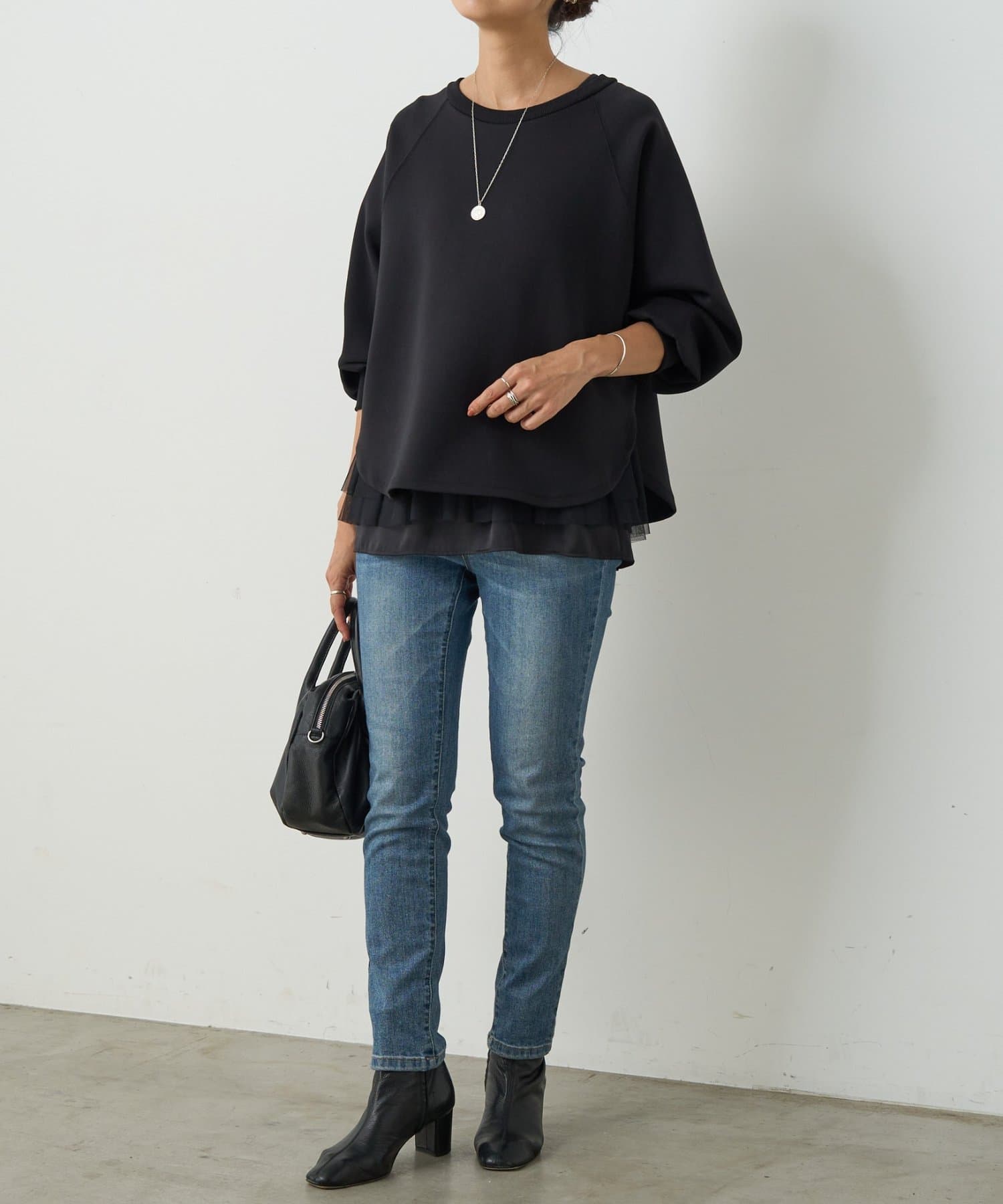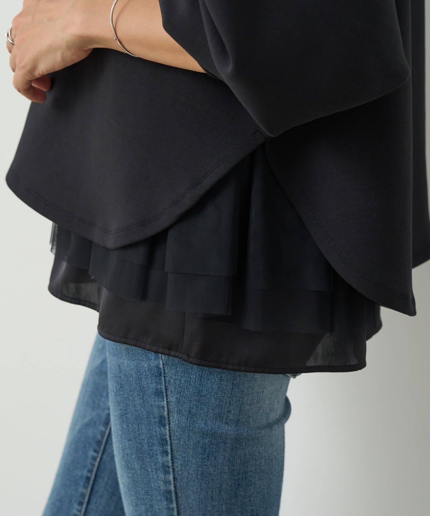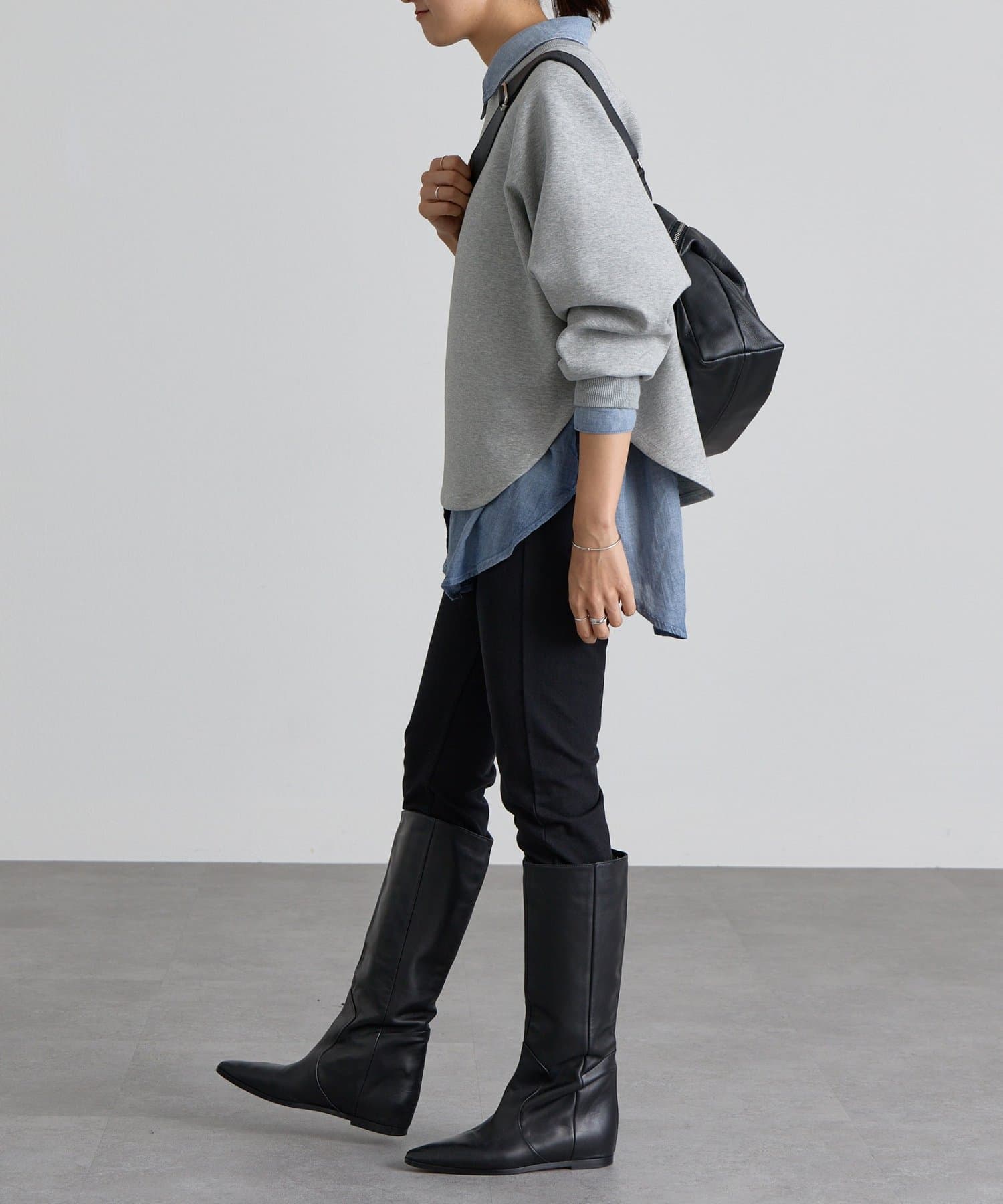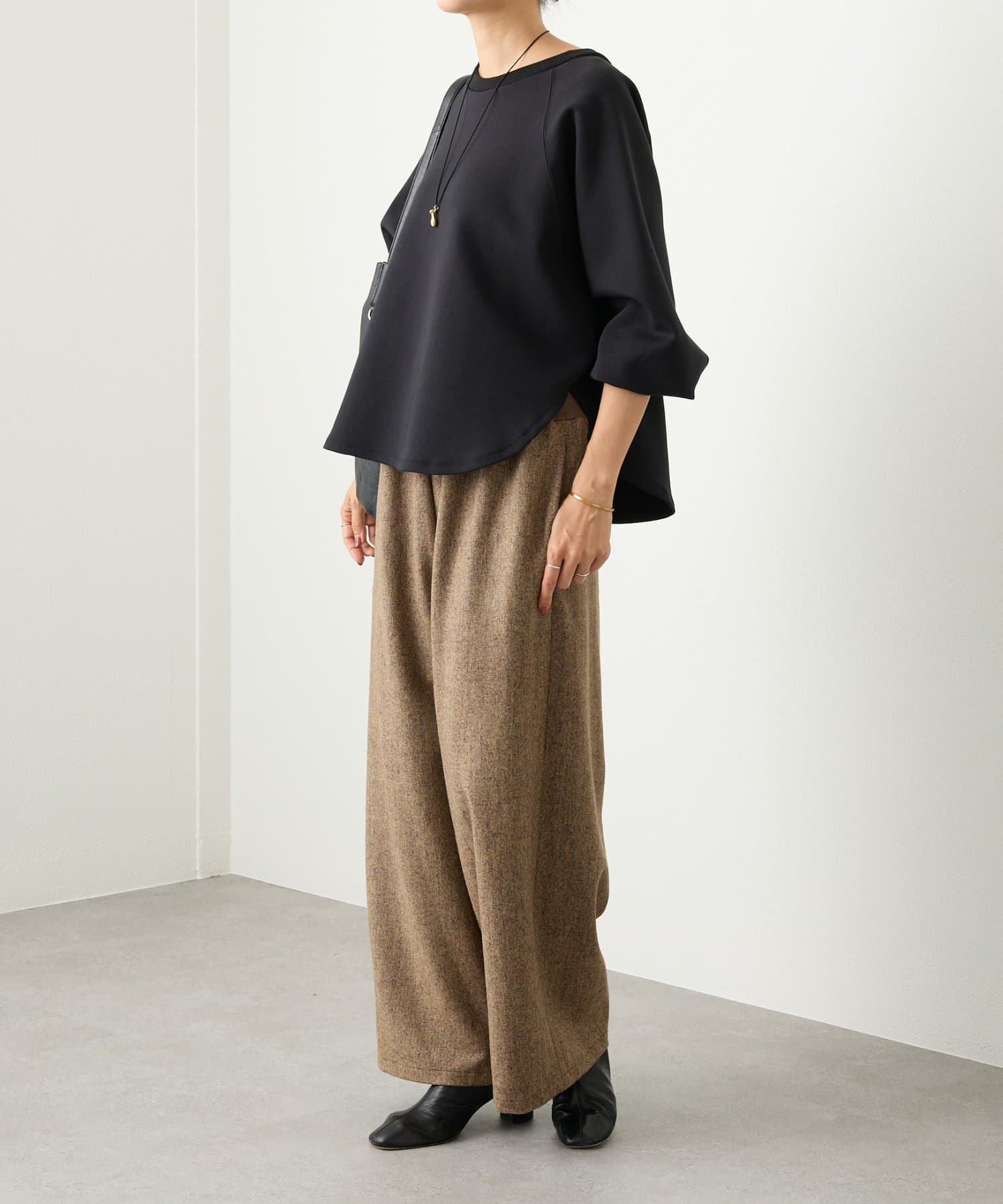 やや短丈ですが裾がラウンドカットになっており、レイヤードがしやすいデザインです。