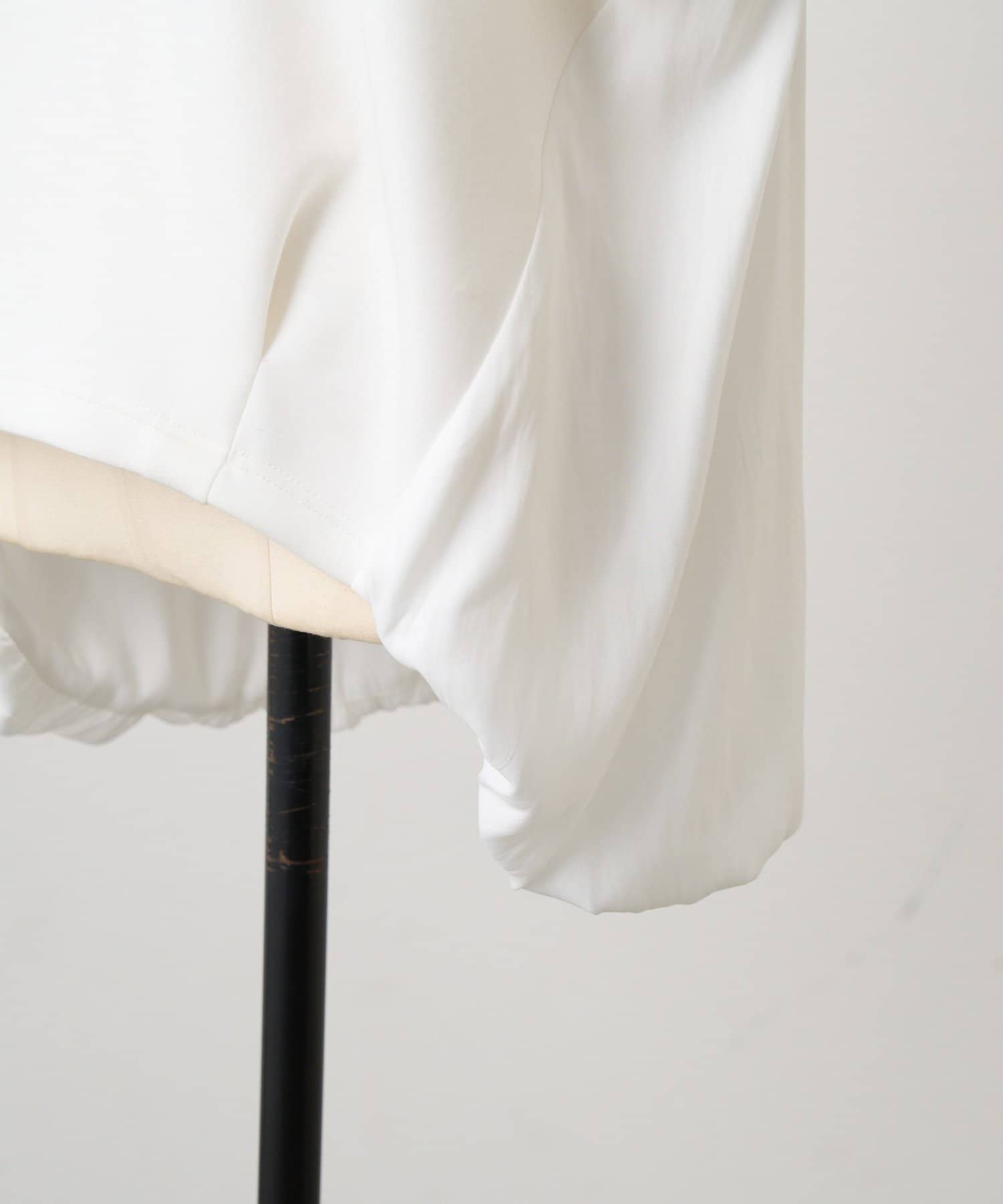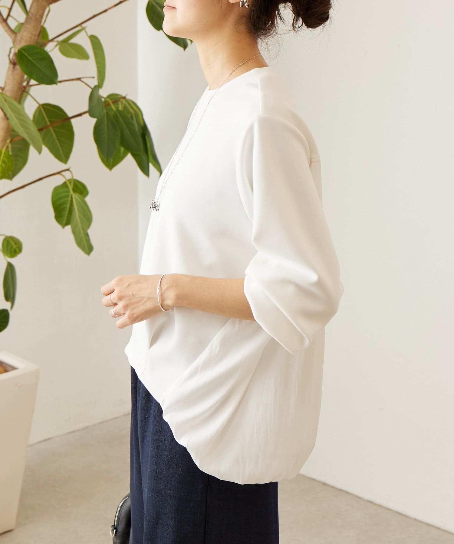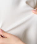 軽やかで程よく光沢のある生地が、サイドや後ろ姿にふんわりとしたニュアンスを添え、どの角度から見てもさり気なく華やか。