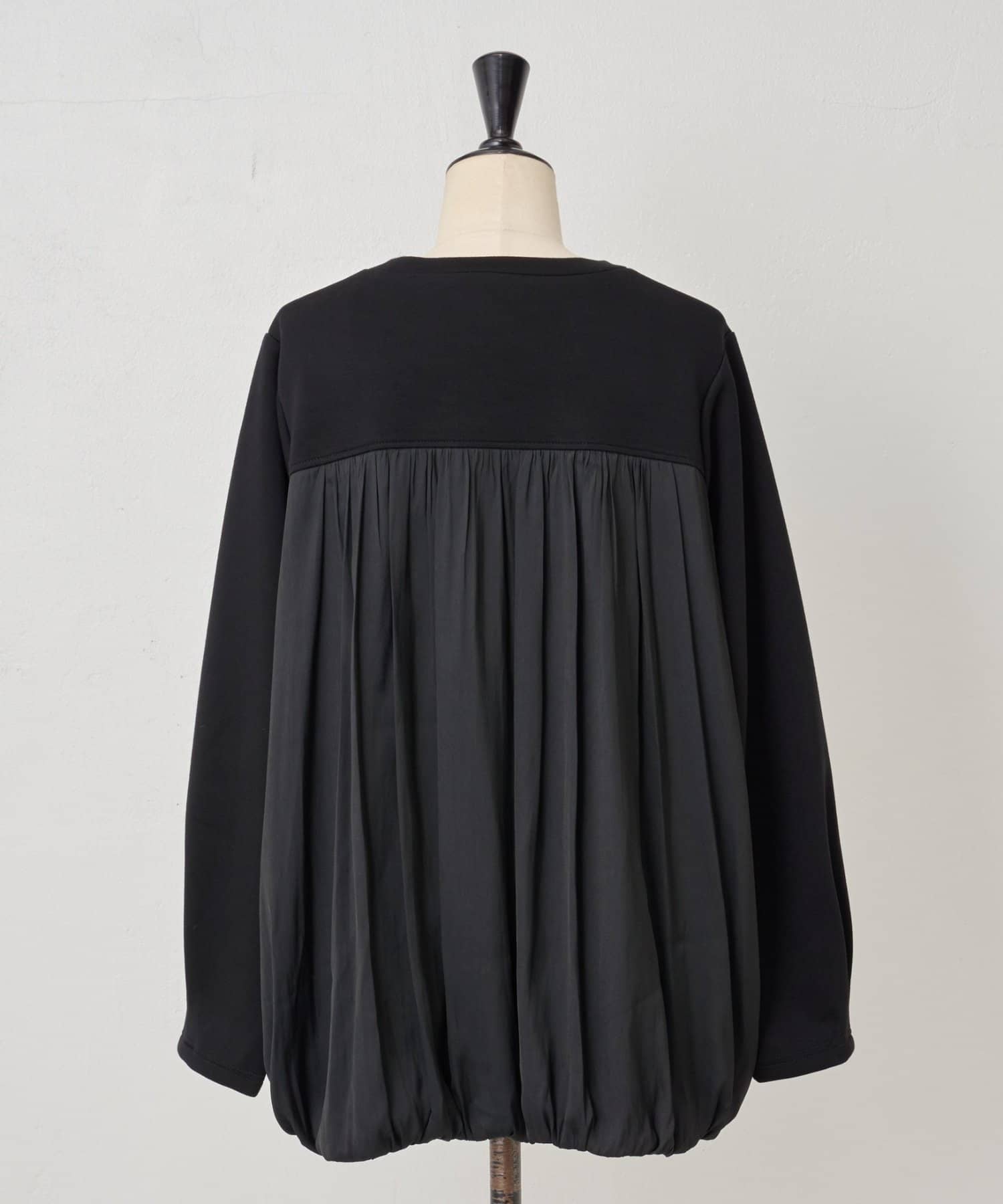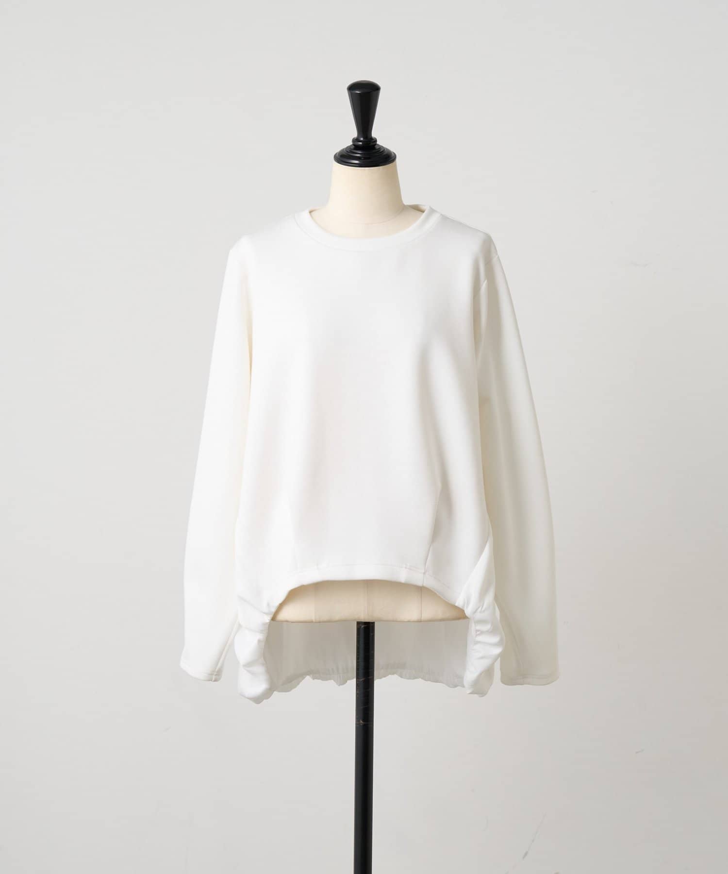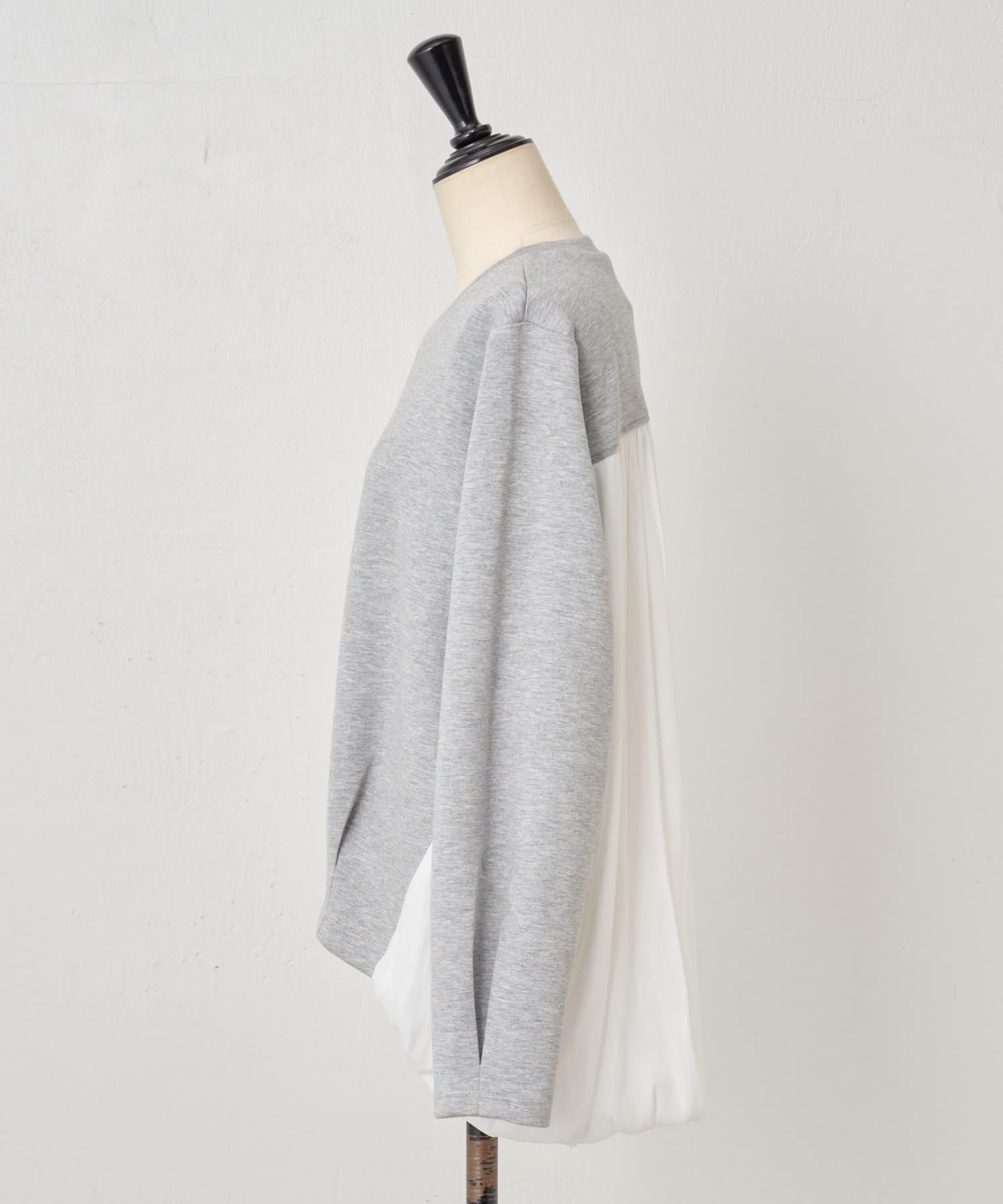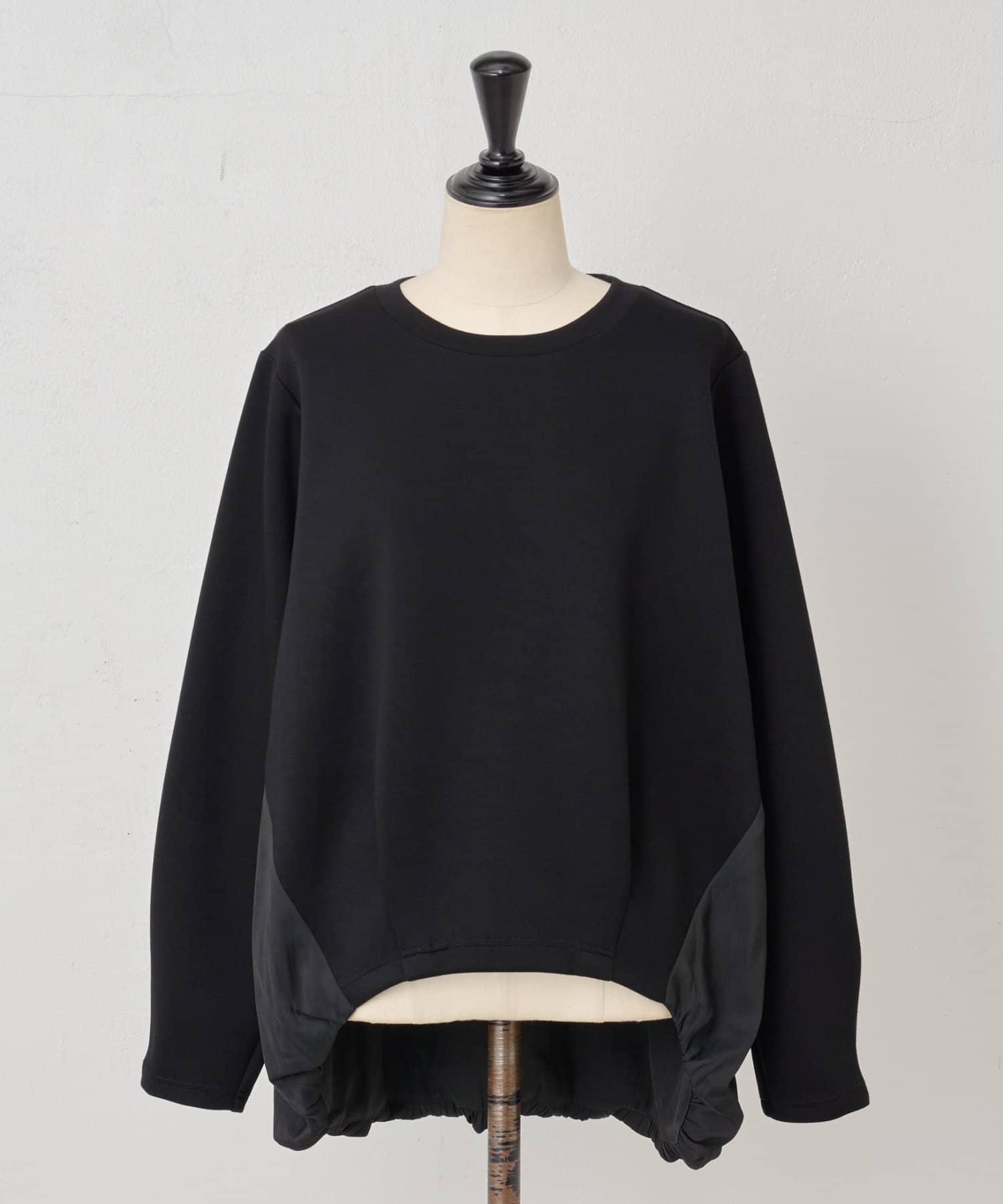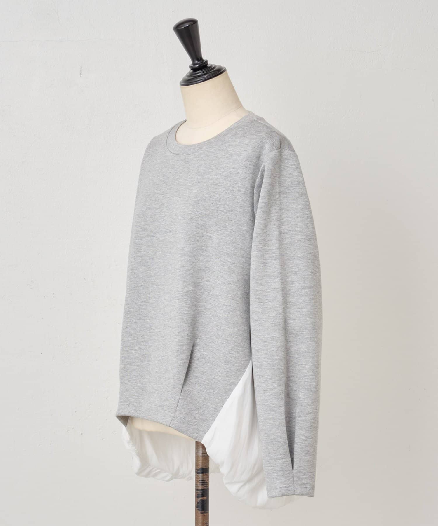 裾から後ろ身頃にかけて施された割繊素材との切り替えがポイントのプルオーバー。