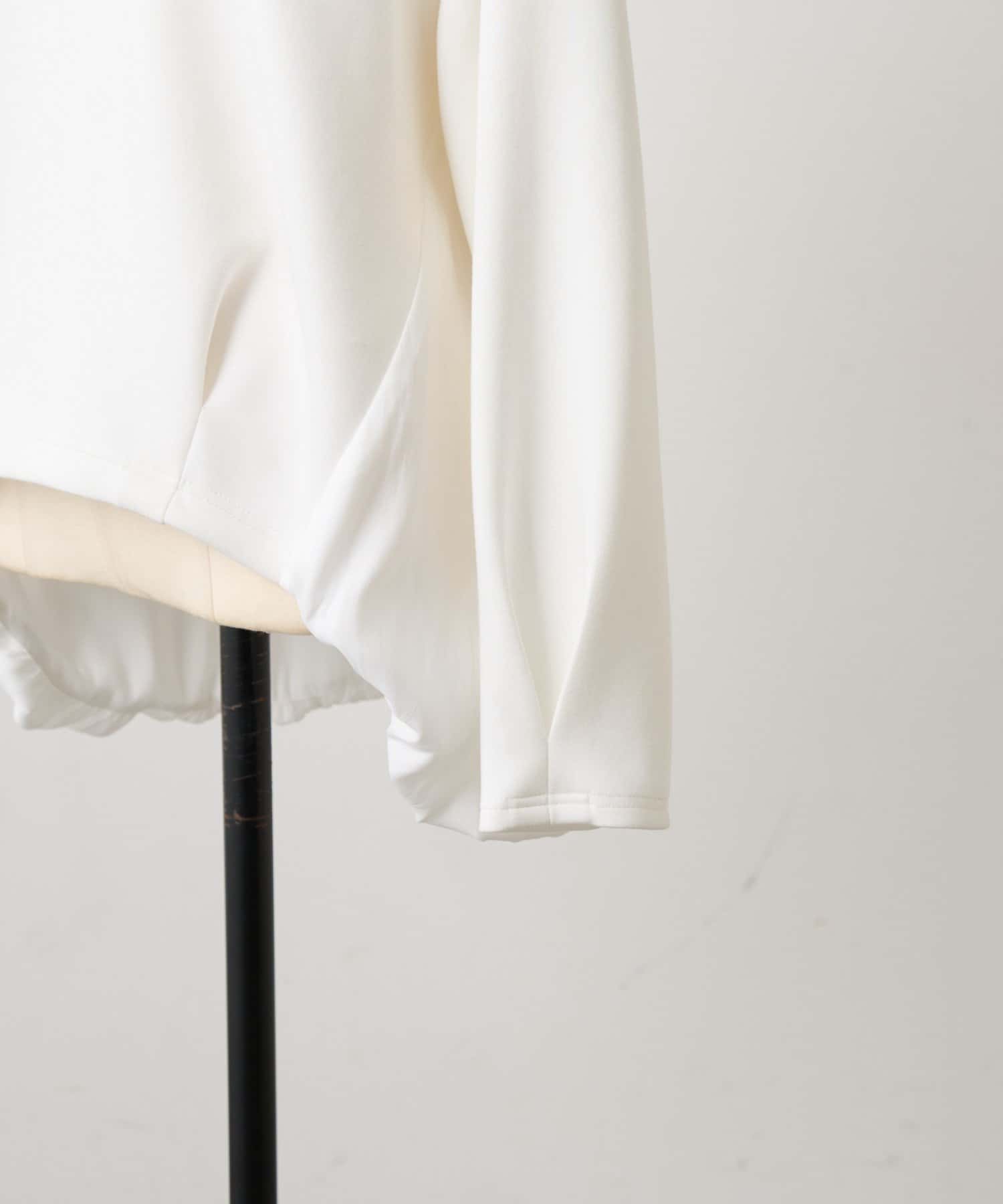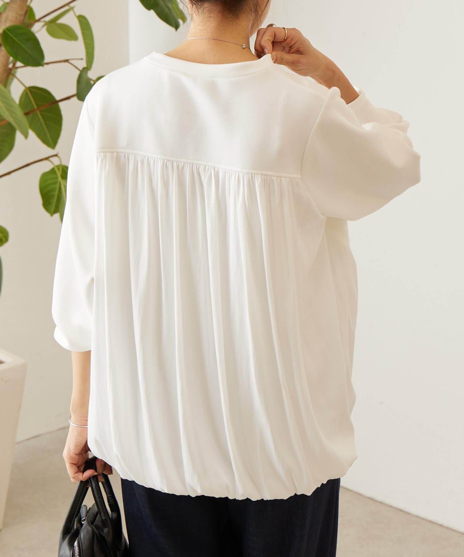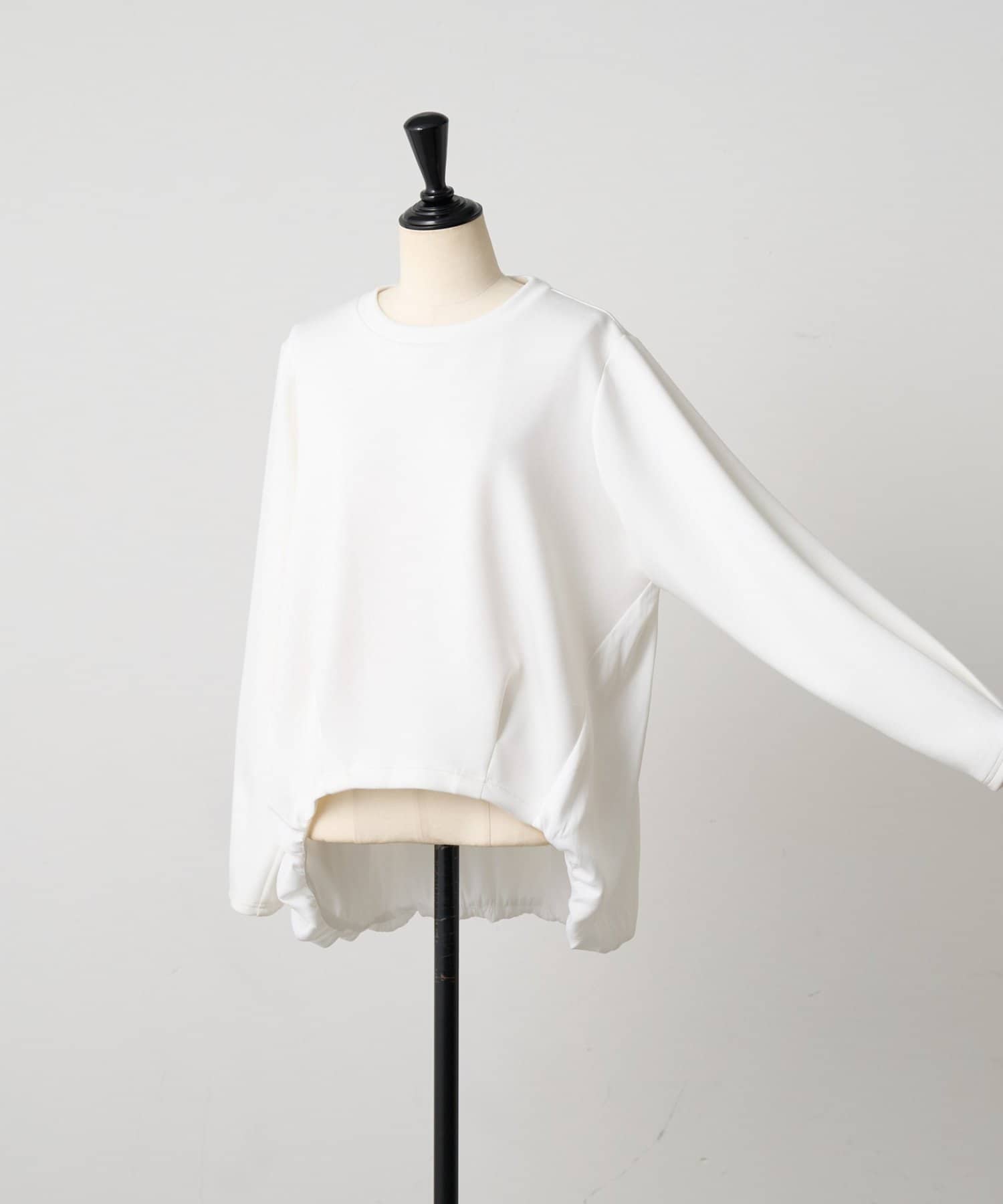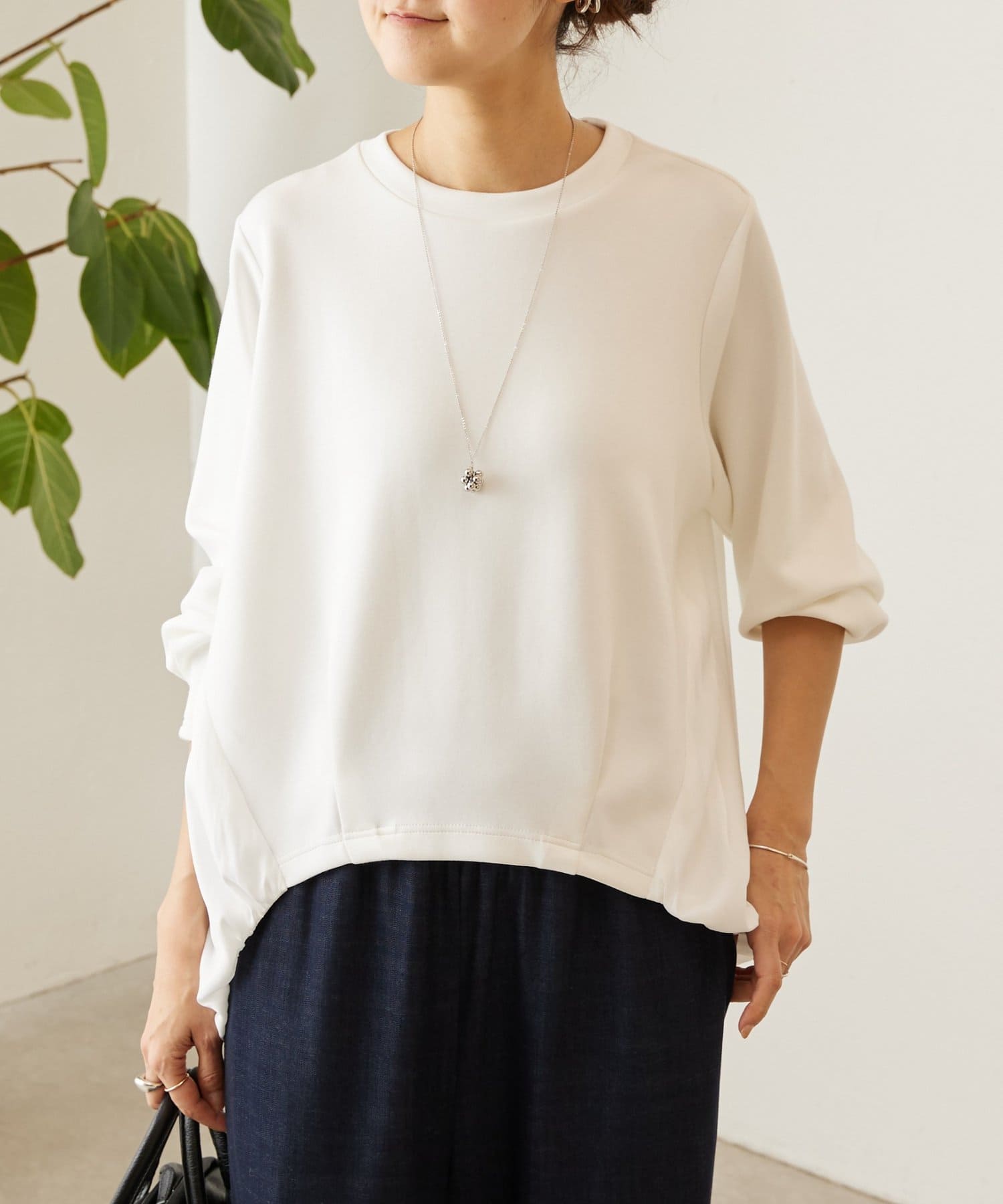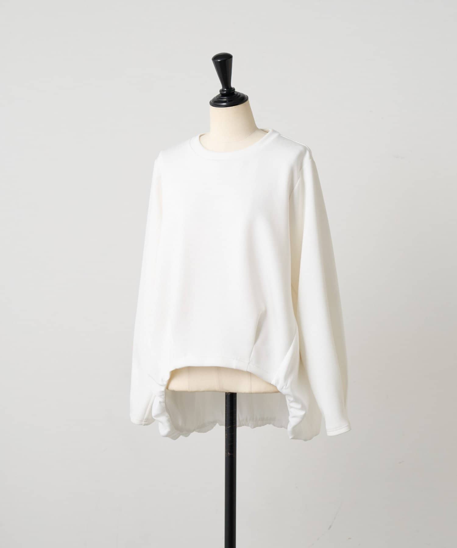 裾から後ろ身頃にかけて施された割繊素材との切り替えがポイントのプルオーバー。