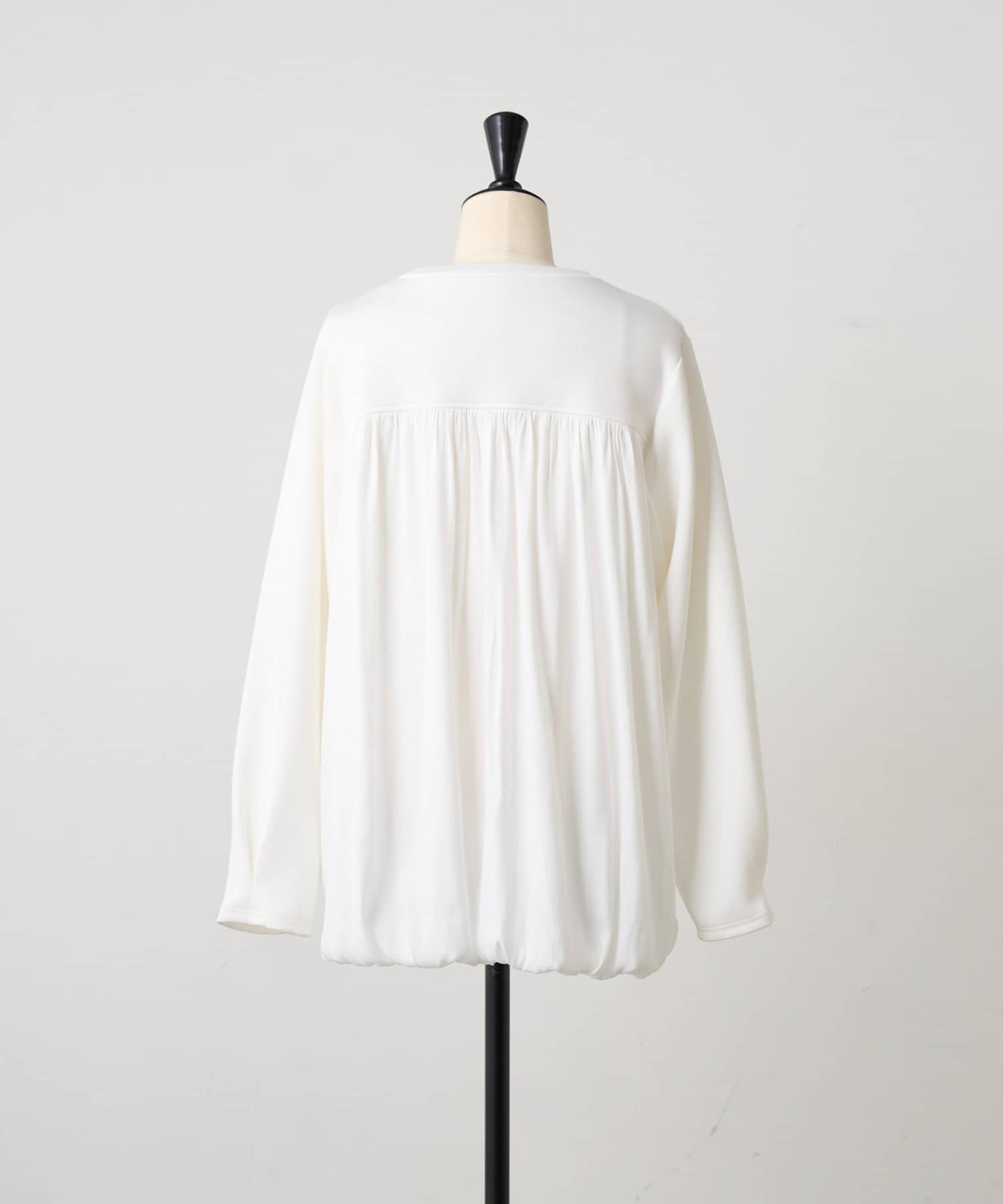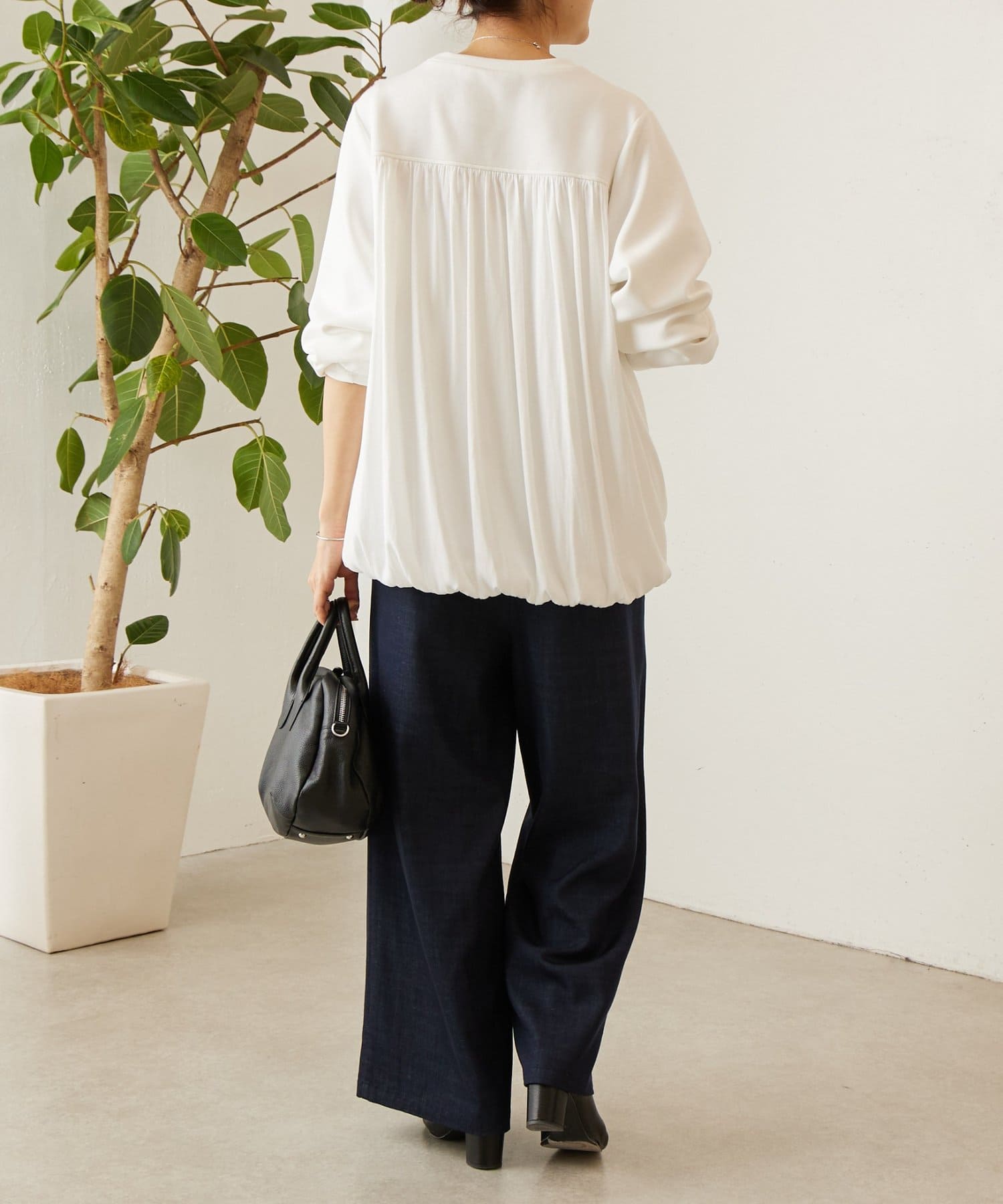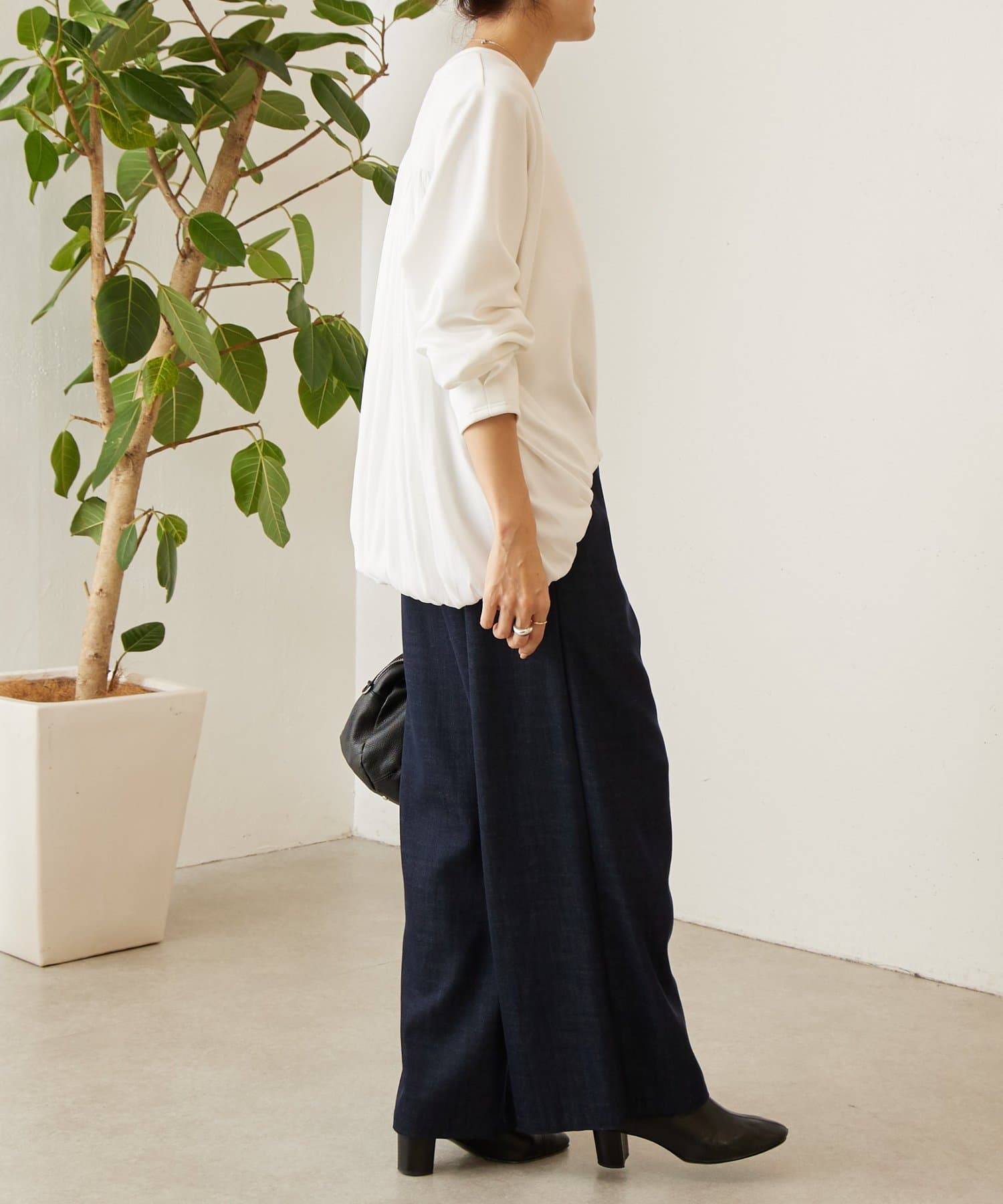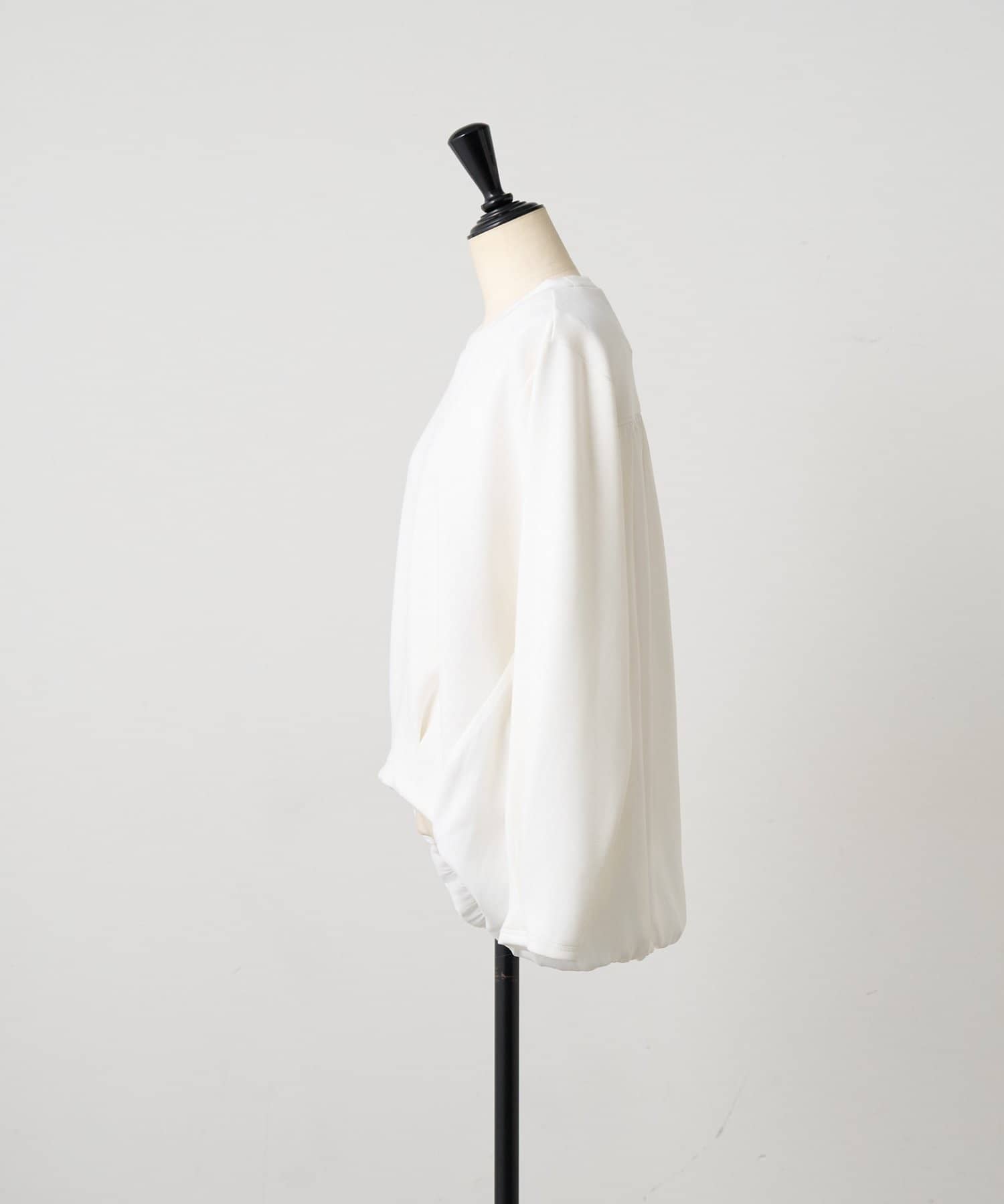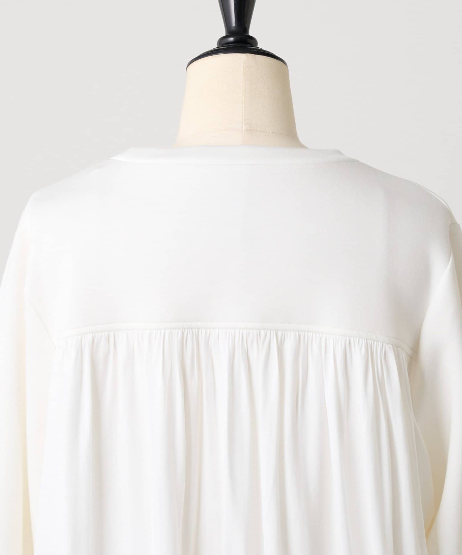 裾から後ろ身頃にかけて施された割繊素材との切り替えがポイントのプルオーバー。