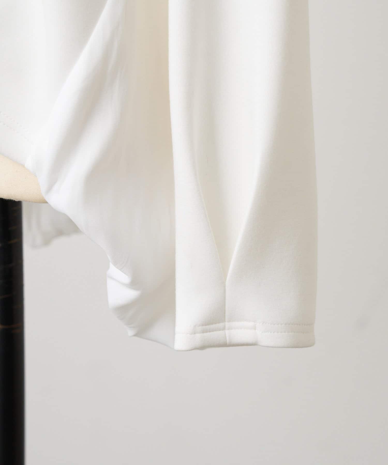 とても柔らかい生地で気持ちがいいです。前の裾のカットが1枚で着てもオシャレに見せてくれ、後ろのひらひらする感じがかわいいです。ただ袖が長くて袖口も広いので、たくし上げるには寒くなって来た時にどう着ようか悩みます。
