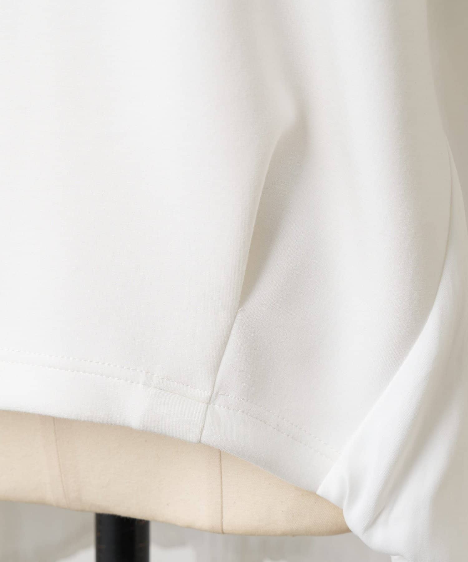 前身頃は伸縮性に優れたカットソー生地で柔らかい着心地。
