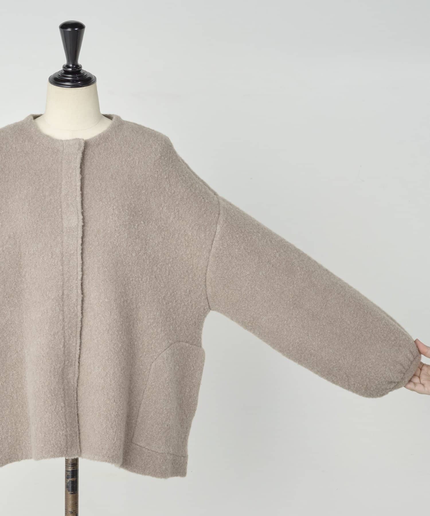 カーディガン感覚で気軽に羽織れる気軽なニットコート。