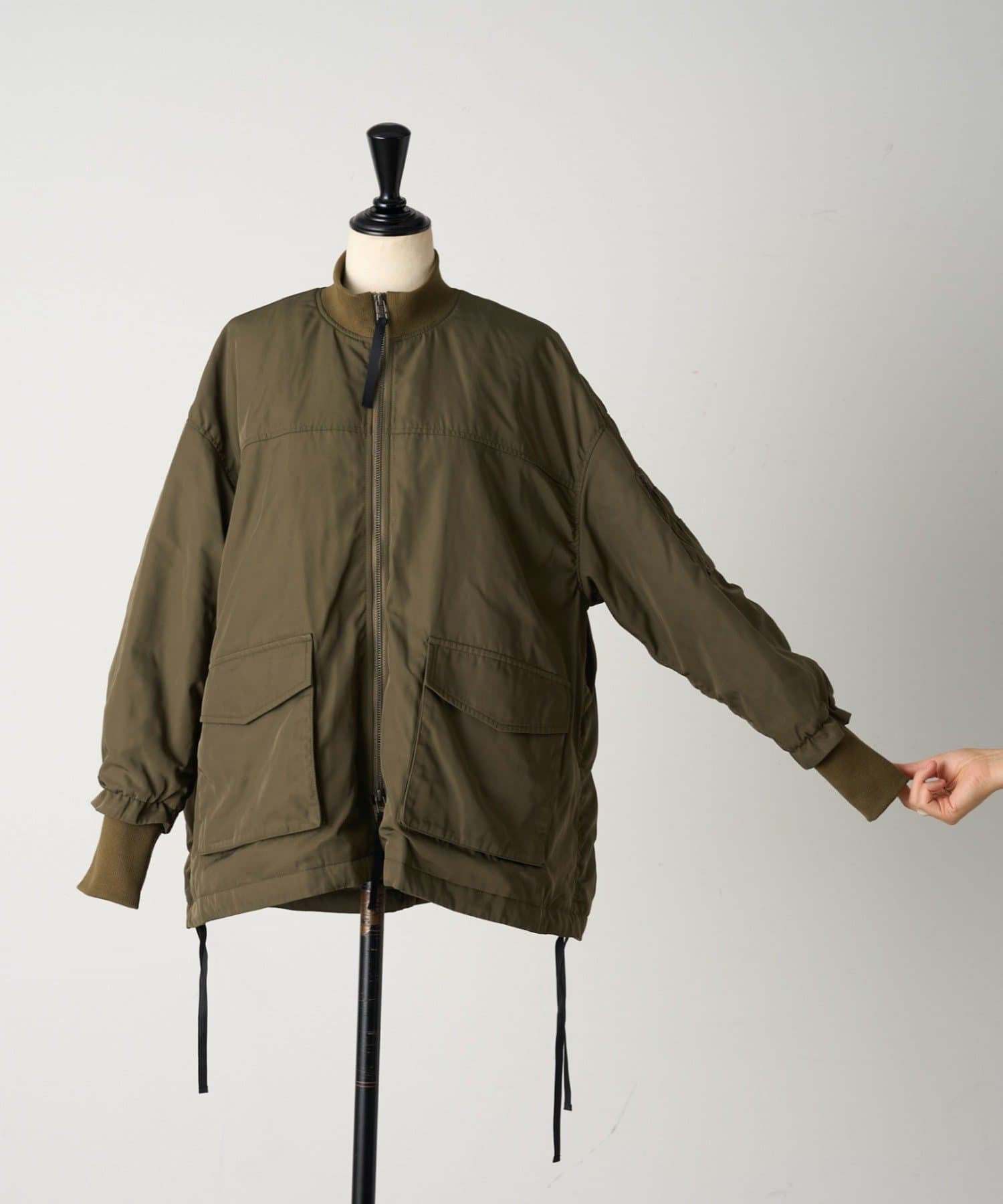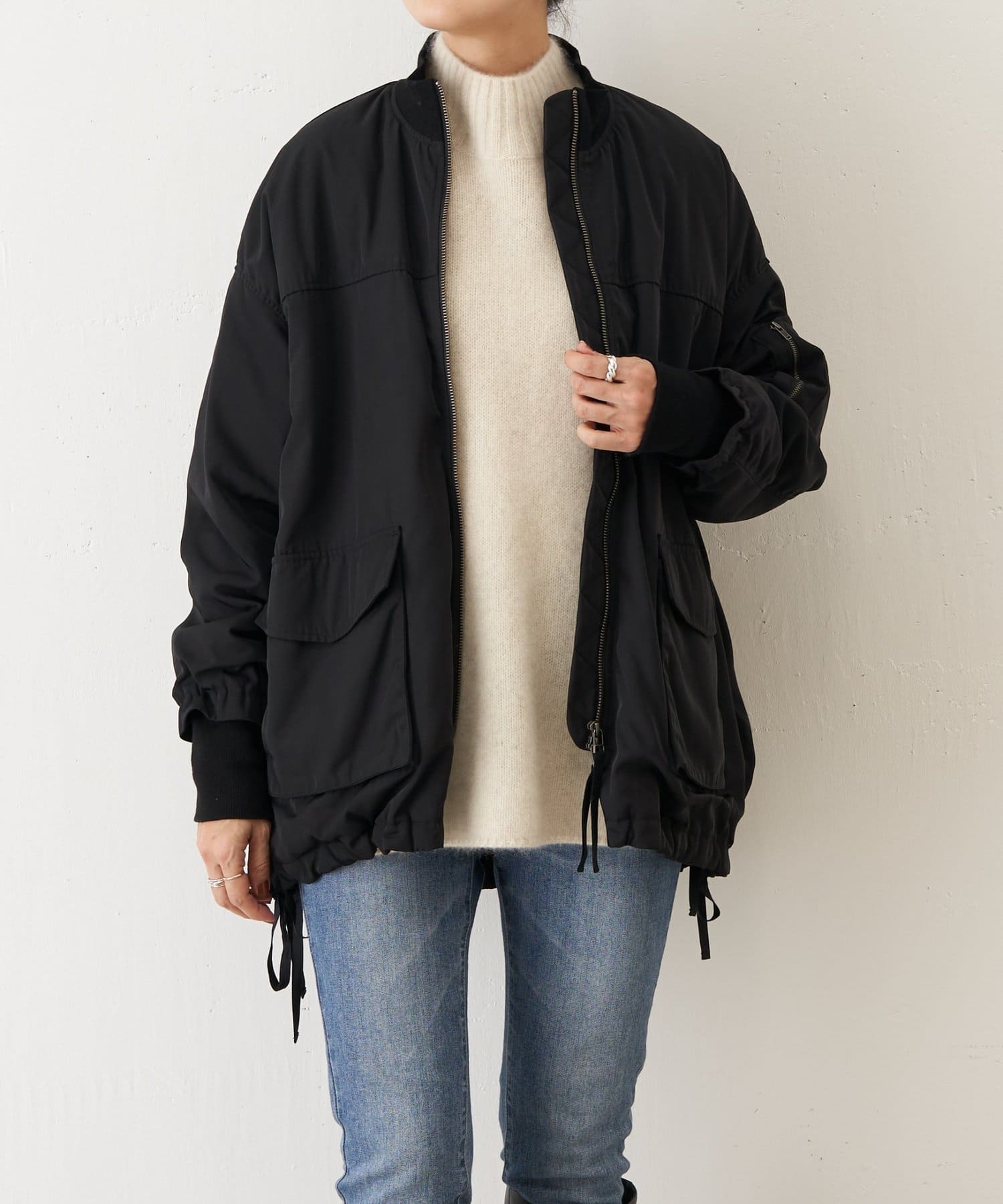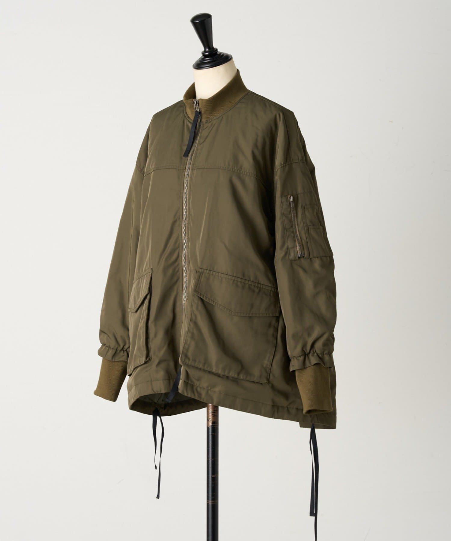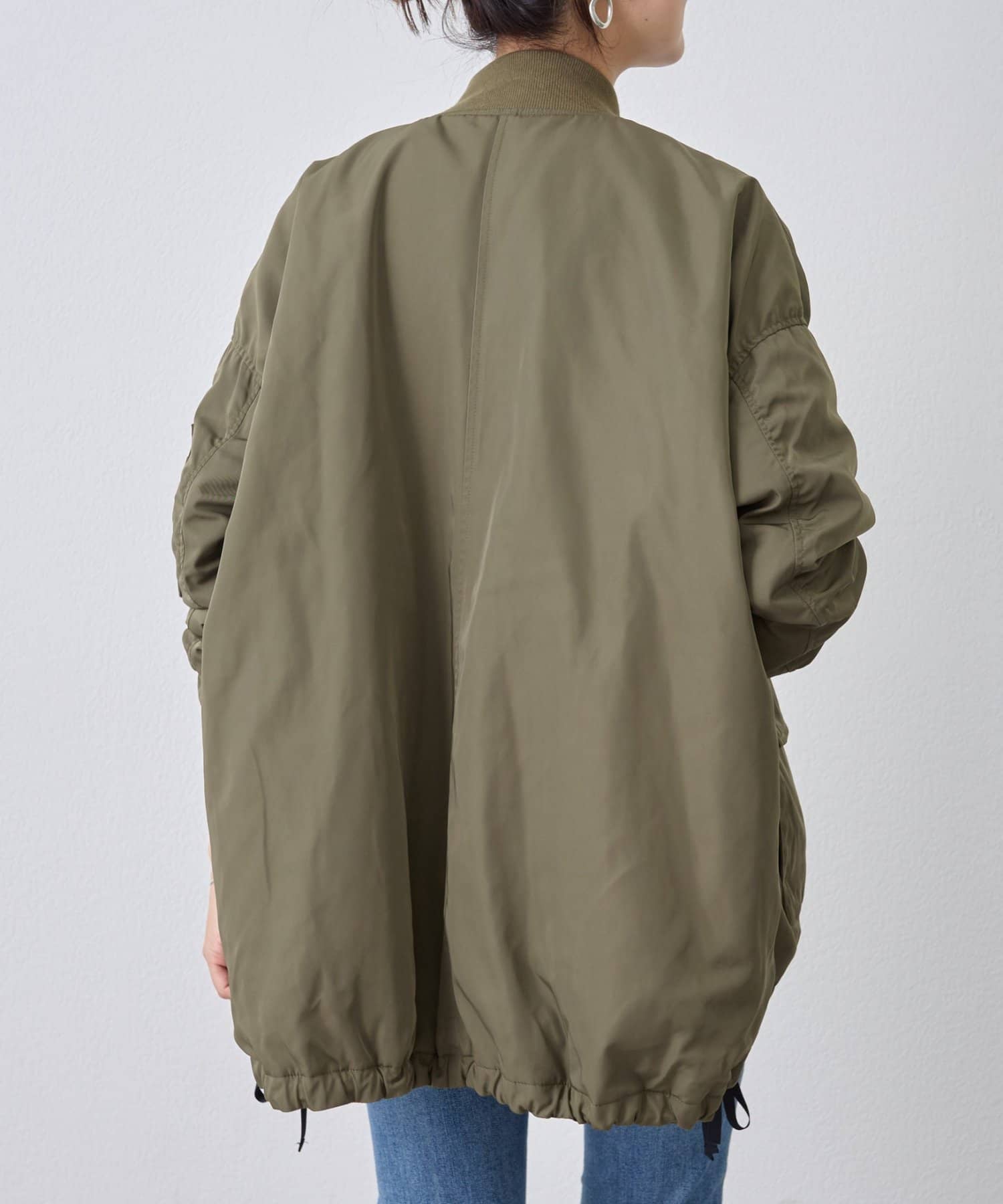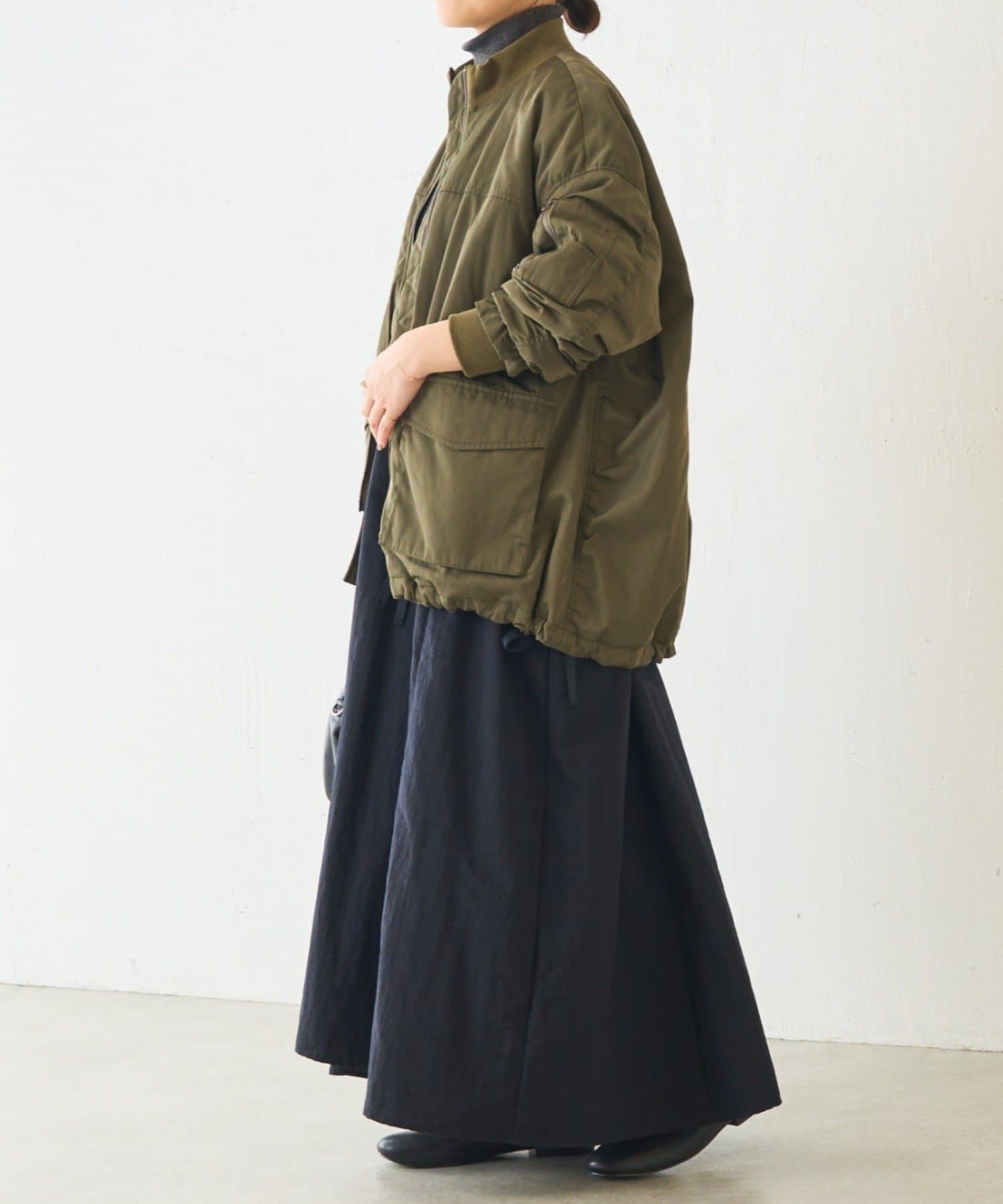 フライトジャケットがルーツのメンズイメージがあるMA-1を、裾をフレアにしやや着丈を長めにアレンジ。