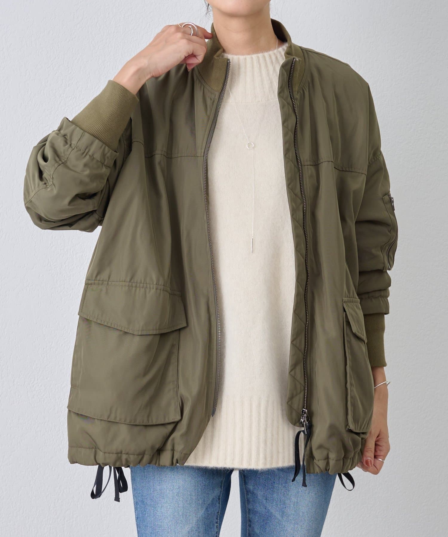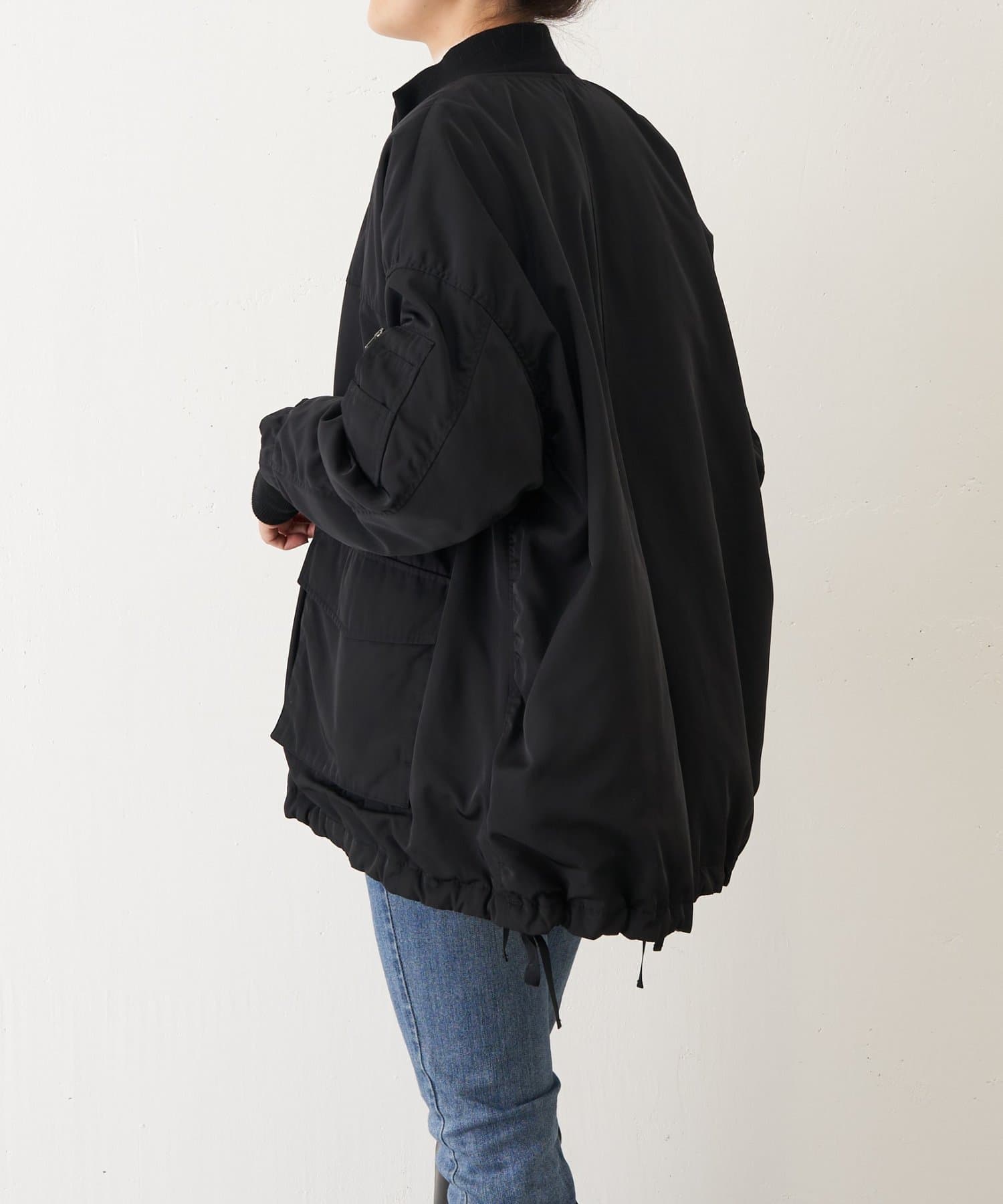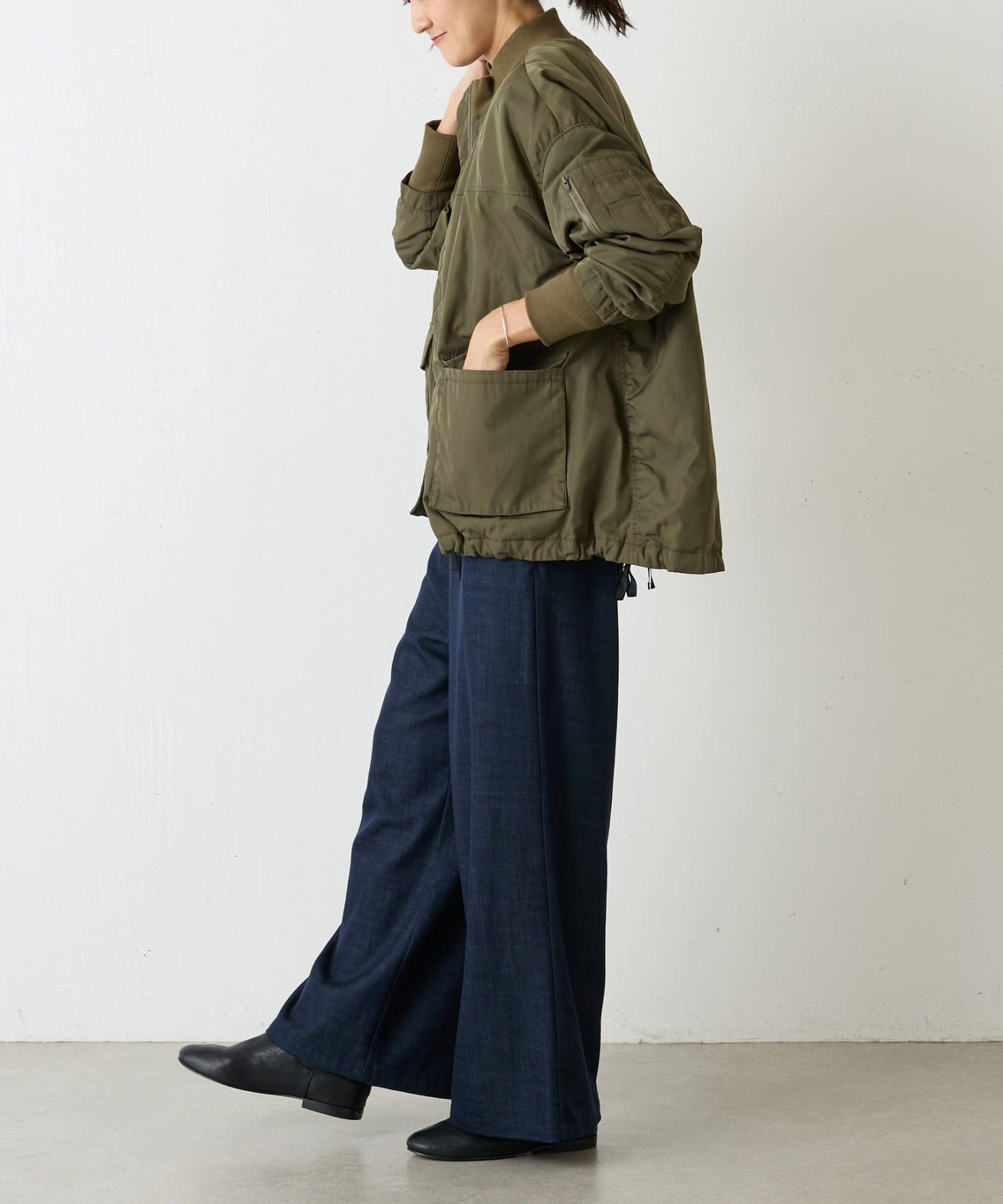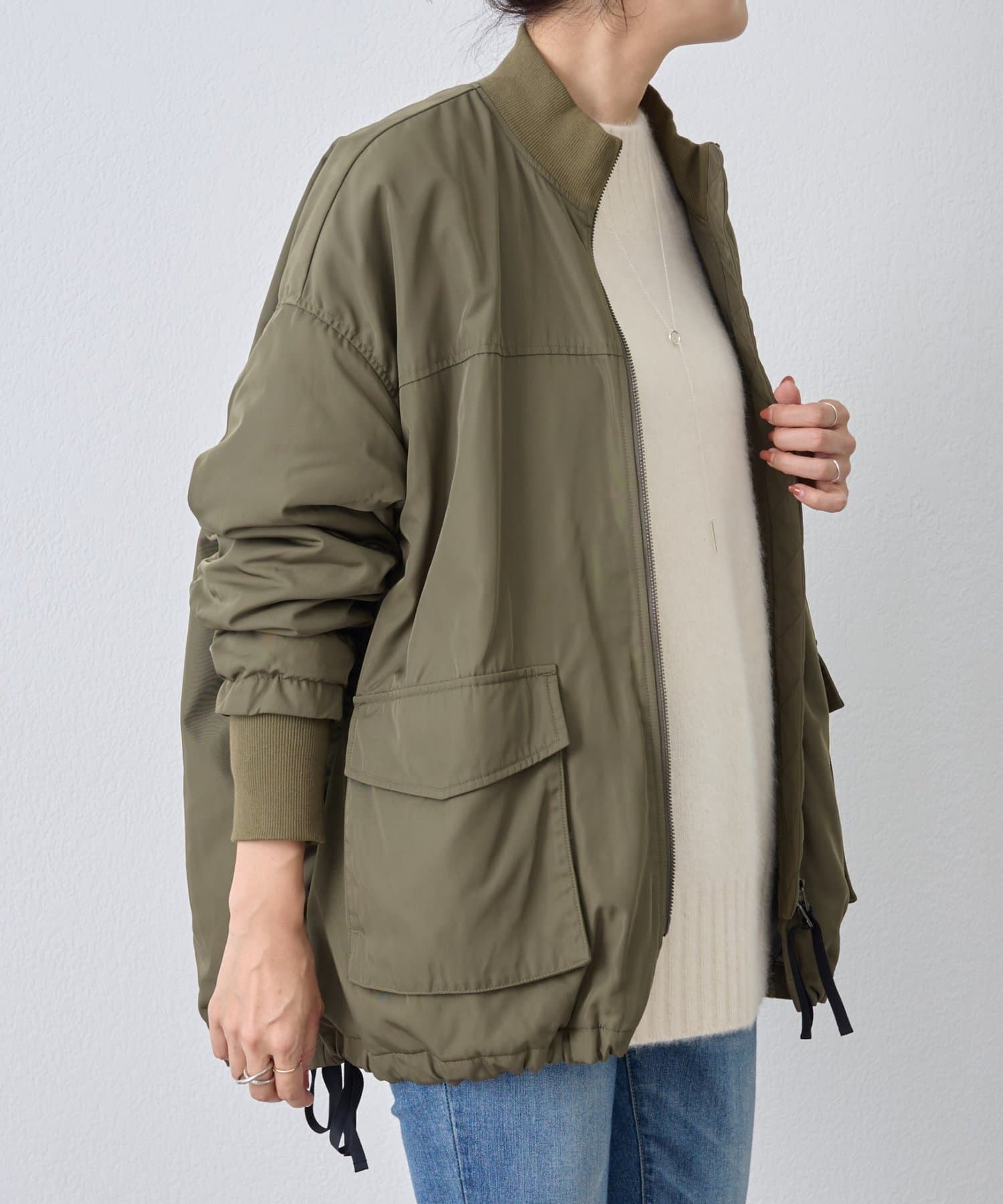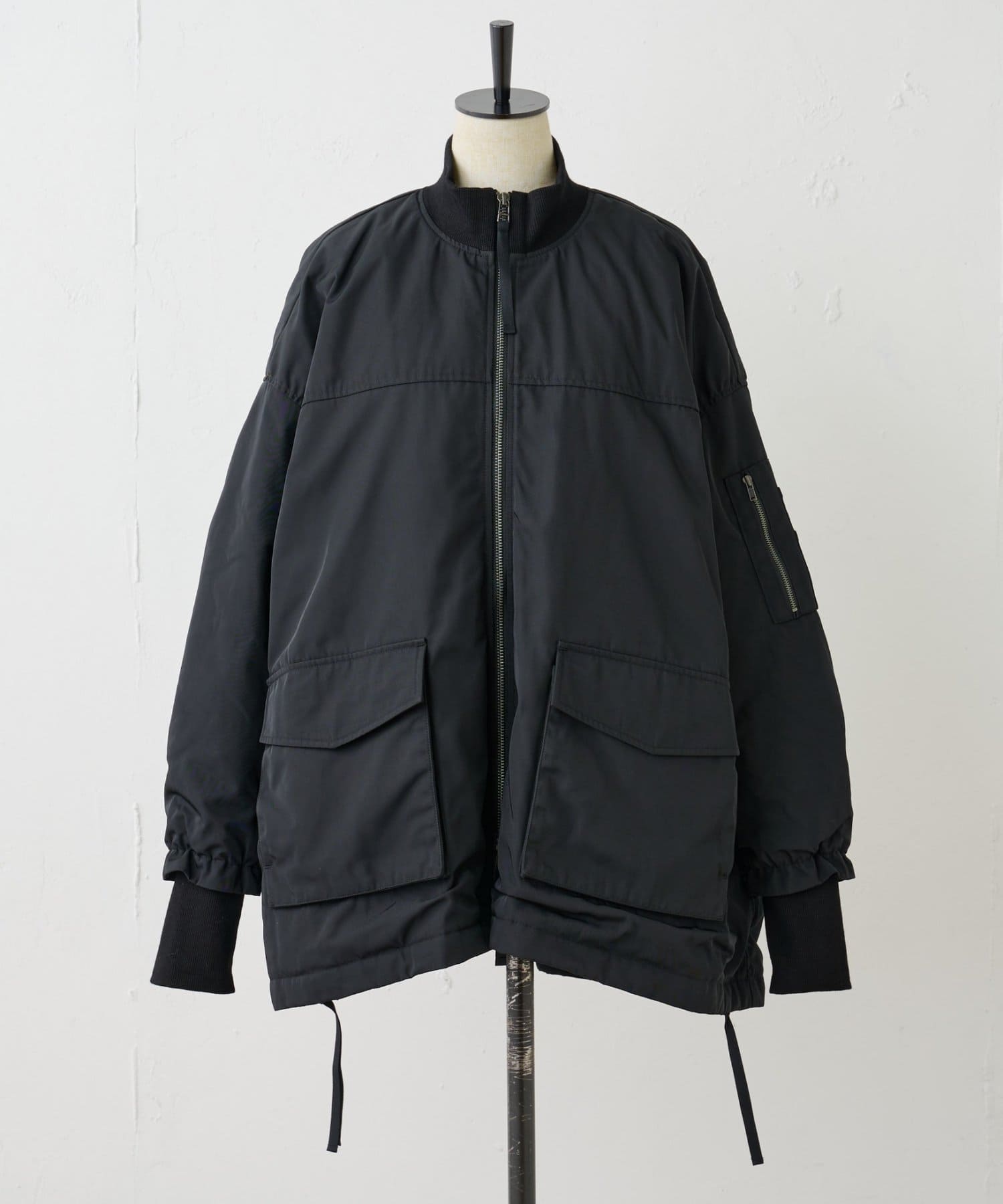 フライトジャケットがルーツのメンズイメージがあるMA-1を、裾をフレアにしやや着丈を長めにアレンジ。