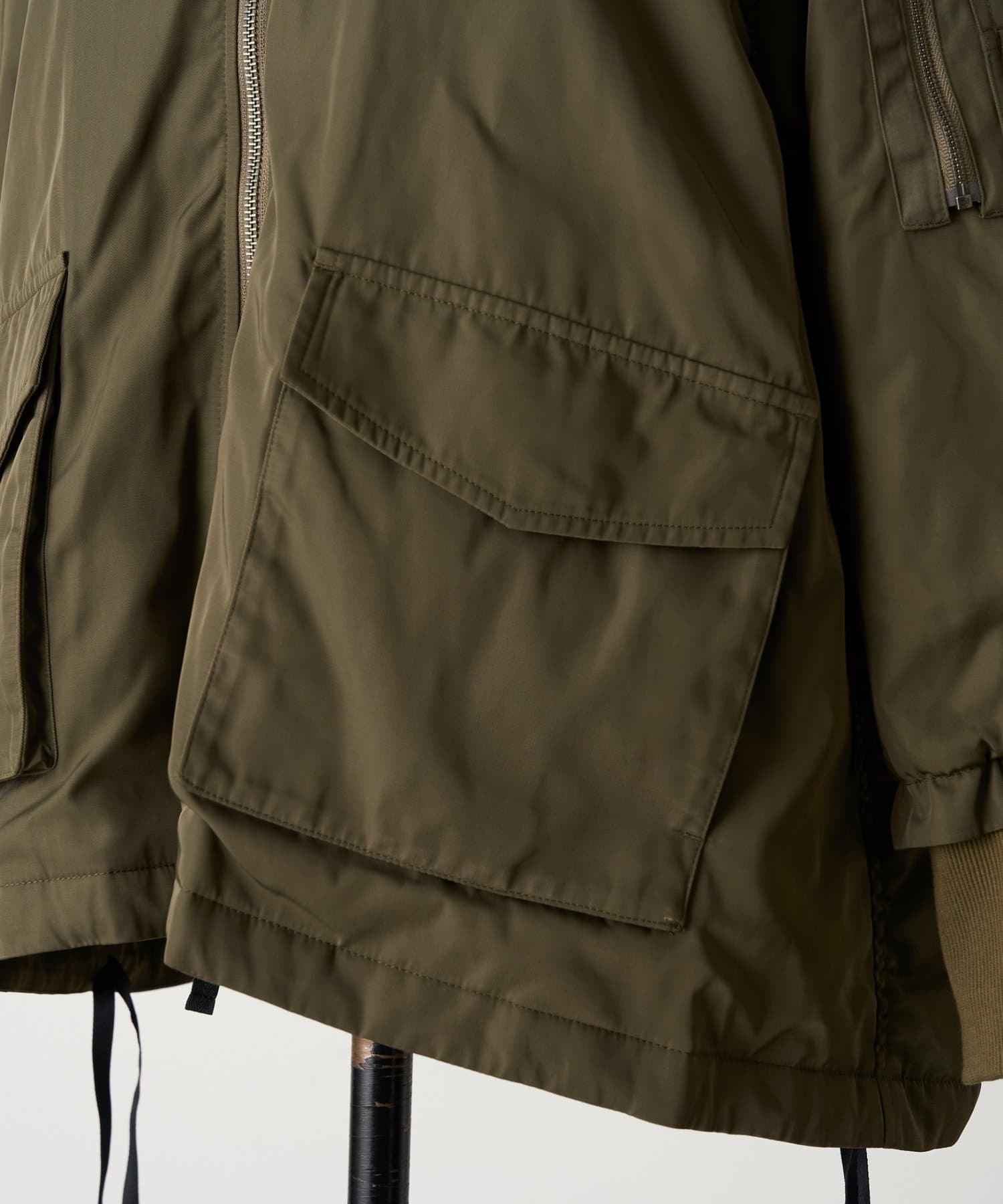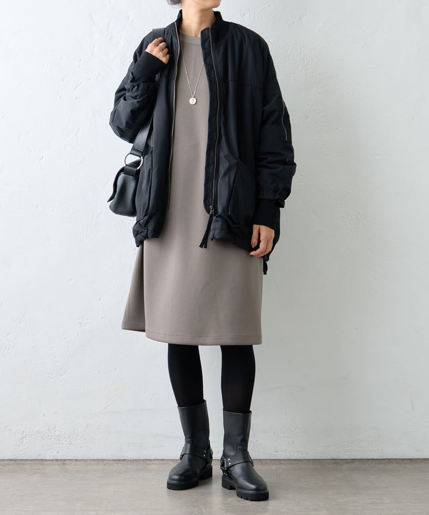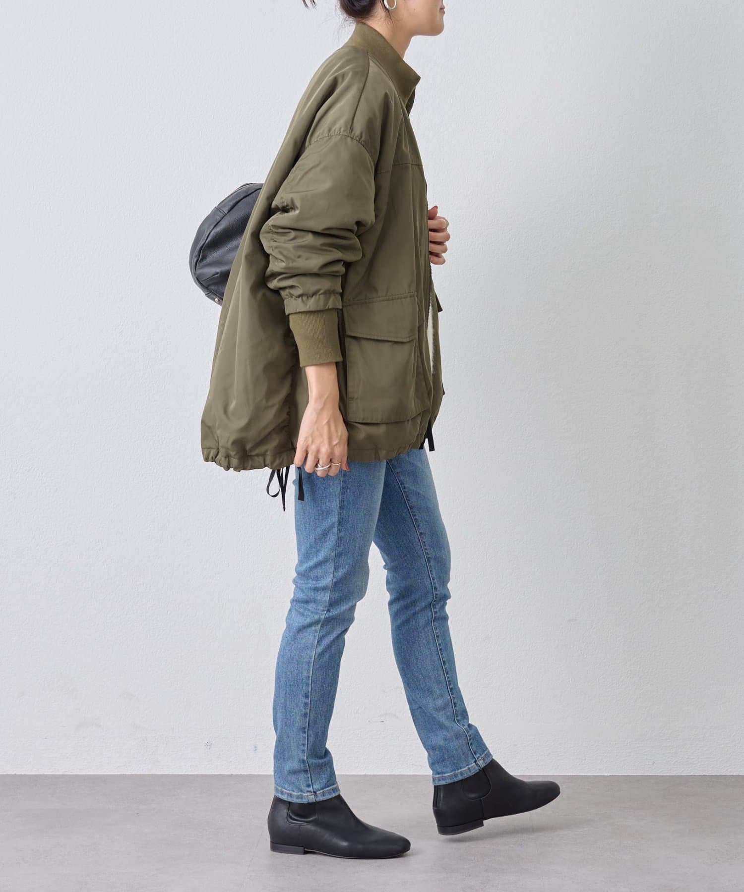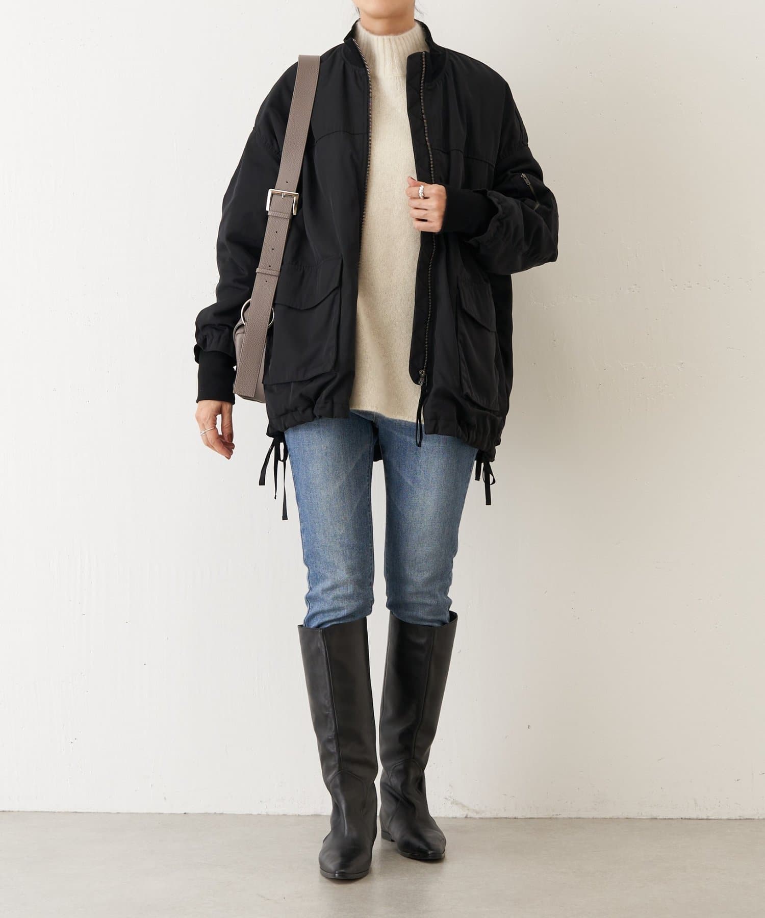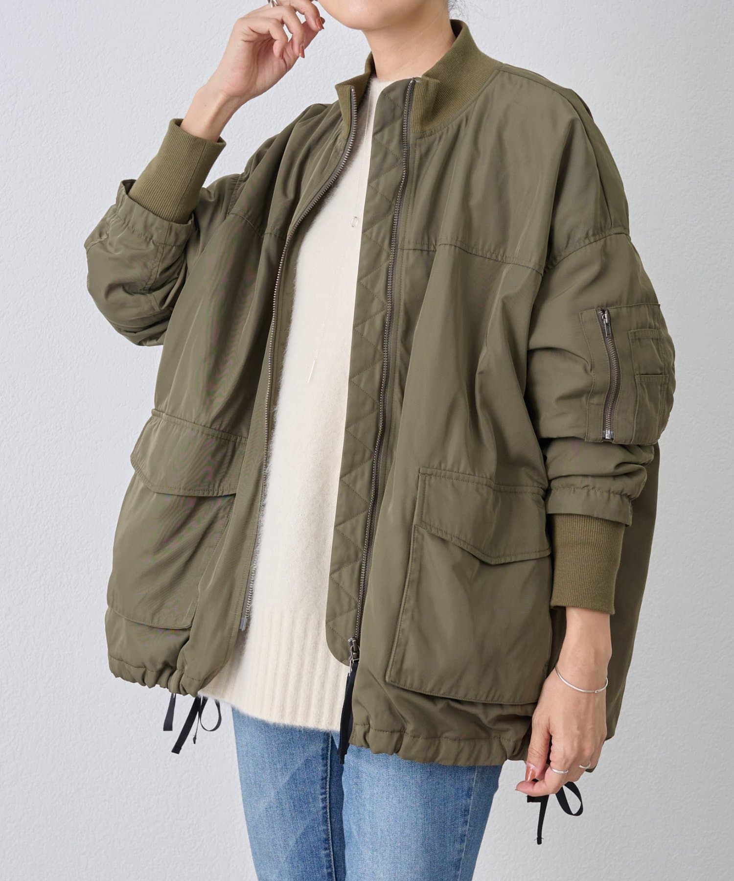 フライトジャケットがルーツのメンズイメージがあるMA-1を、裾をフレアにしやや着丈を長めにアレンジ。