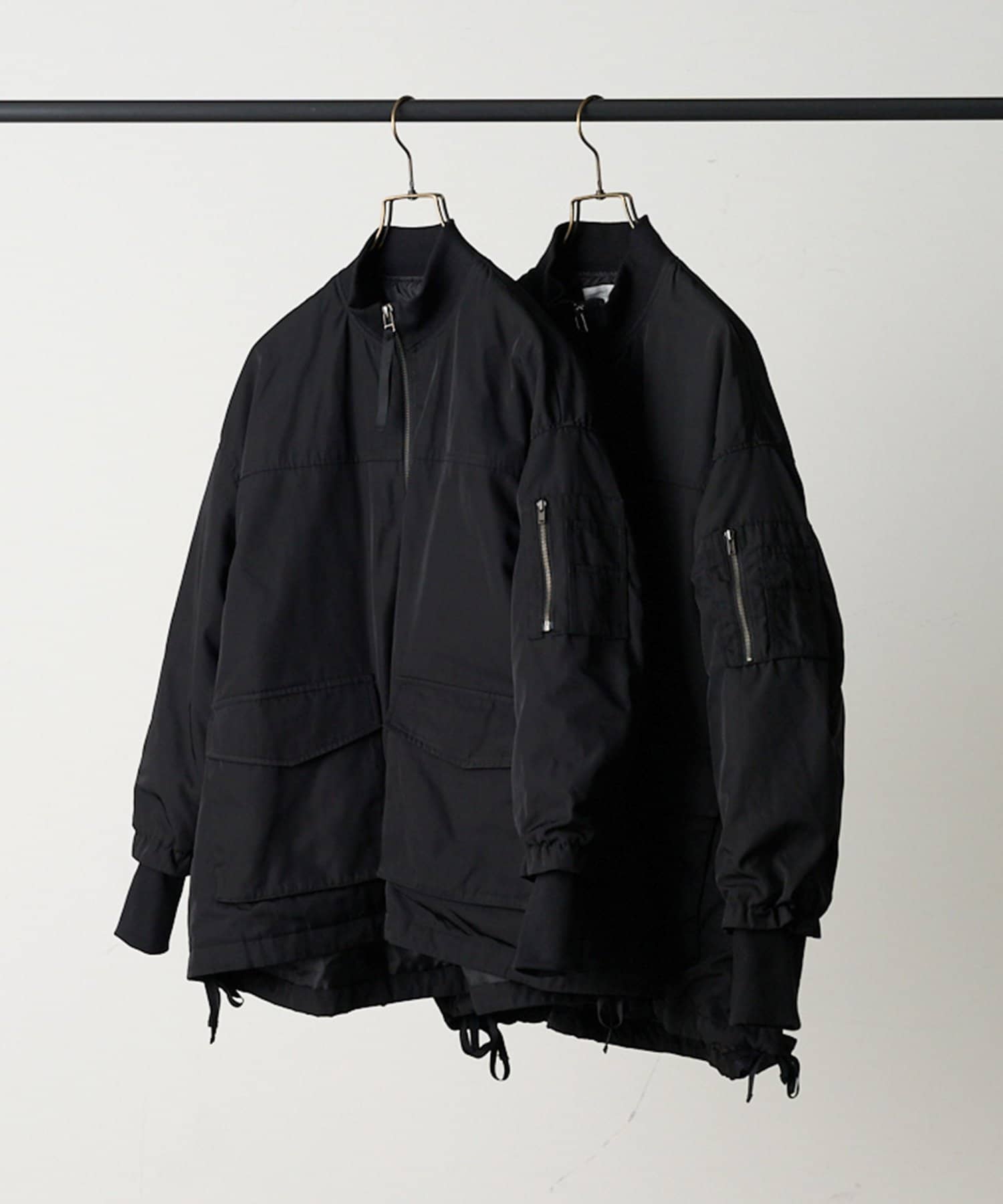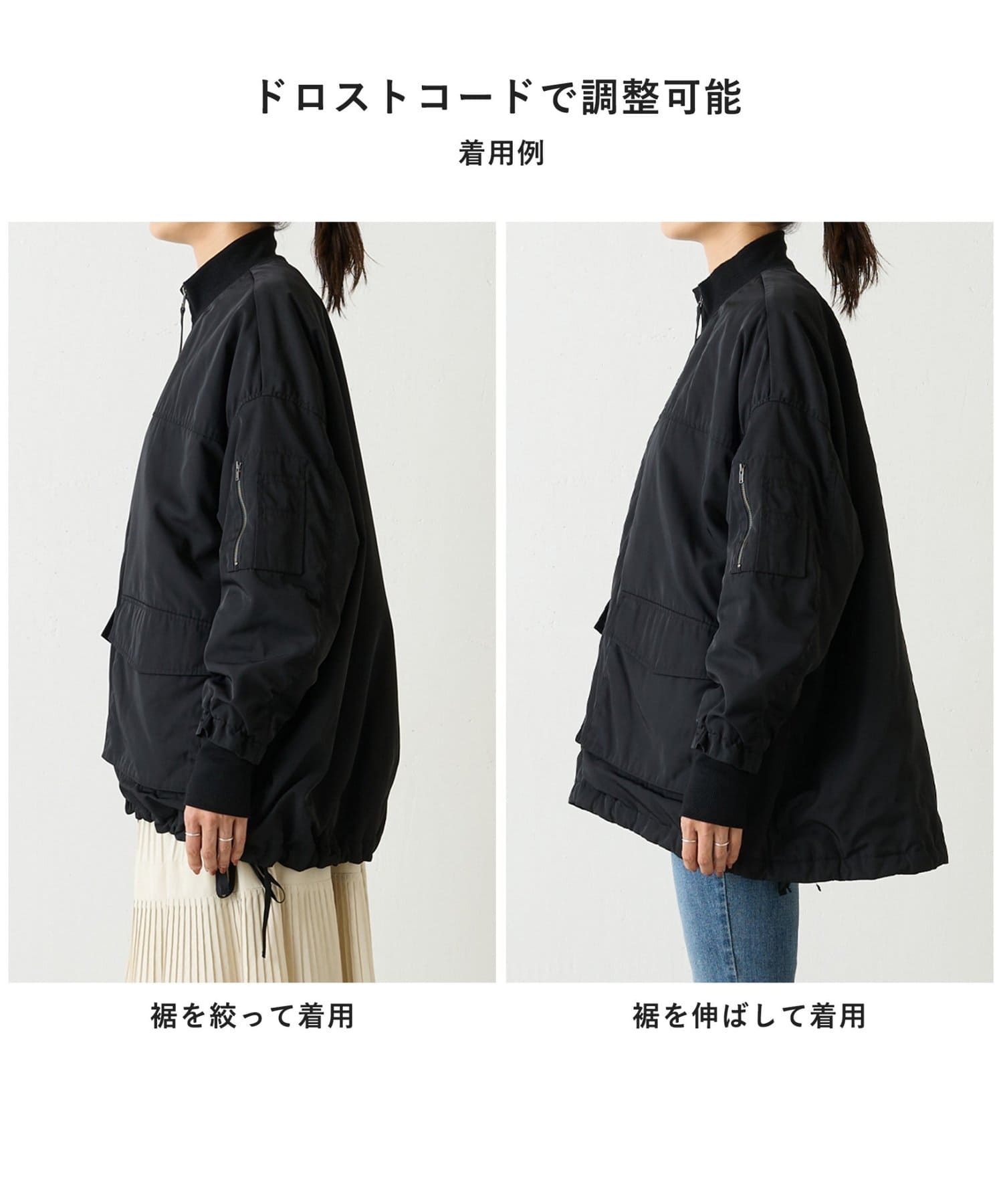 裾にはドローコードを入れシルエットの変化を楽しめるように仕上げました。