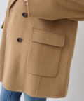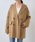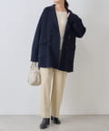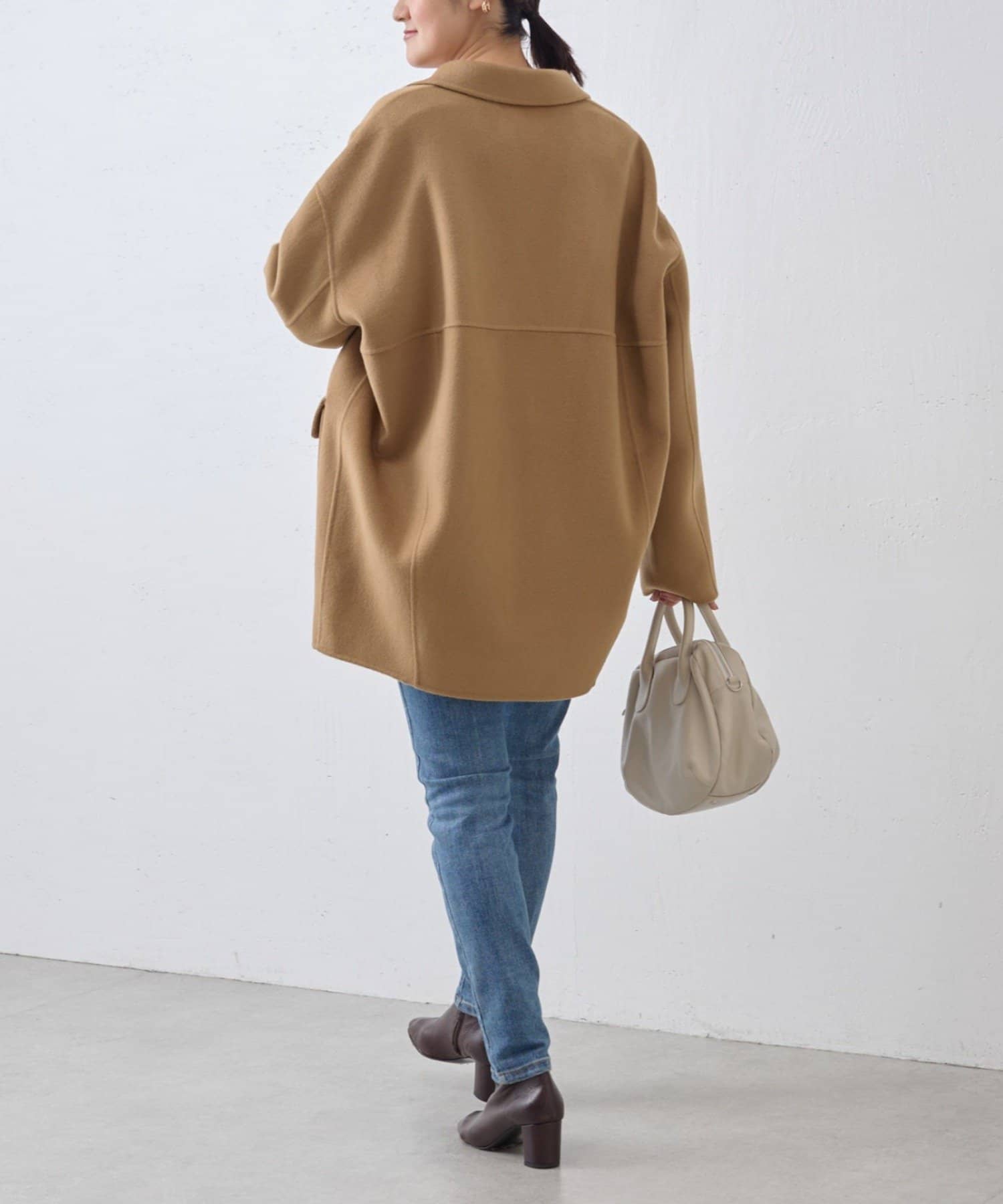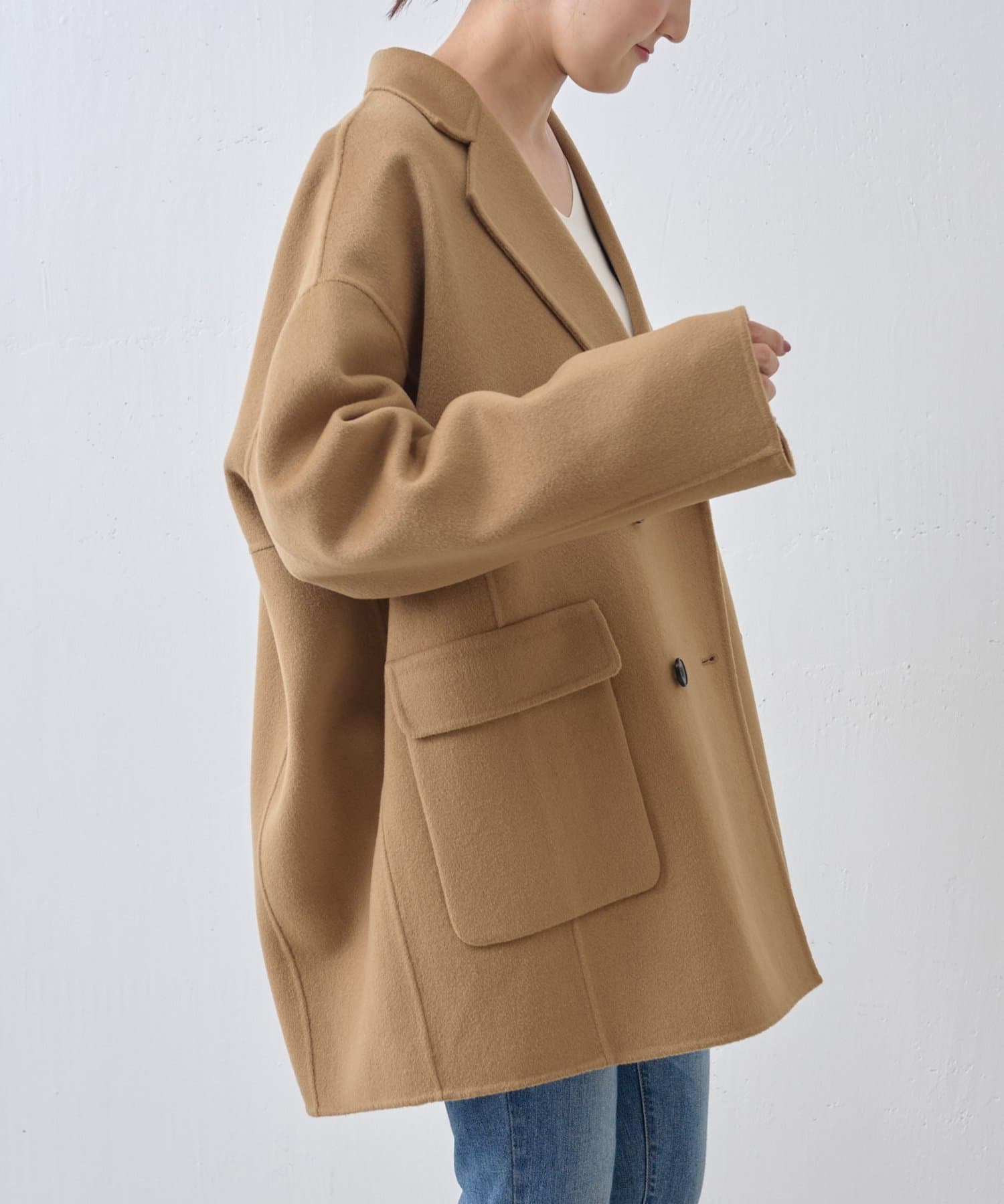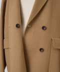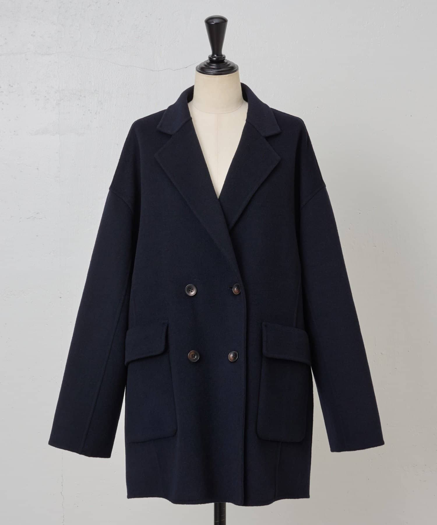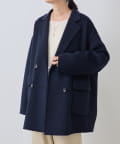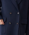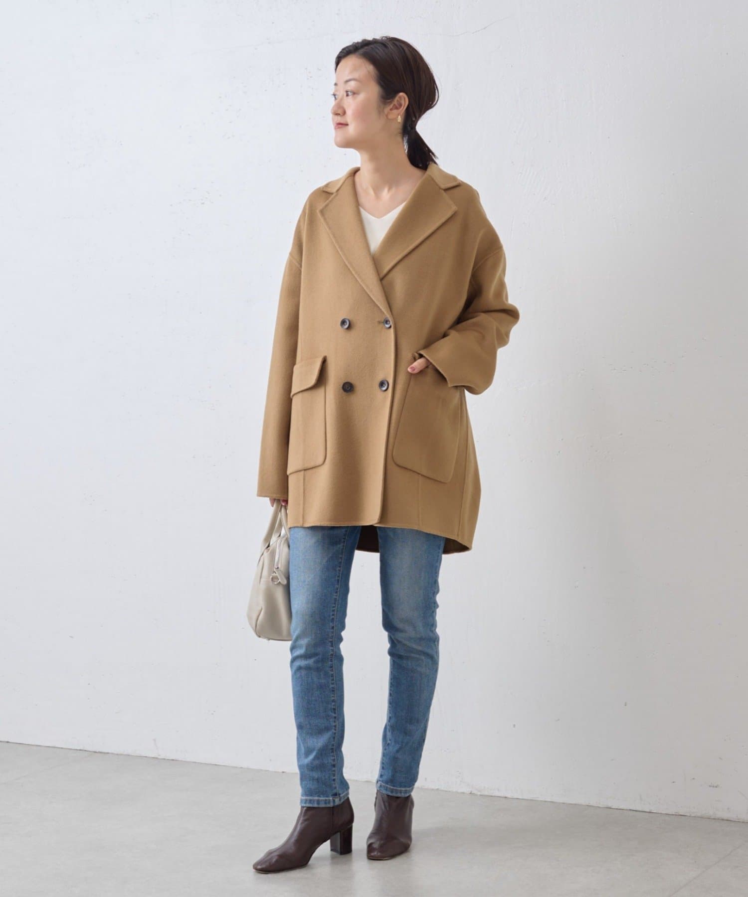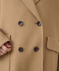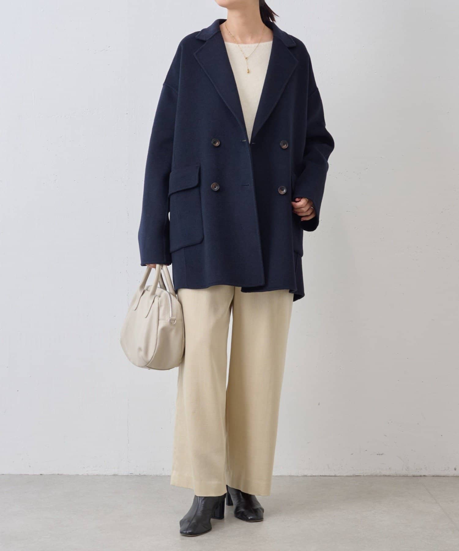 ダブルのフロントとやや長めの丈感が、大人の女性にぴったりのきちんと感を演出。