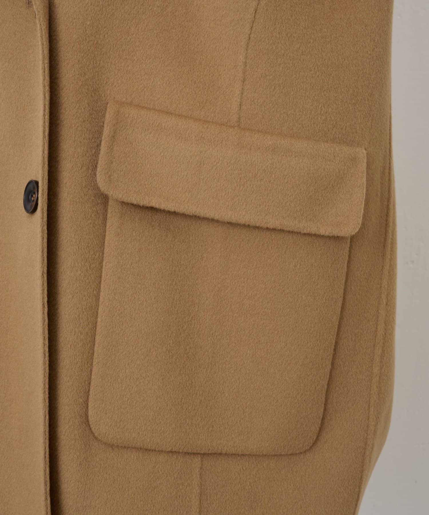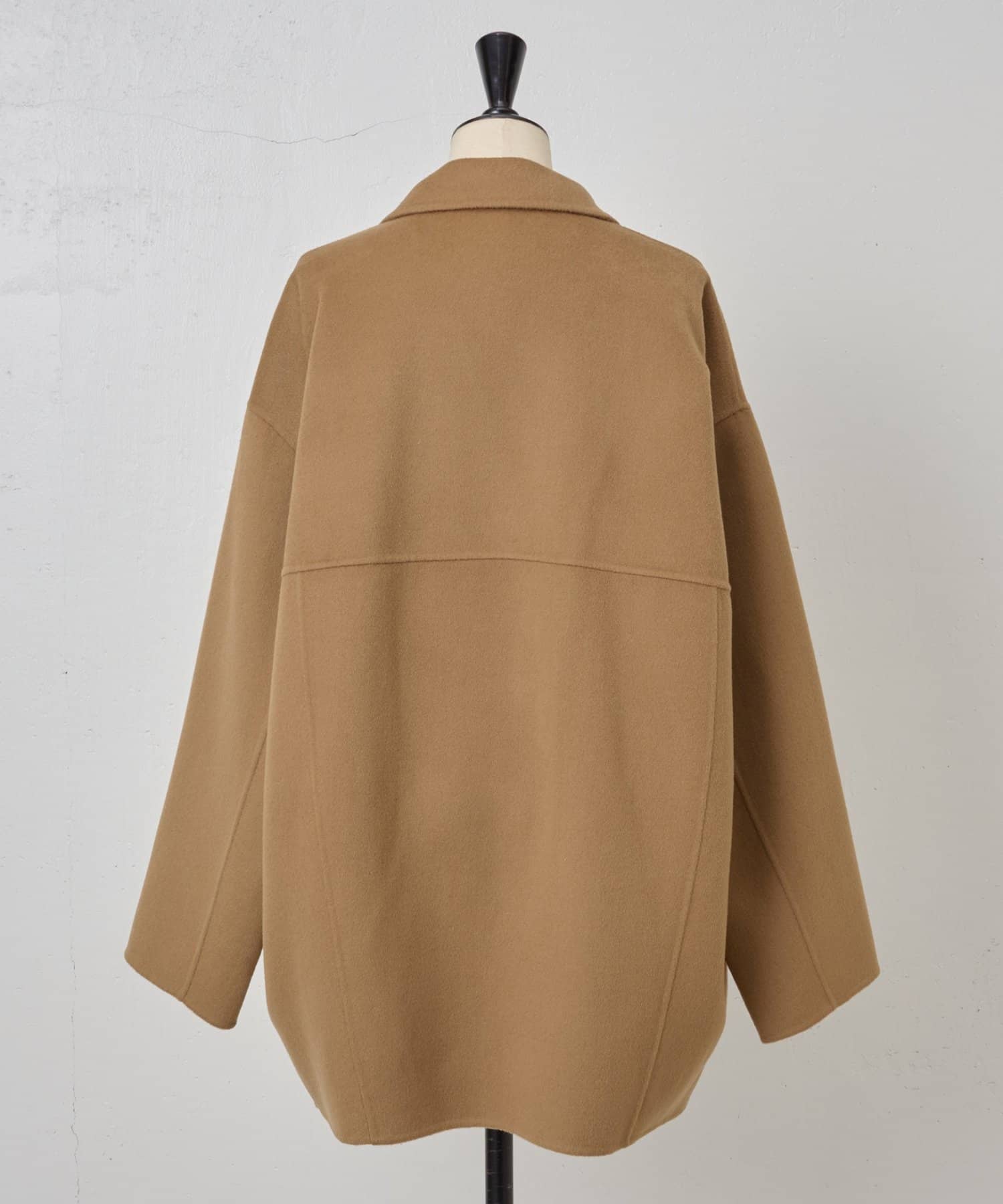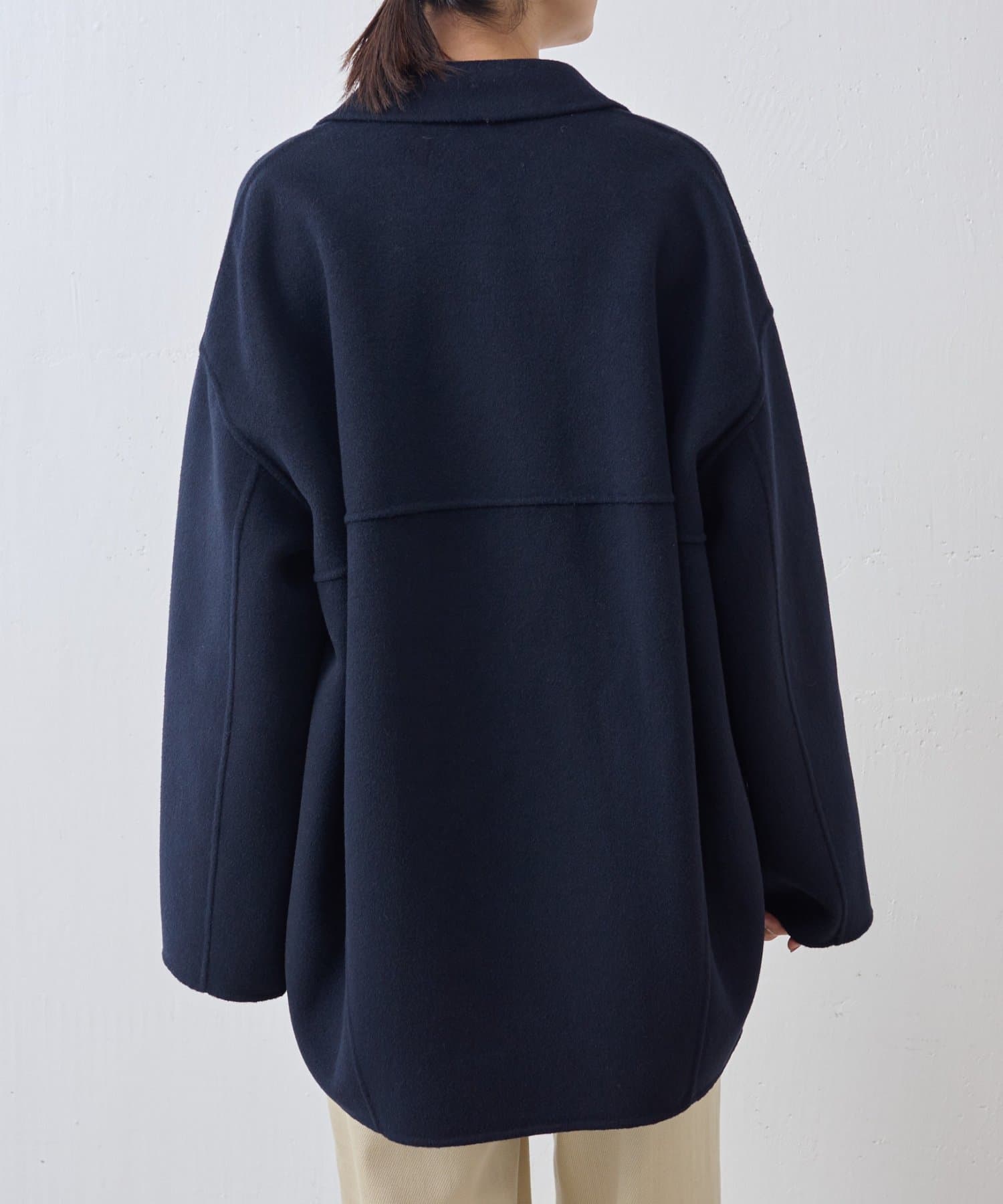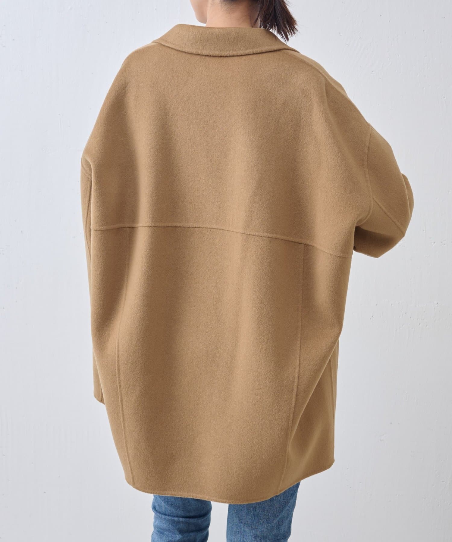 カシミア混のウールを使用し、軽やかであたたかい、リバー仕立てのピーコート。