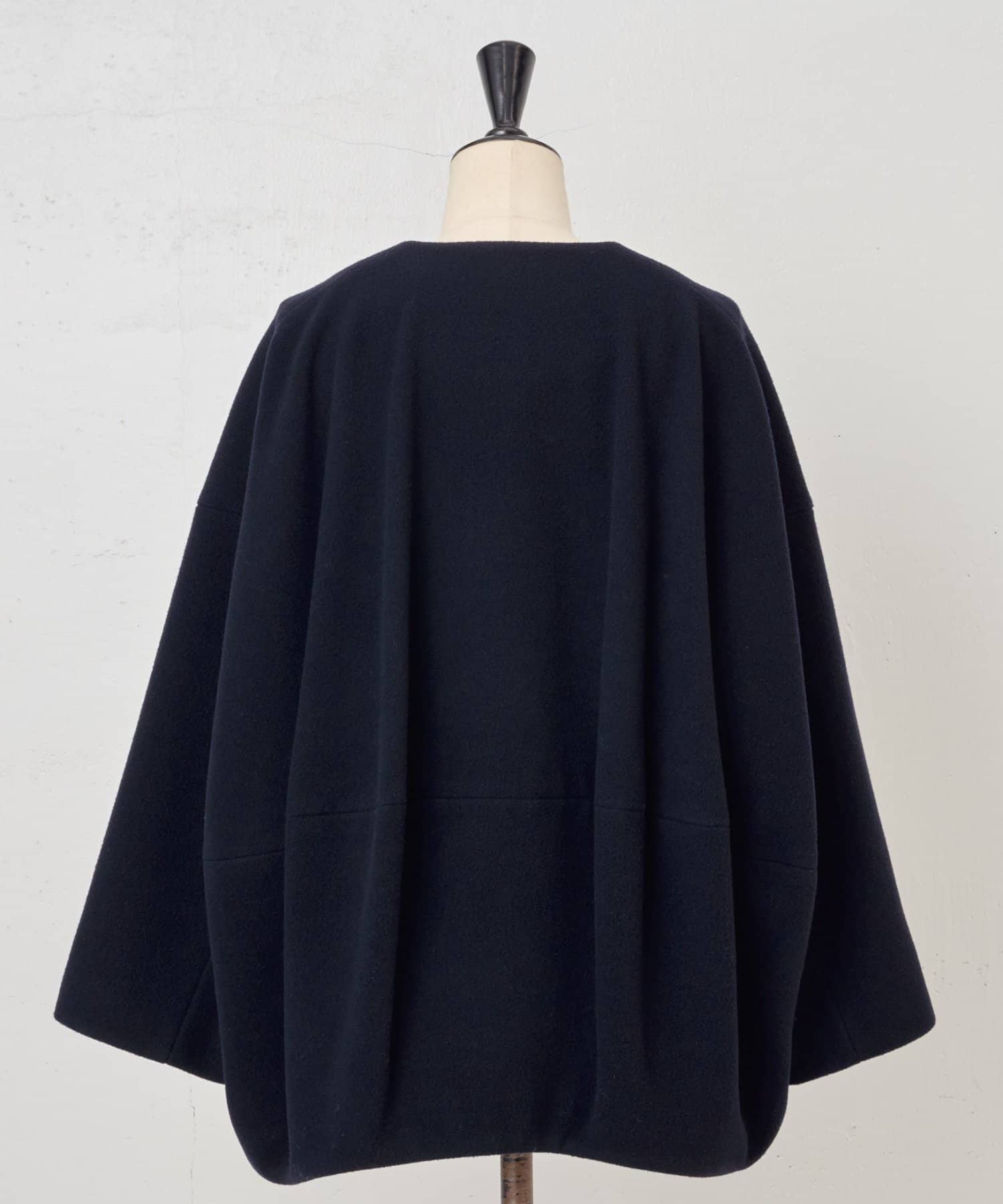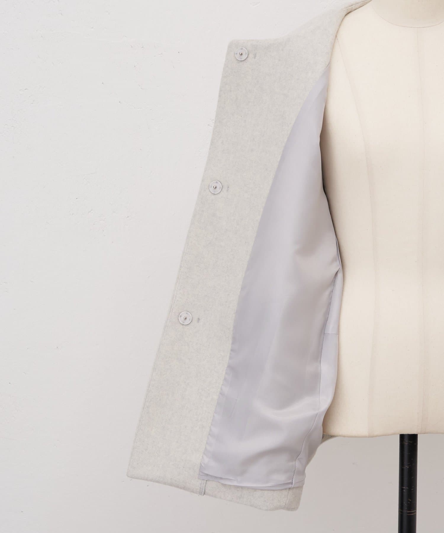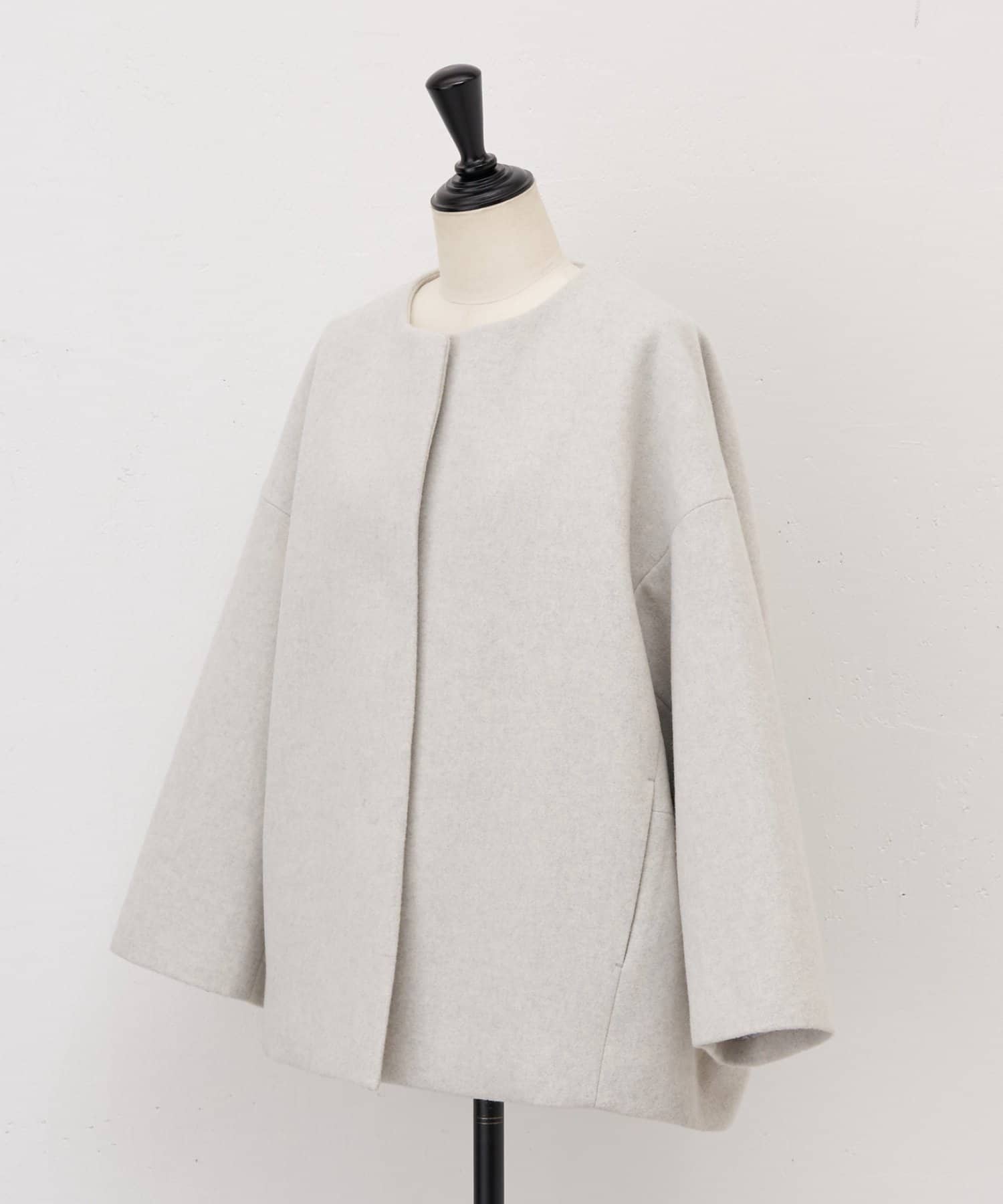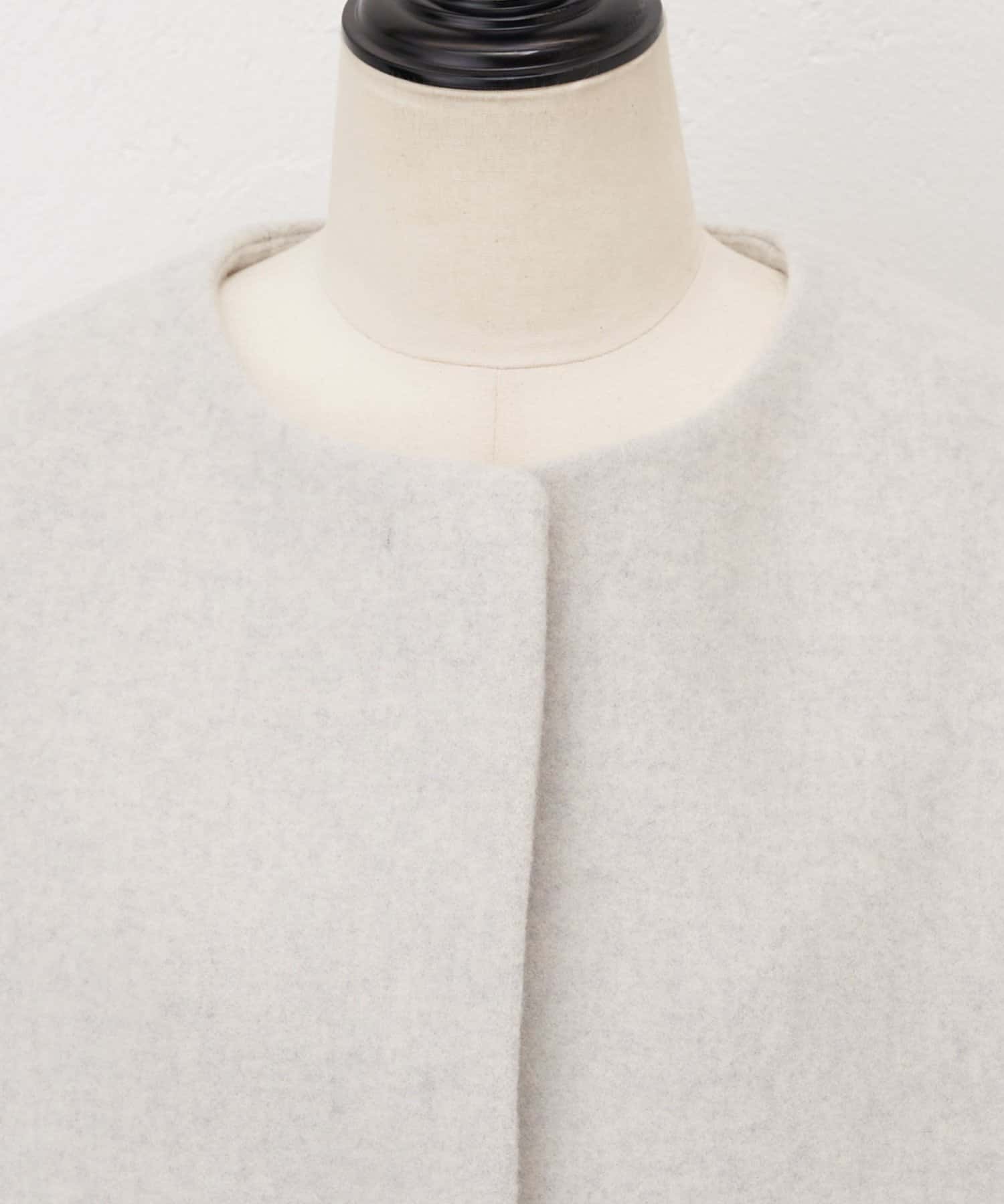 立体感のあるシルエットが魅力のノーカラーコート。