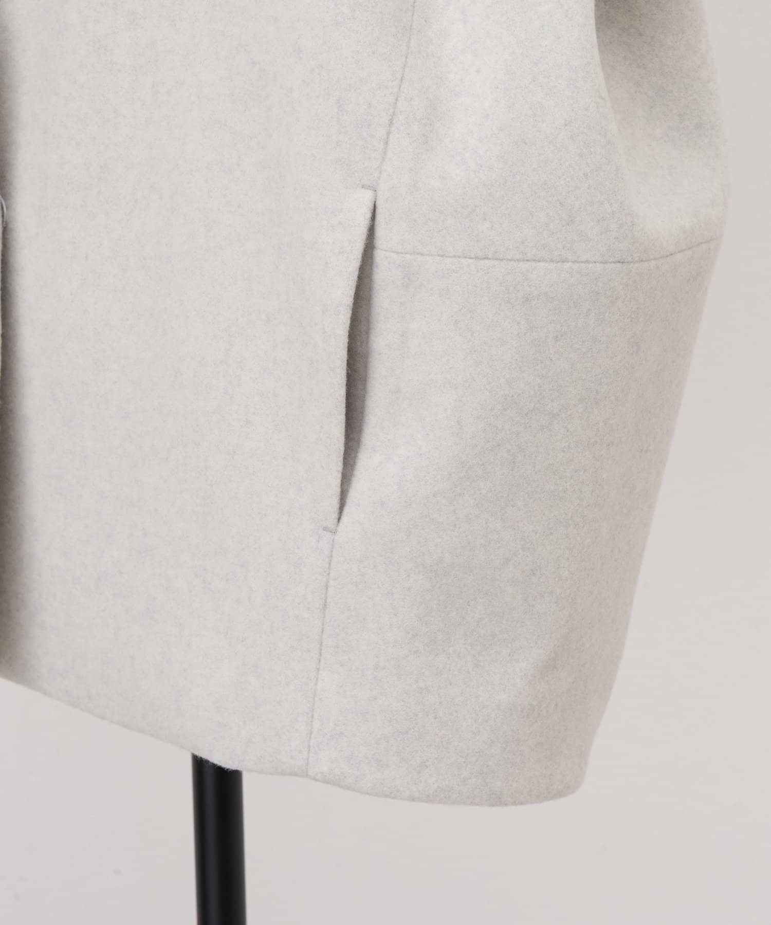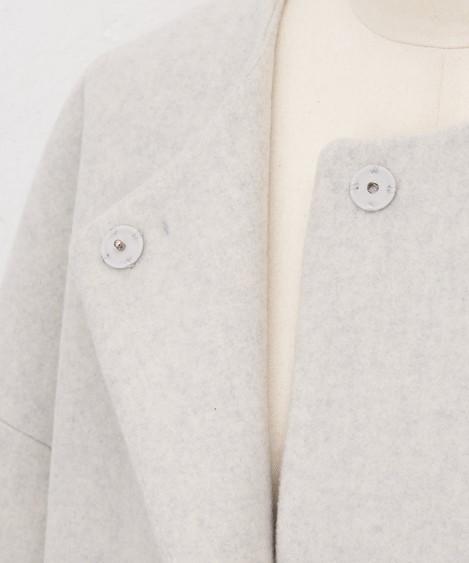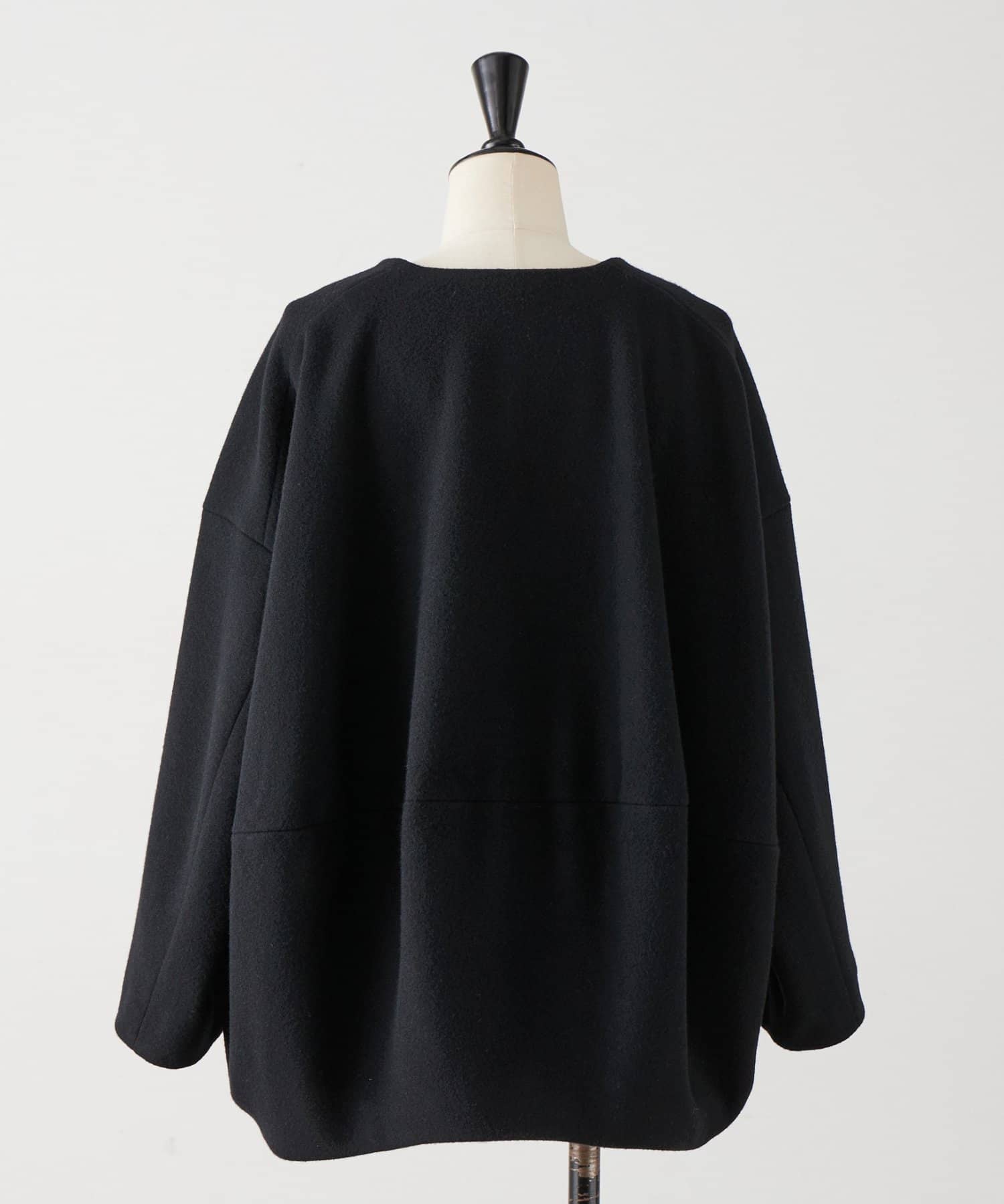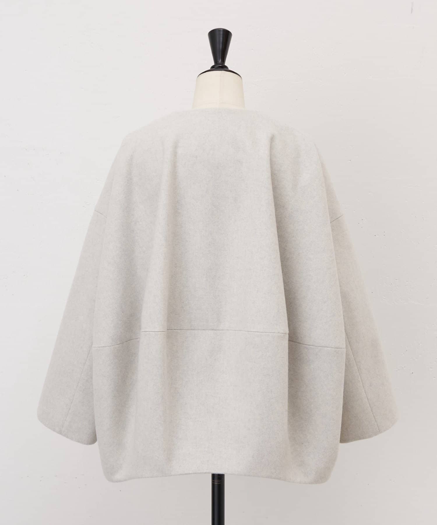 立体感のあるシルエットが魅力のノーカラーコート。